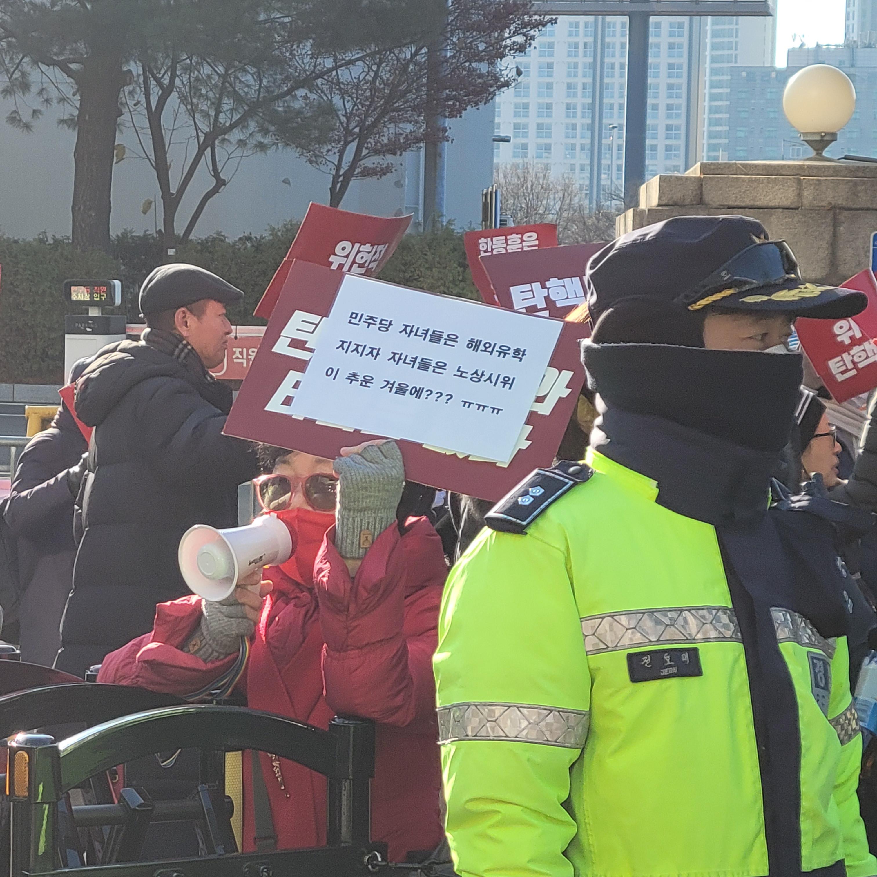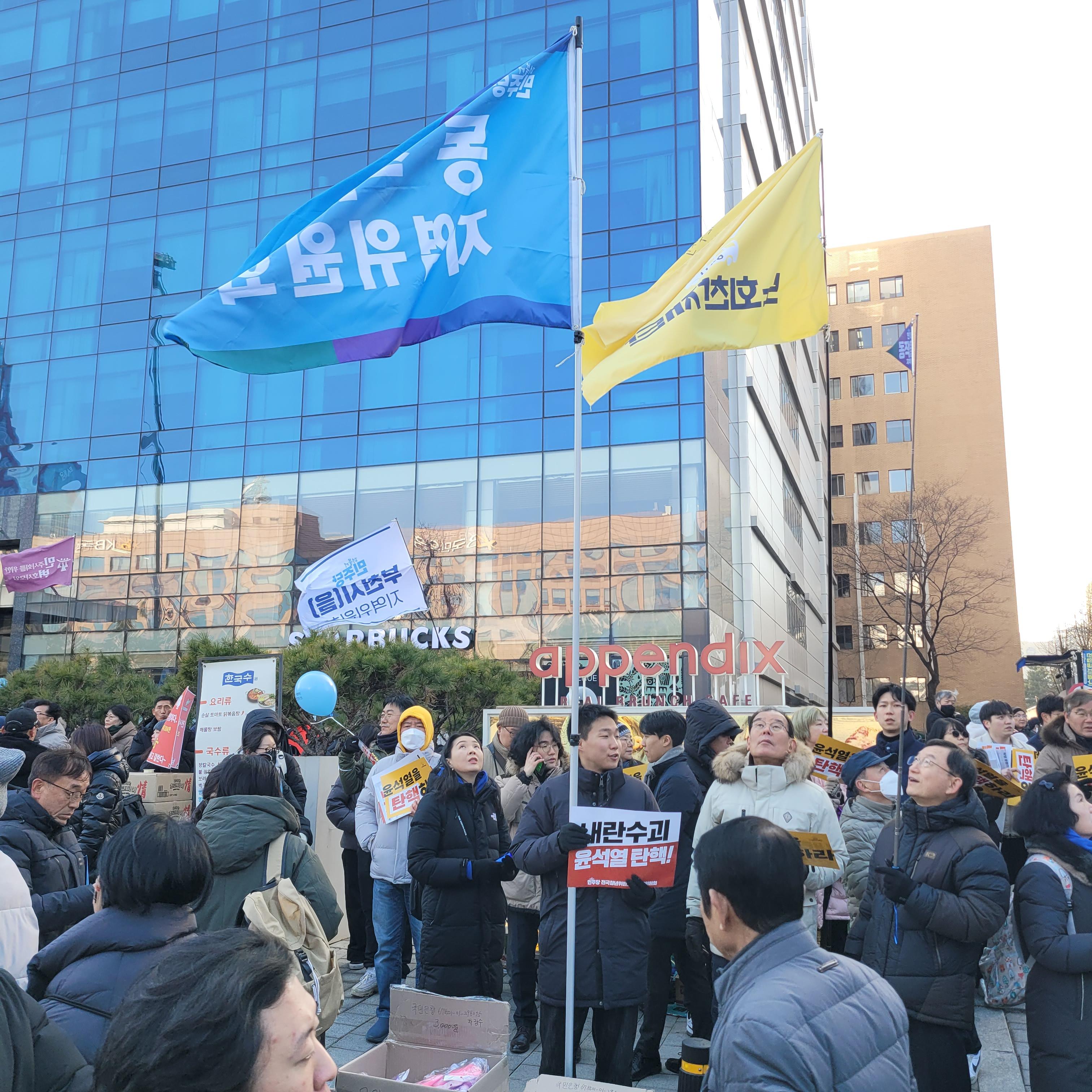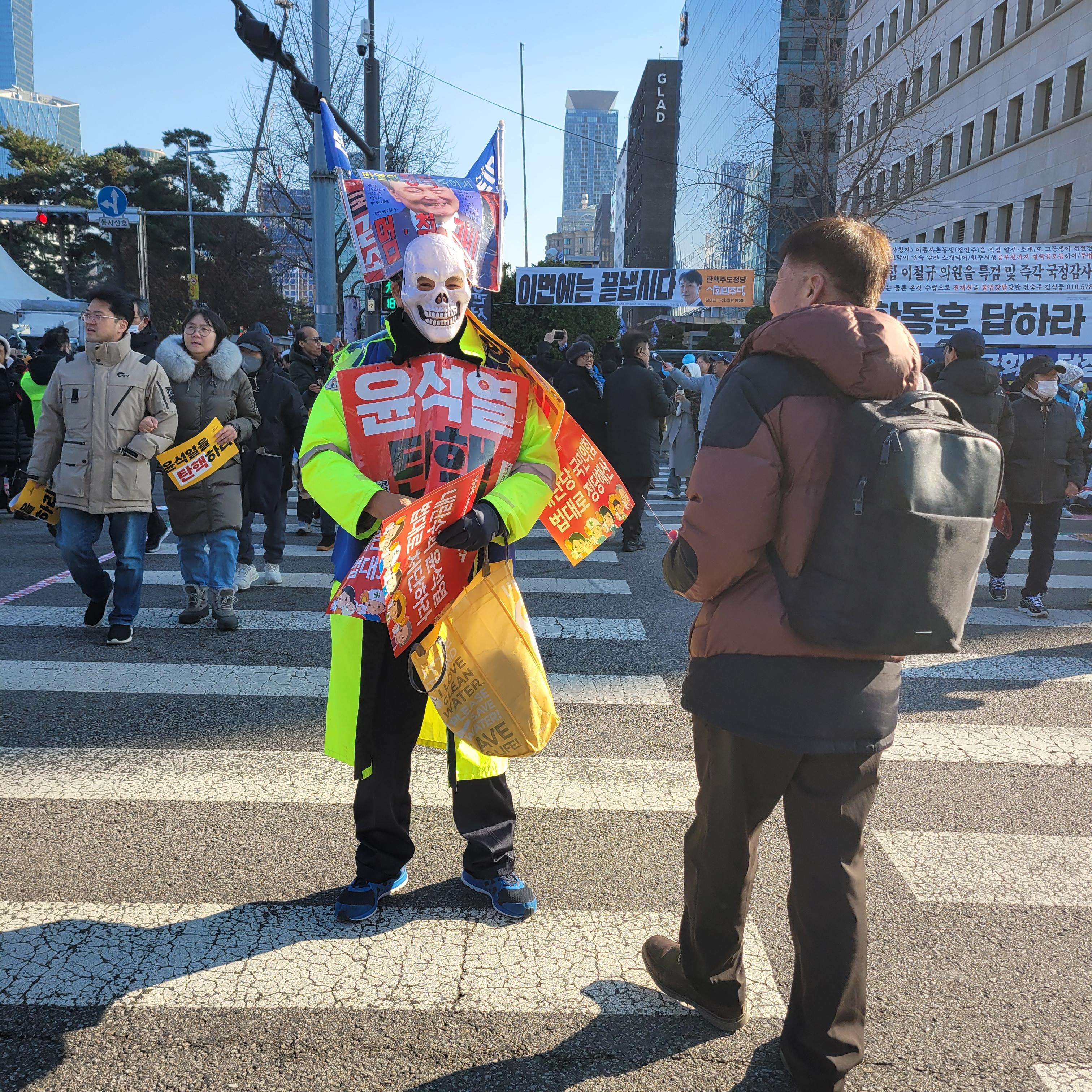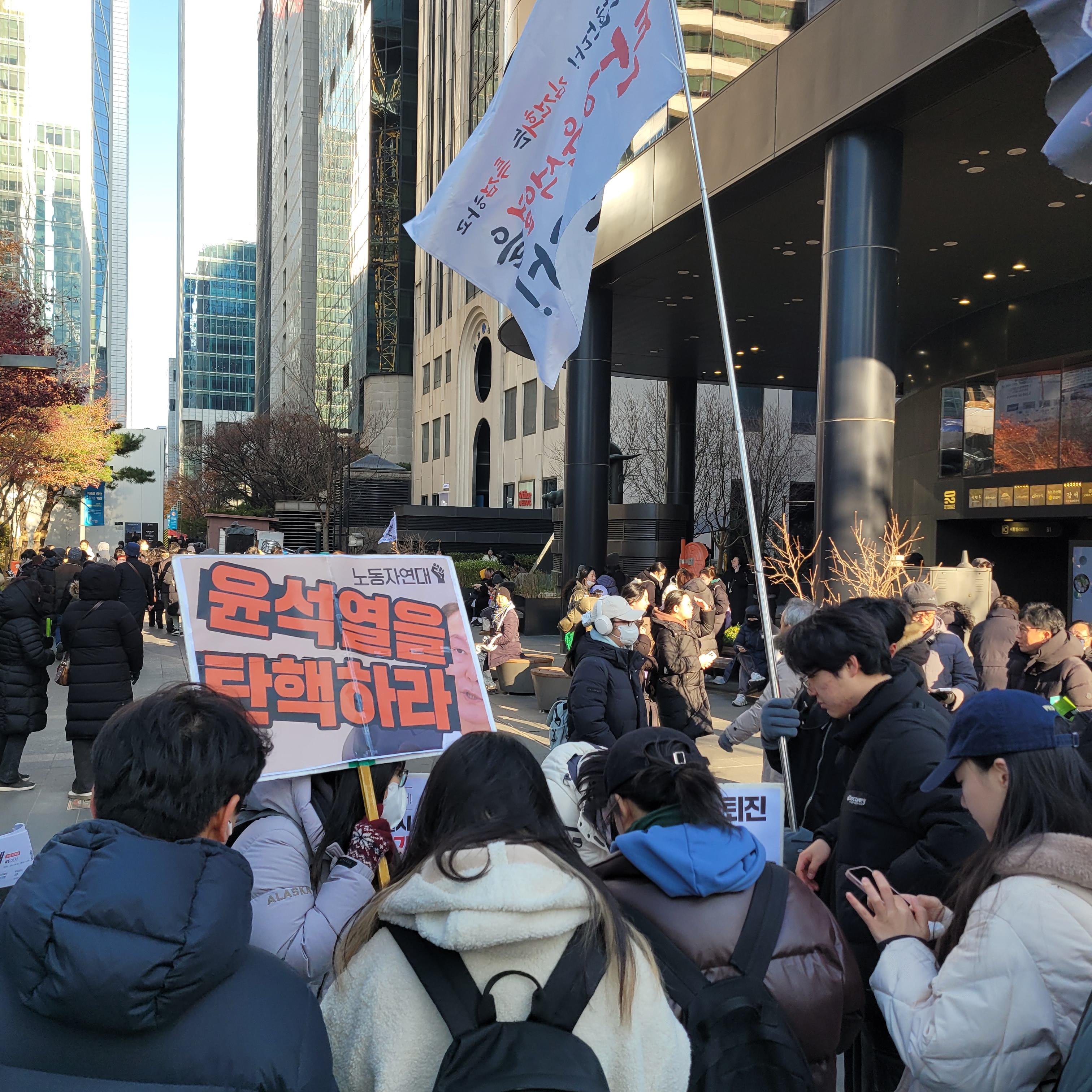 헌데 한쪽에서는 윤석열 탄핵 반대집회가 작은 규모로 열리고 있었는데