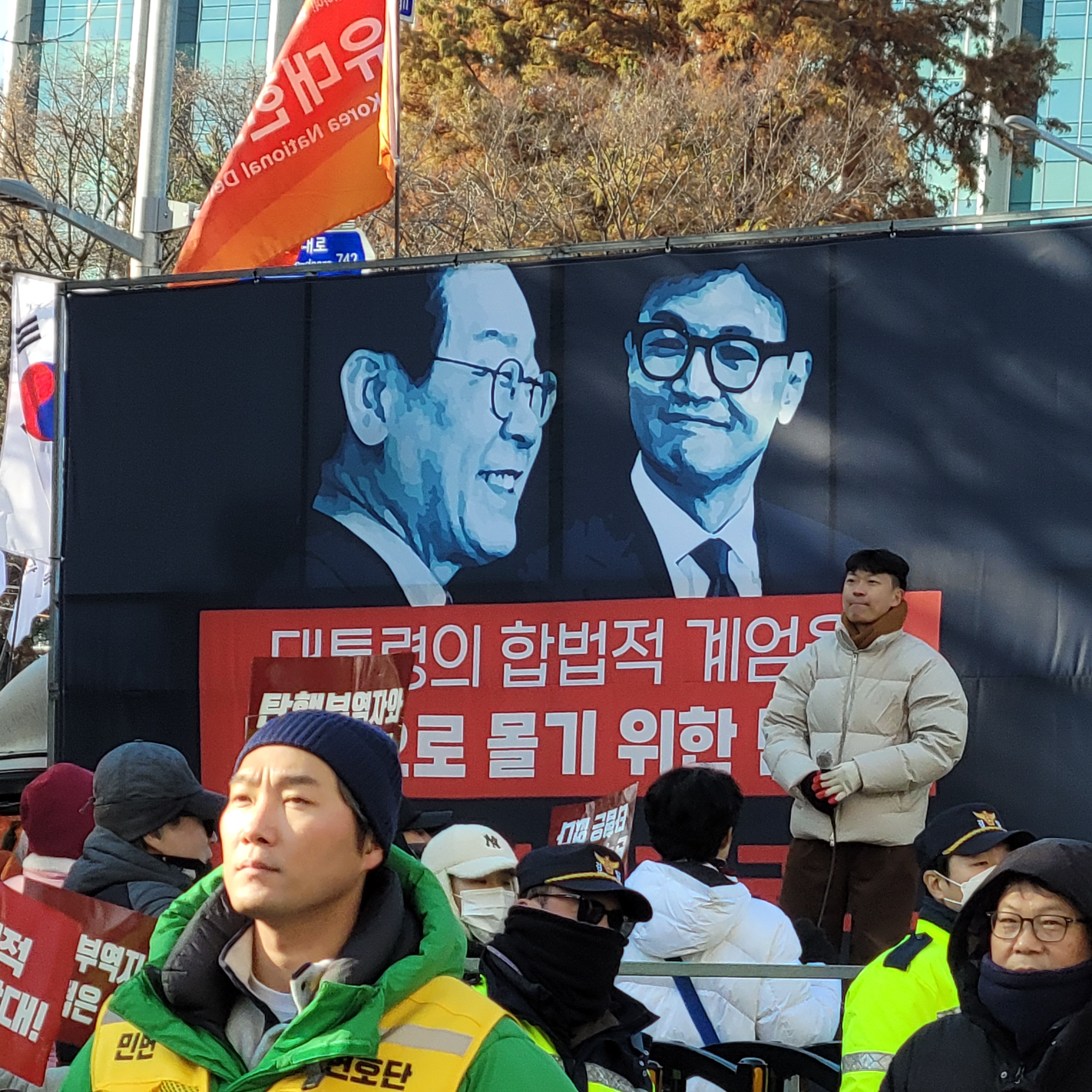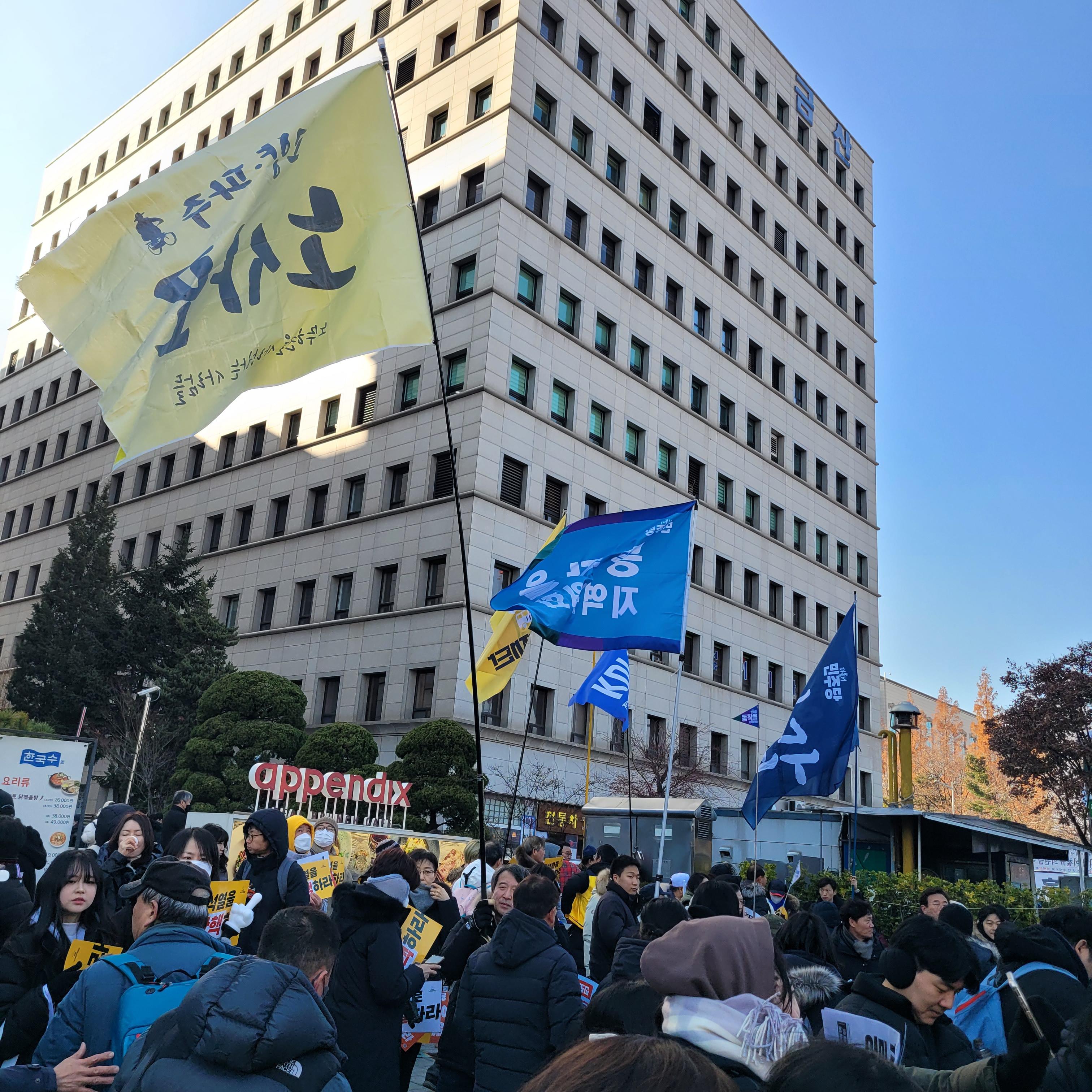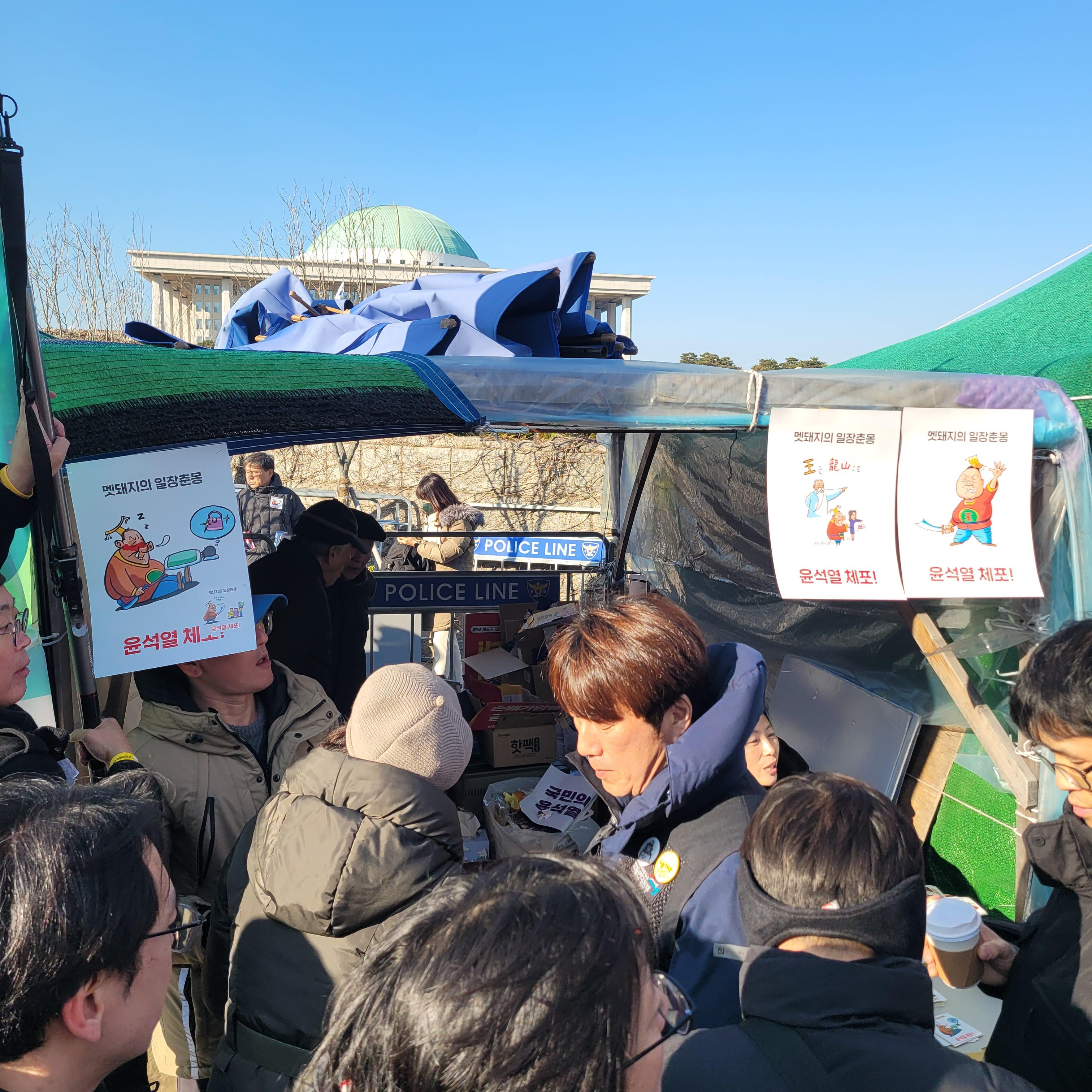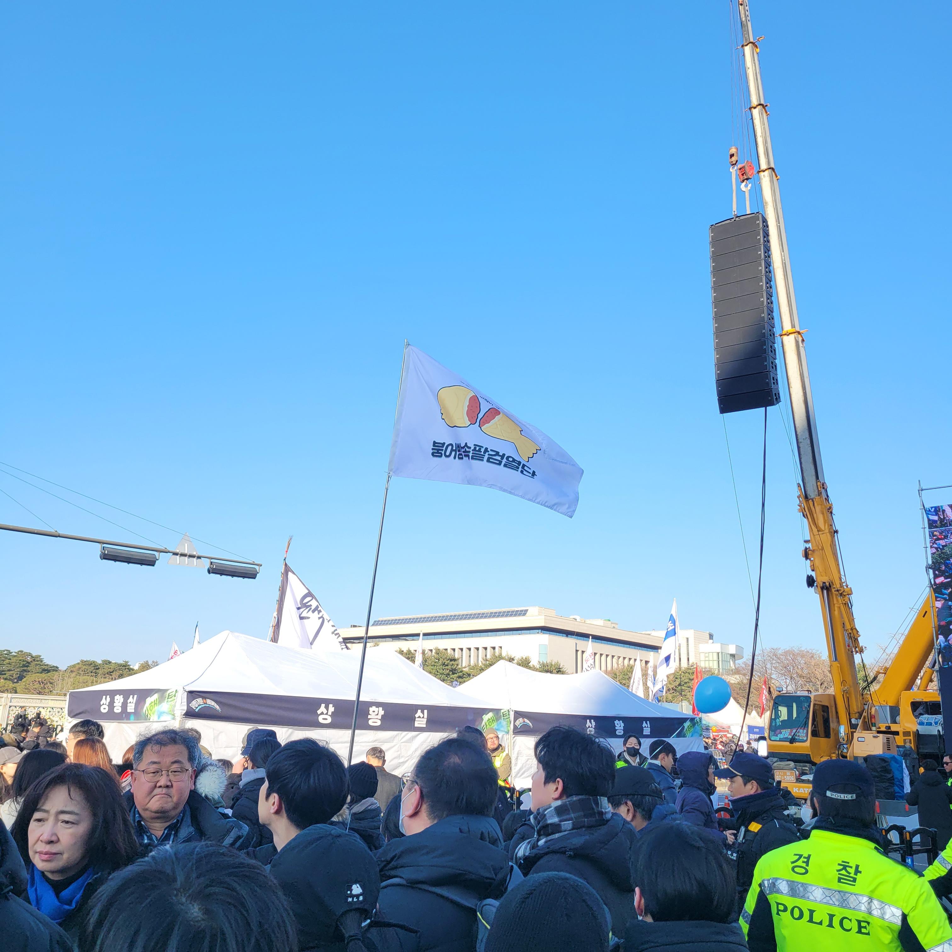 헌데 한쪽에서는 윤석열 탄핵 반대집회가 작은 규모로 열리고 있었는데