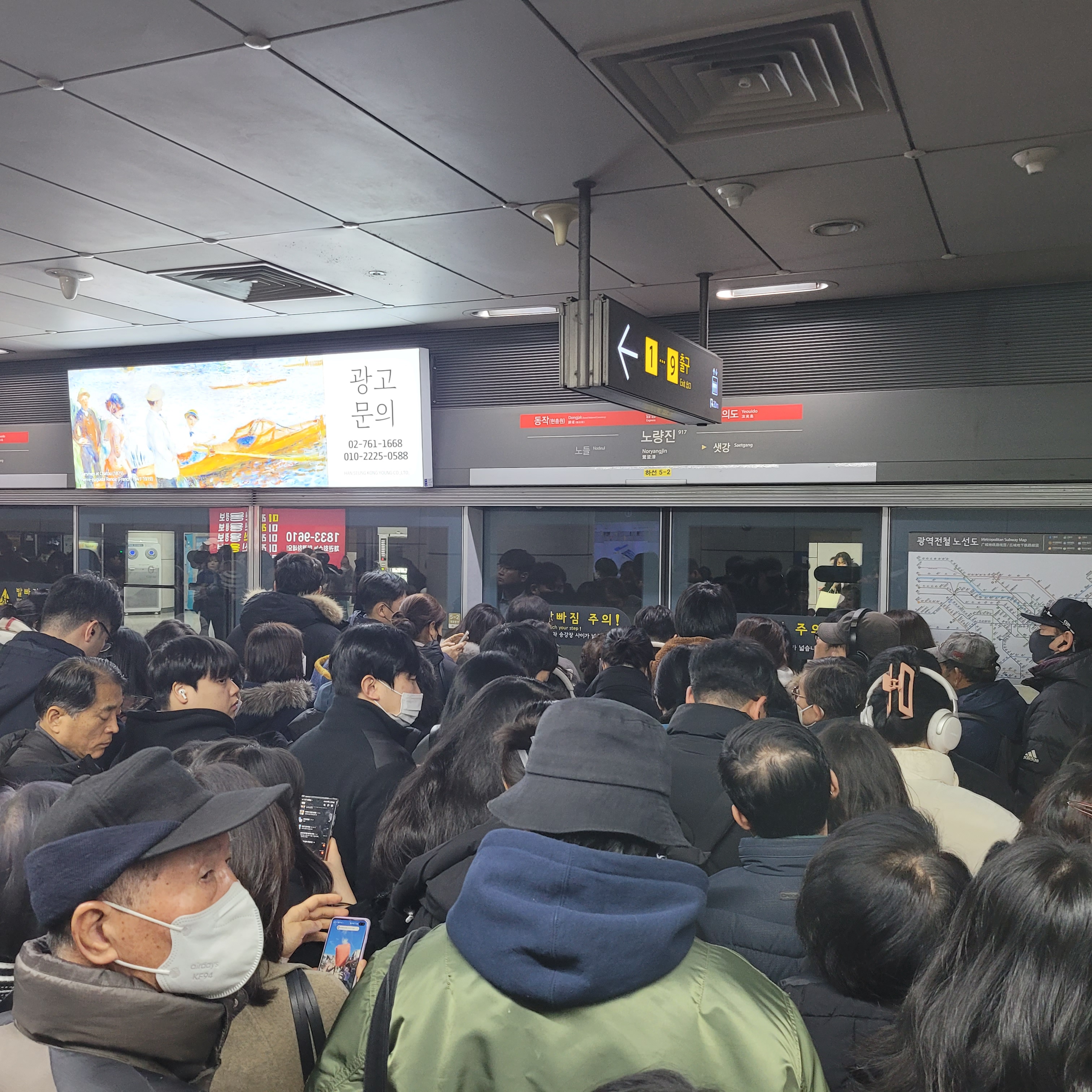 9호선으로 열차 갈아타기 위한 사람들로 역사 안이 바글바글했네요. 덕분에