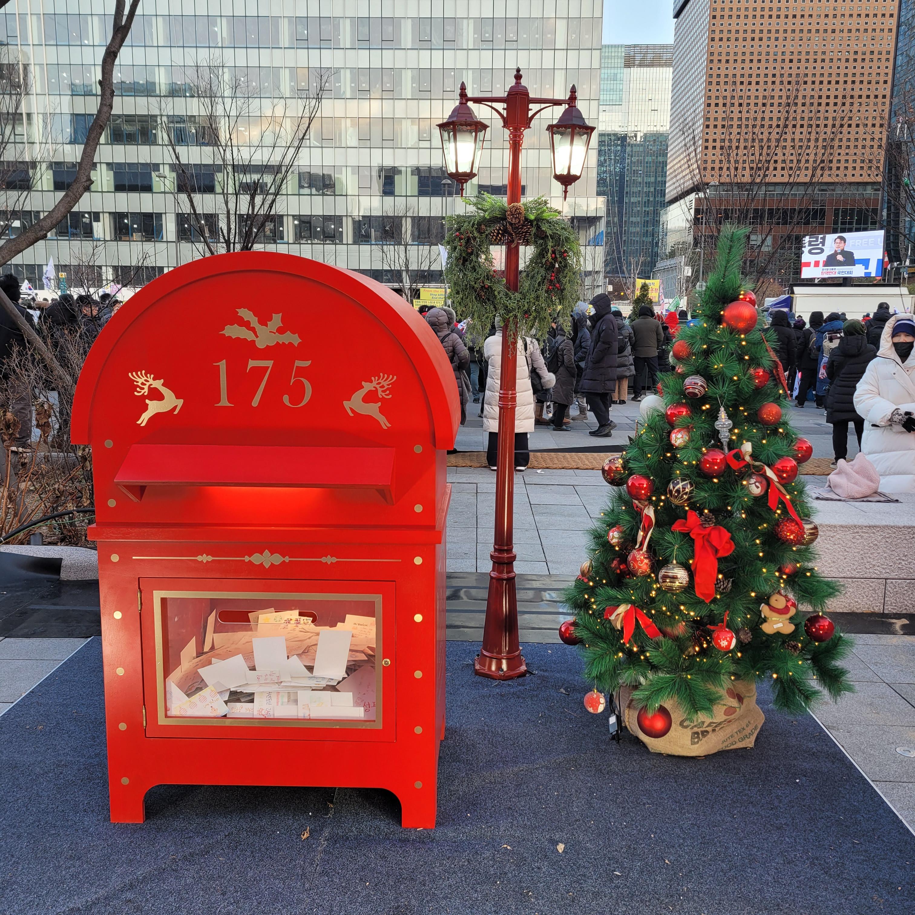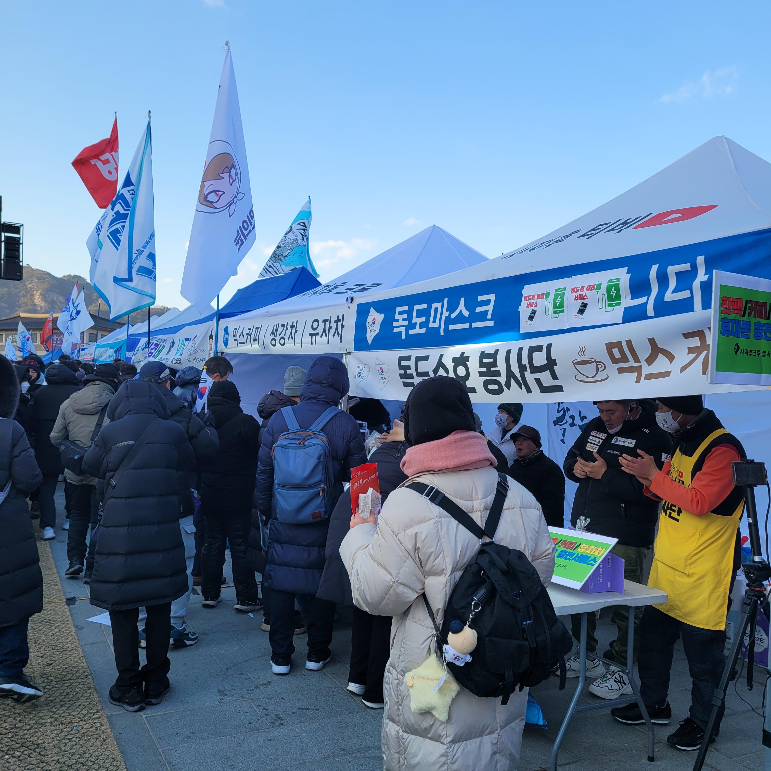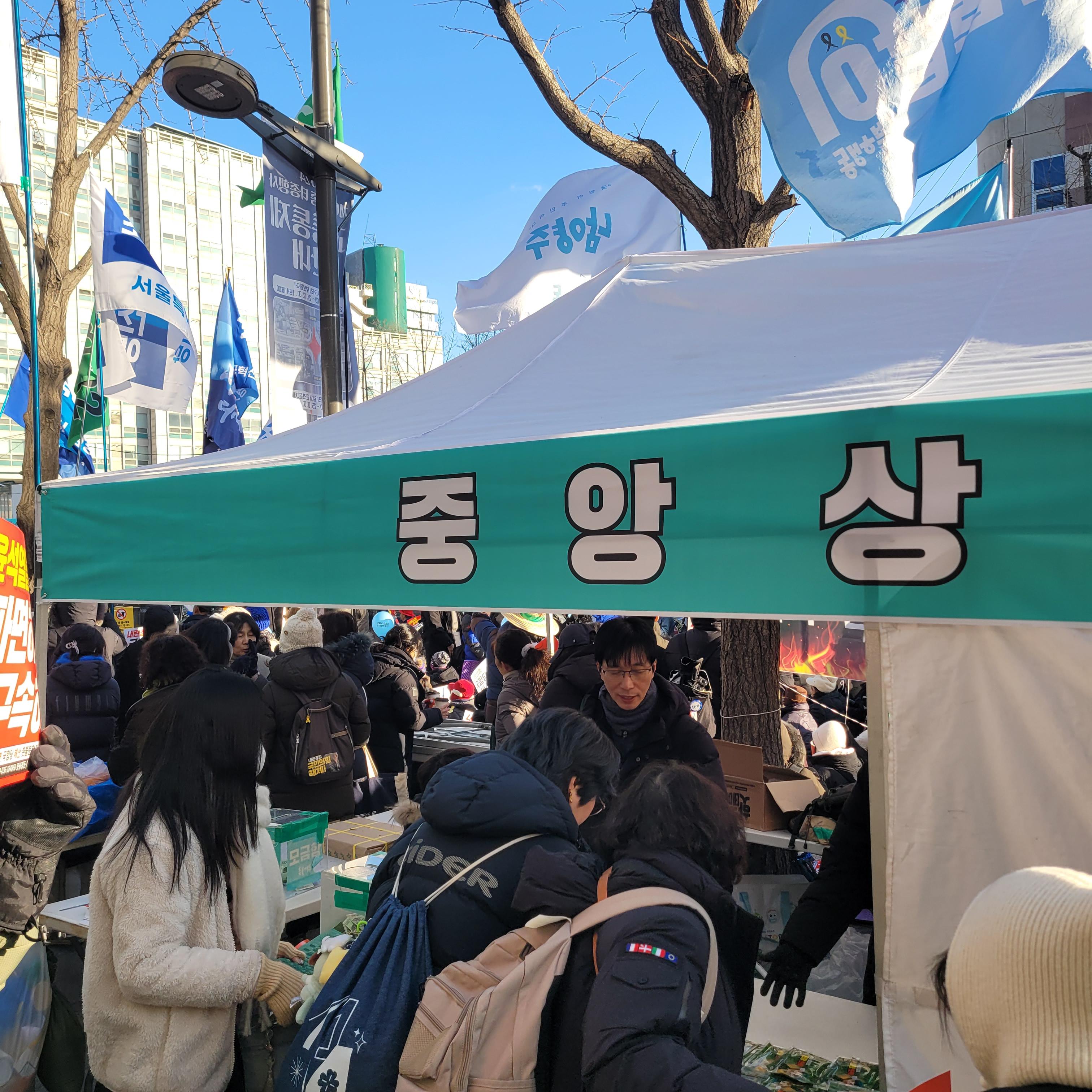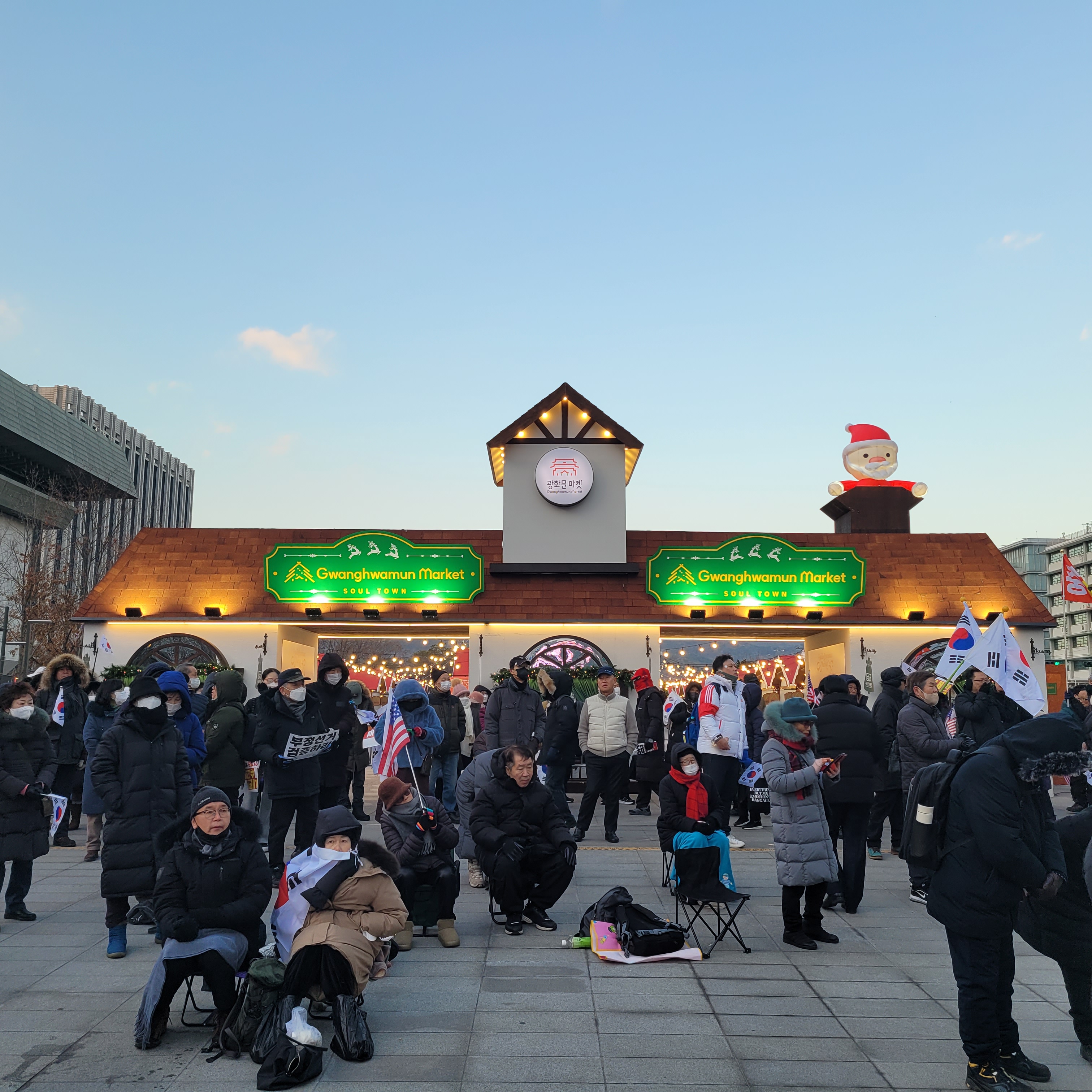 윤석열 탄핵 반대를 하는 보수단체들의 태극기집회가 한창이라 크리스마스 마켓은
