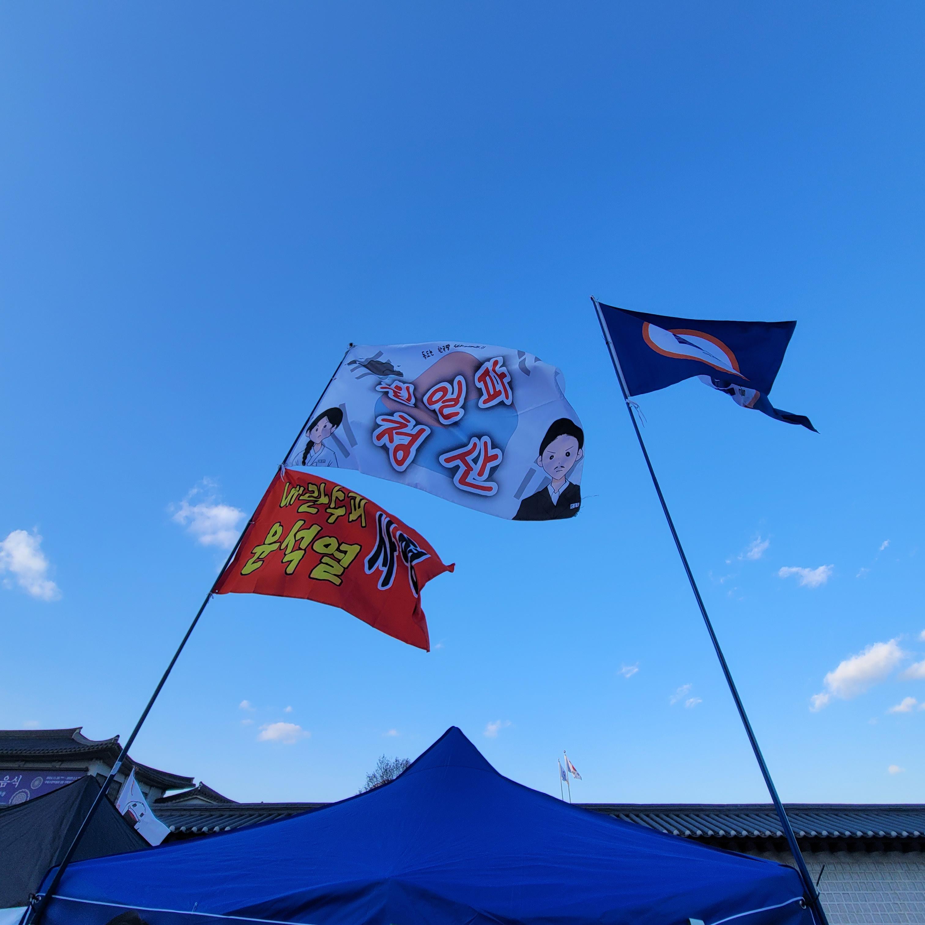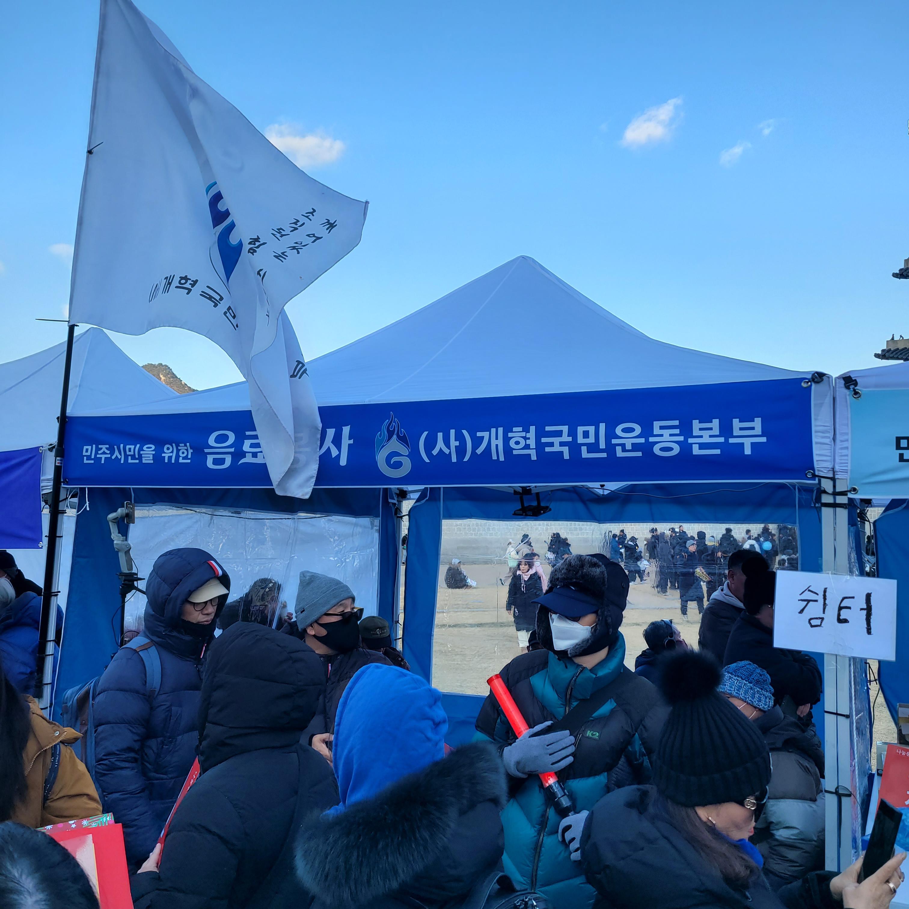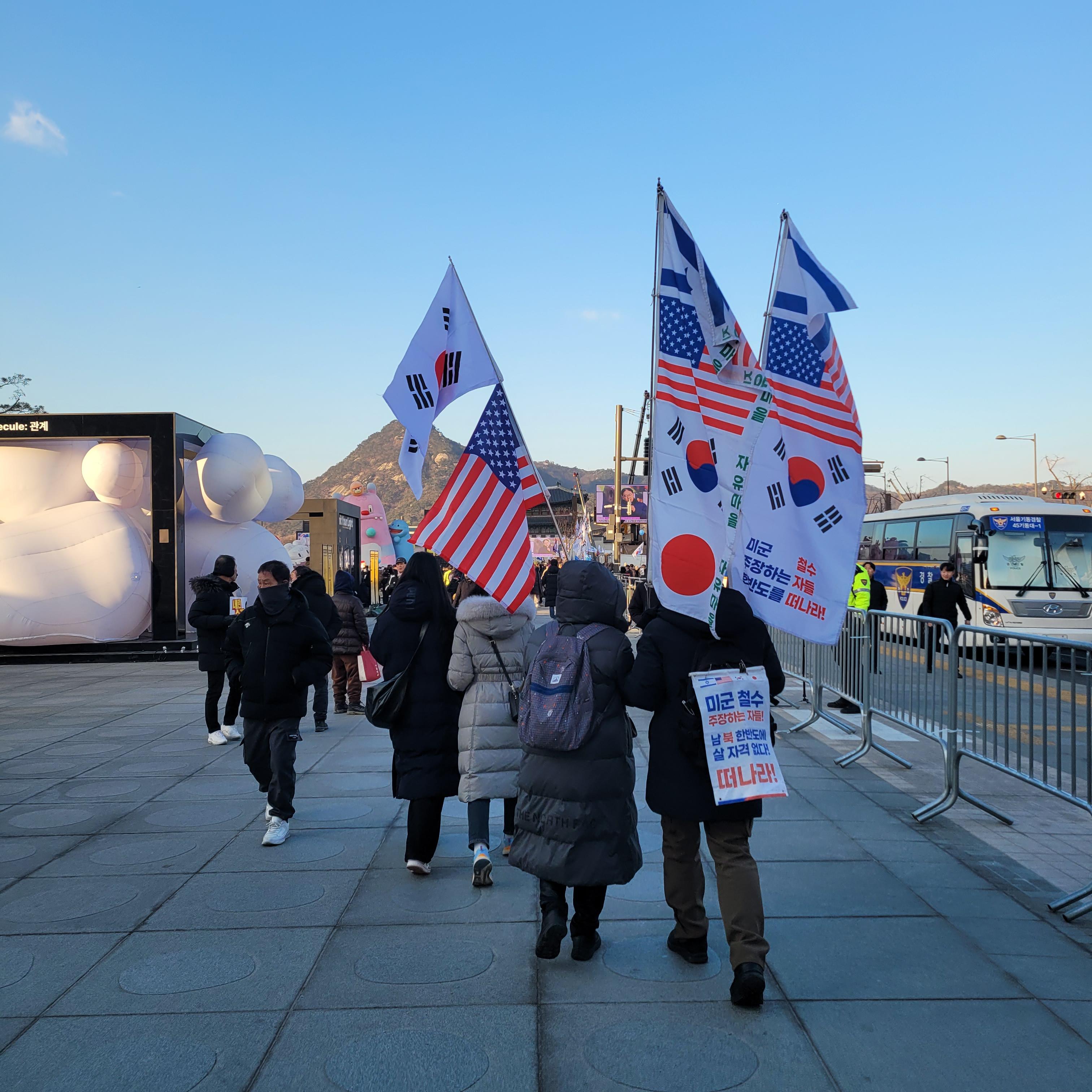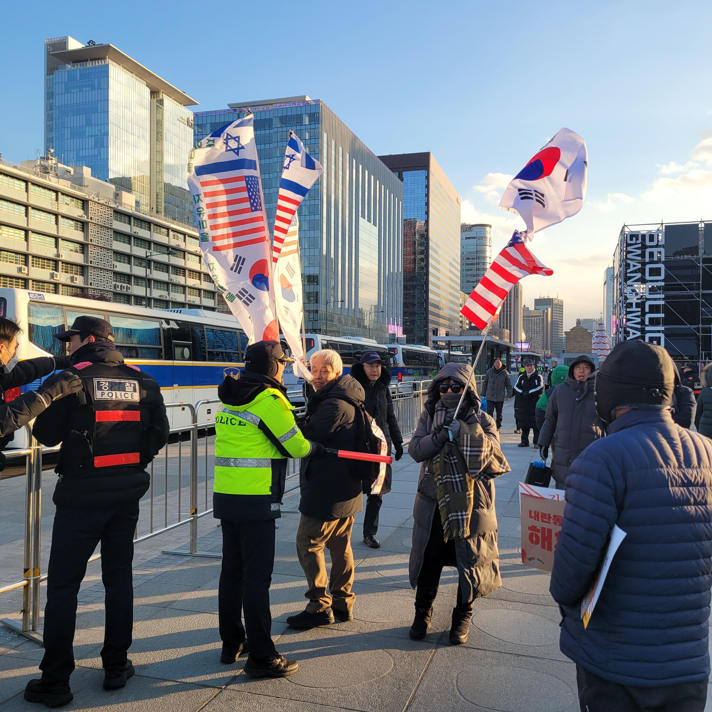 윤석열 탄핵 반대를 하는 보수단체들의 태극기집회가 한창이라 크리스마스 마켓은