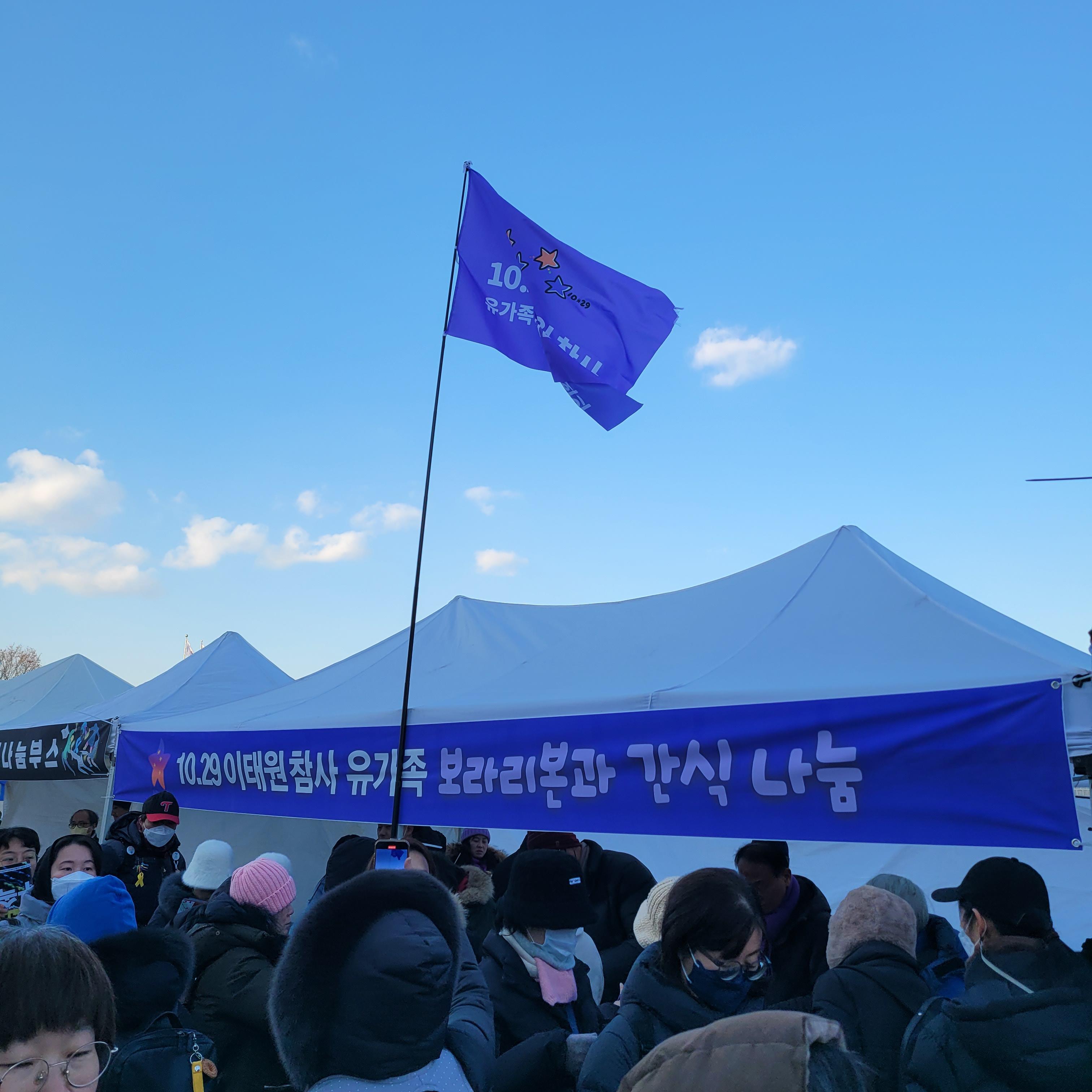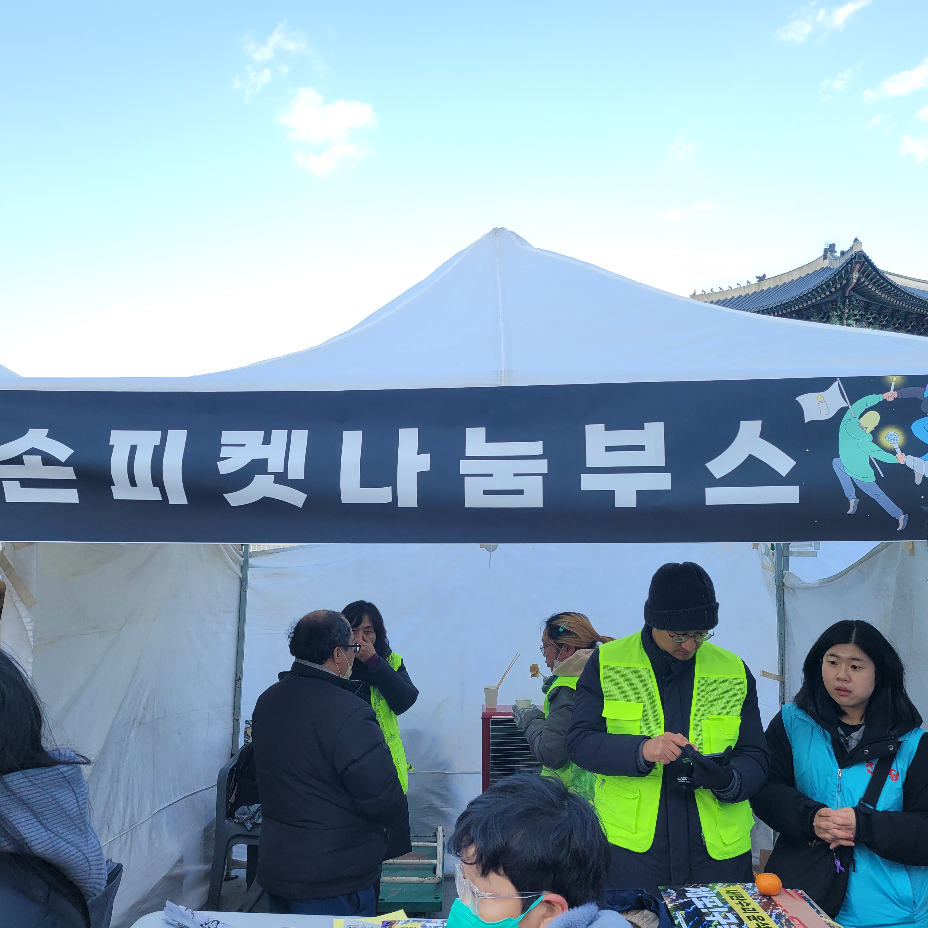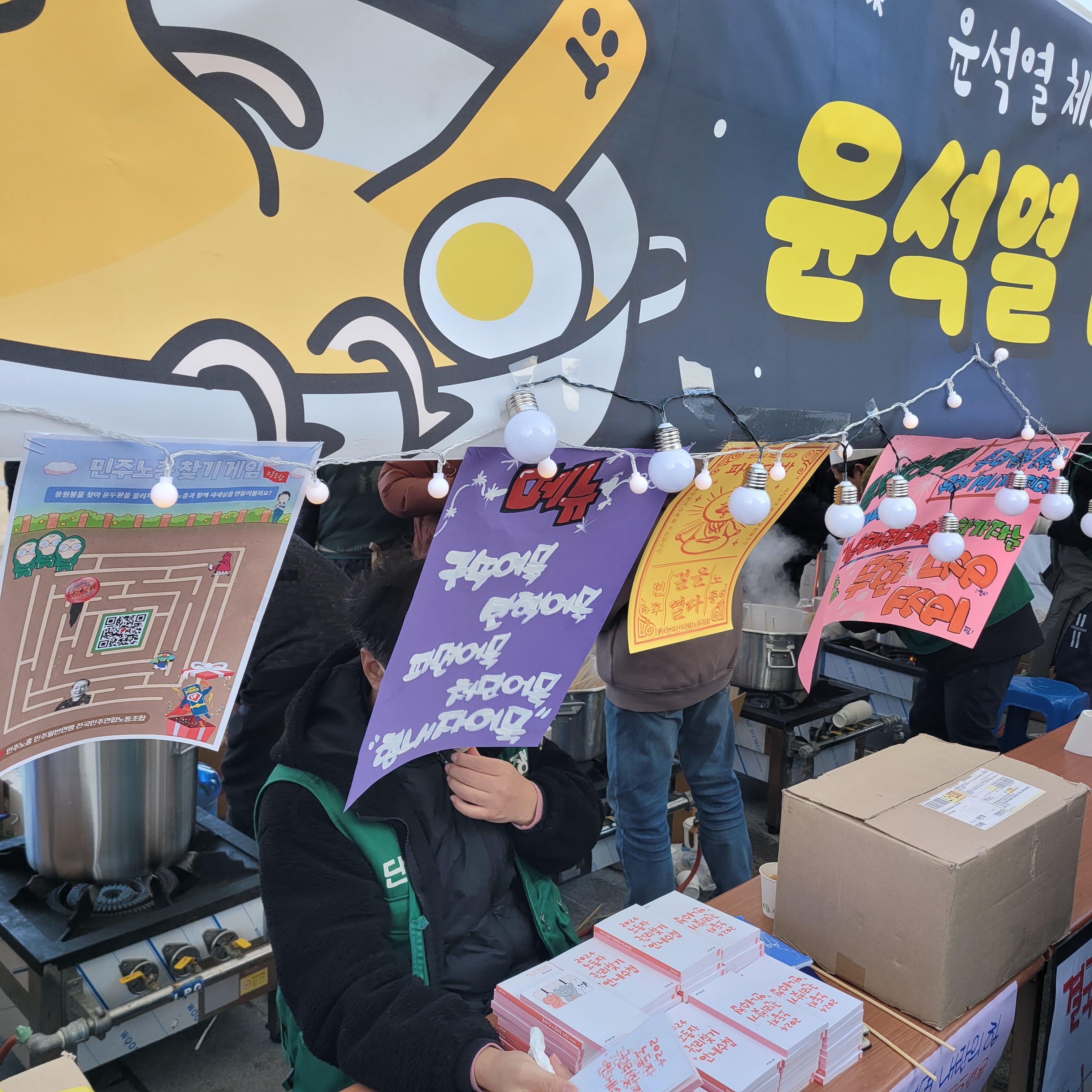 집회현장 곳곳을 구경하고 집회현장에서 제공하는 간식과 오뎅도 먹는 등 구경을
