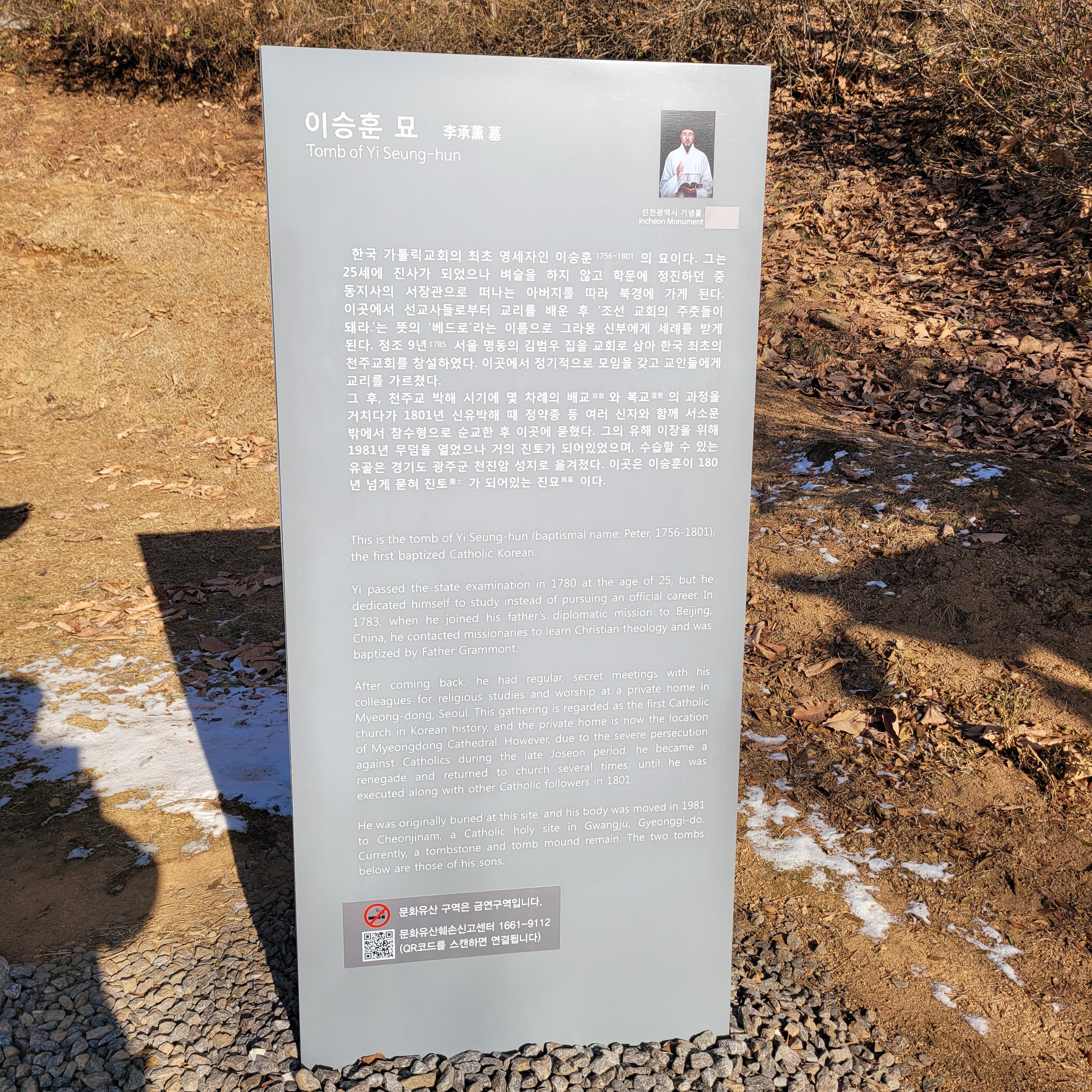 오늘은 지난 주말에 다녀왔던 이승훈 베드로 성지 기념관과 이승훈 베드로 묘지