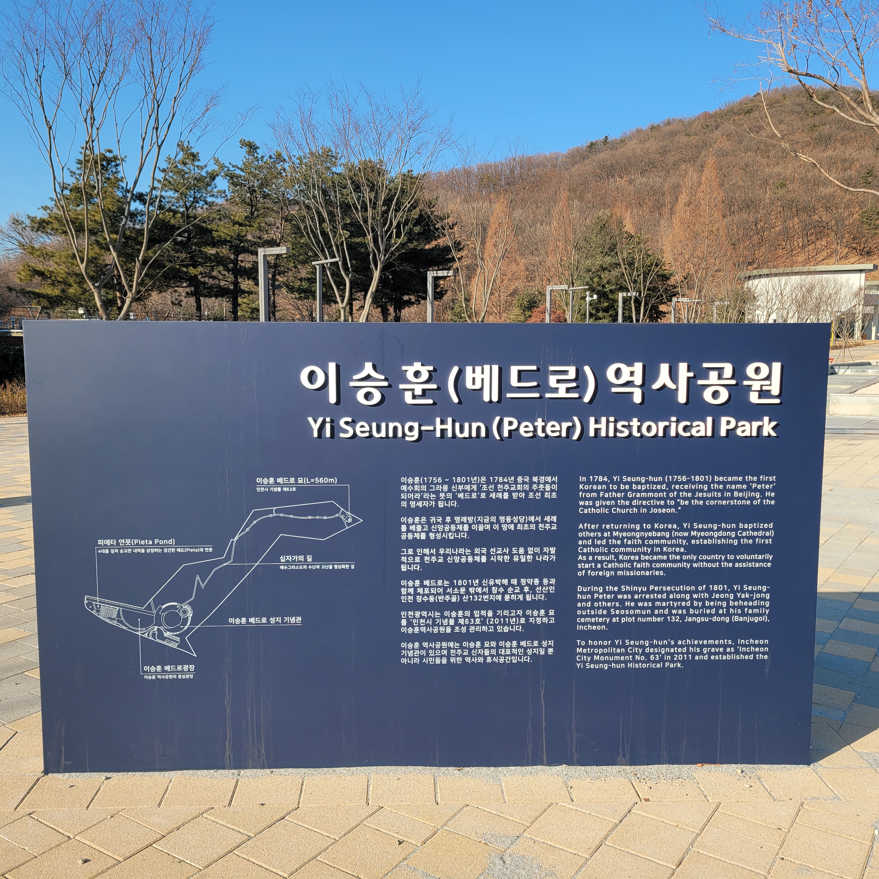 십자가의 길을 가면서 예수님의 십자가길 관련 비석들도 구경하고 이승훈 베드로