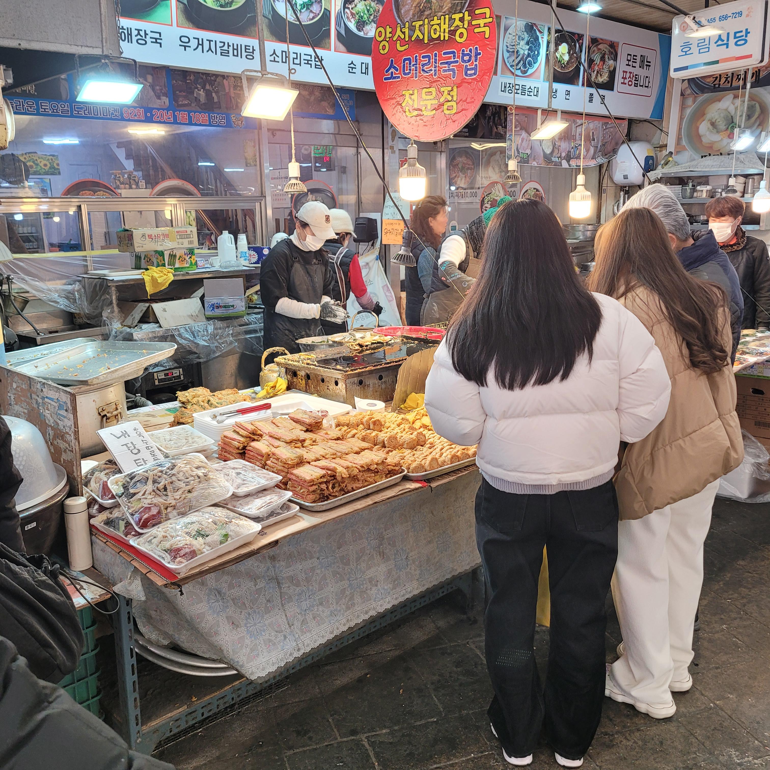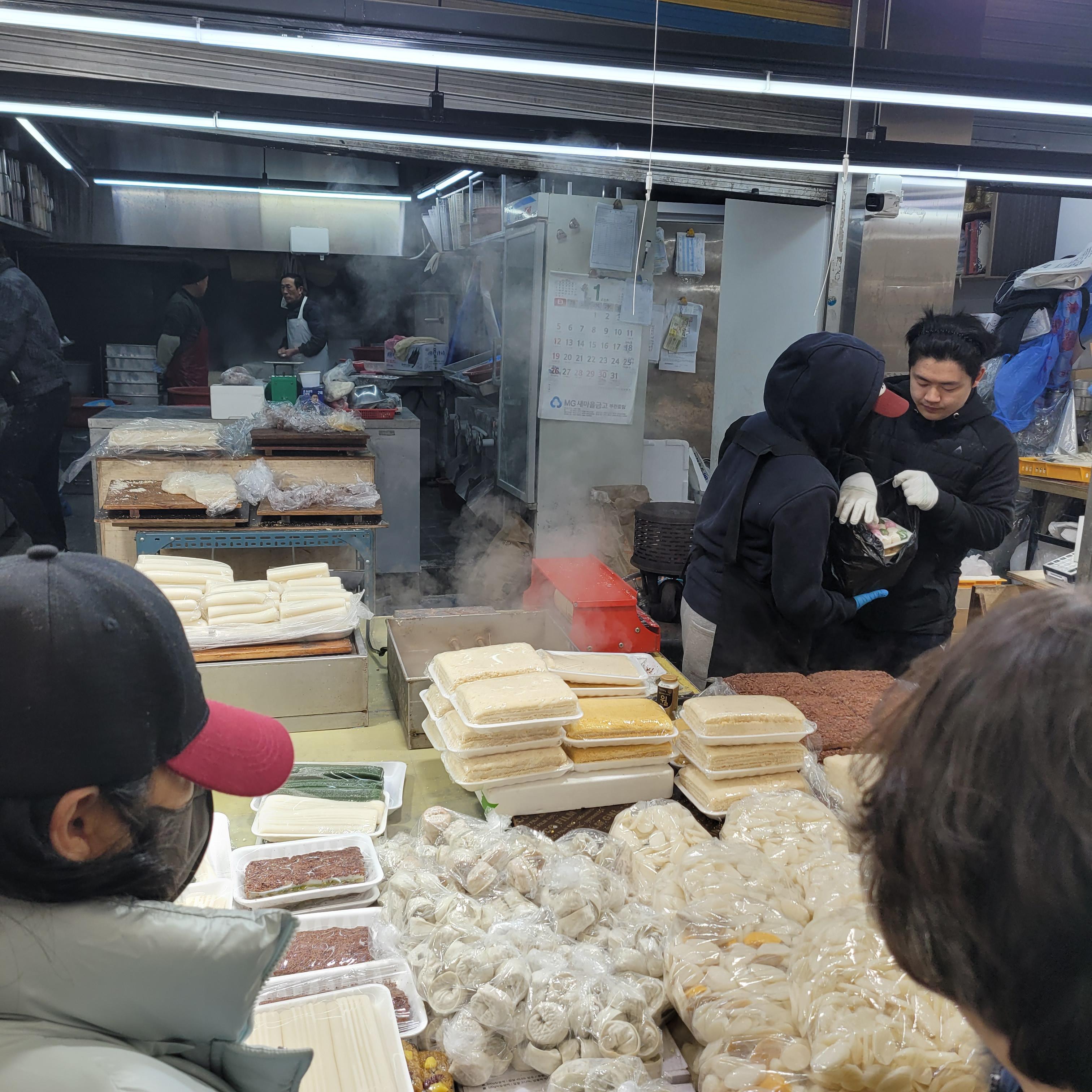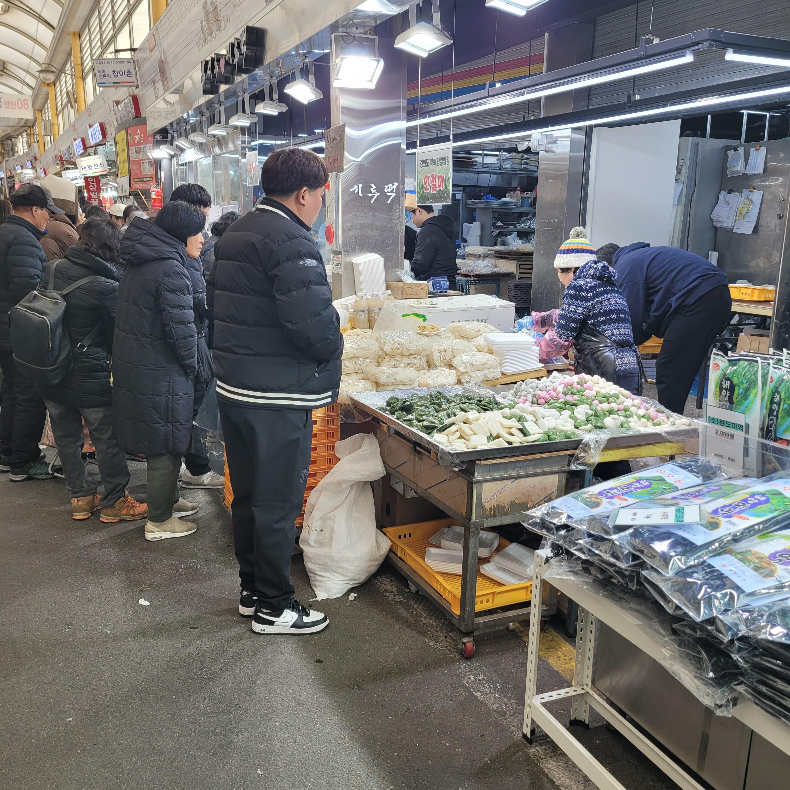 떡국떡과 만두를 파는 곳도 있었고 시장 안 고깃집들도 명절 주문