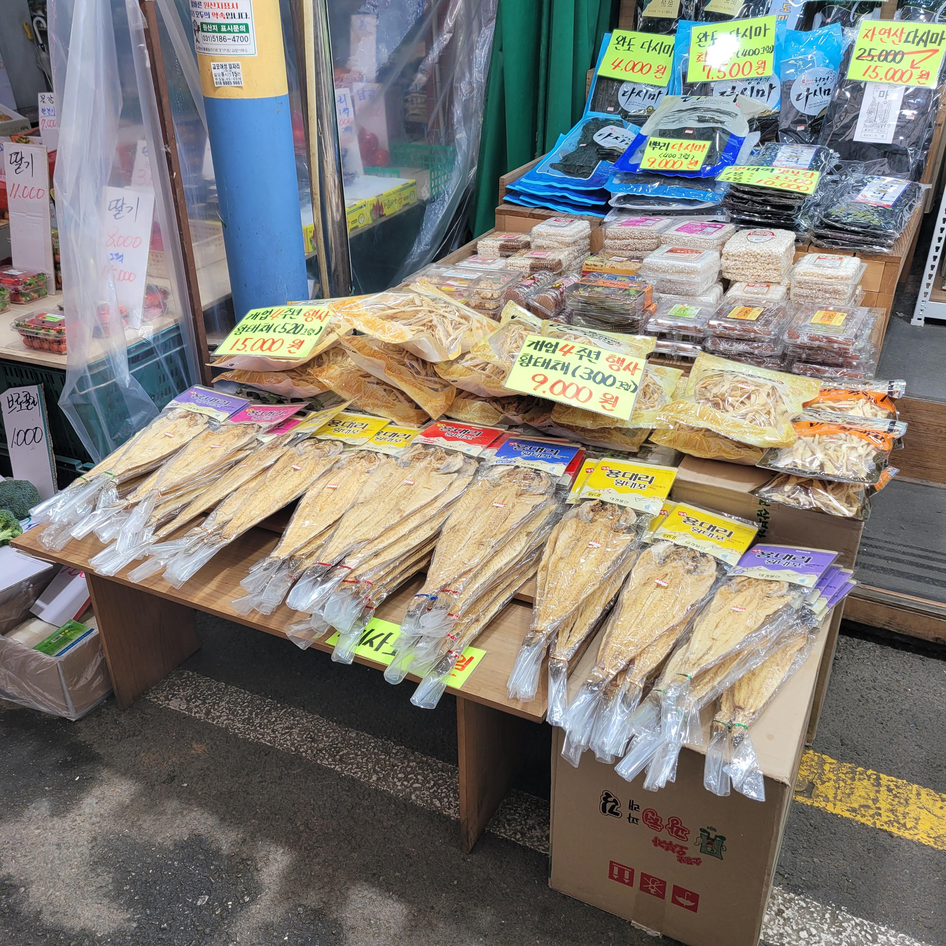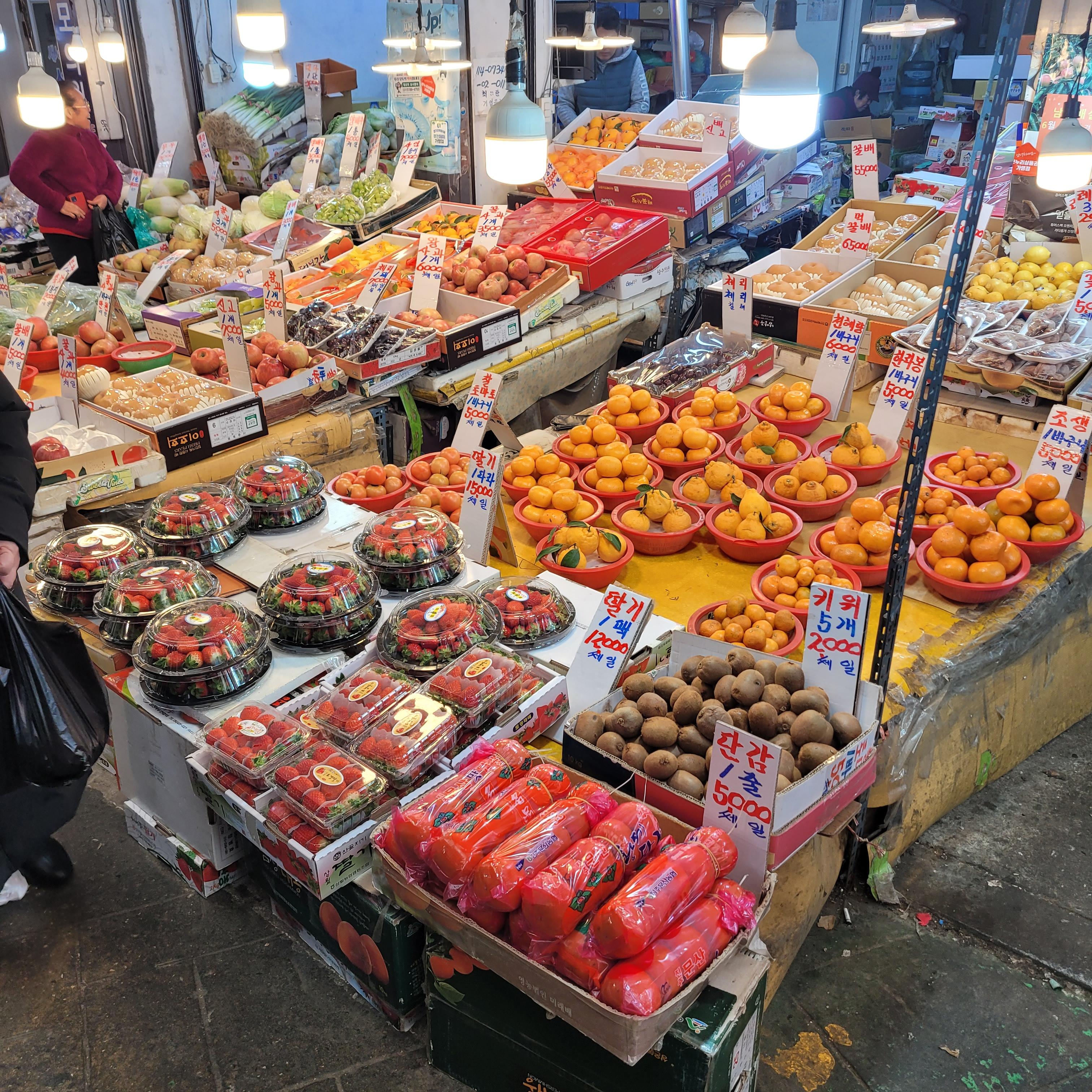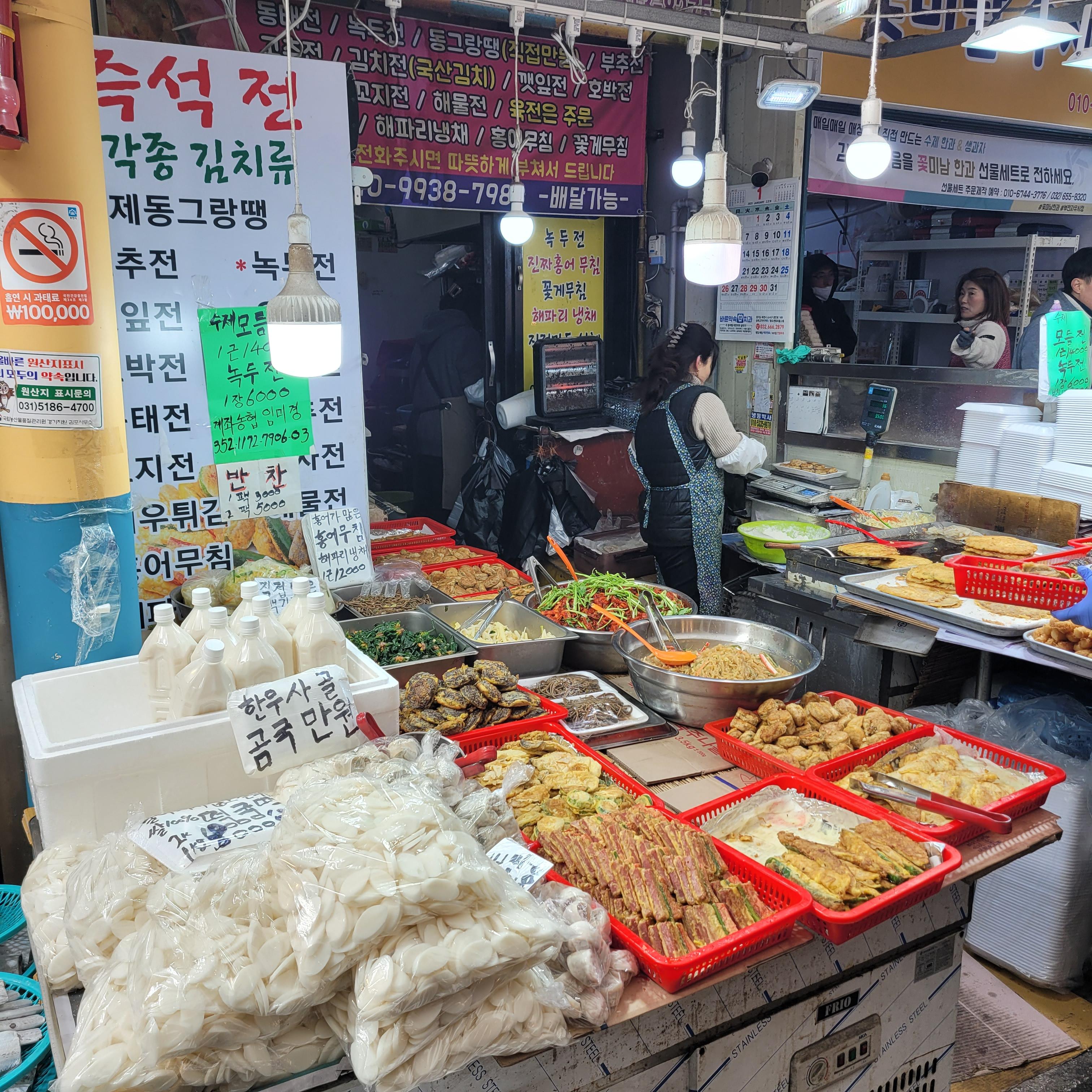 명절 차례지낼 전과 과일들을 파는 곳들도 있었고 설날에 먹을