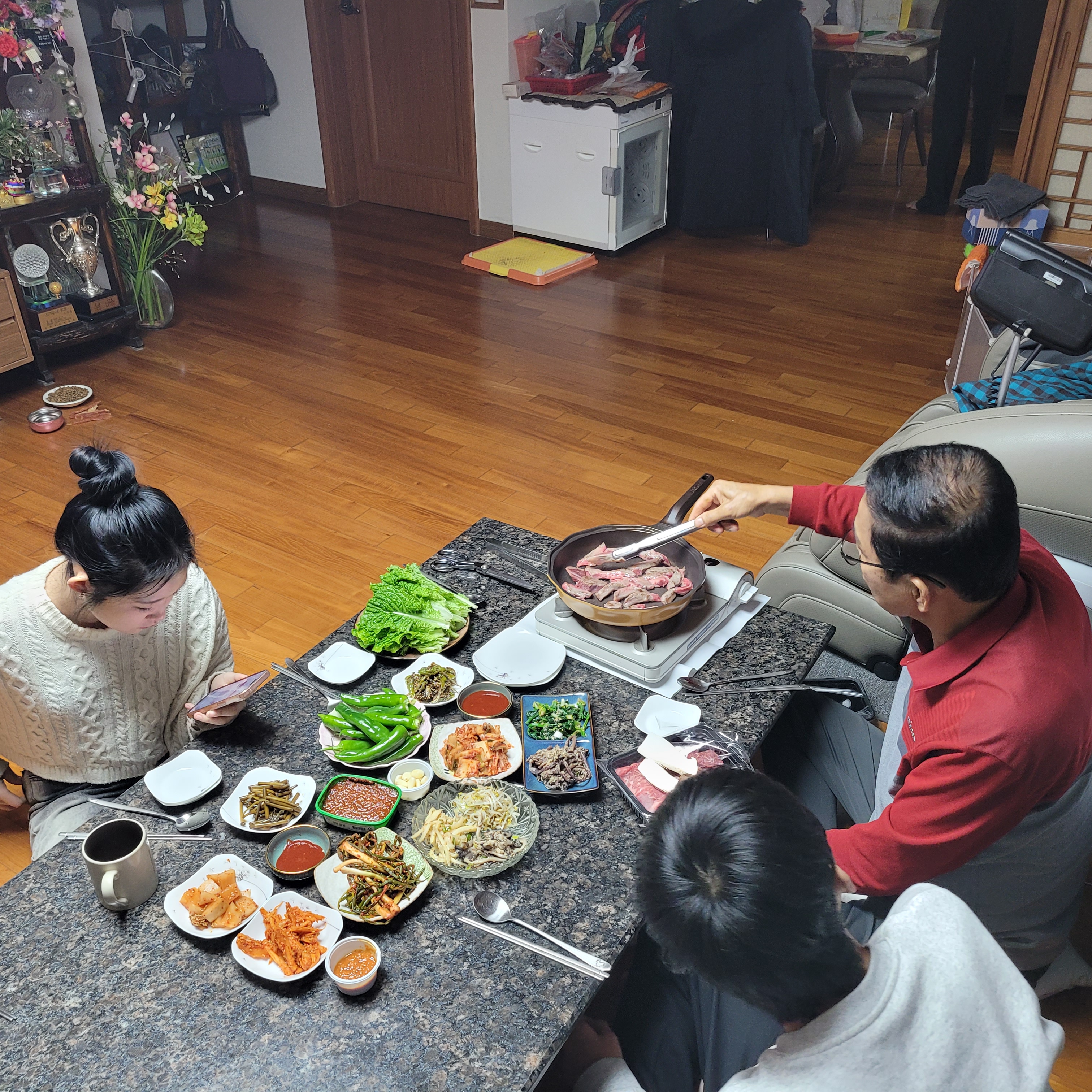 다같이 아버지 생일축하도 해드리고 맛있는 저녁도 같이 먹는 등 즐거운