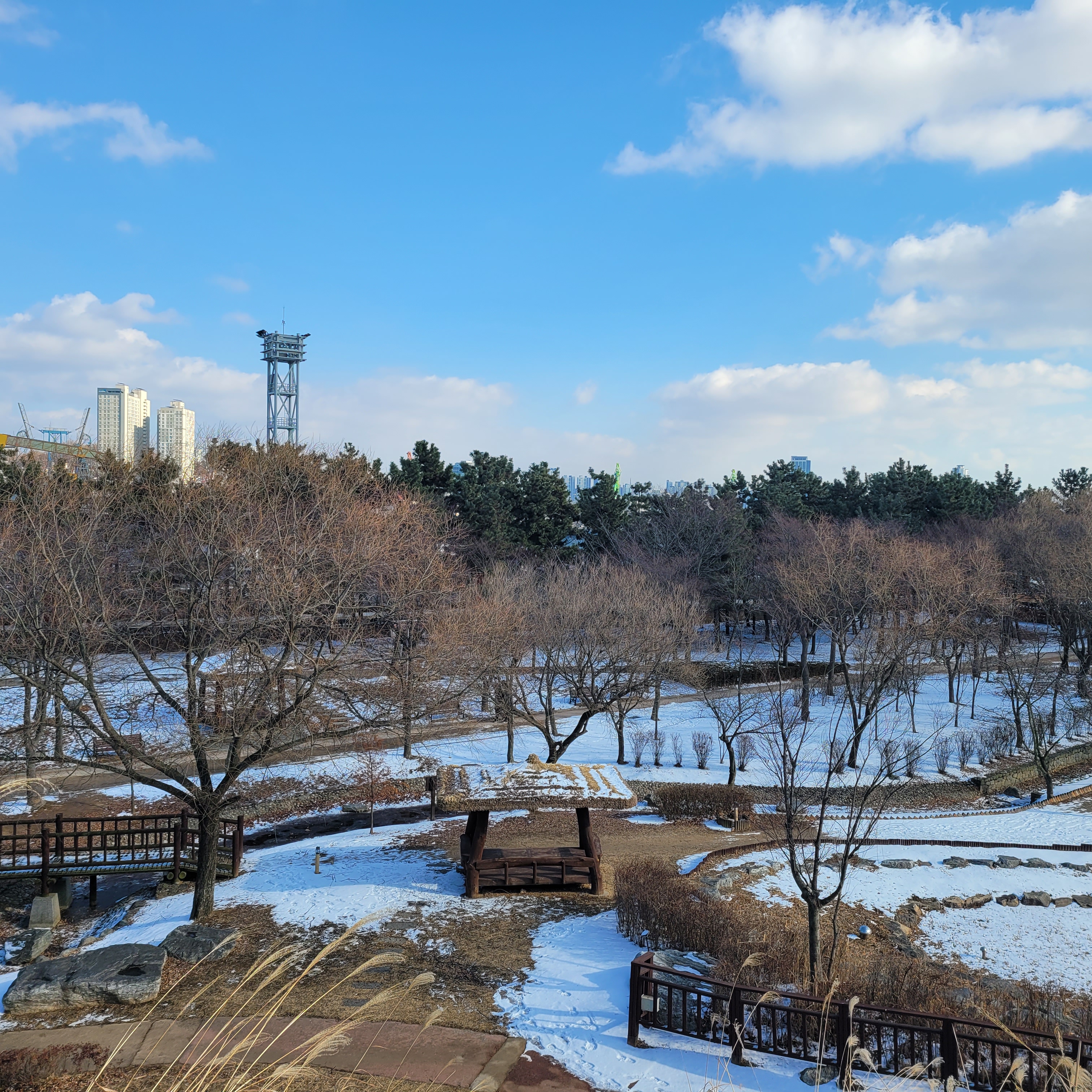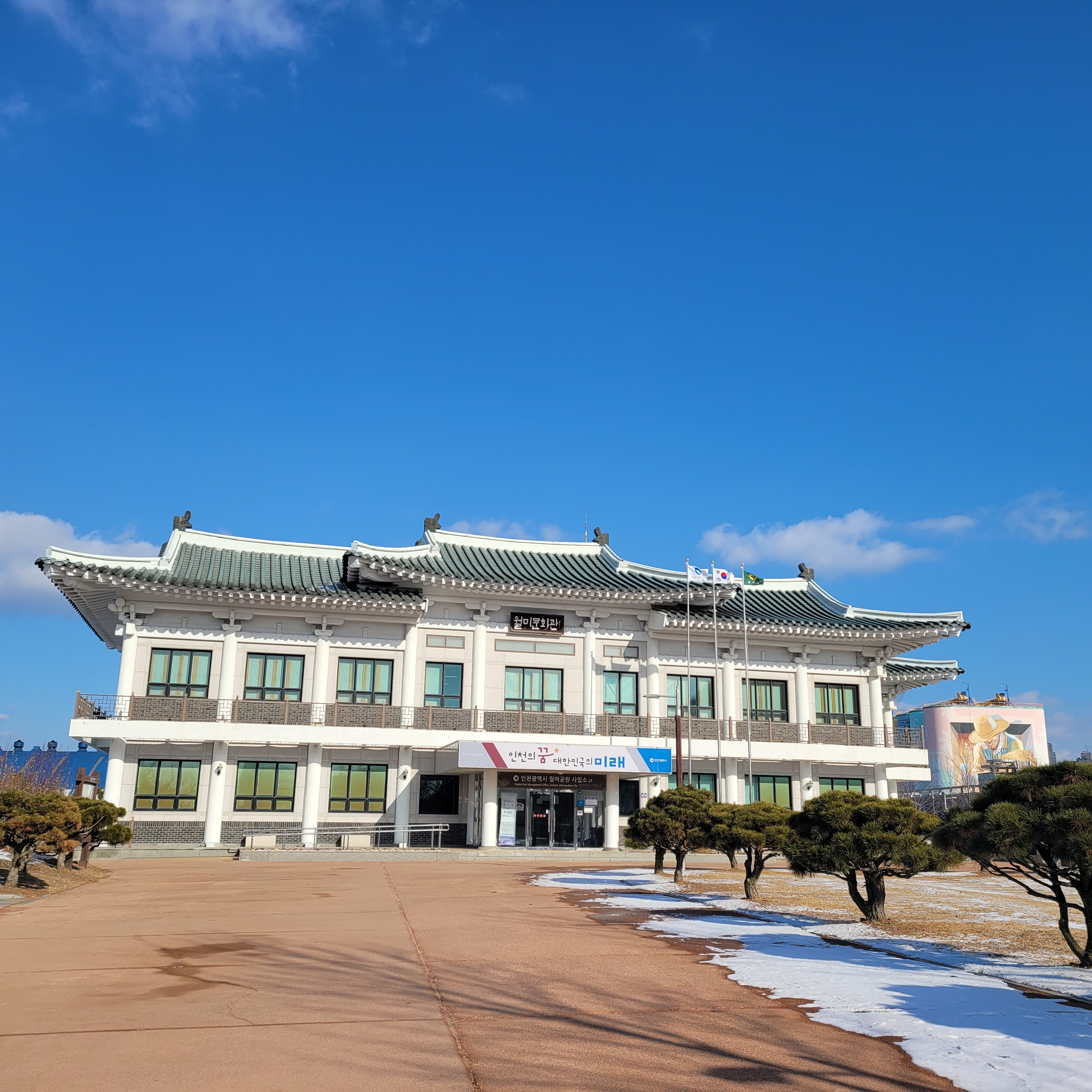 눈이 쌓인 공원 풍경이 아름다웠네요. 월미역사관도 나름 볼만 했고요.