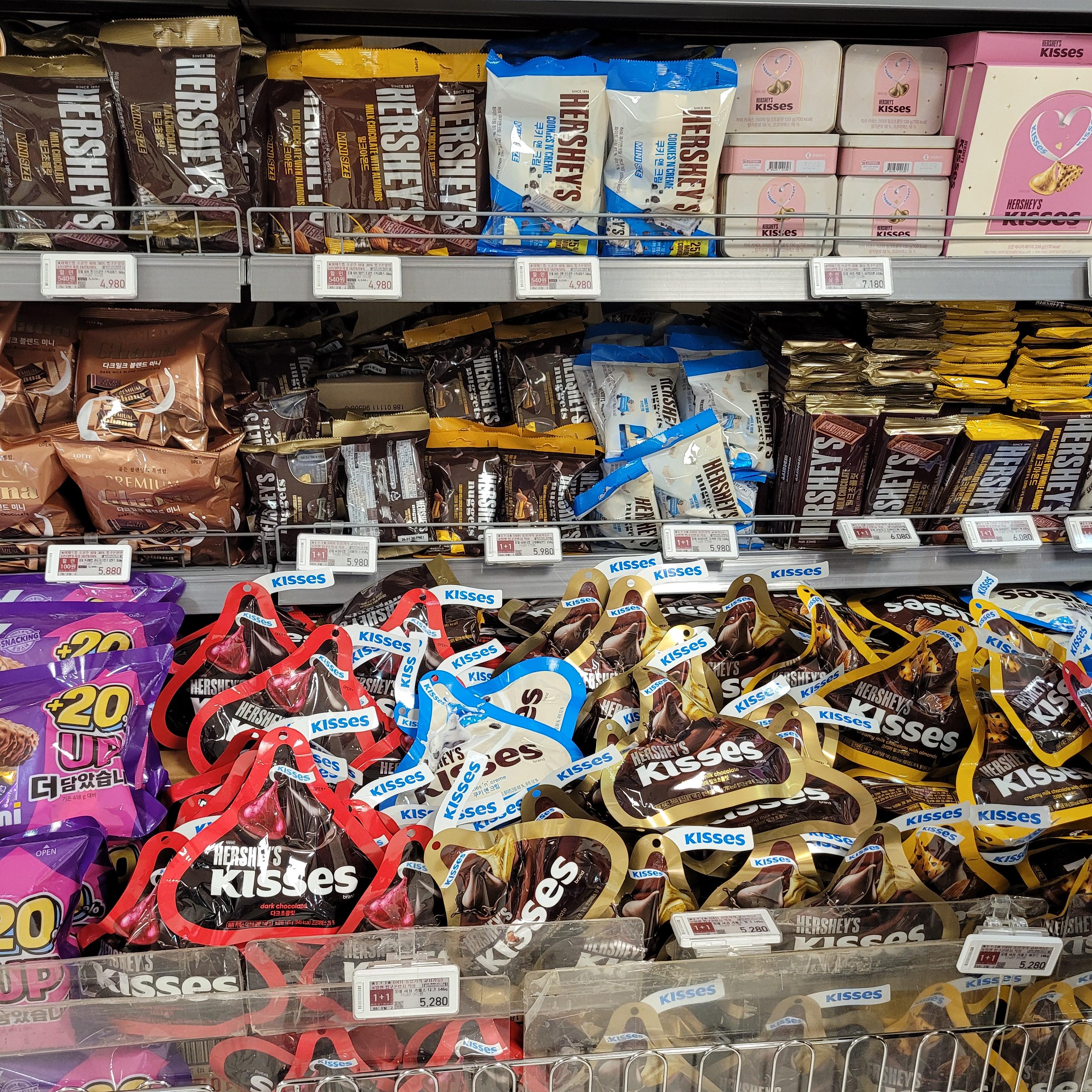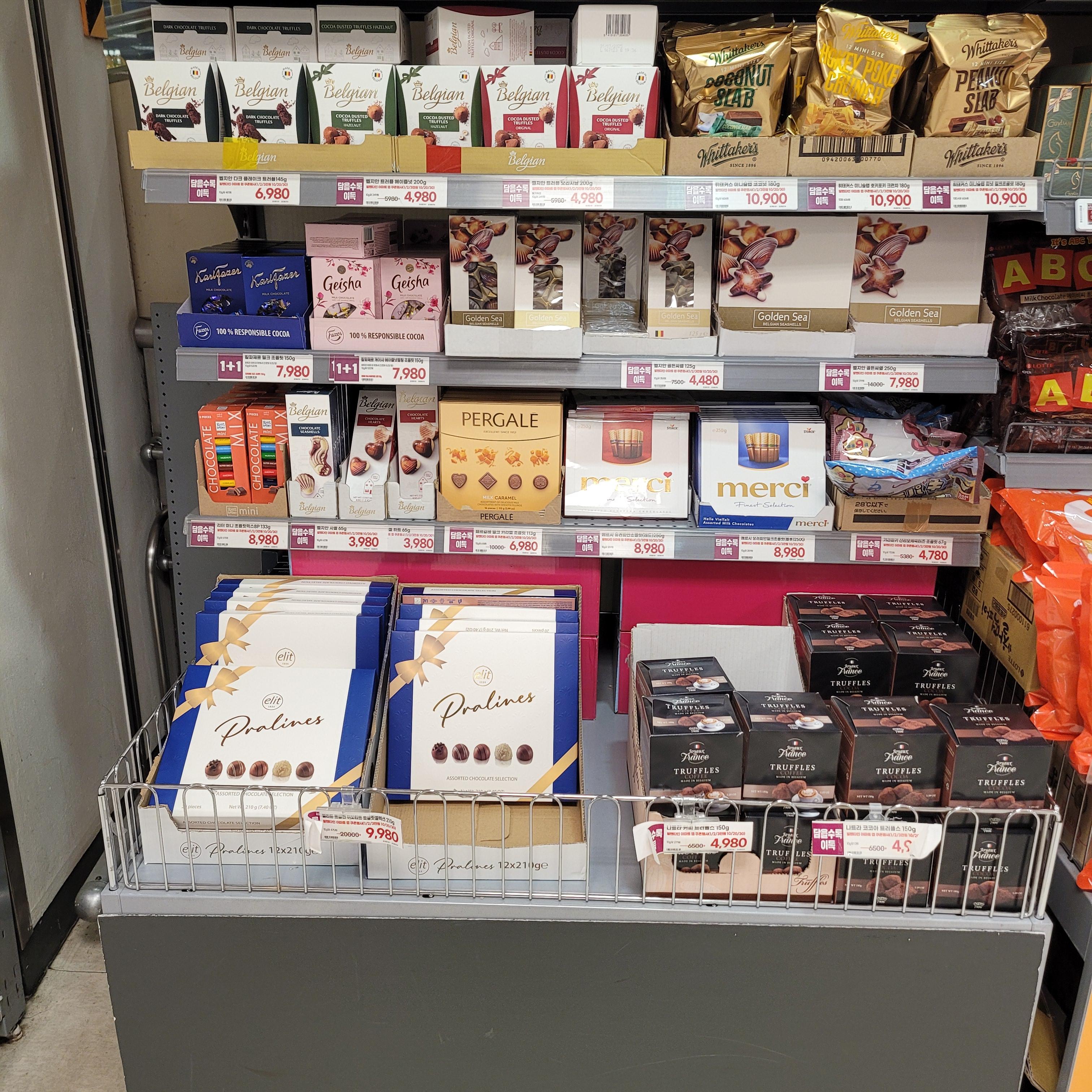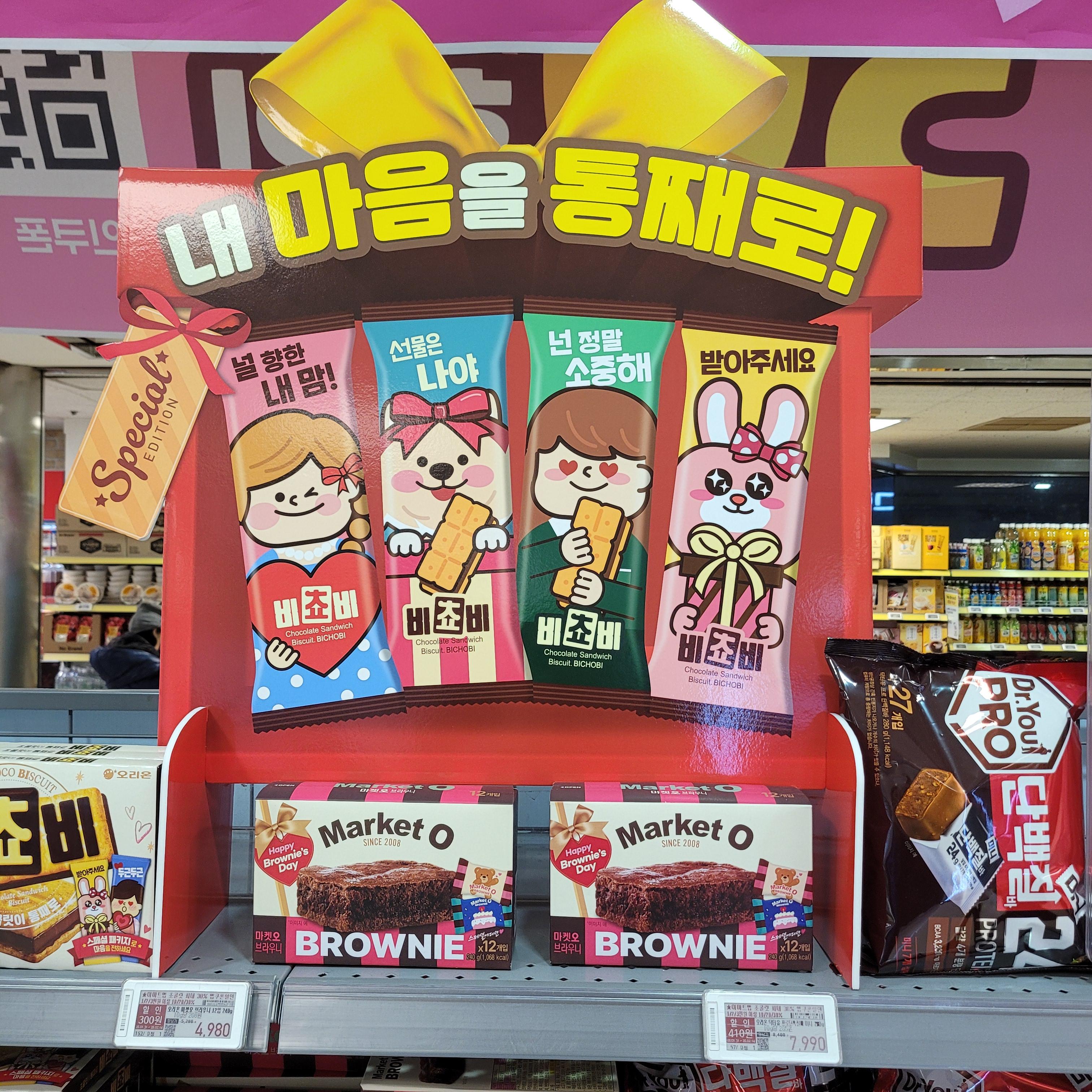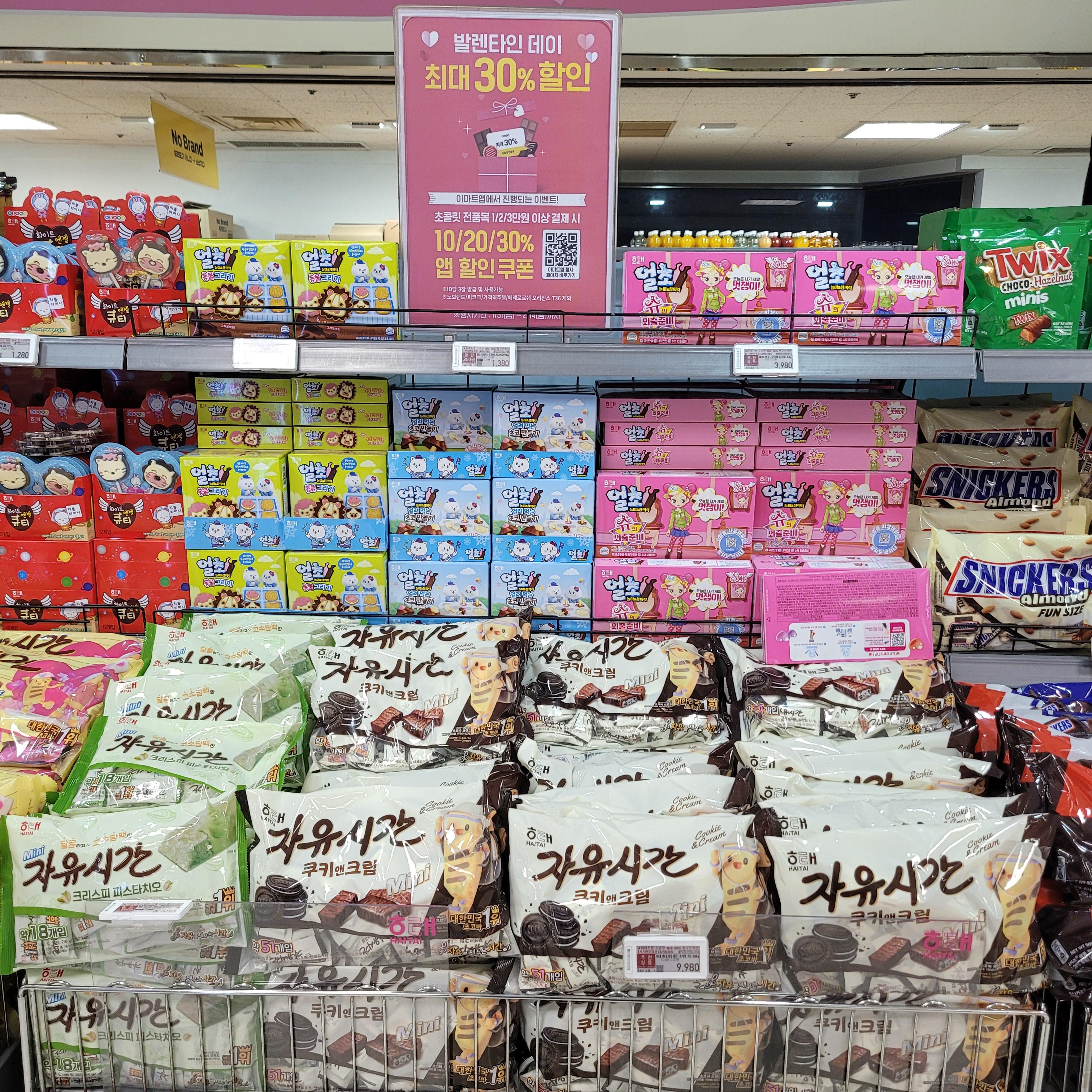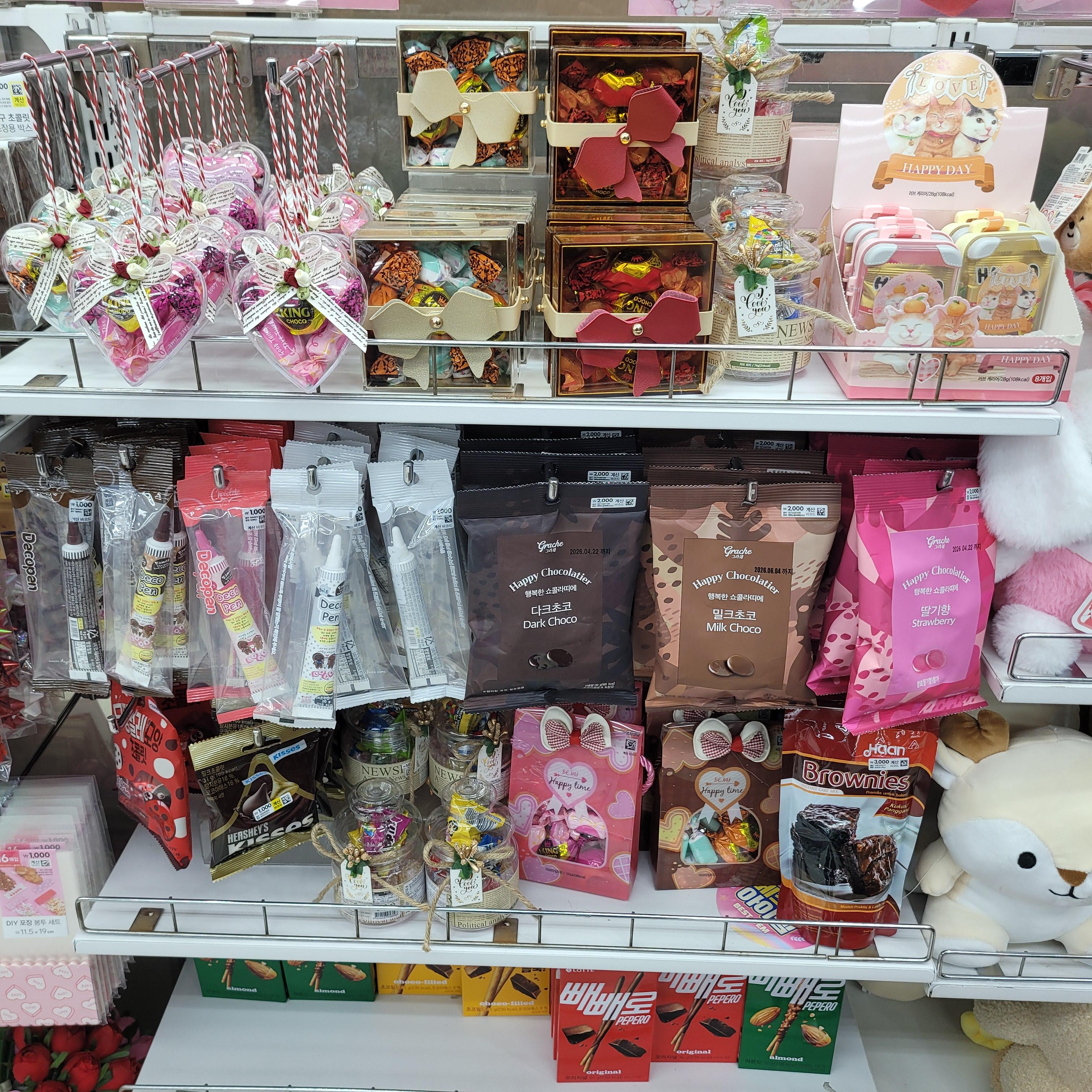 발렌타인데이 관련 초콜릿들이 진열되었더라고요 ㅎㅎ
