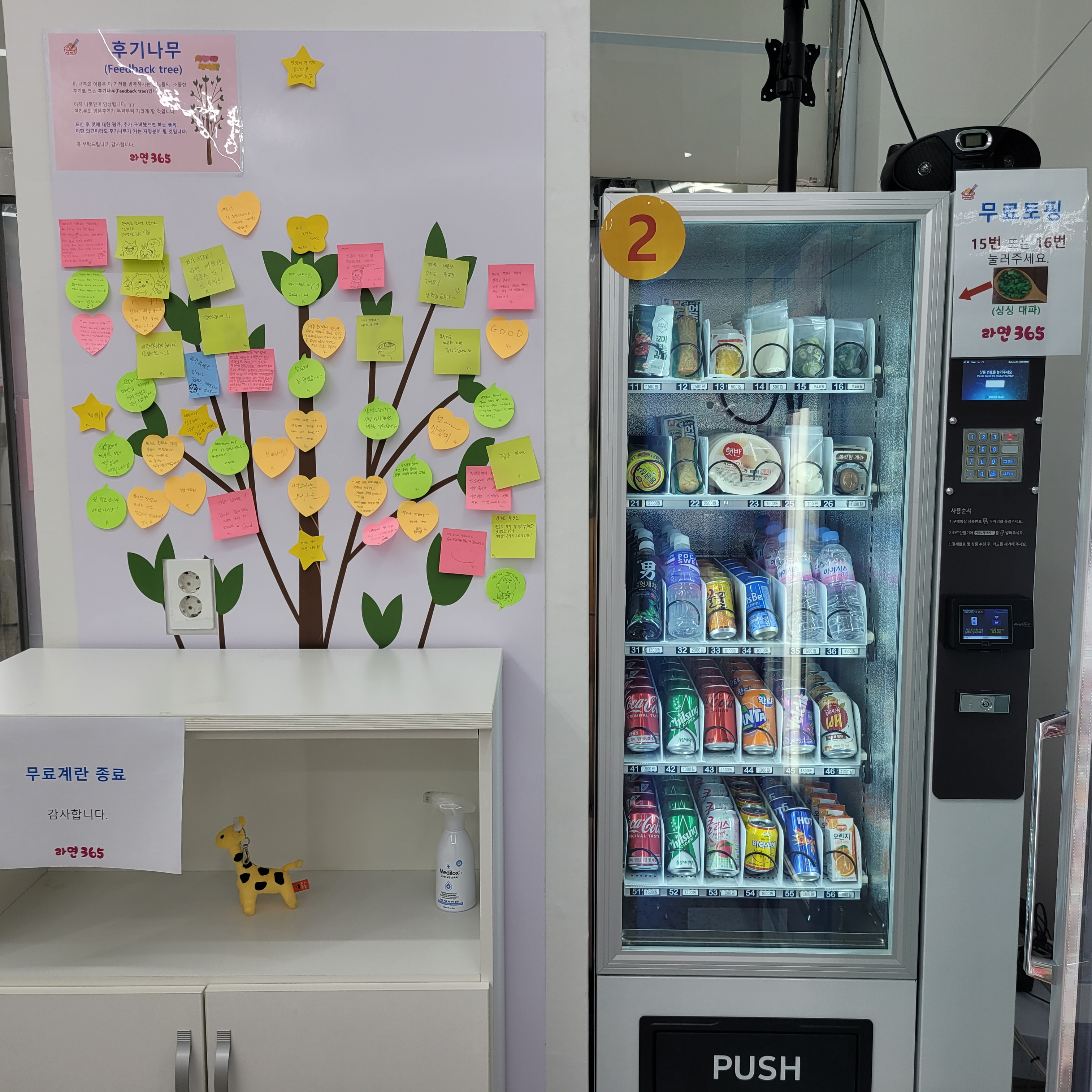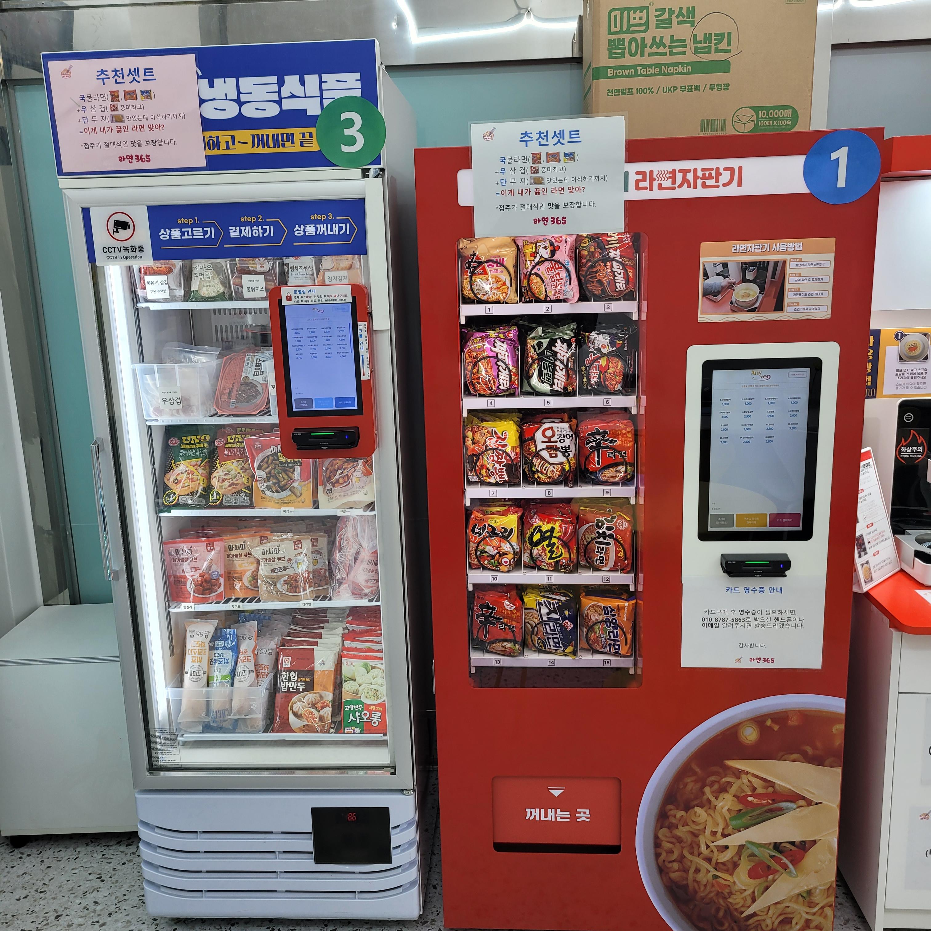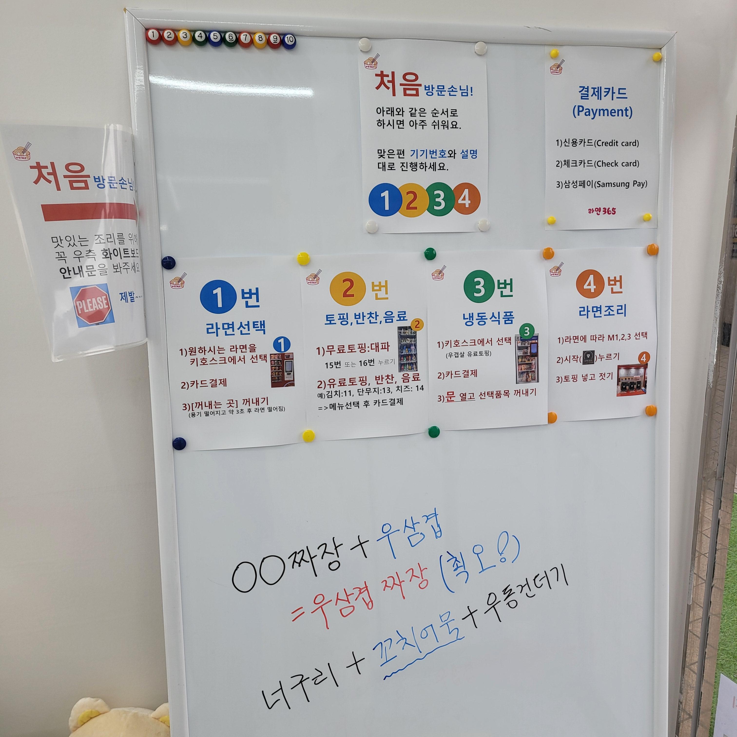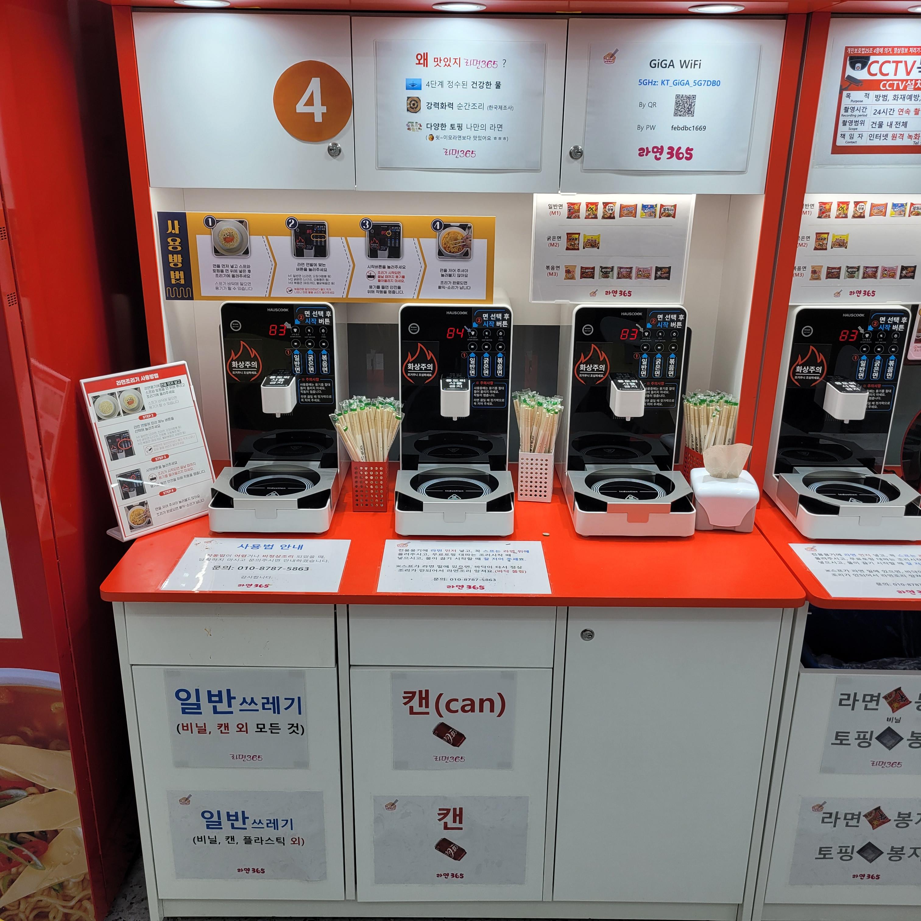 이곳에서는 원하는 라면을 키오스크에서 선택하고 결재한 뒤에