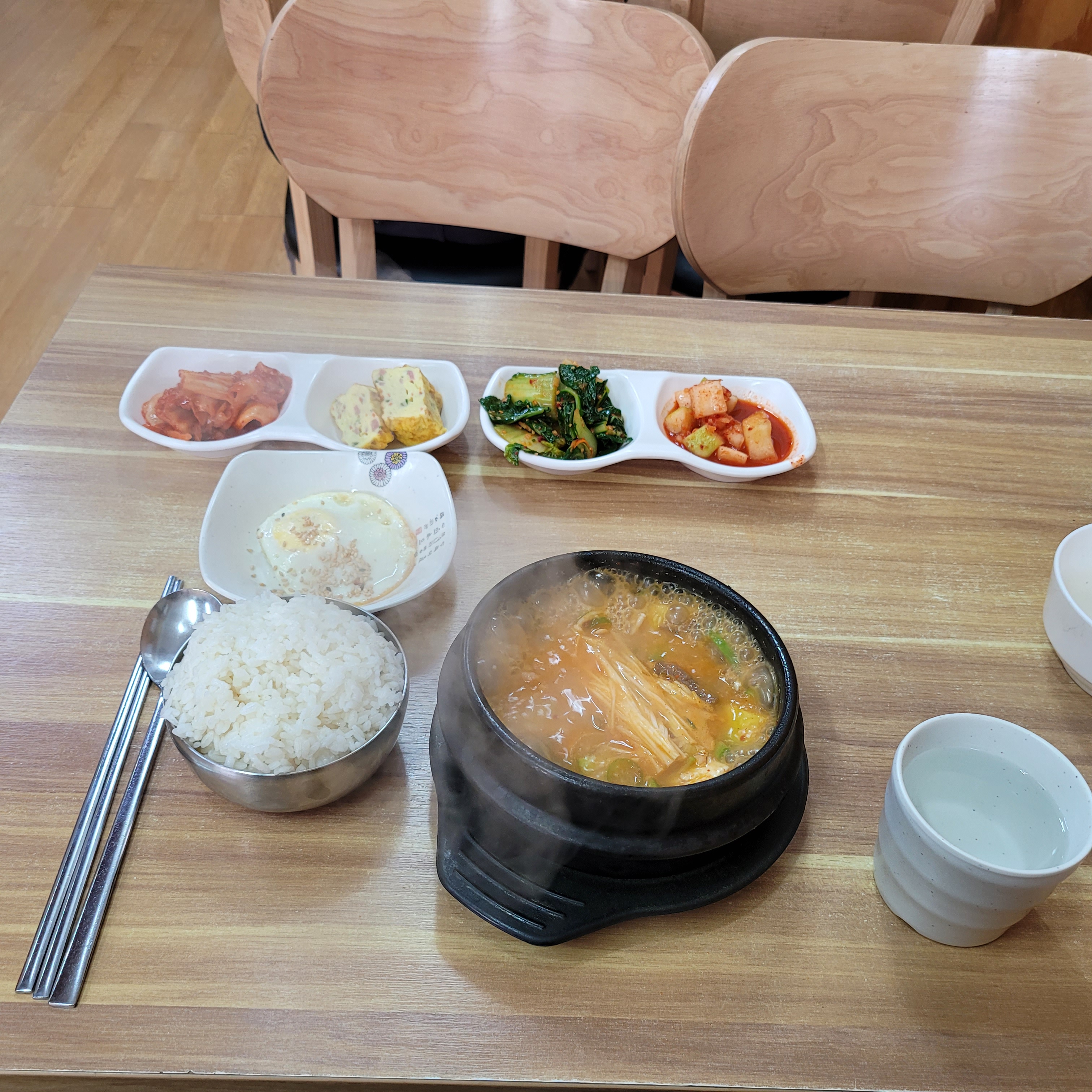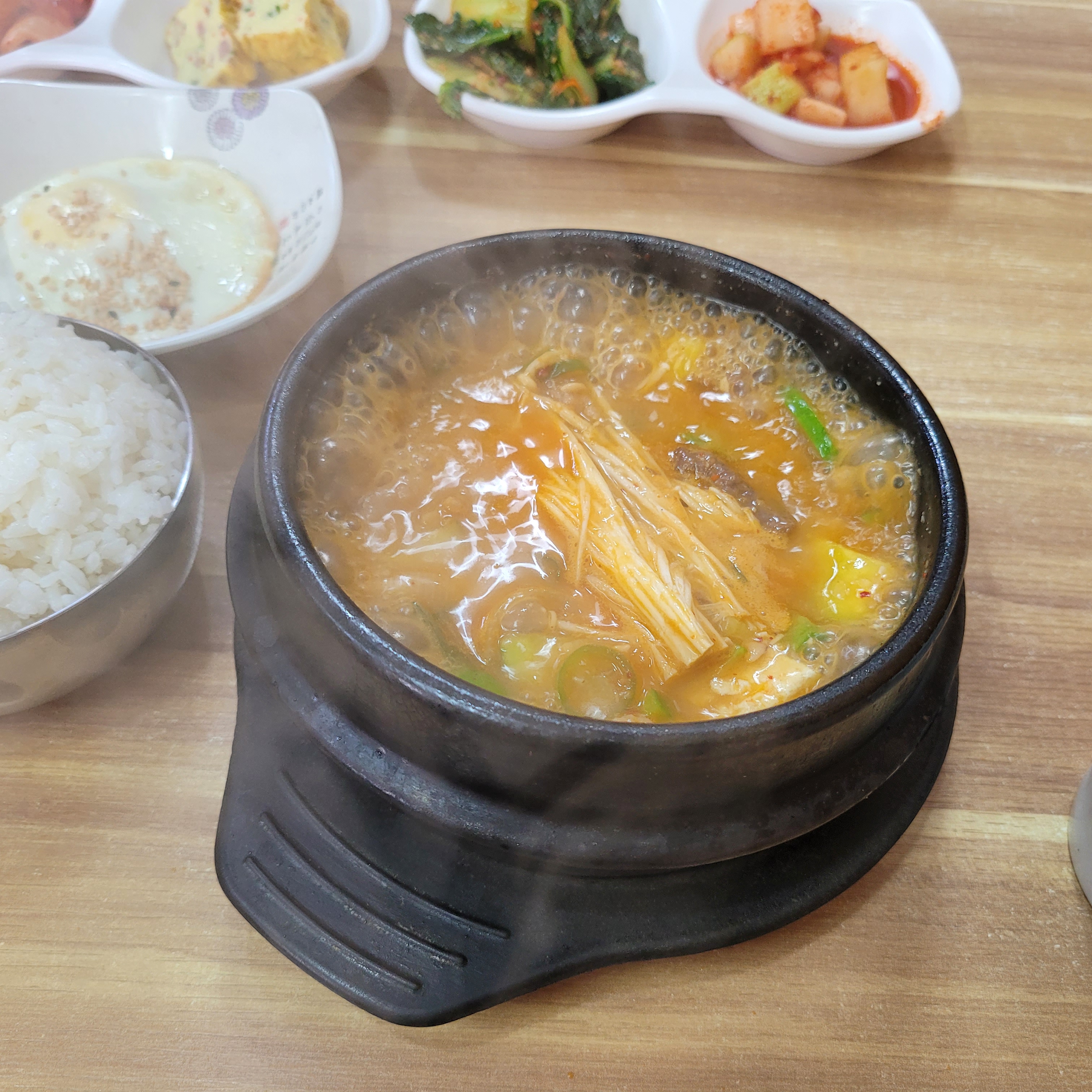 어쨌거나 출근을 한 뒤에 점심에는 부자김밥에서 차돌된장찌개를 먹었습니다.