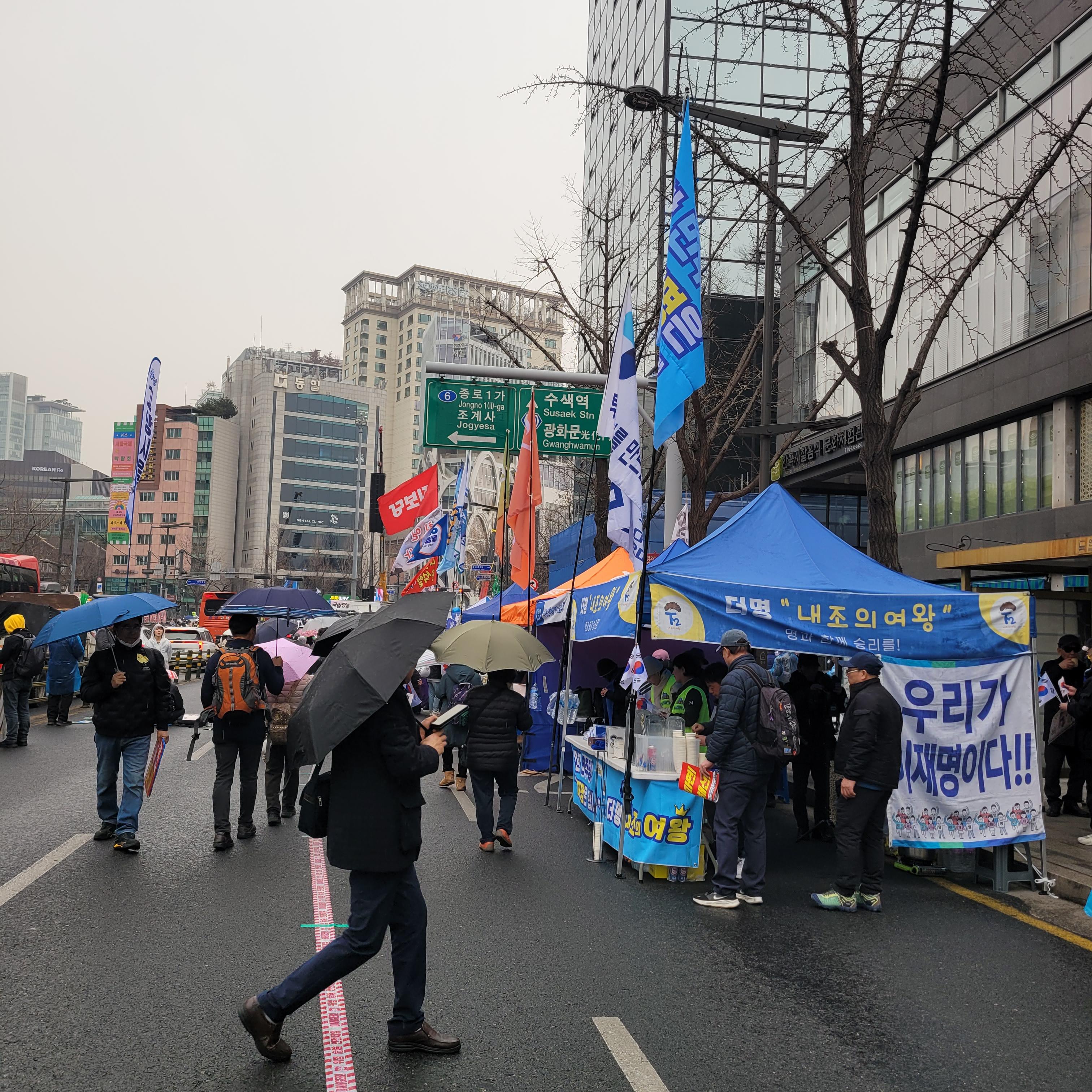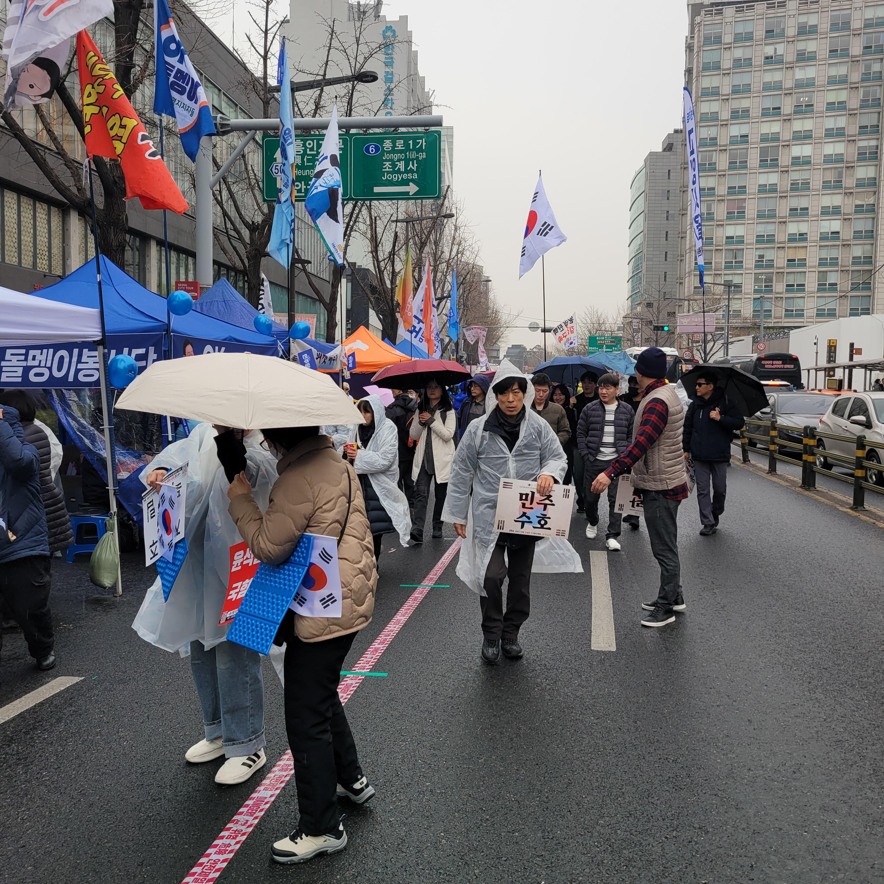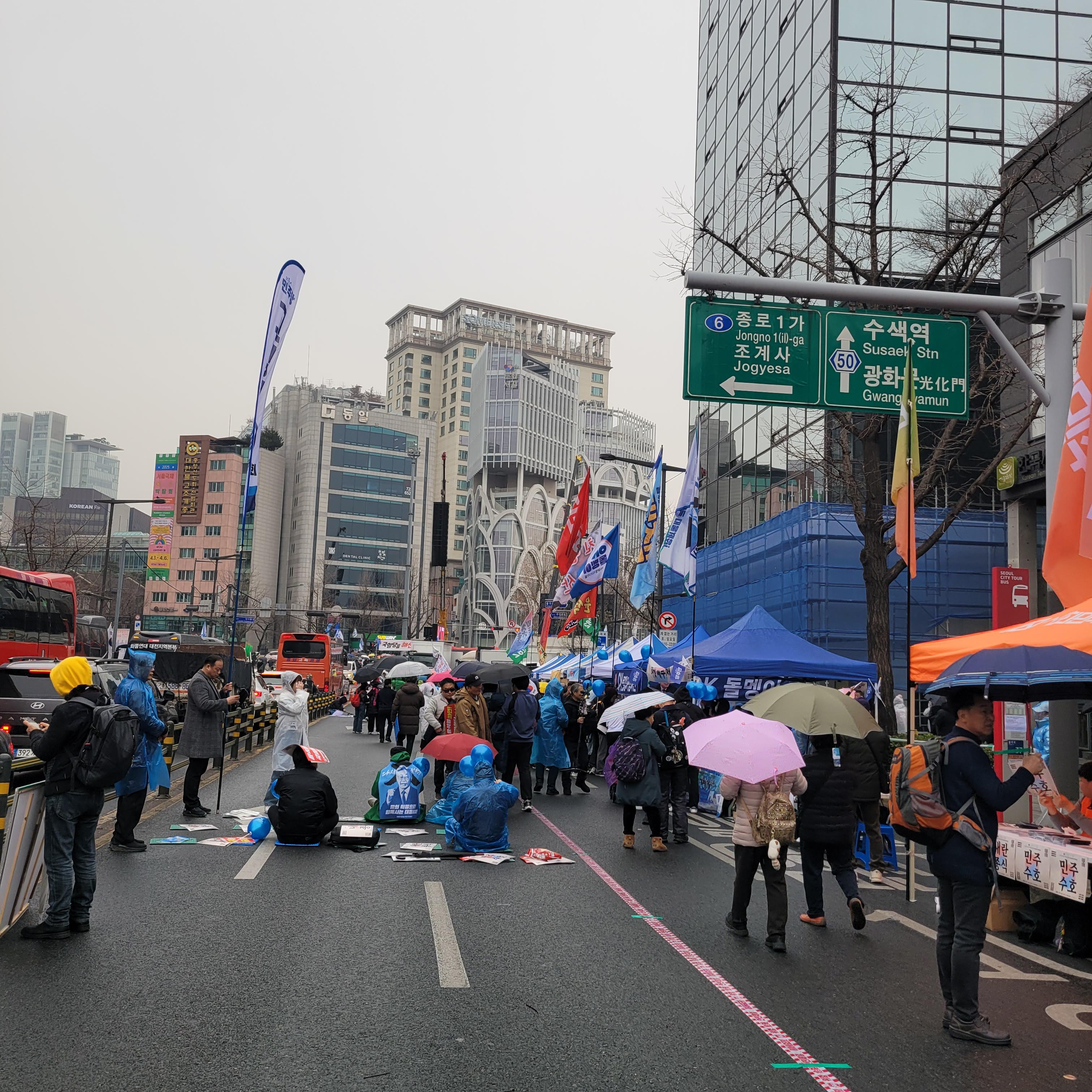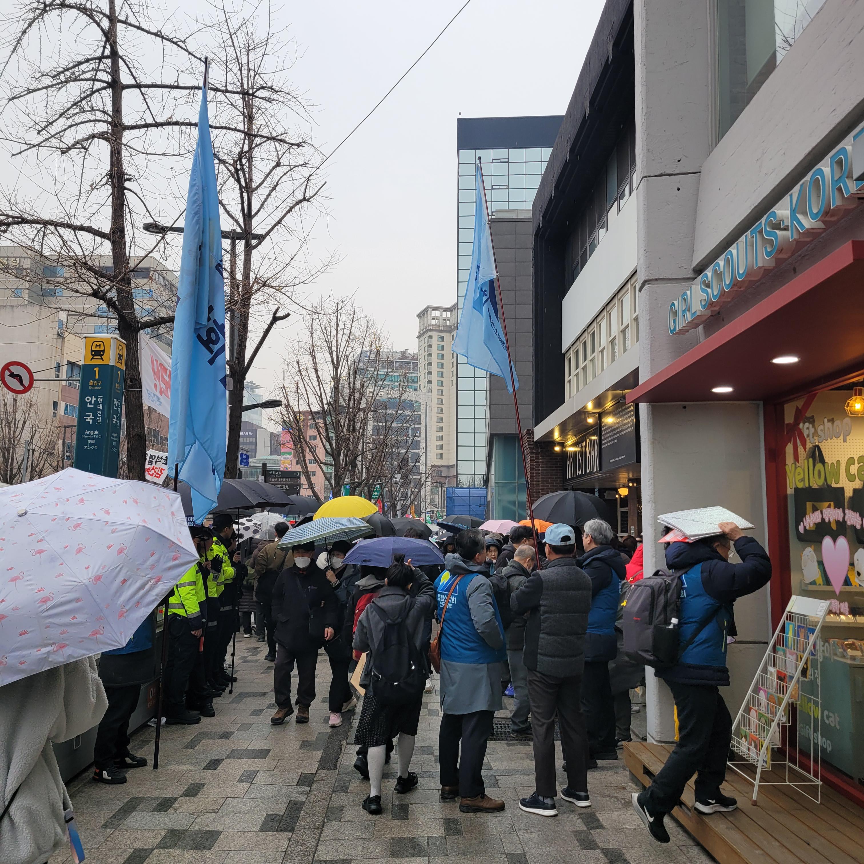 안국역에서 내려서 집회현장 갔을 때에는 비가 조금씩 내렸다 말았다를