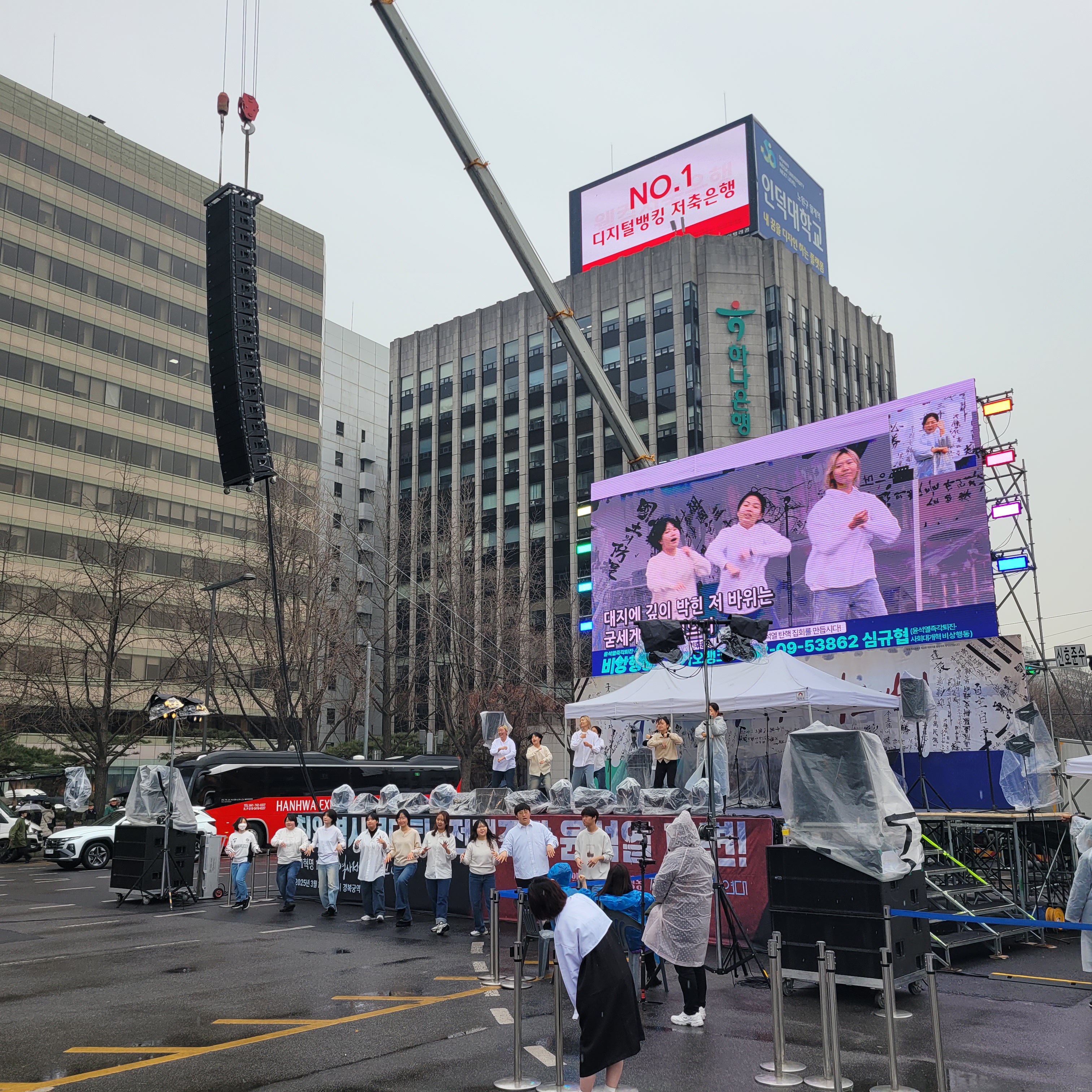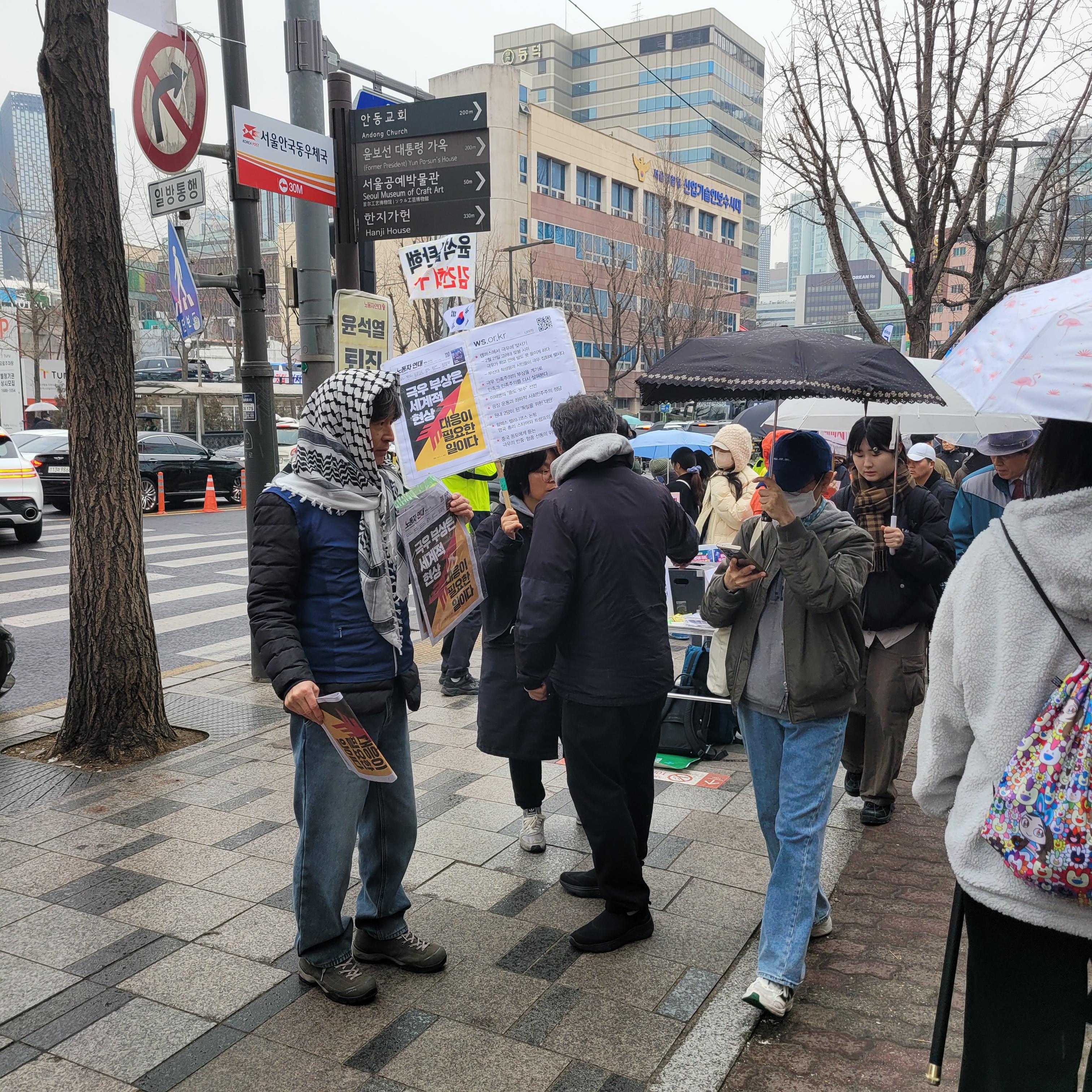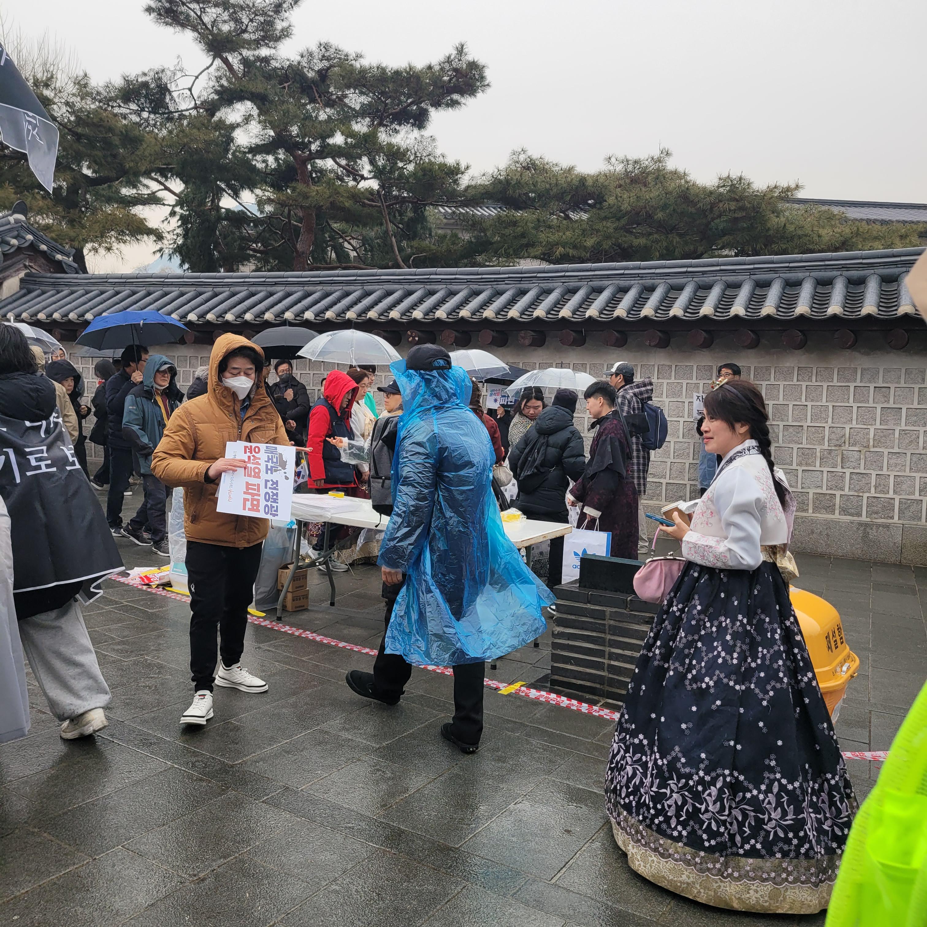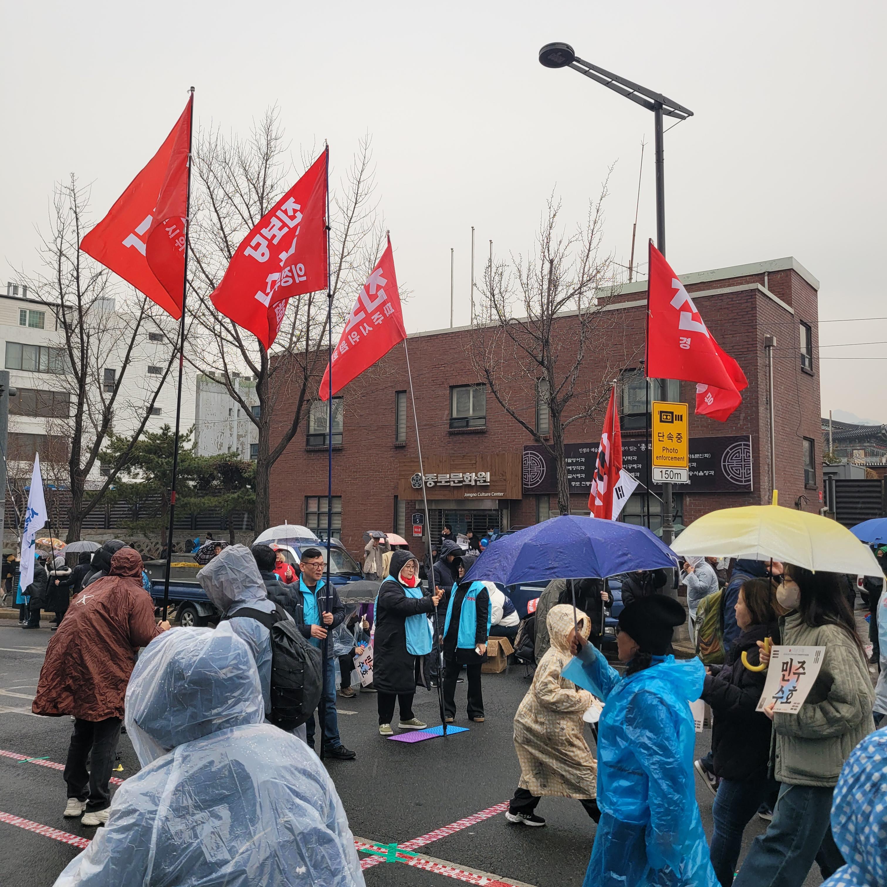 안국역에서 내려서 집회현장 갔을 때에는 비가 조금씩 내렸다 말았다를