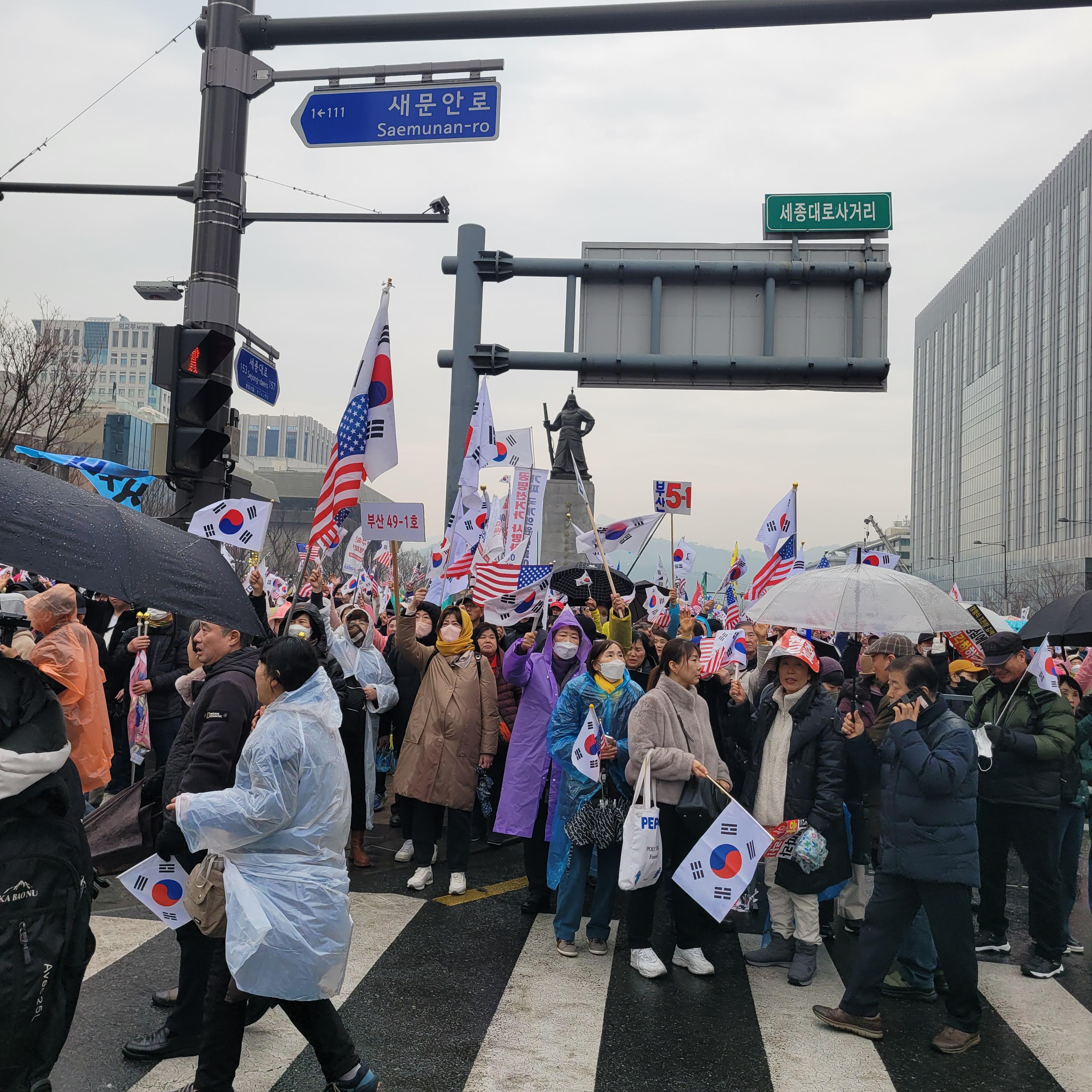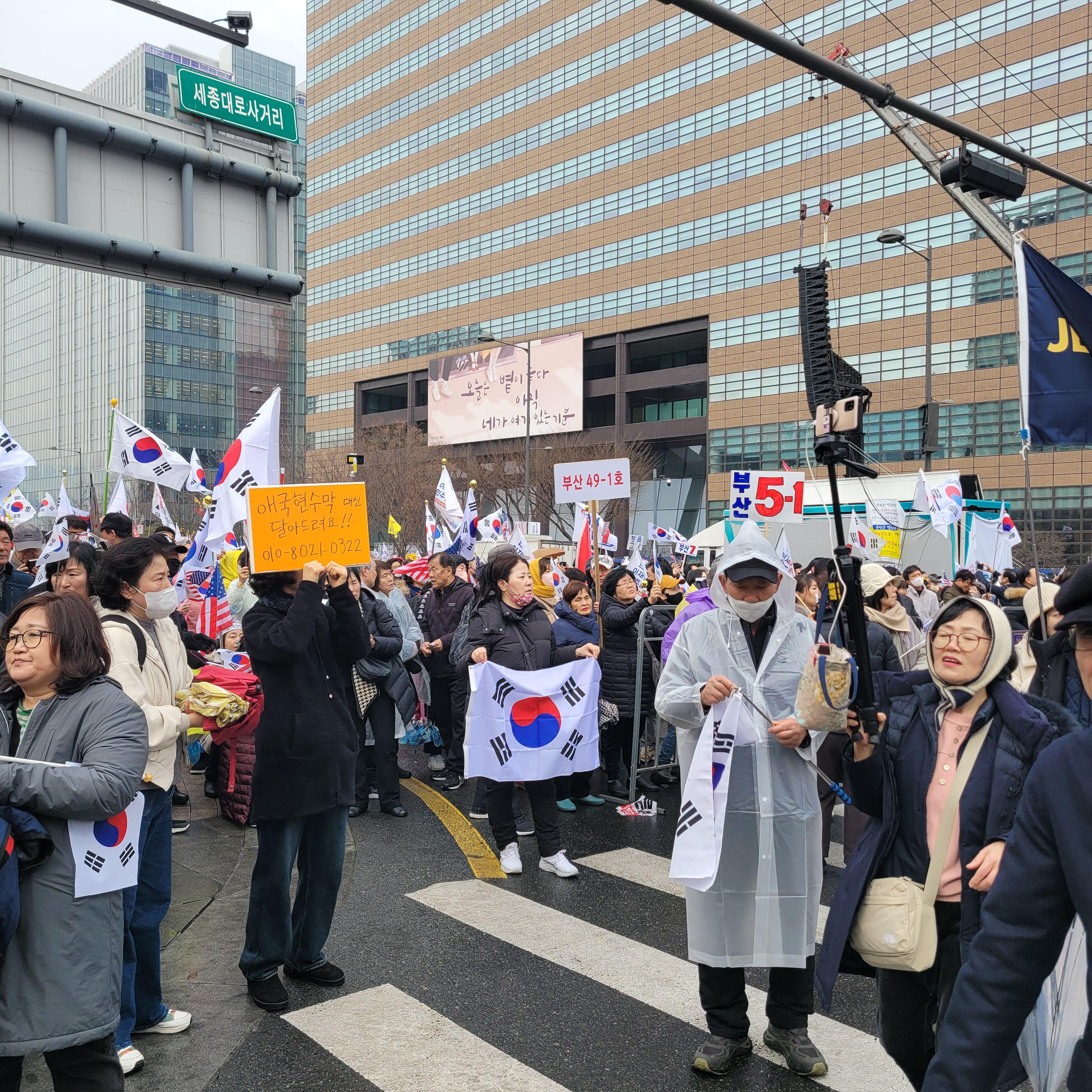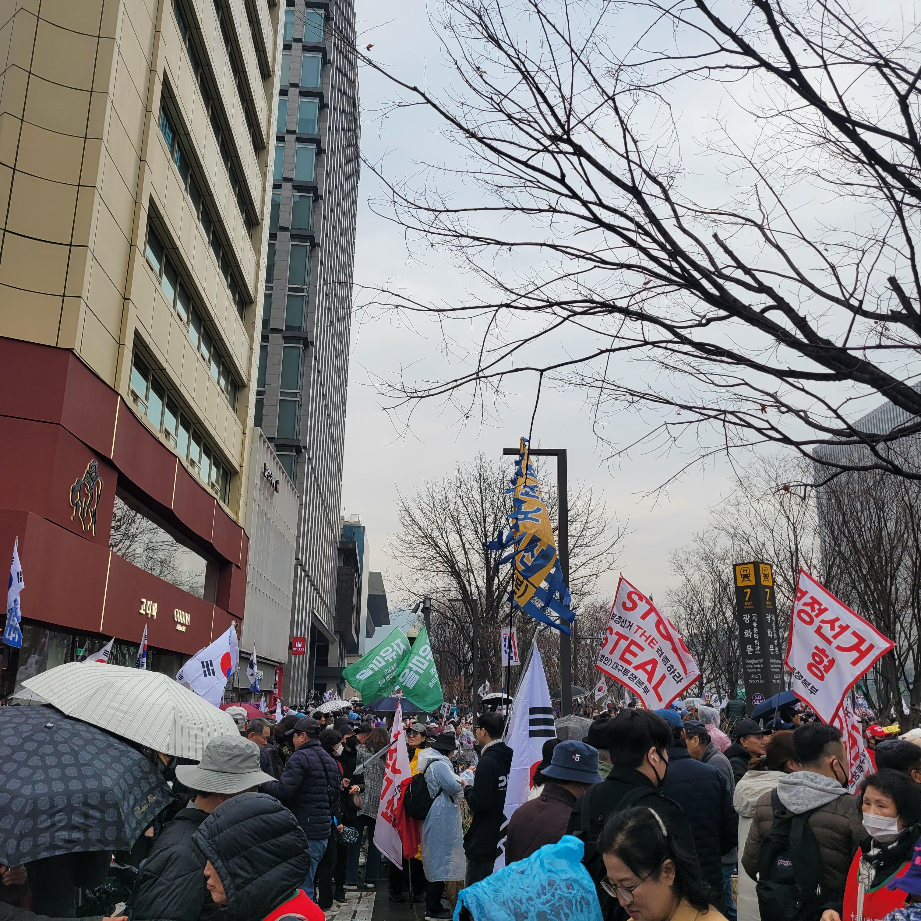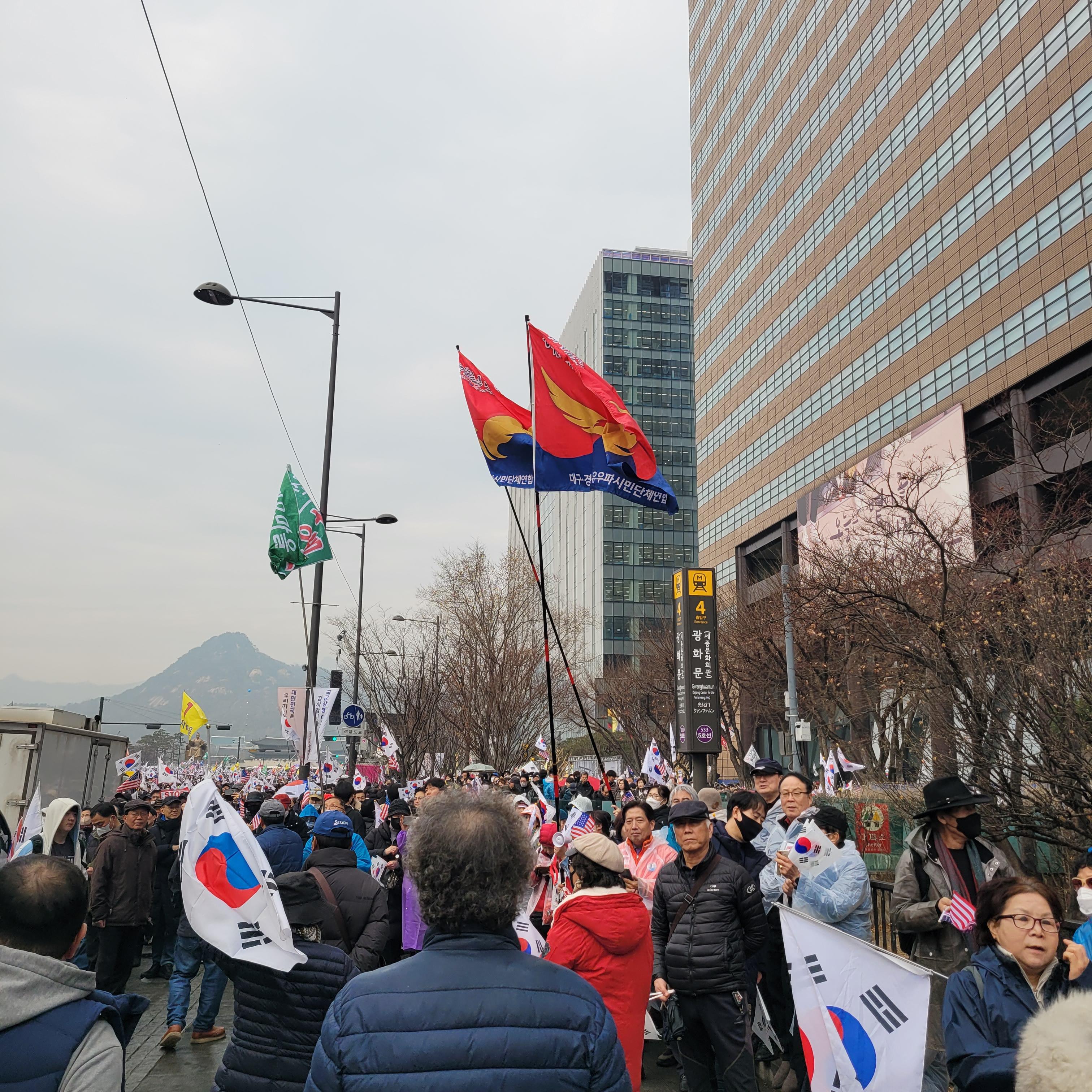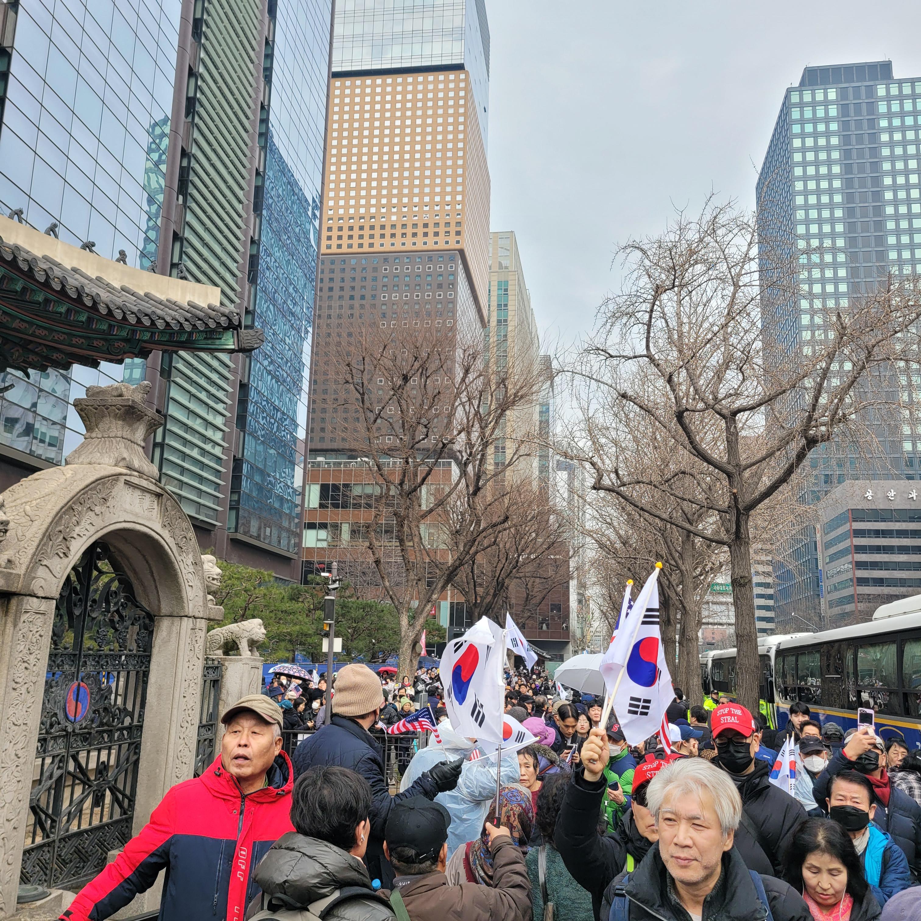 윤석열 탄핵반대 태극기집회 현장을 둘러보려고 광화문광장 쪽으로 내려가려