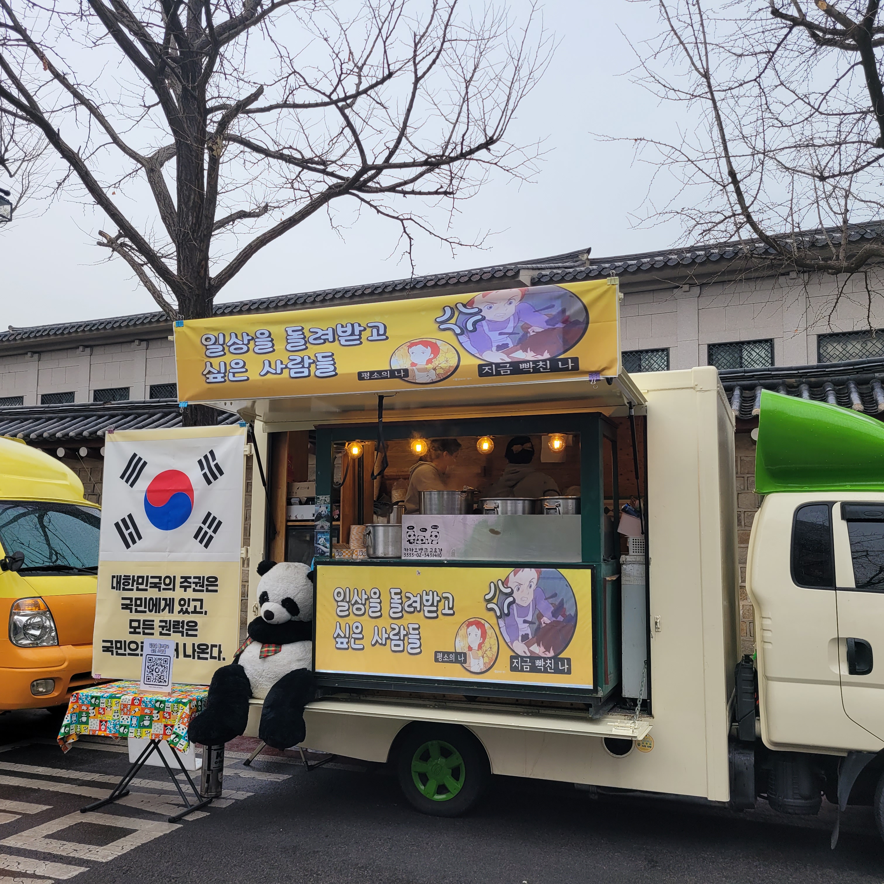 집회현장 곳곳을 구경하고 집회현장에서 제공하는 간식들도 먹고 체험행사도