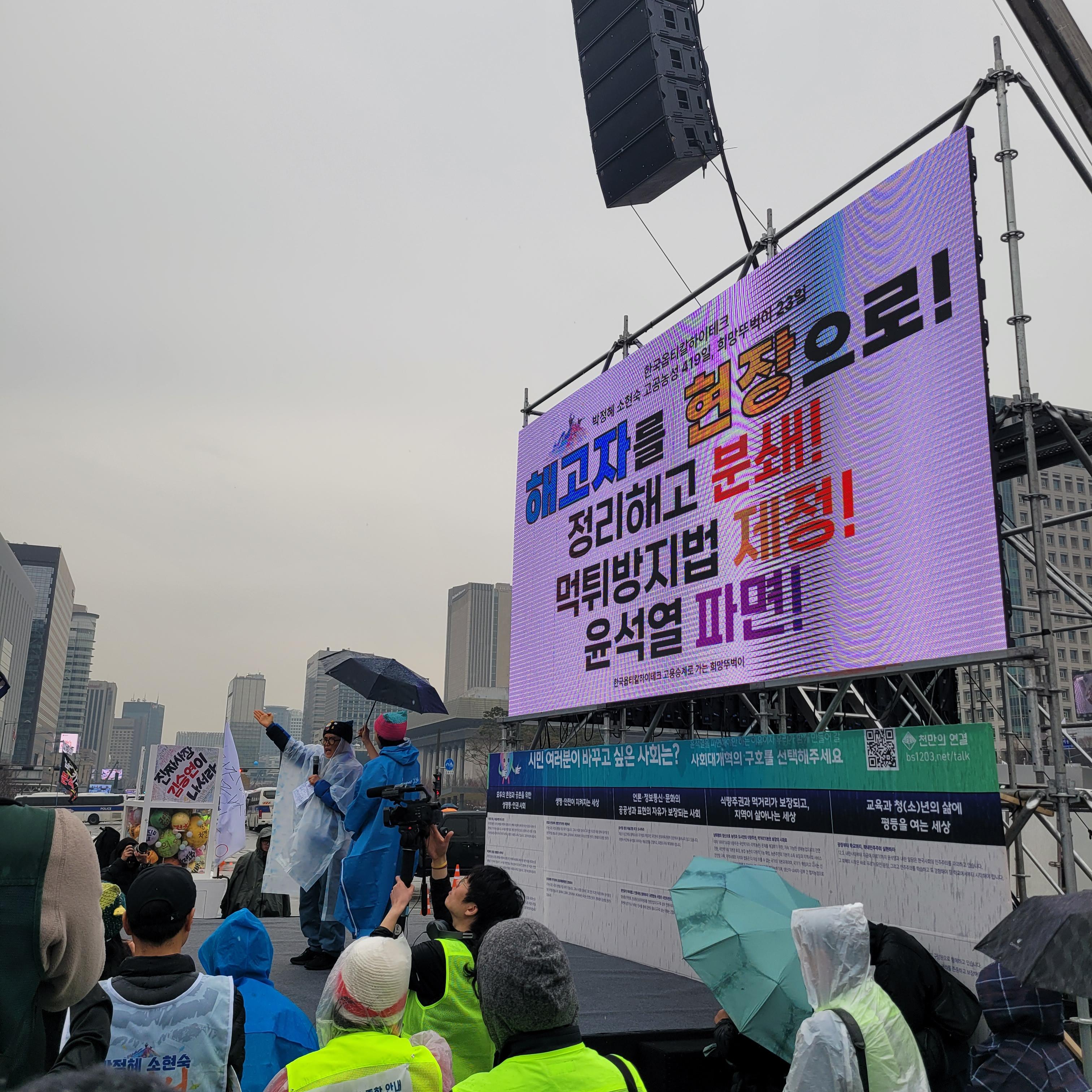 계속해서 안좋은 날씨였는데 그래도 집회 현장에 사람들이 지난번보다 훨씬