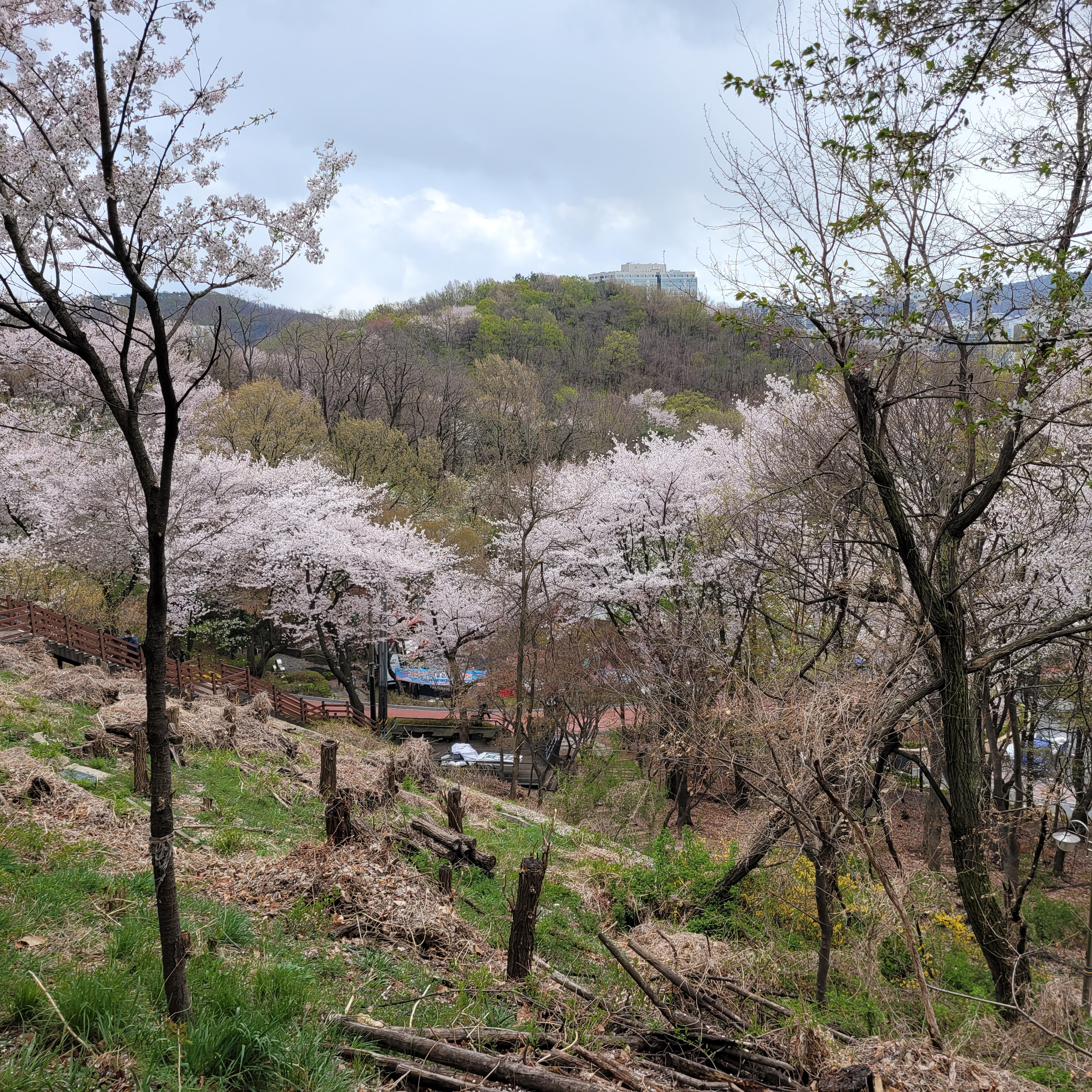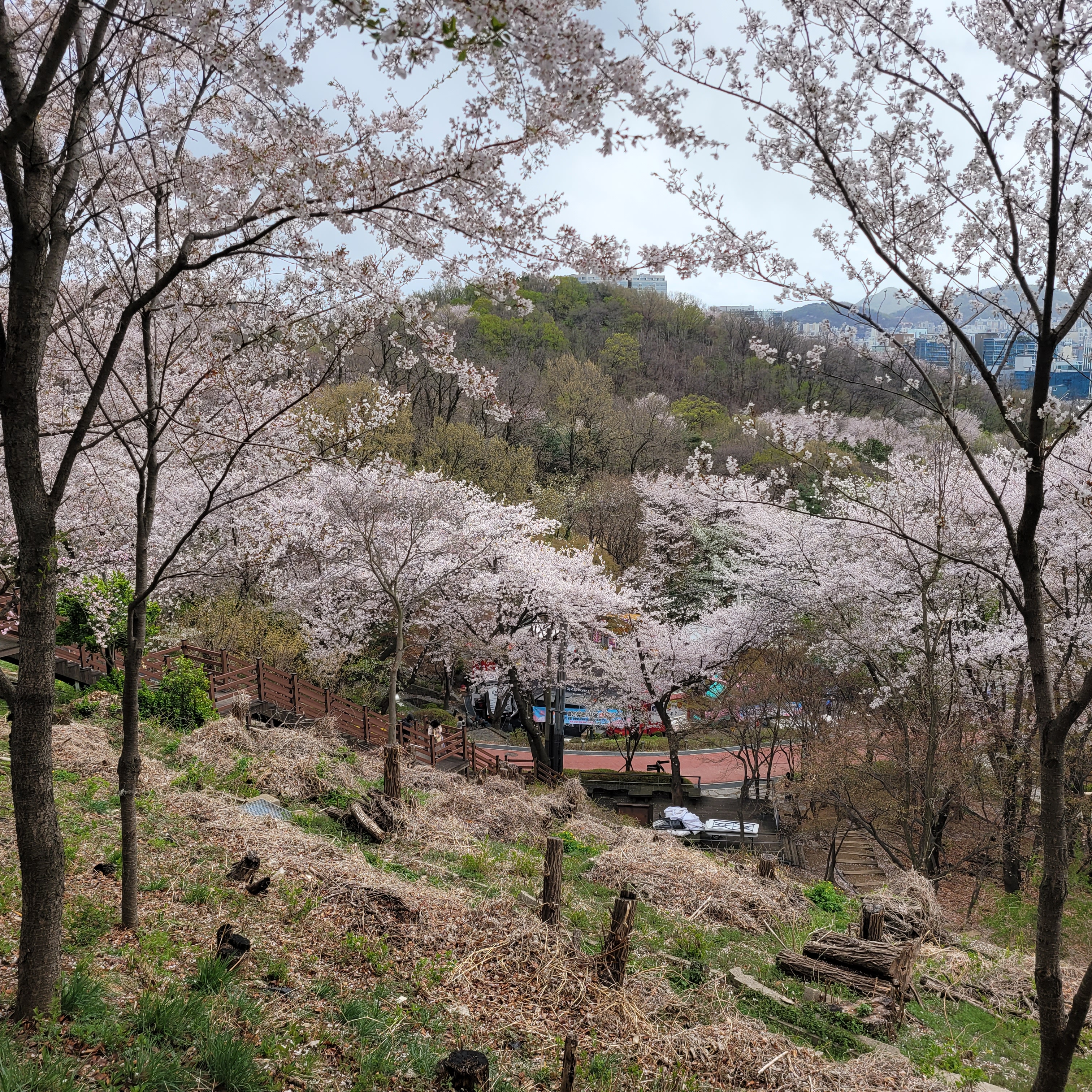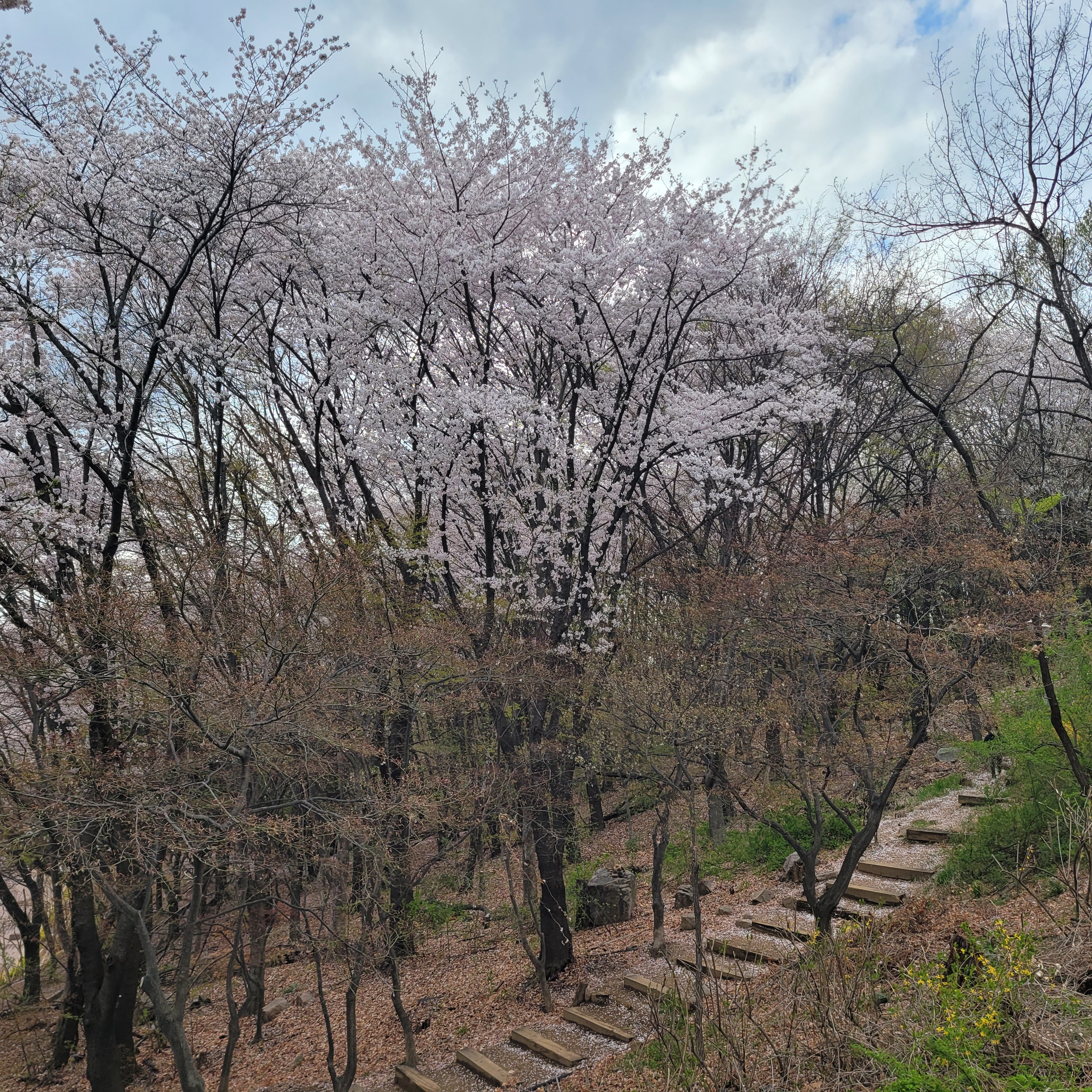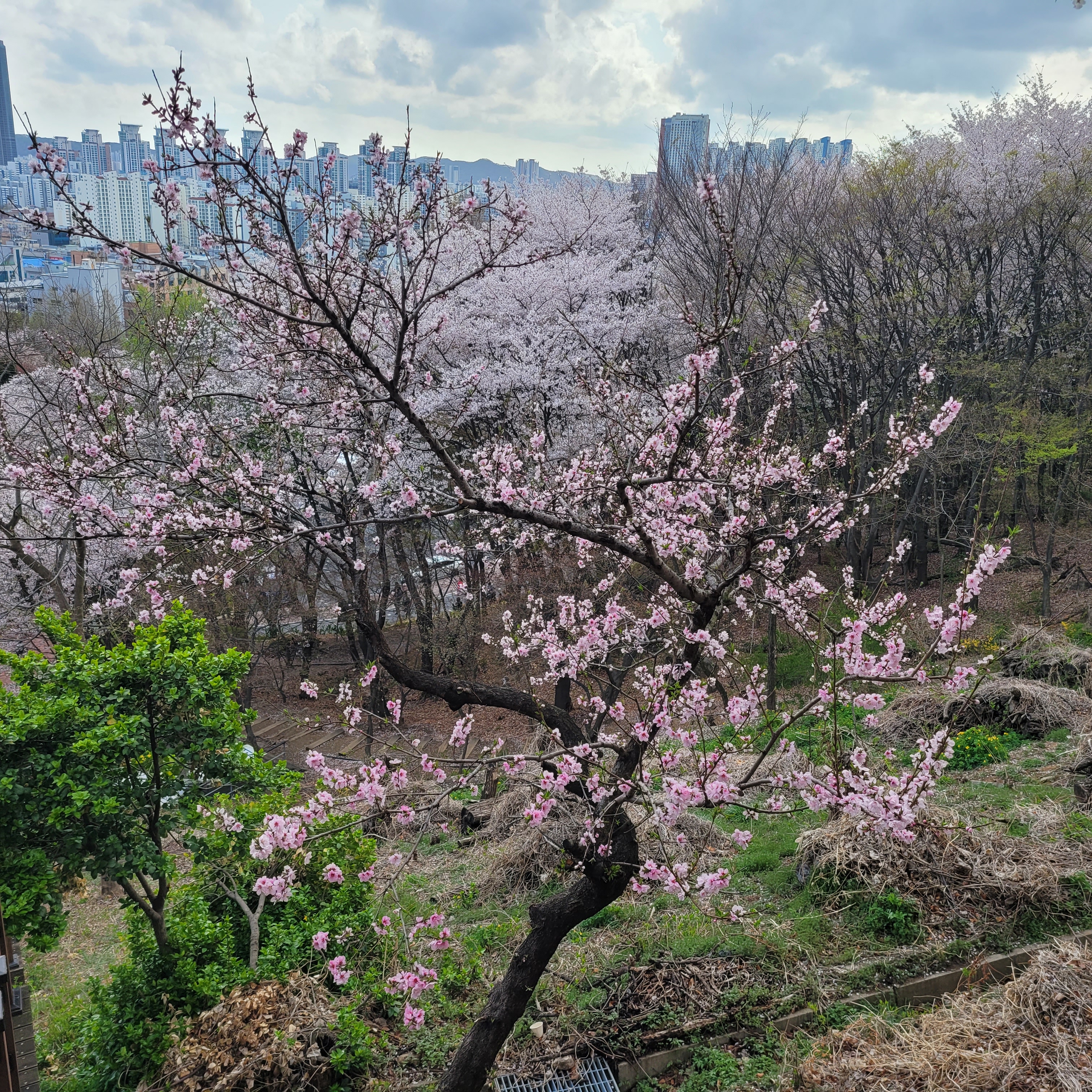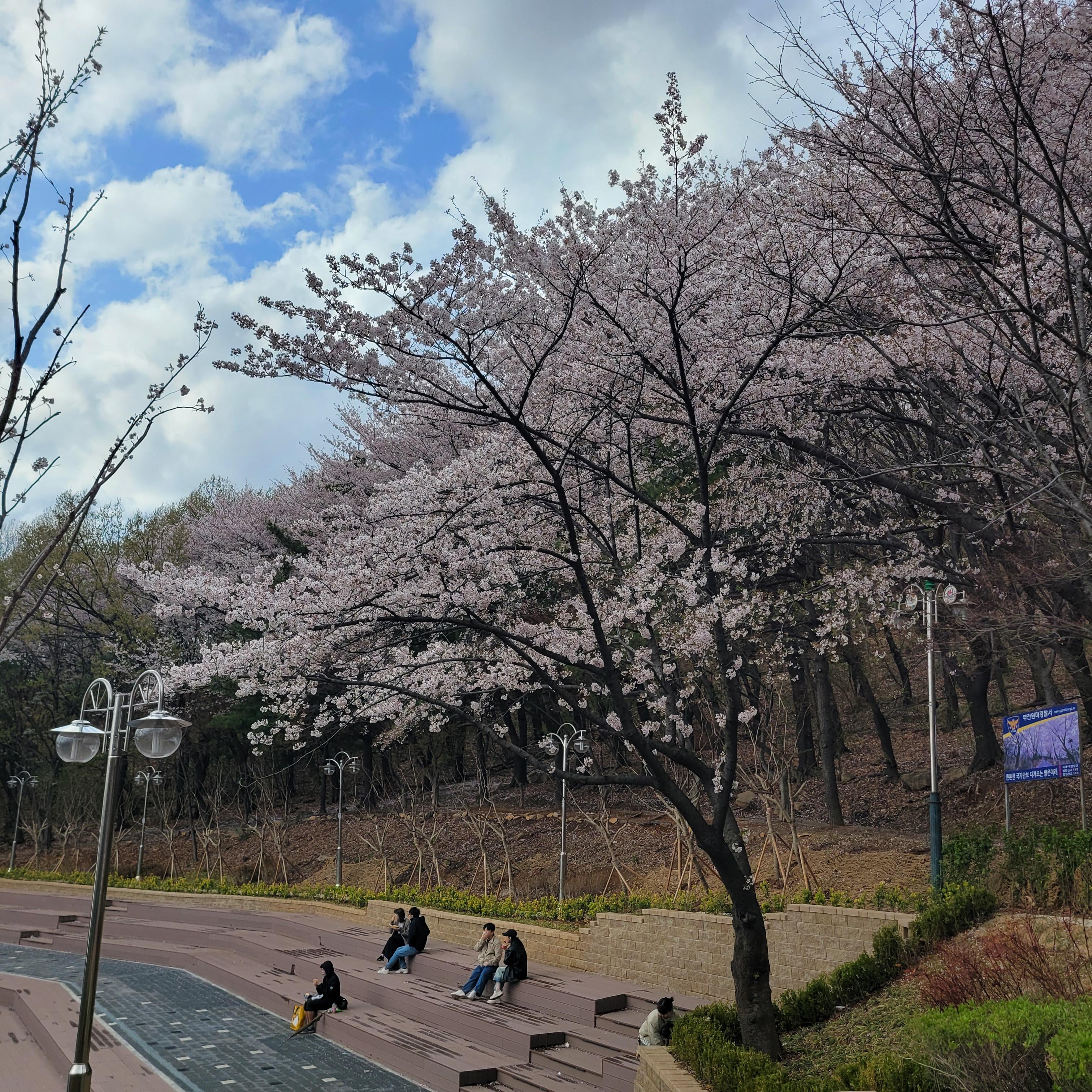 그래도 부천 도당산 벚꽃이 다 떨어지지 않고 거의 원형 그대로 유지가 되서