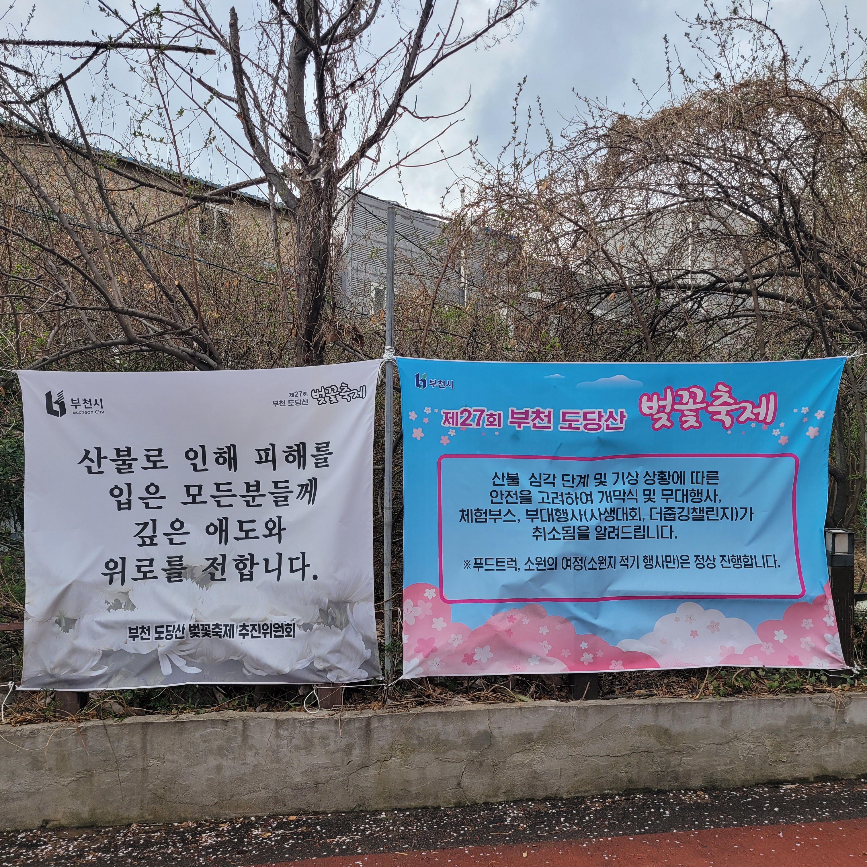 그때문인지 올해 부천 도당산 벚꽃축제 부대행사는 모두 취소되거나 조기종료
