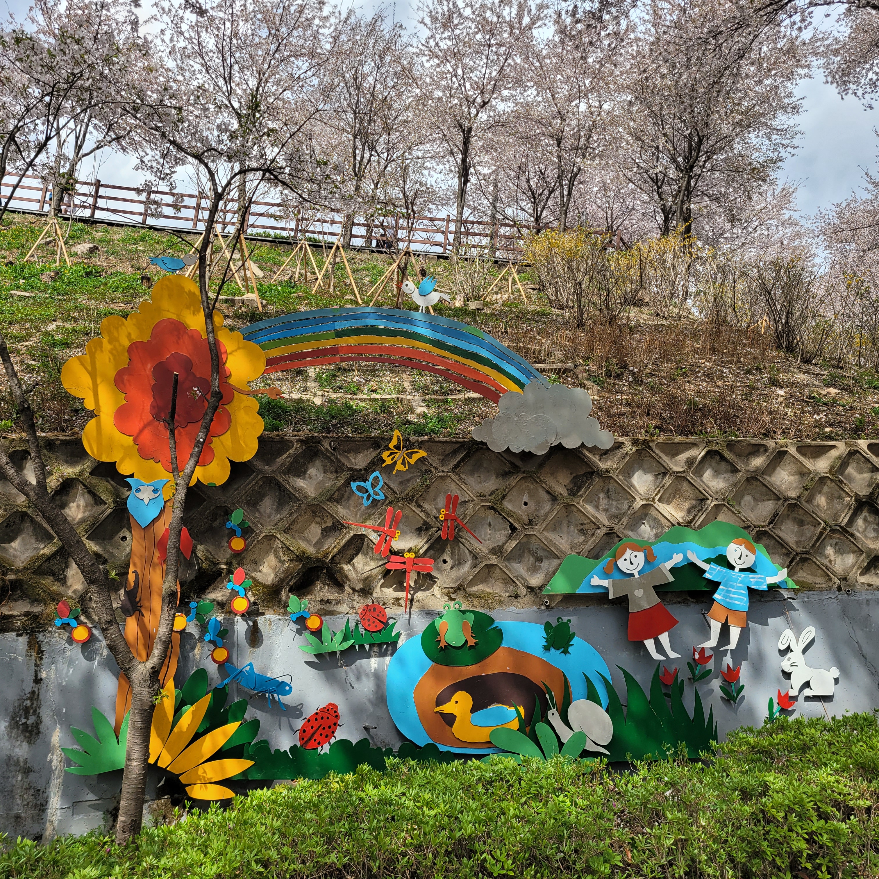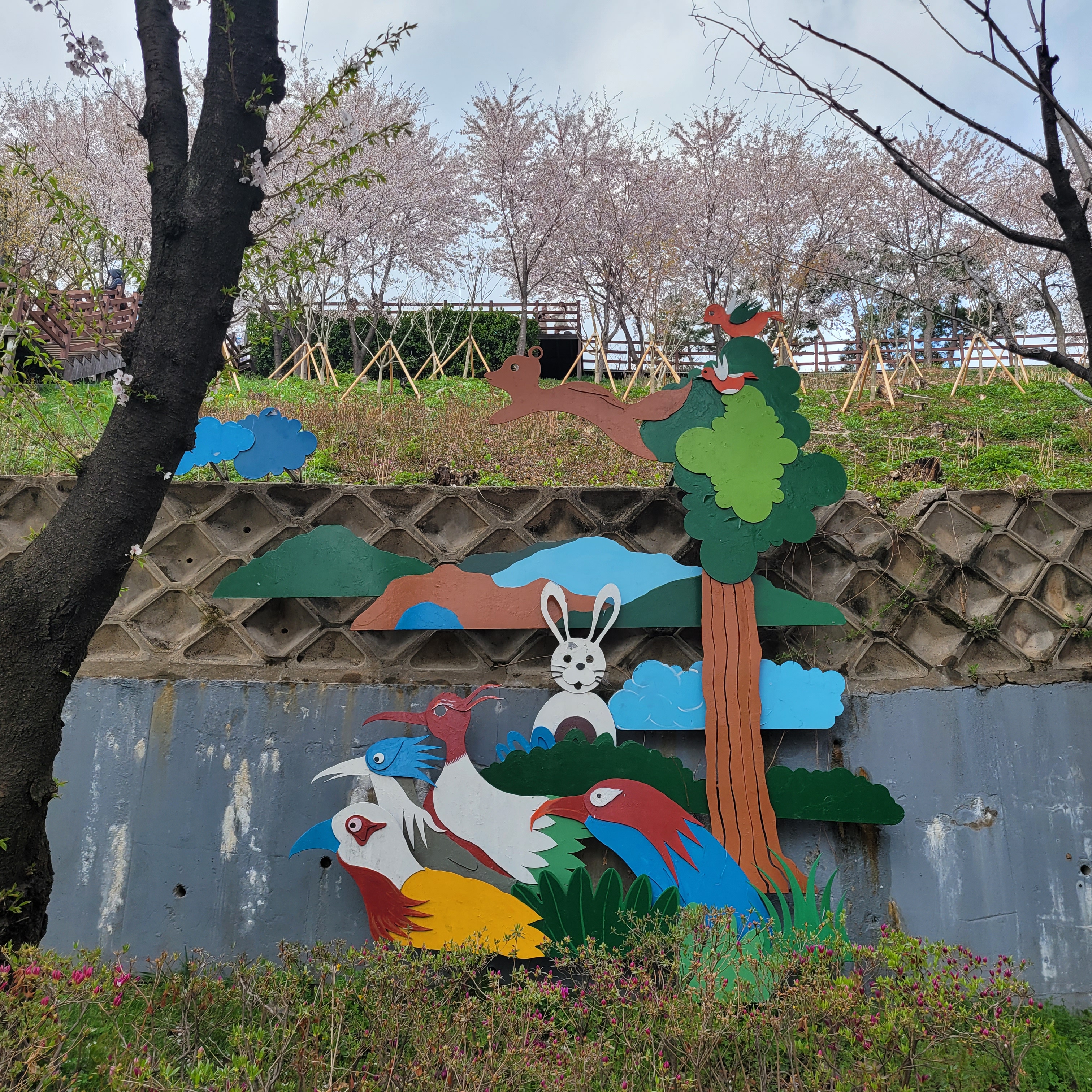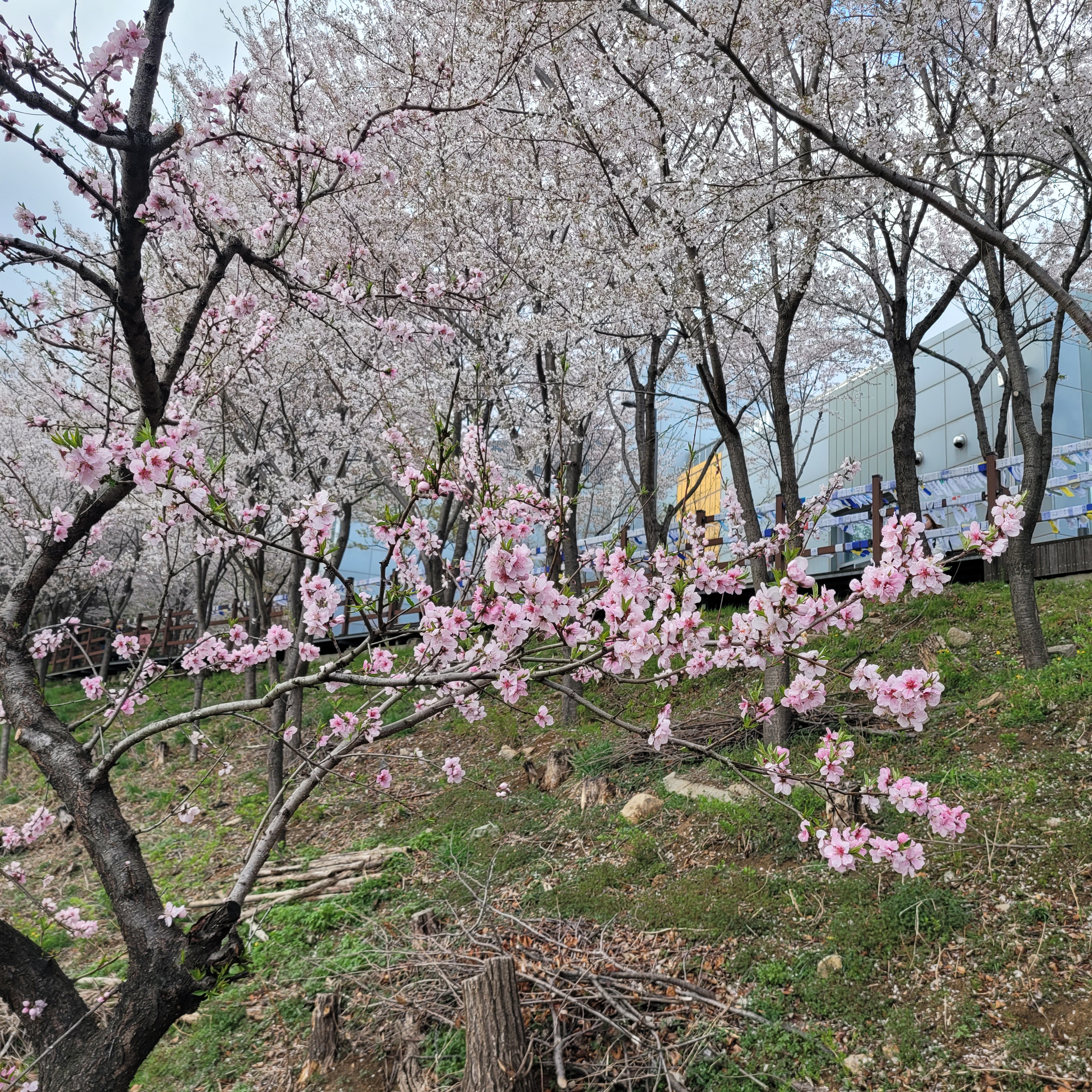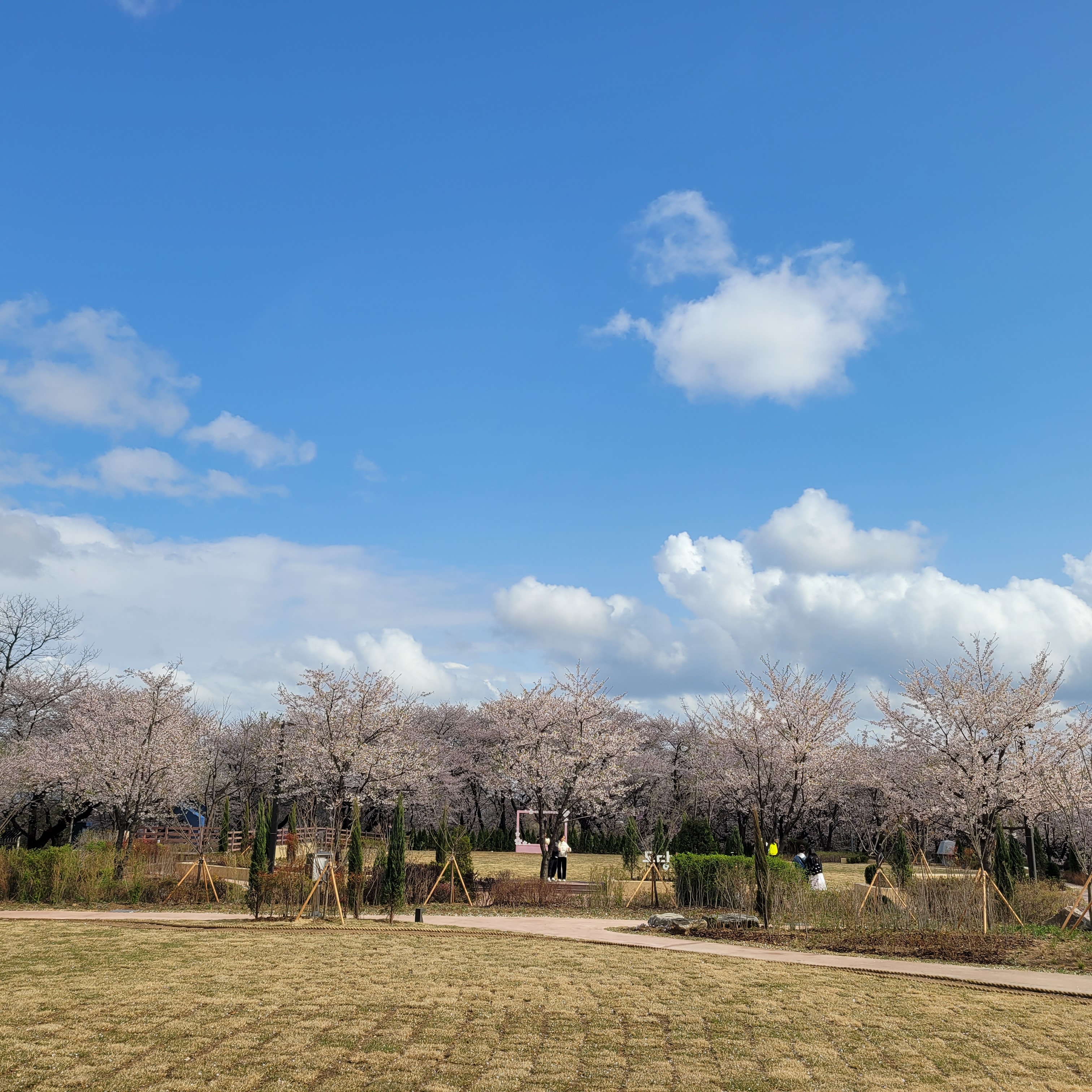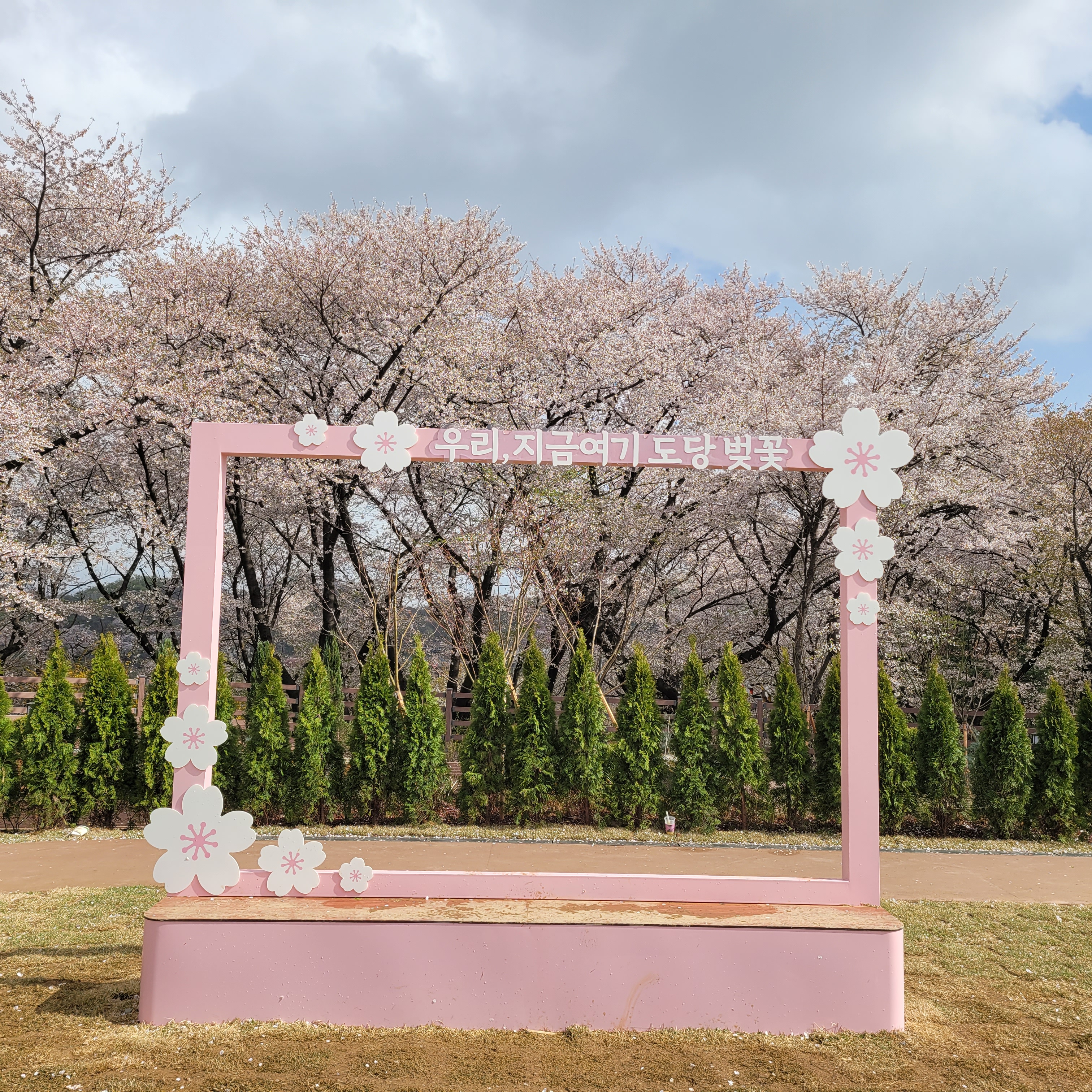 적었지만 그래도 여러 사람들이 찾아와서 벚꽃 배경으로 사진도 찍었고요.