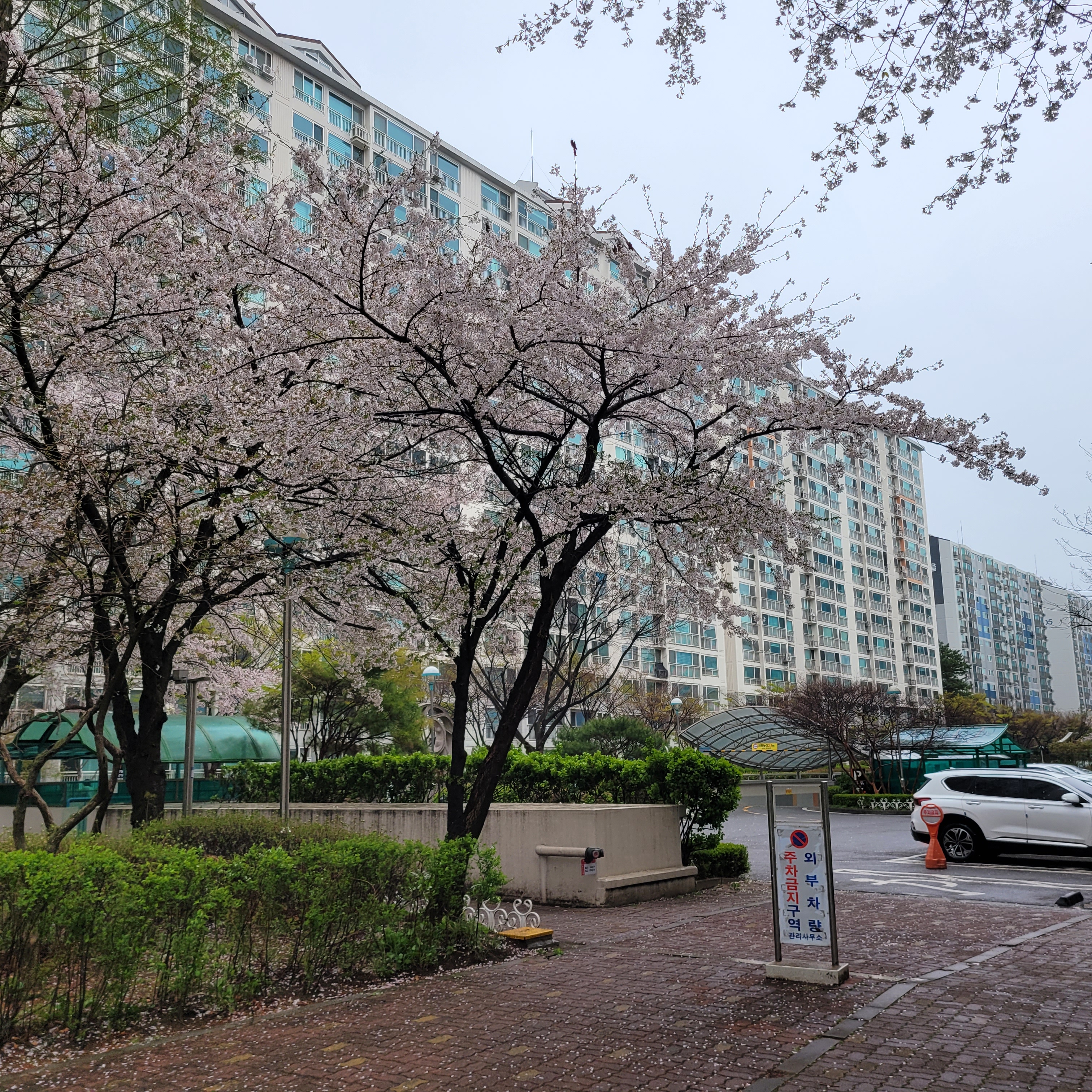 그럼 오늘은 지난 휴일에 부천 본가 아파트에 피었던 벚꽃 풍경과
