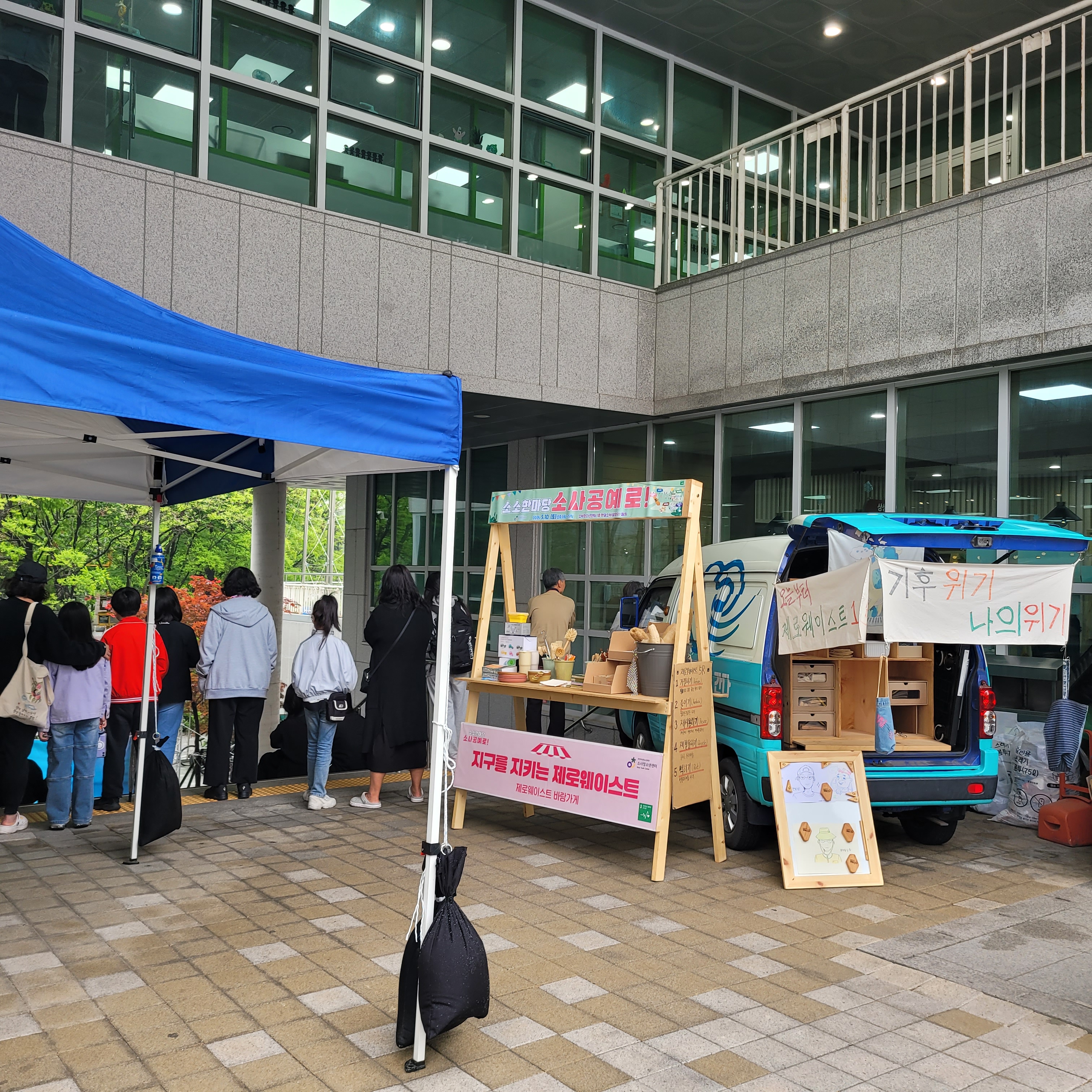 경기가 열리고 있었고 1층 건물 안에는 공정무역 카페와 플리마켓이