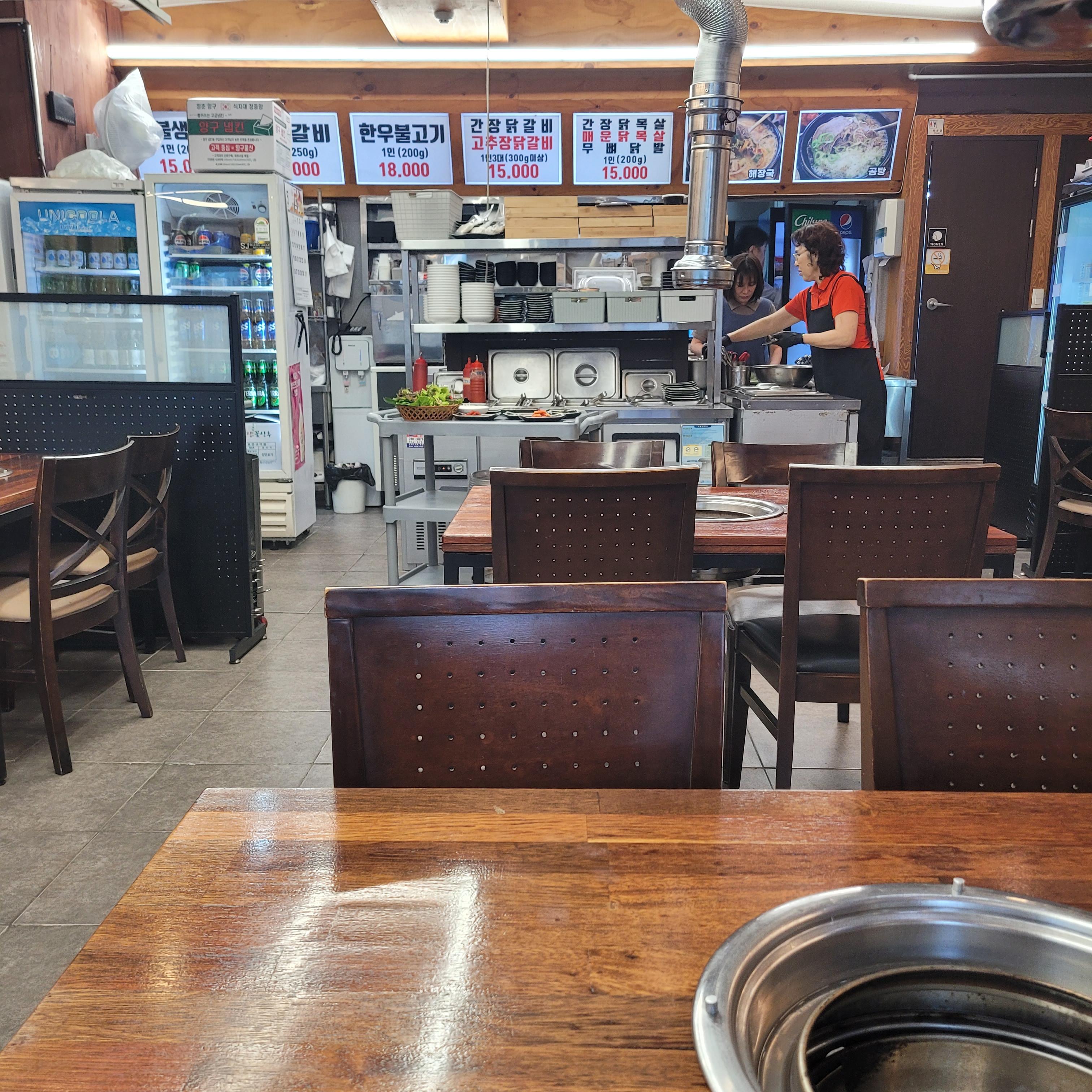 숯불구이 화덕집은 그동안 점심때 김치찌개에 라면사리 넣어서