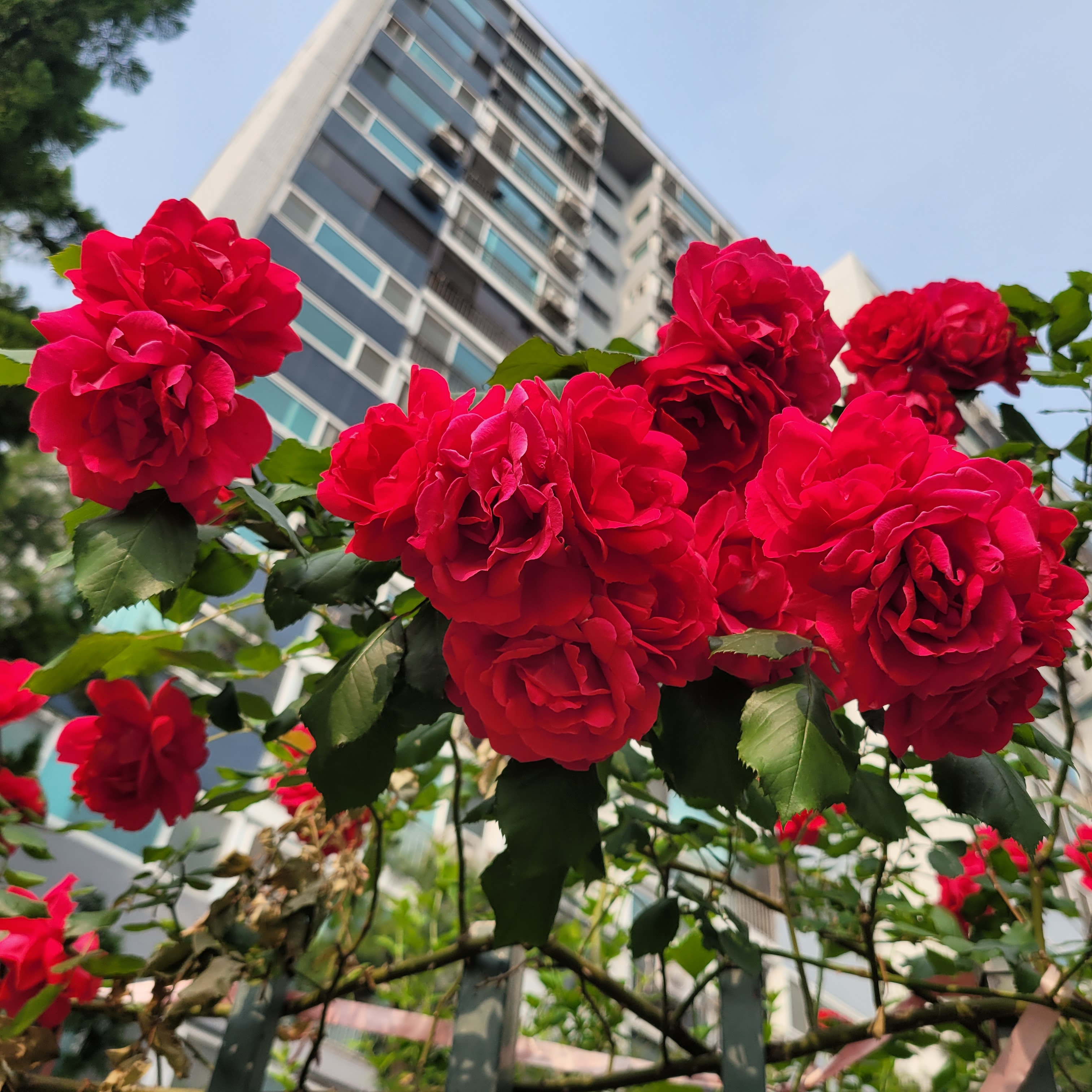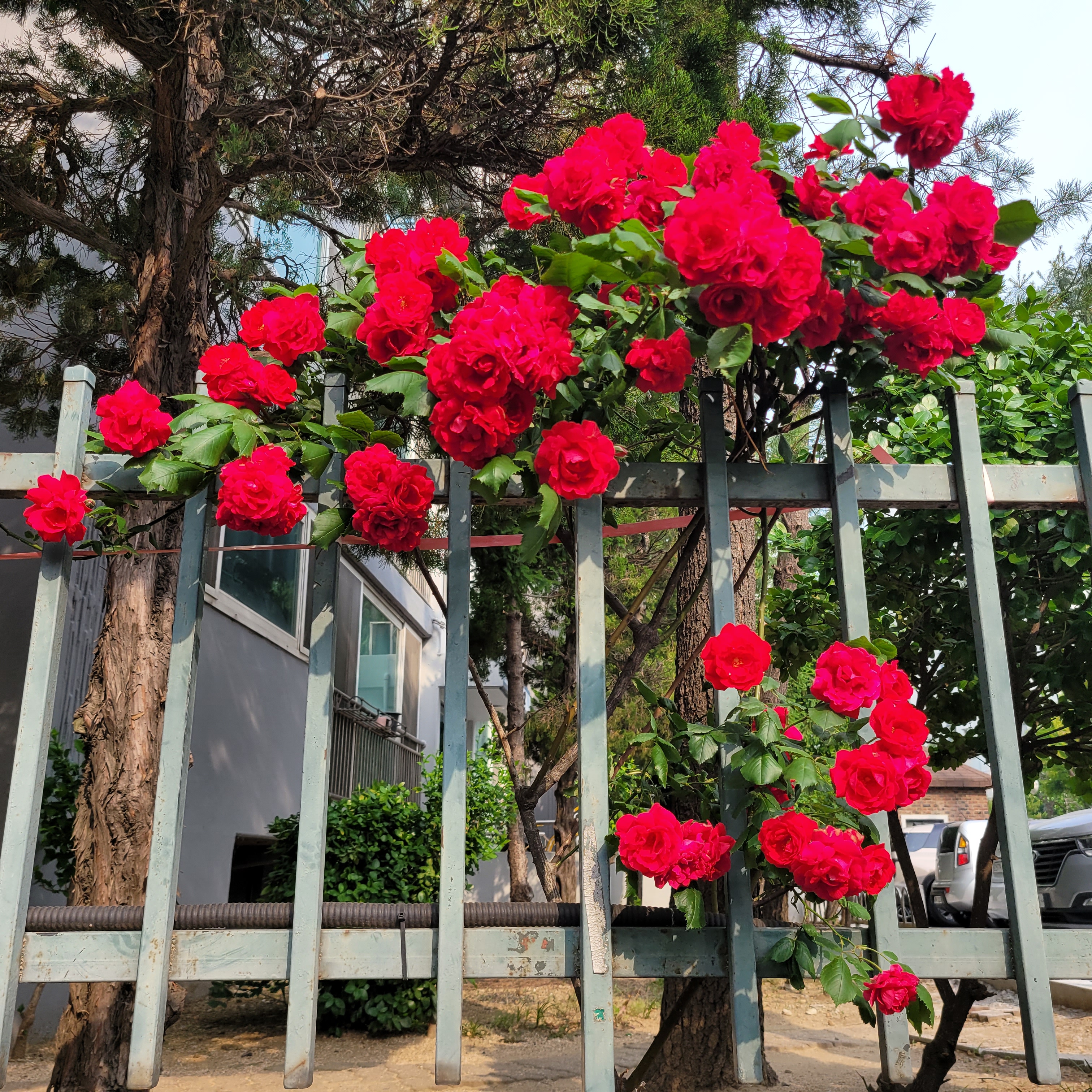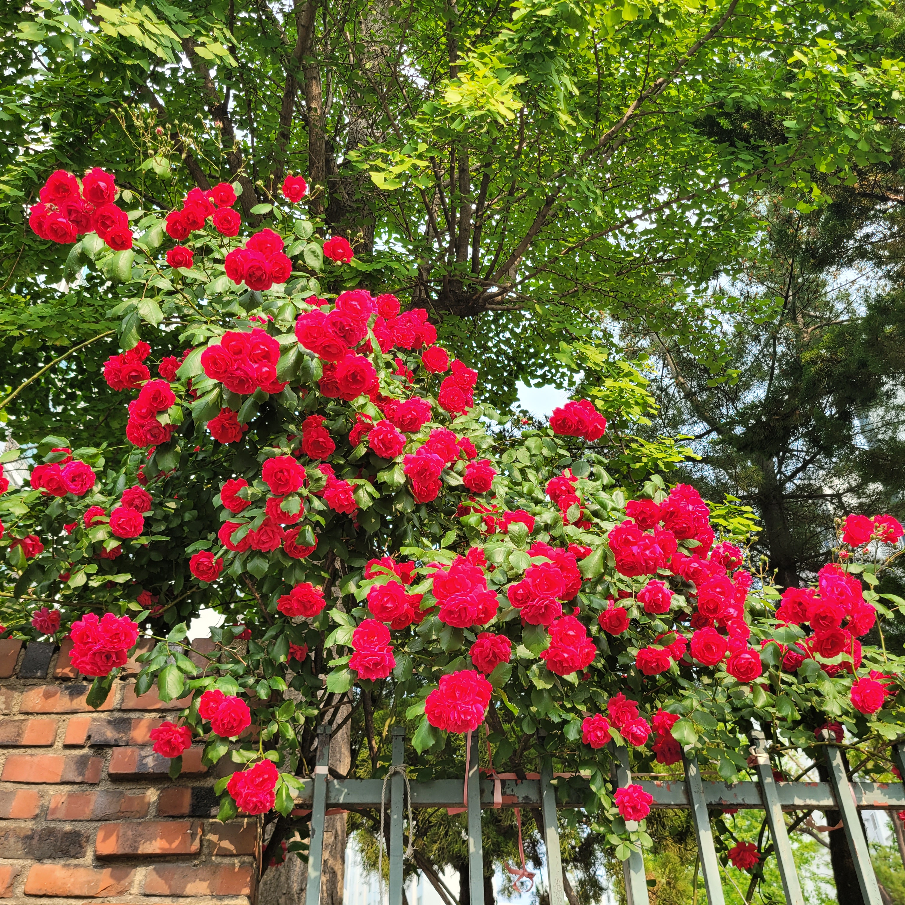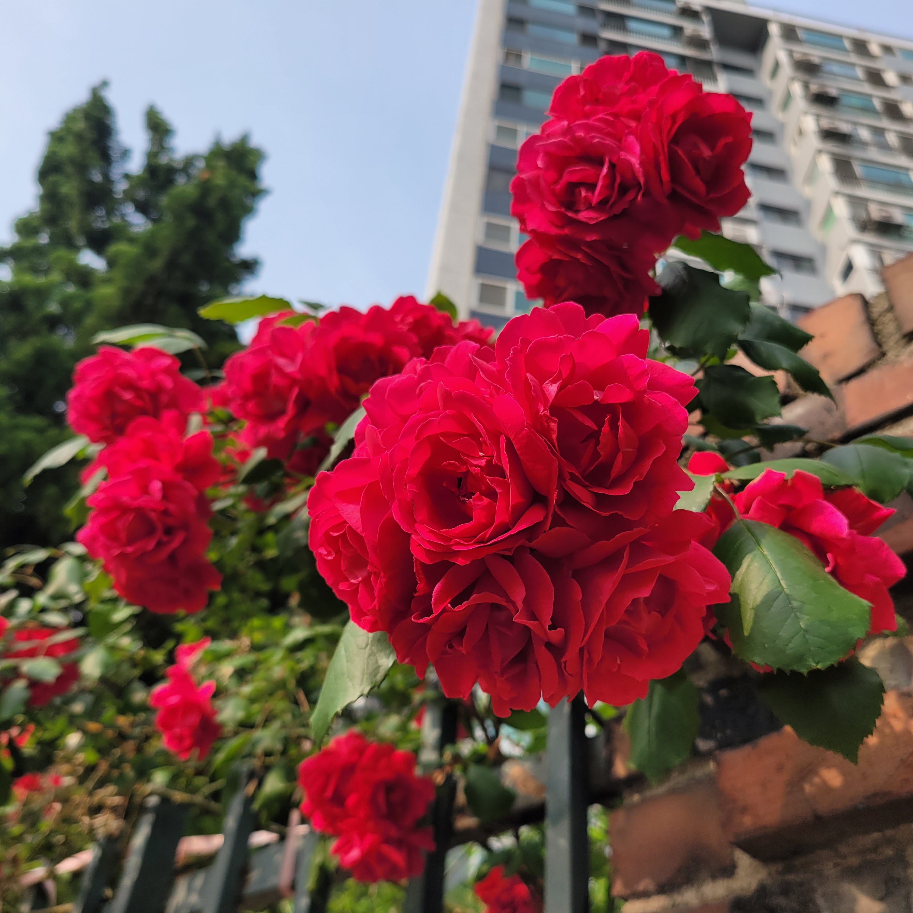 학교 담벼락 등지에 장미꽃이 아름답게 피었더라고요.