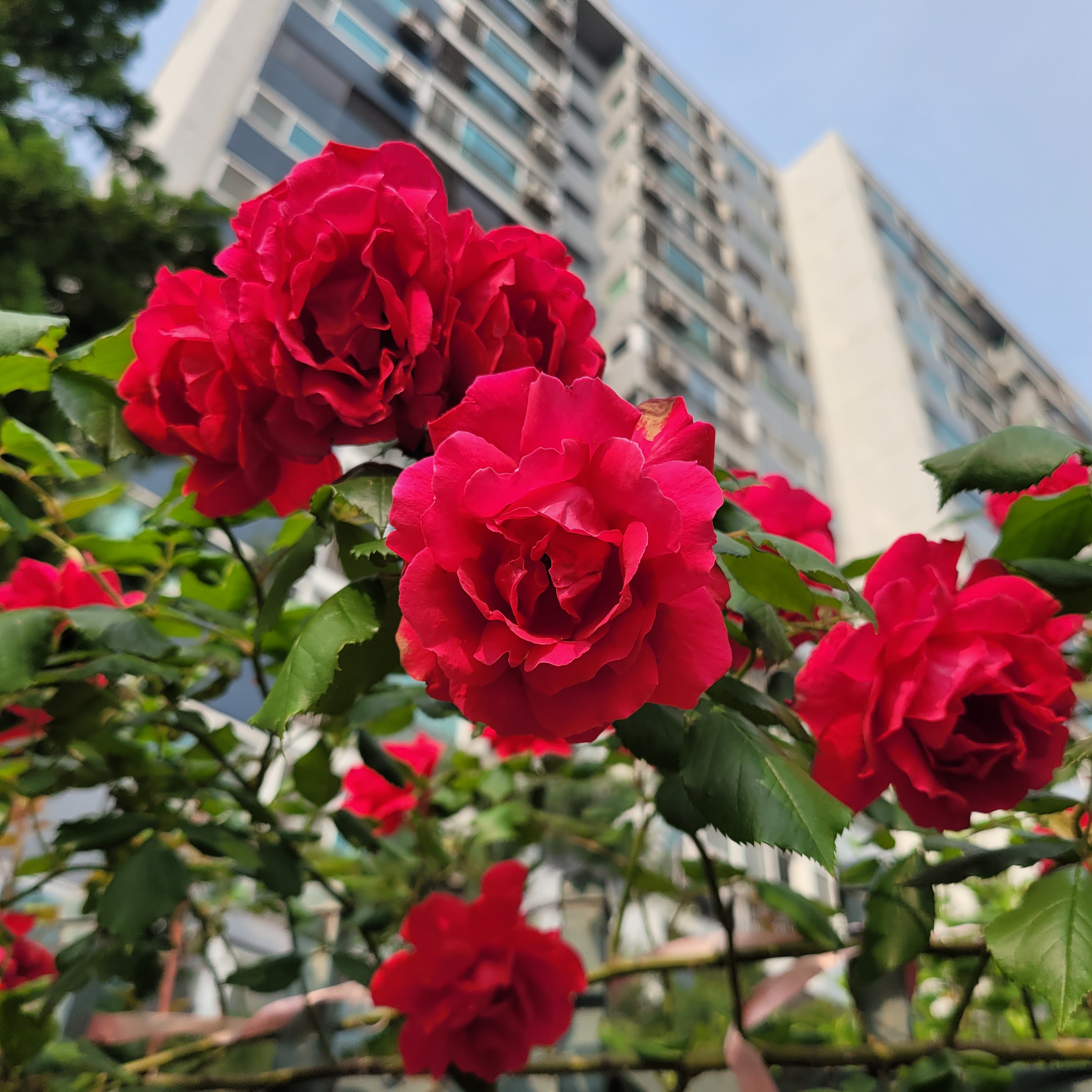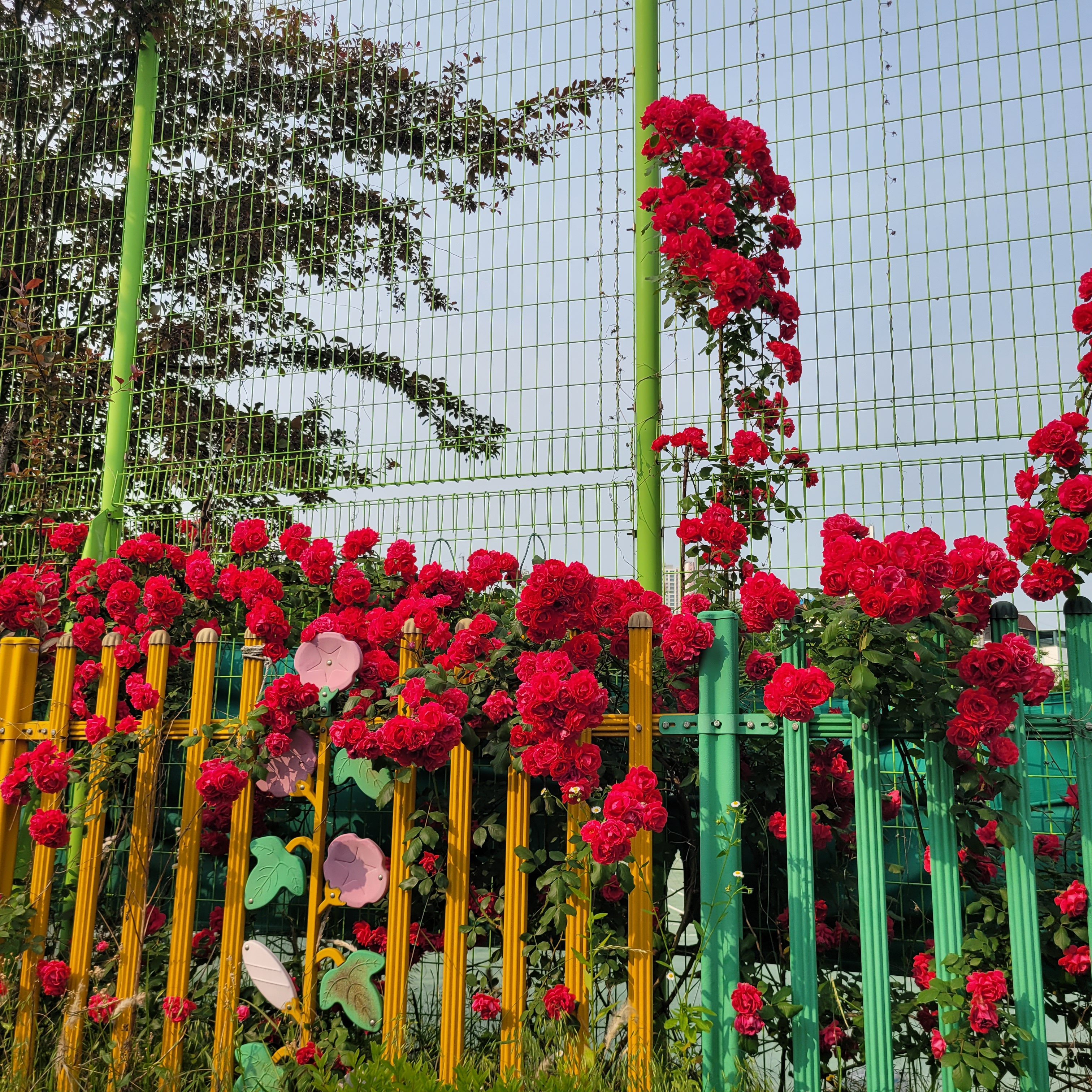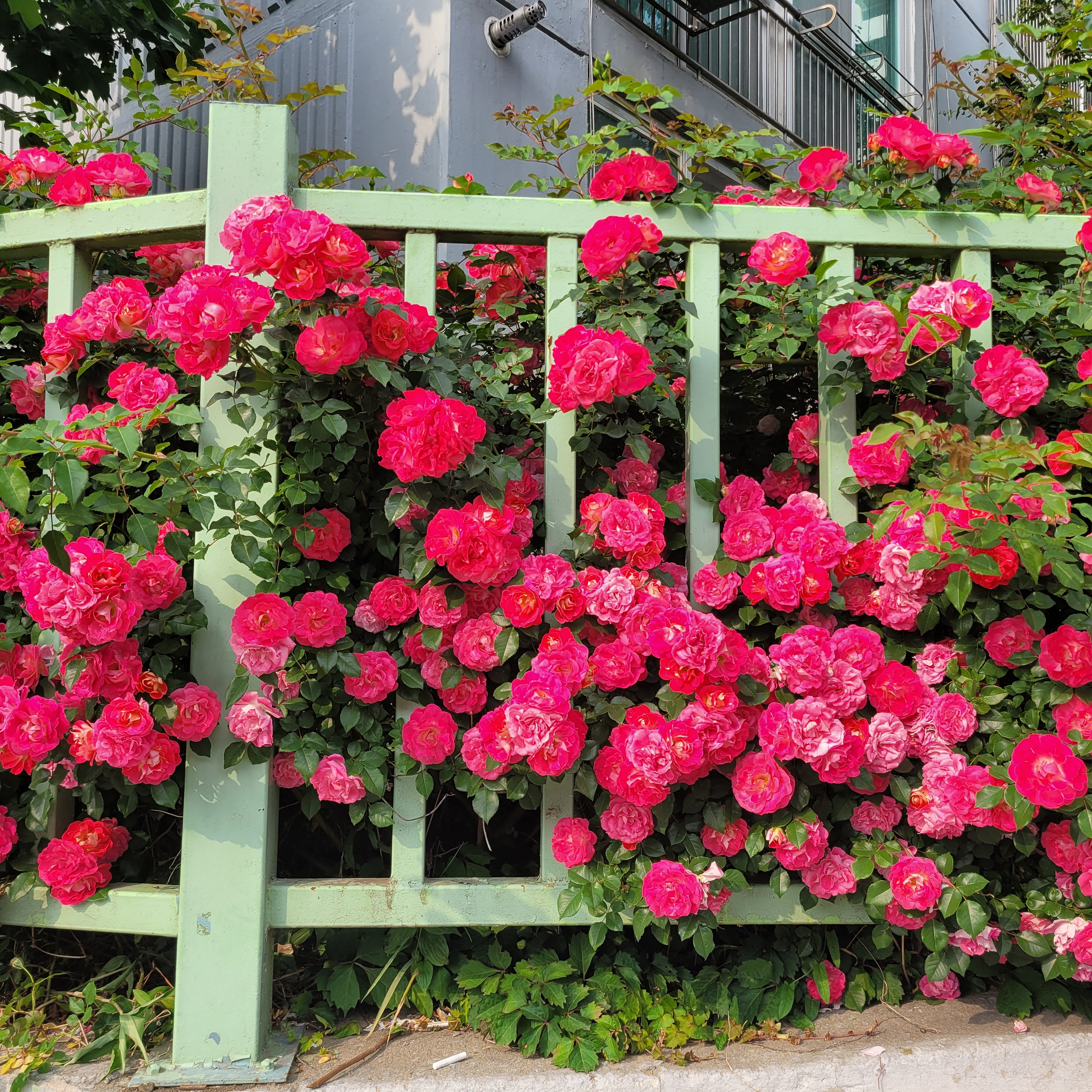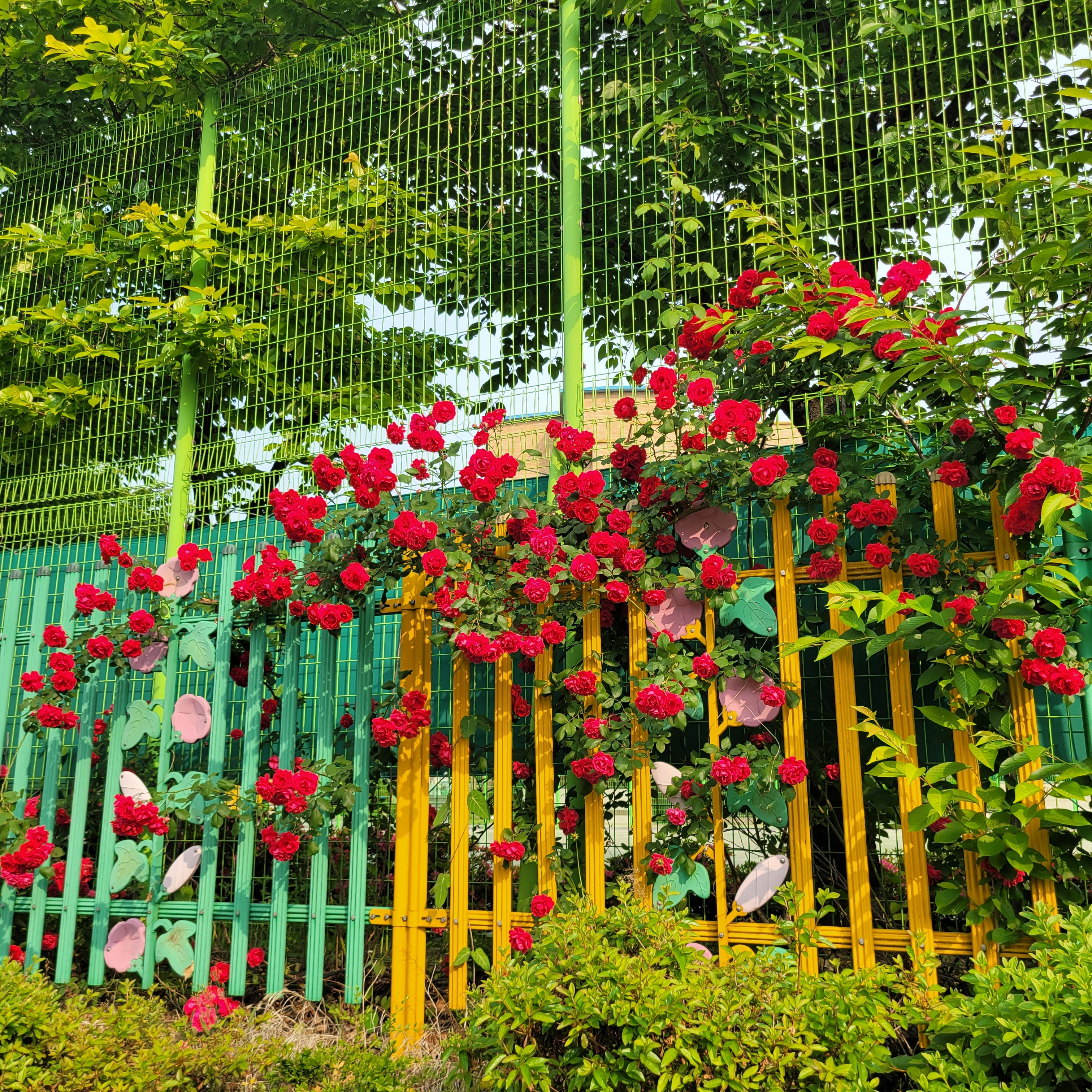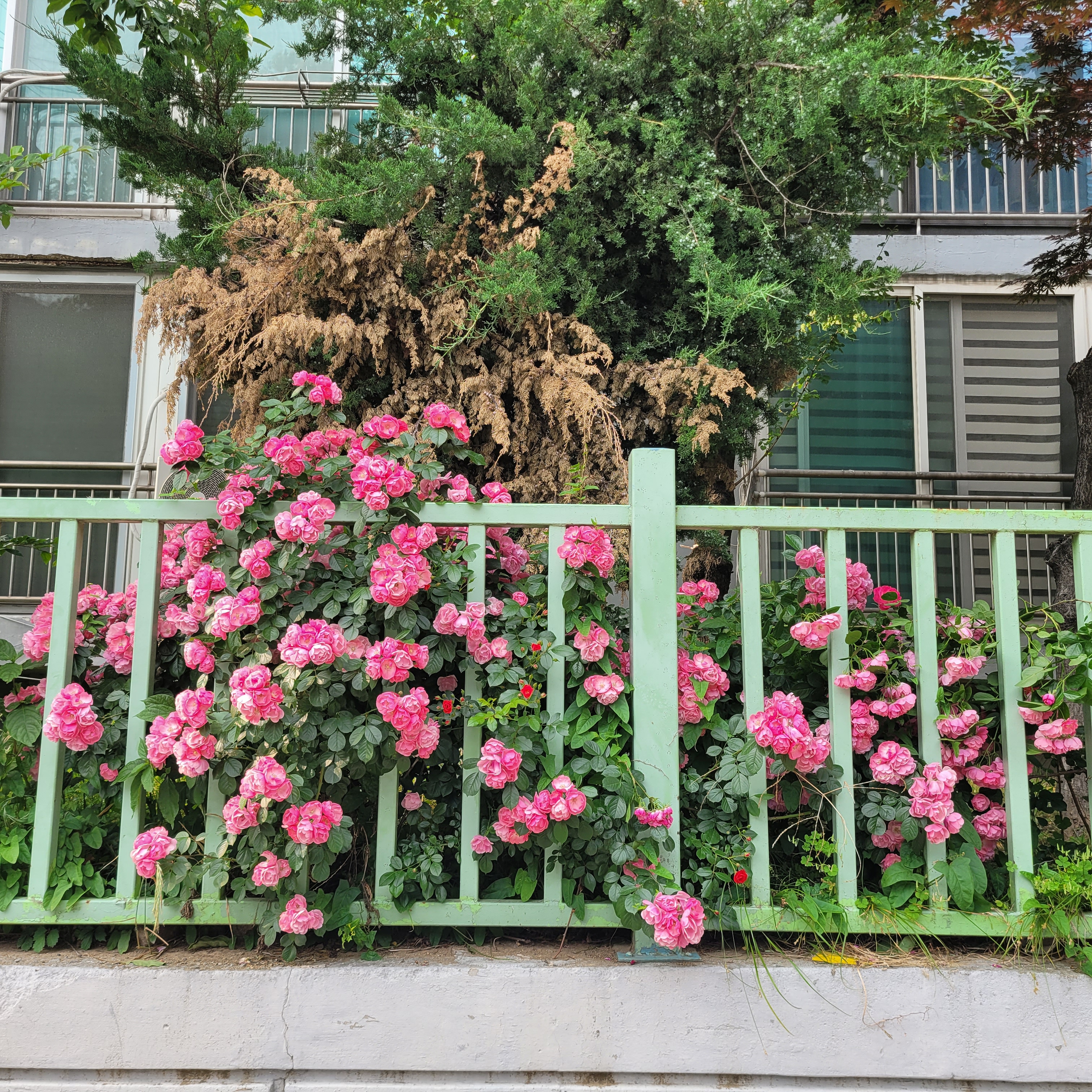학교 담벼락 등지에 장미꽃이 아름답게 피었더라고요.