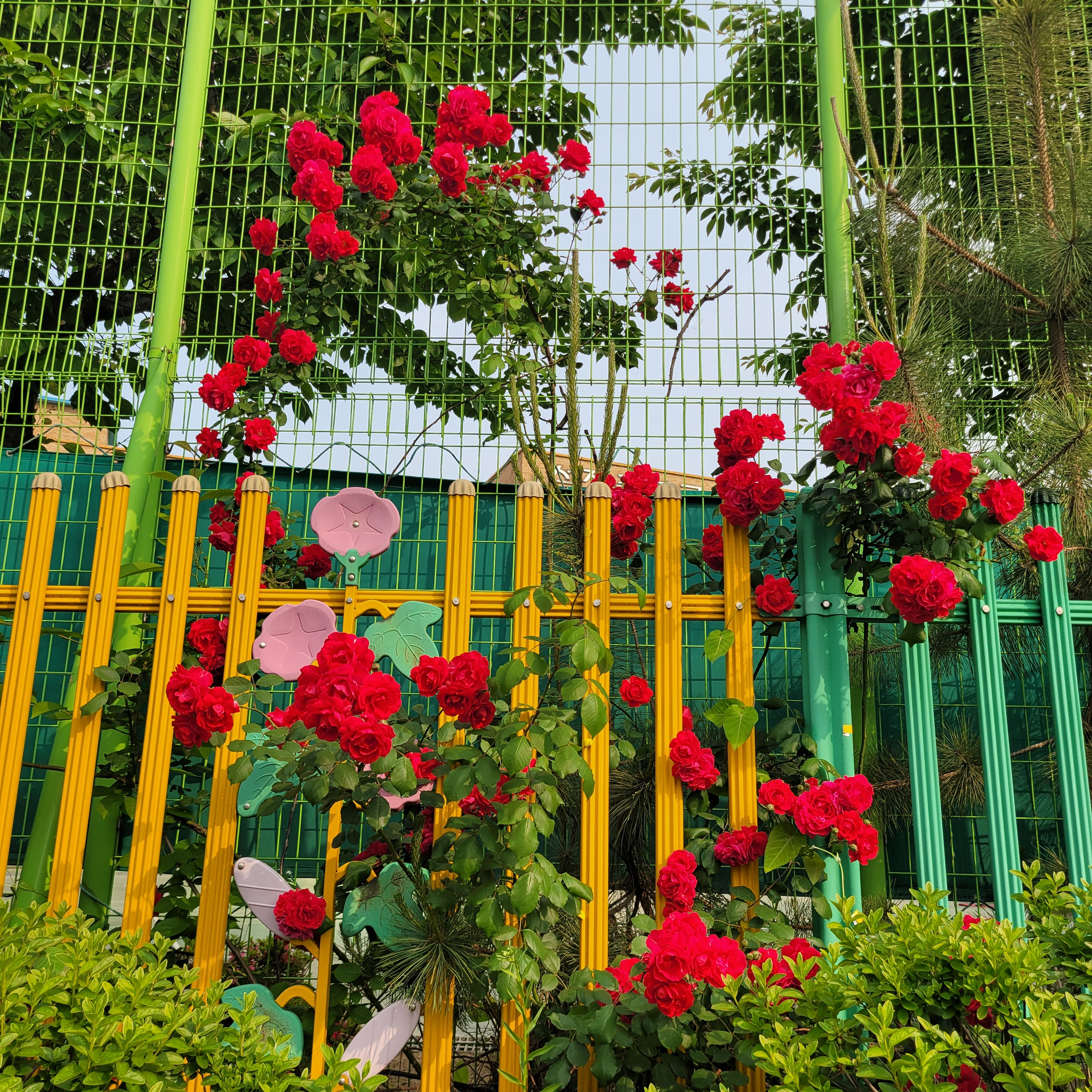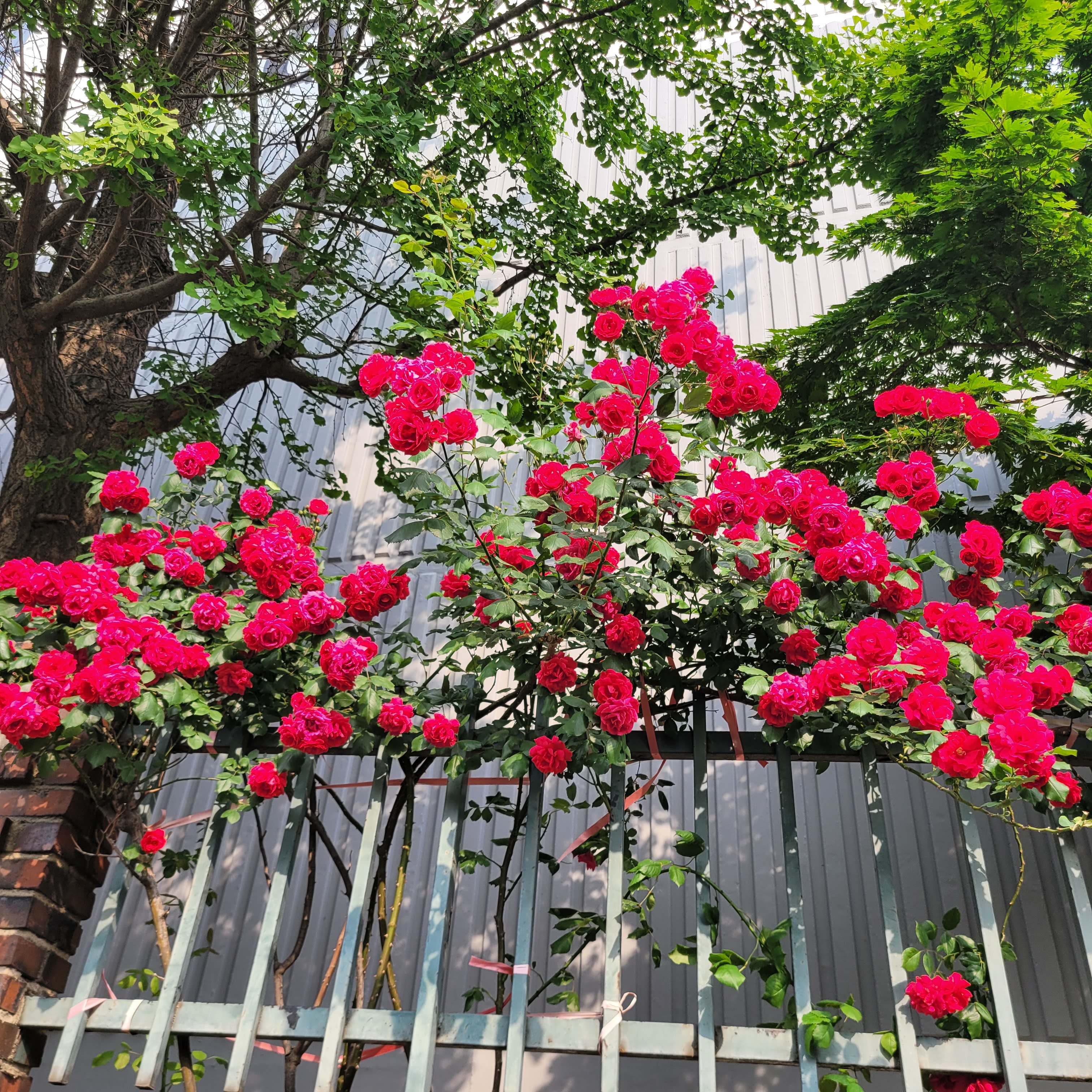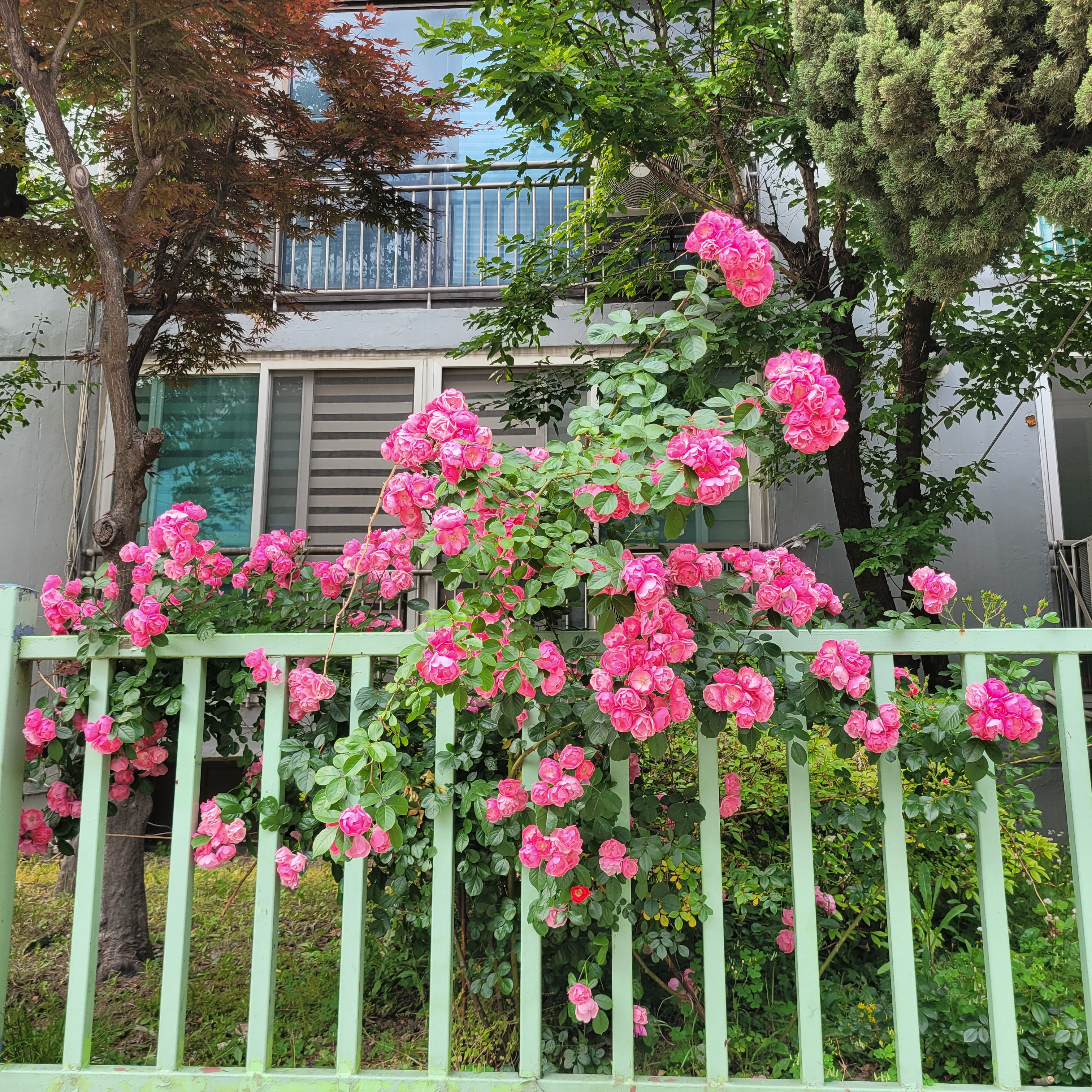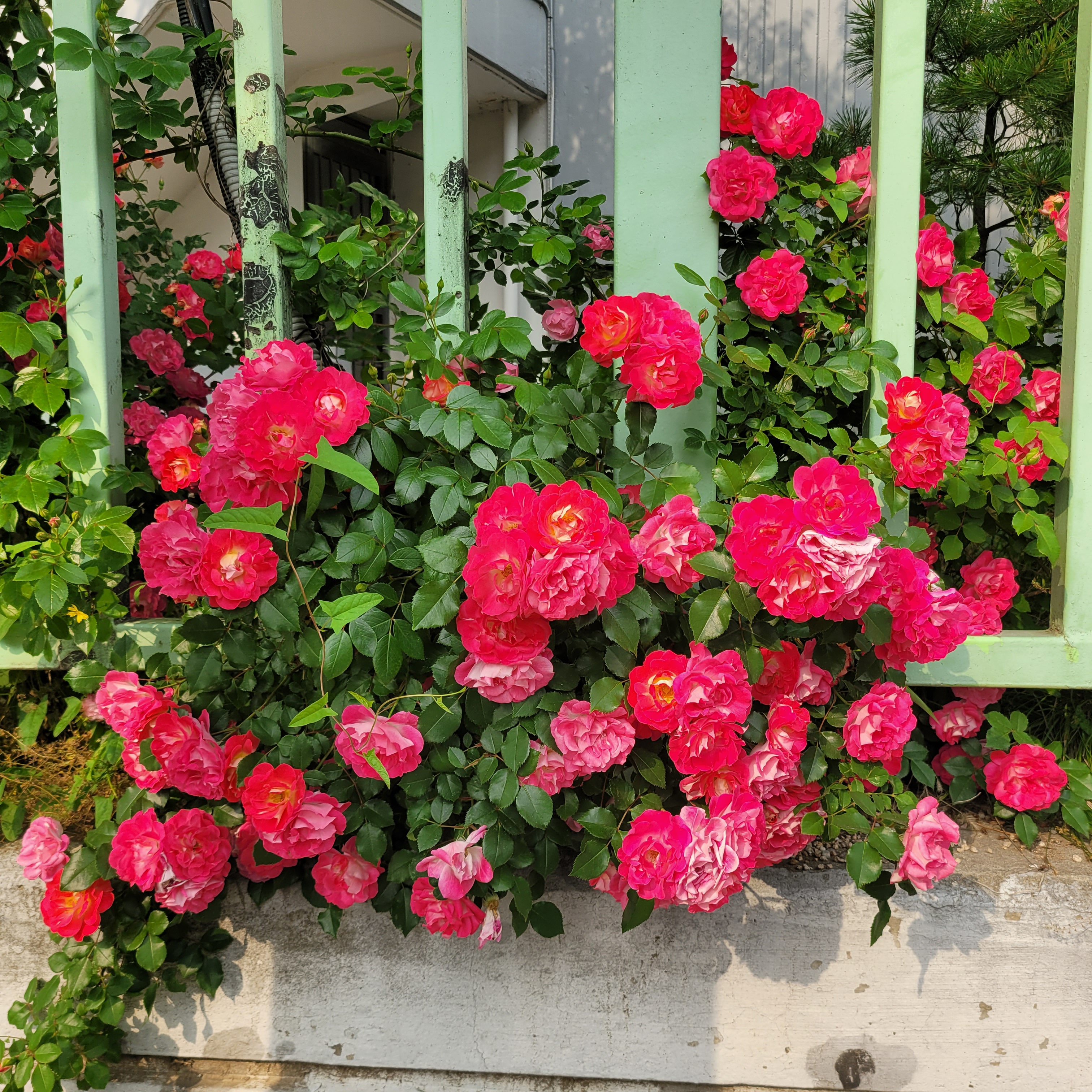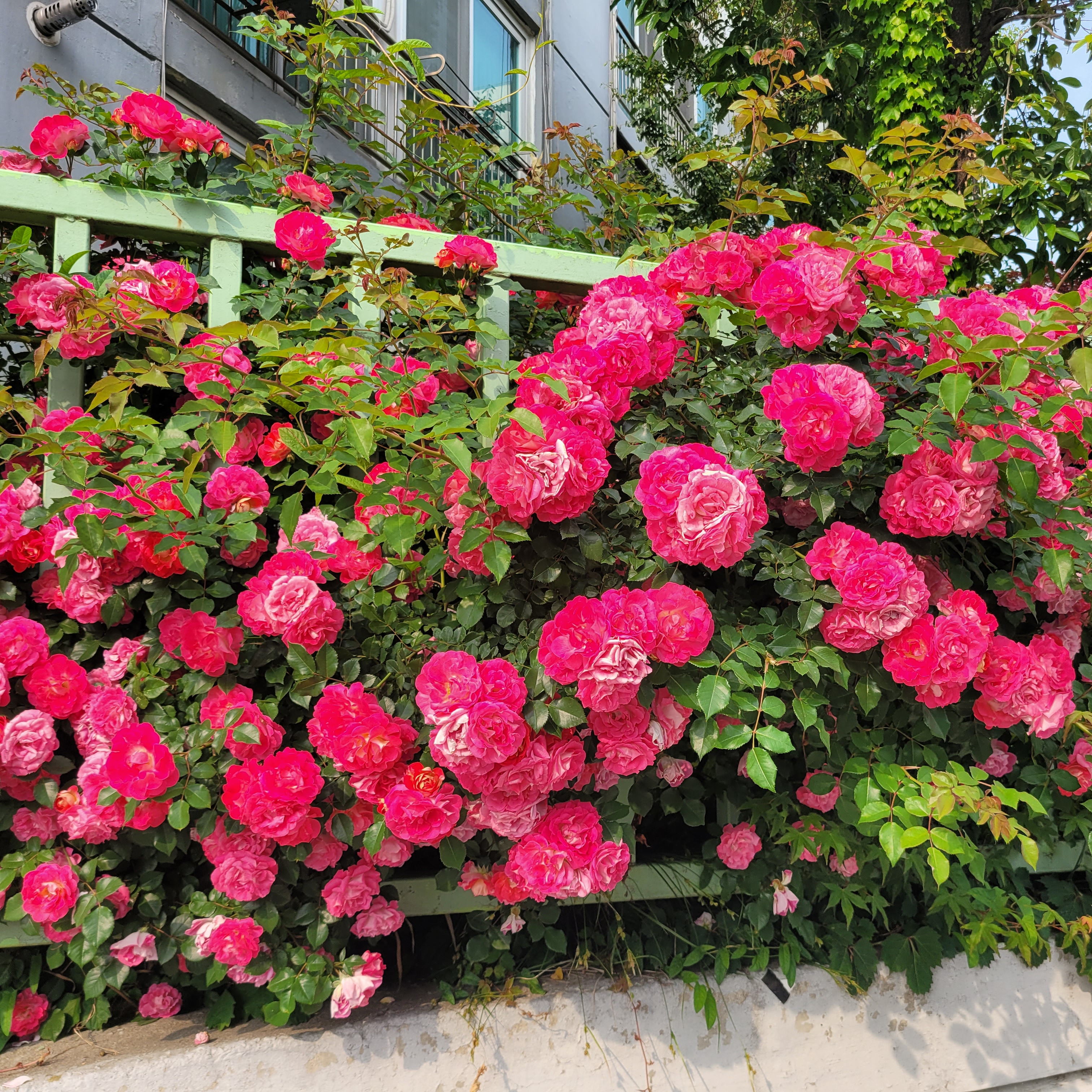 학교 담벼락 등지에 장미꽃이 아름답게 피었더라고요.