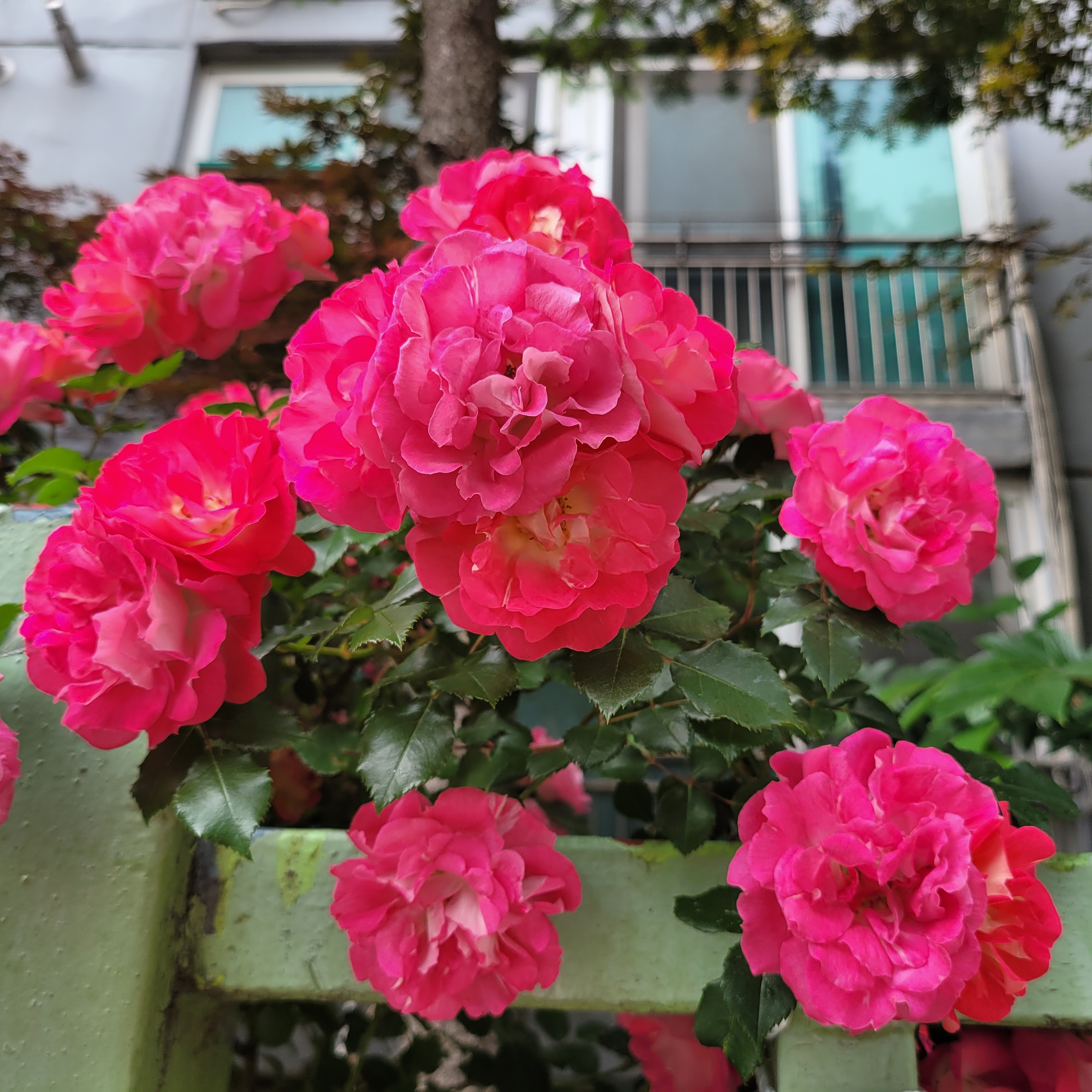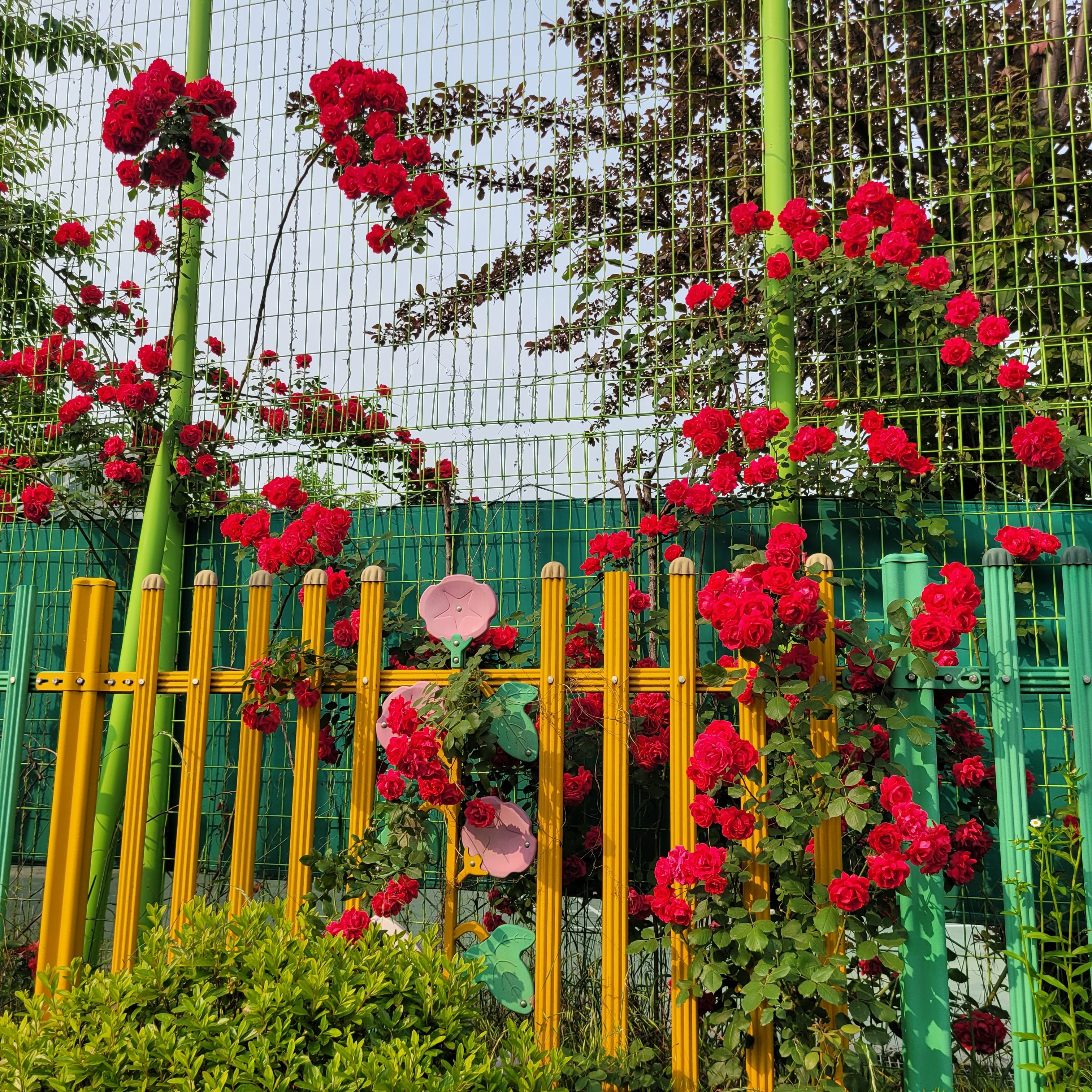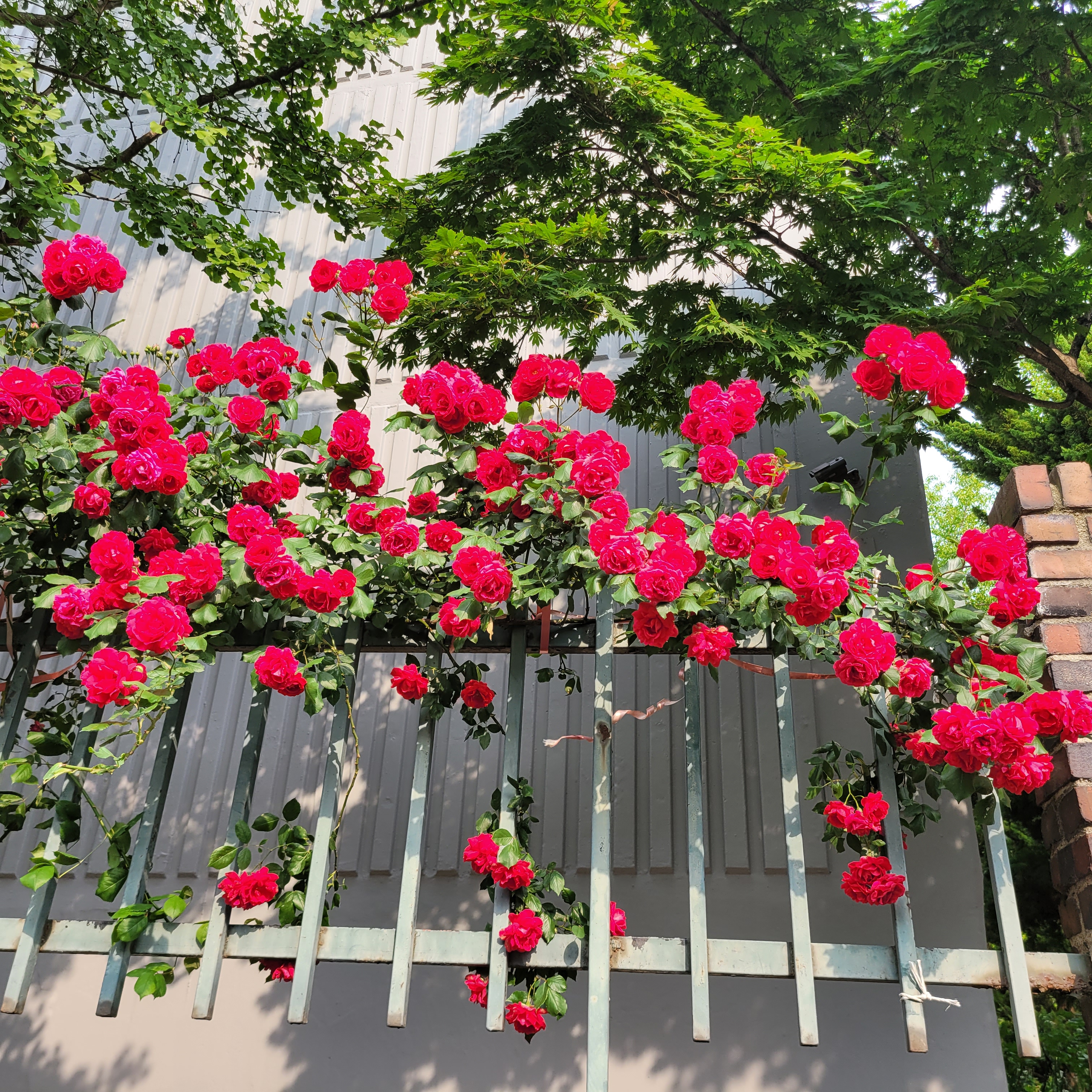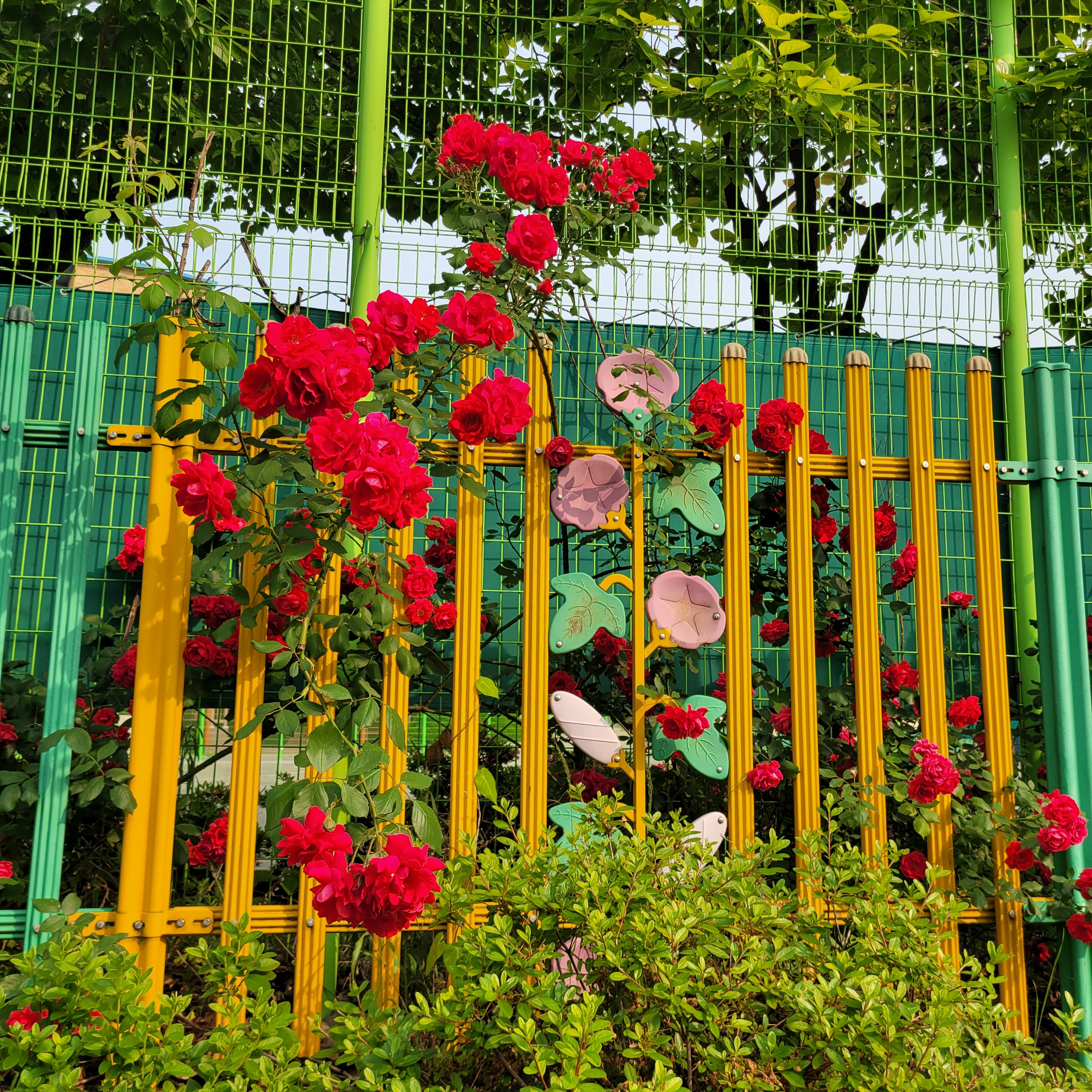 학교 담벼락 등지에 장미꽃이 아름답게 피었더라고요.