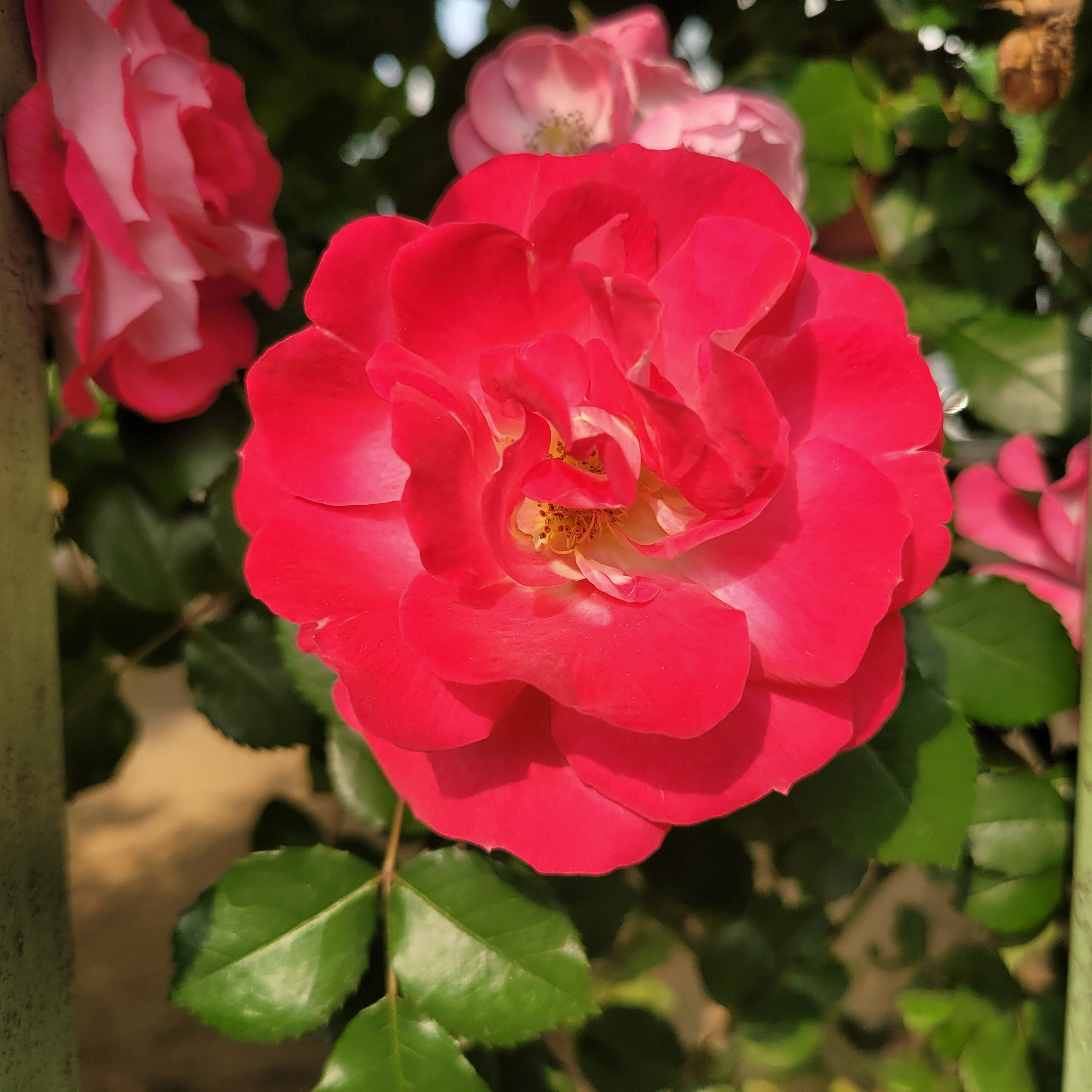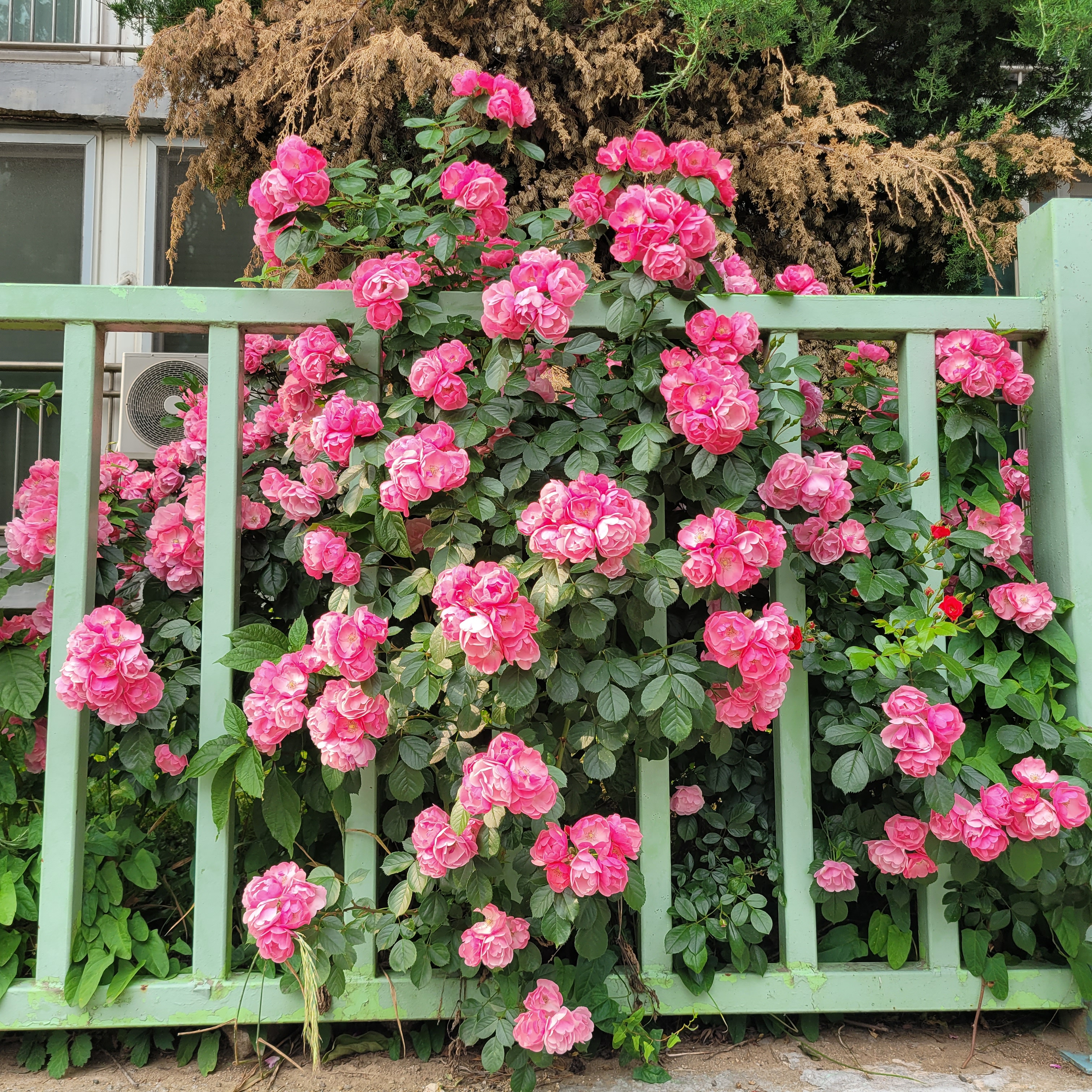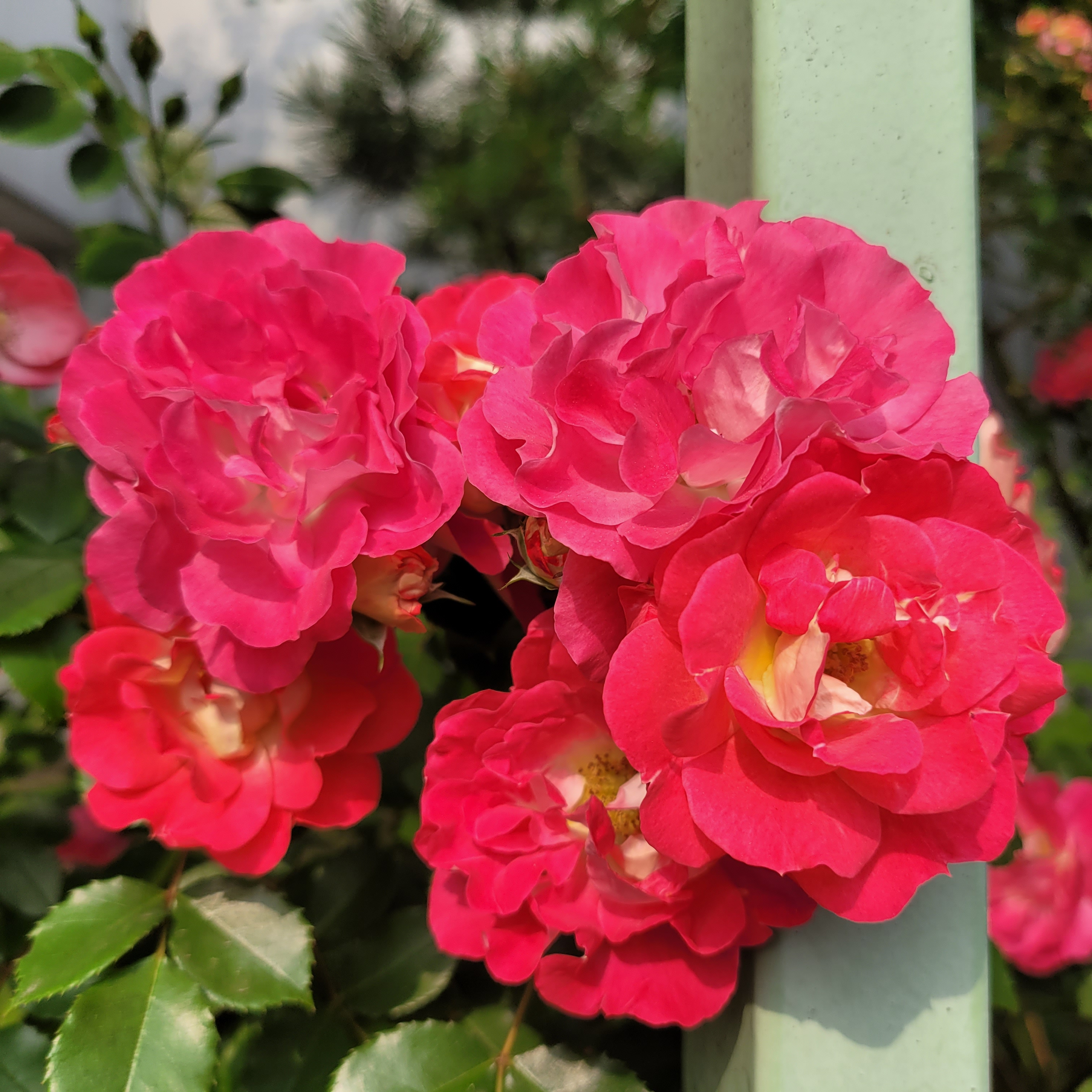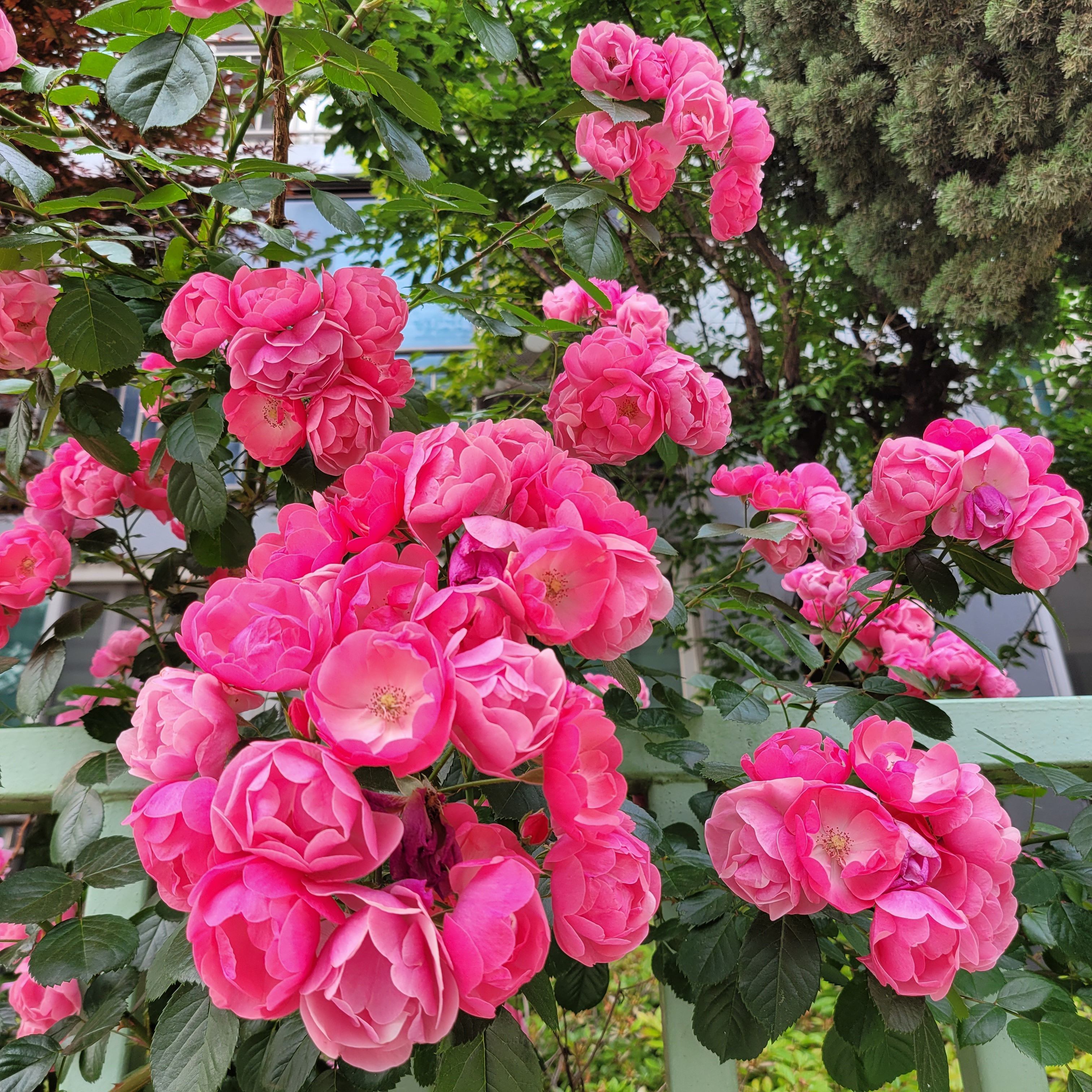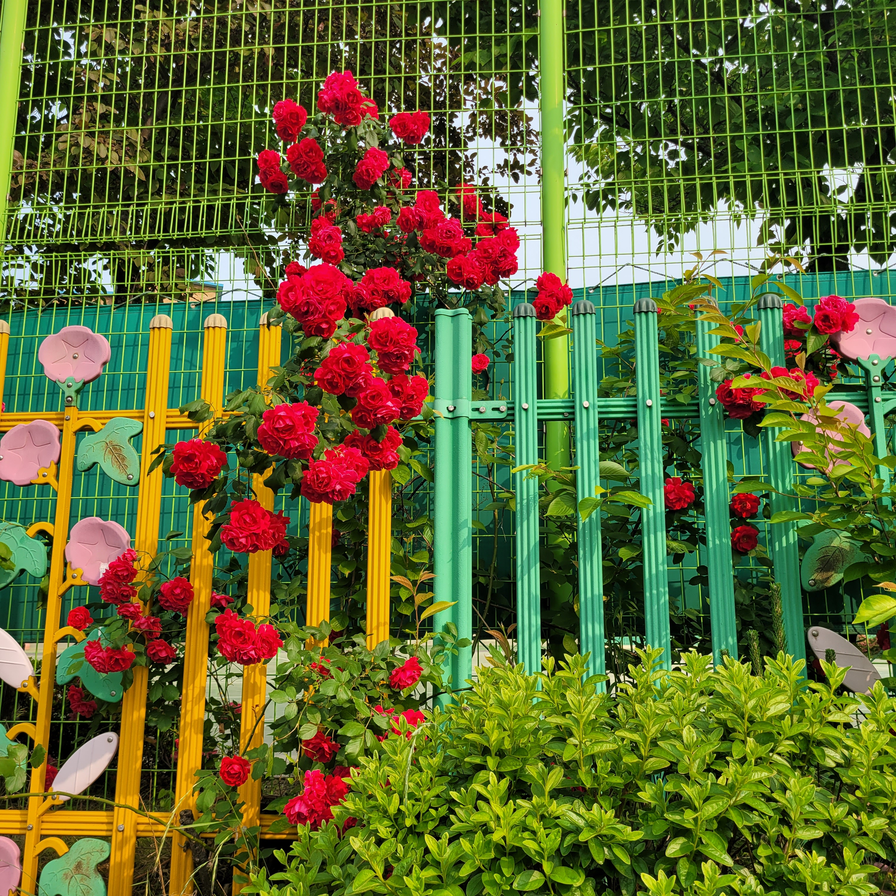 학교 담벼락 등지에 장미꽃이 아름답게 피었더라고요.