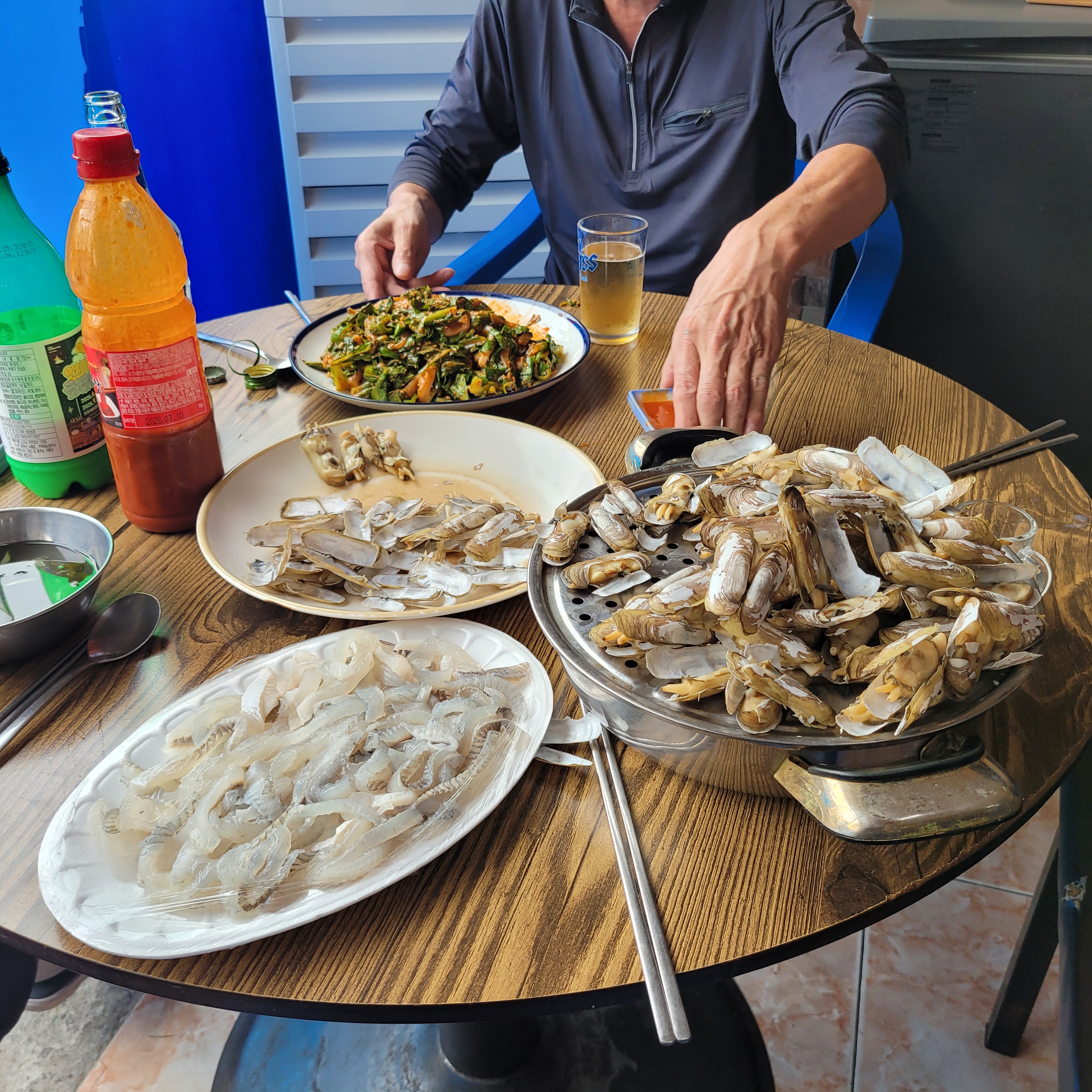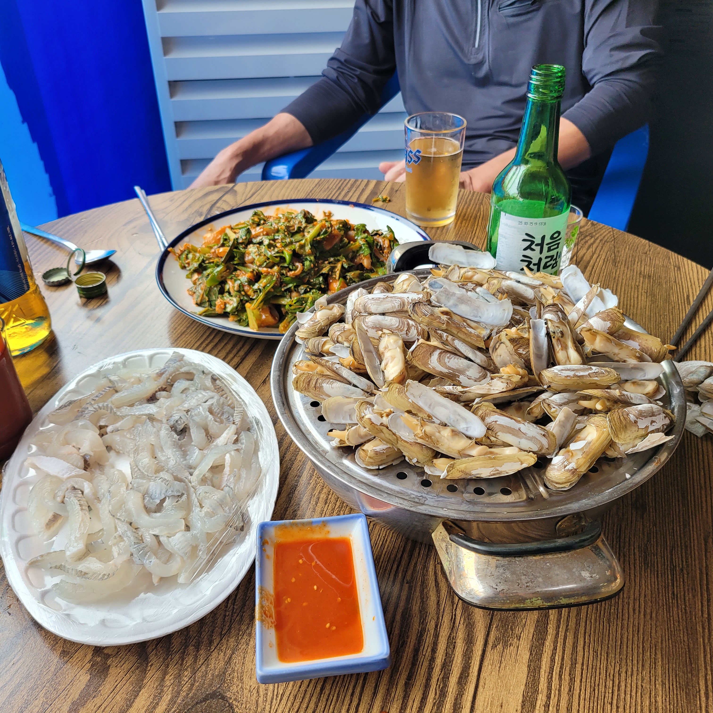 만나서 맛있는 회와 조개찜도 먹고 술한잔도 같이 했고요.