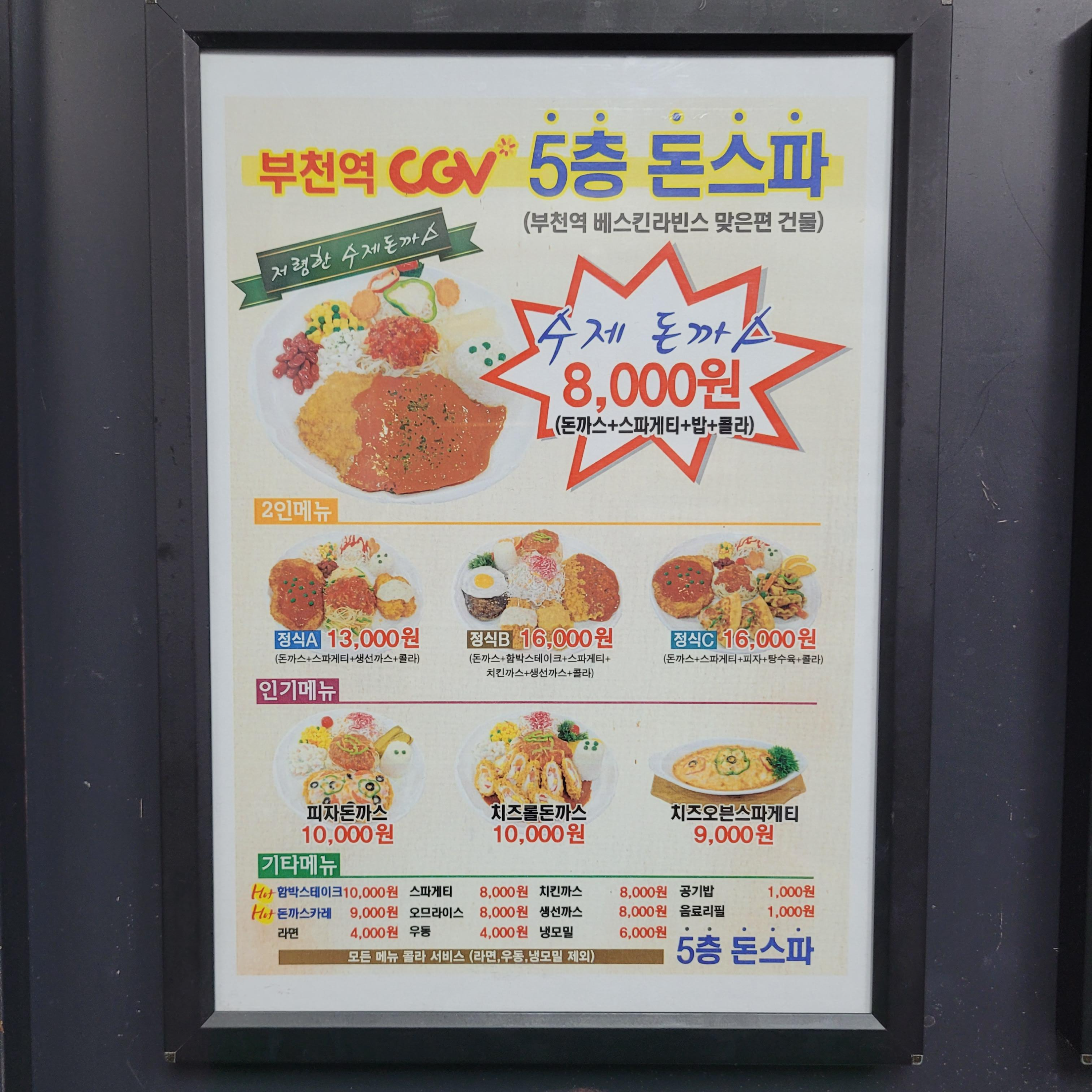 오늘 저녁에는 간만에 부천 CGV 5층 푸드코트에 있는 수제돈가스집