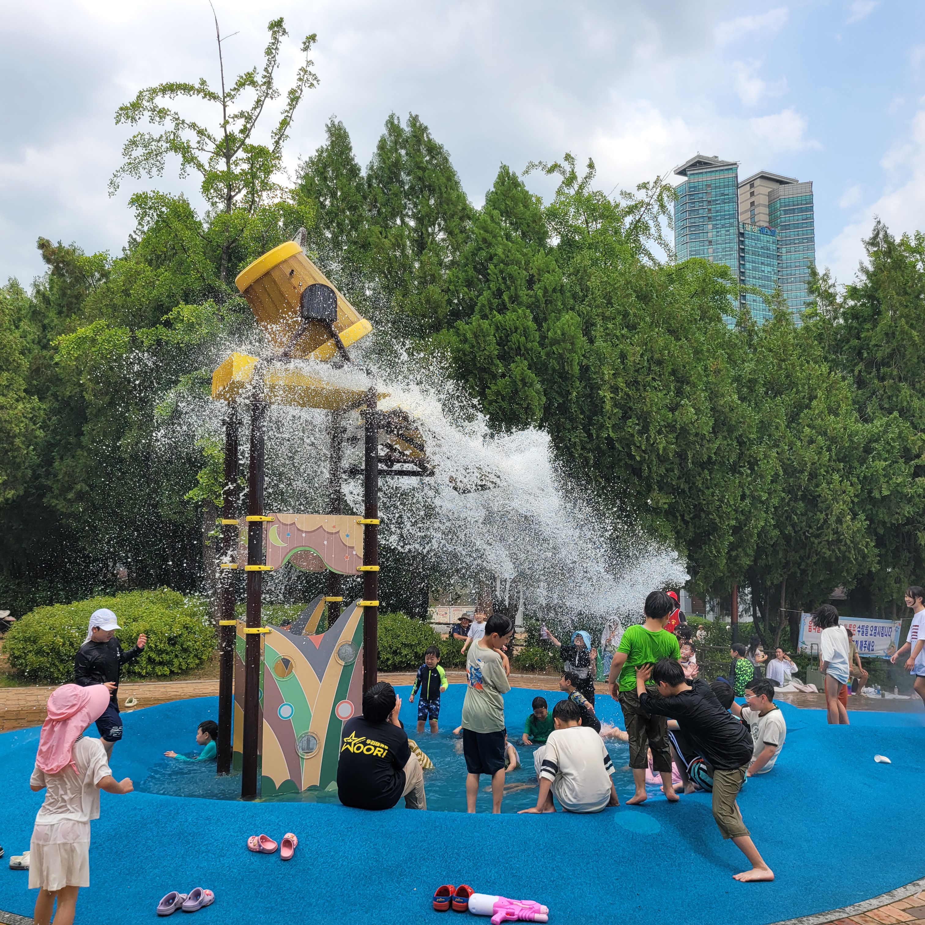 이밖에도 물놀이장에서 시원한 물놀이 풍경과 먹거리를 파는 서로장터 운동을