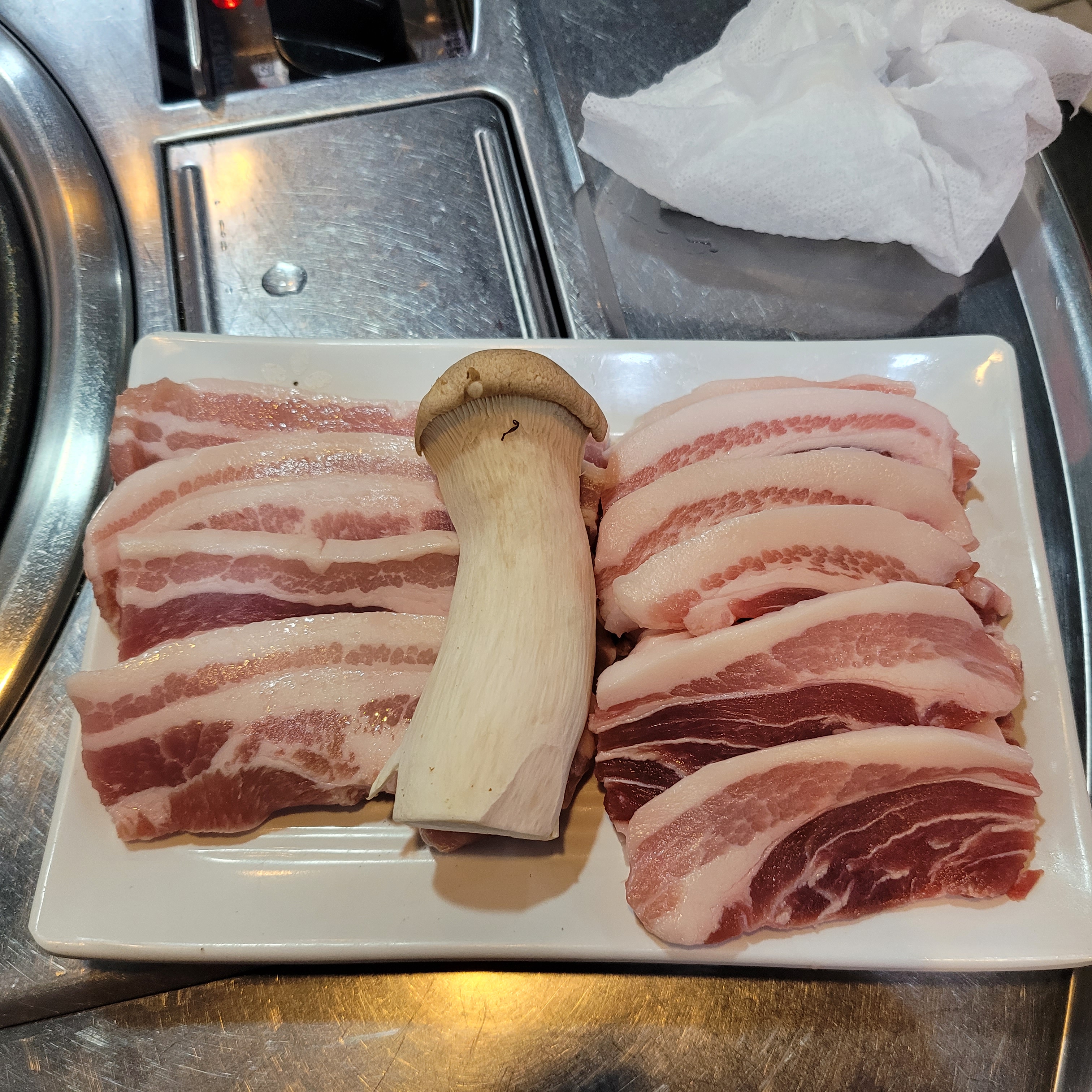 올해 2월 이후 몇달만에 다시 가서 삼겹살 1인분에 꽃살 1인분 시켜 구워먹었는데 역시나