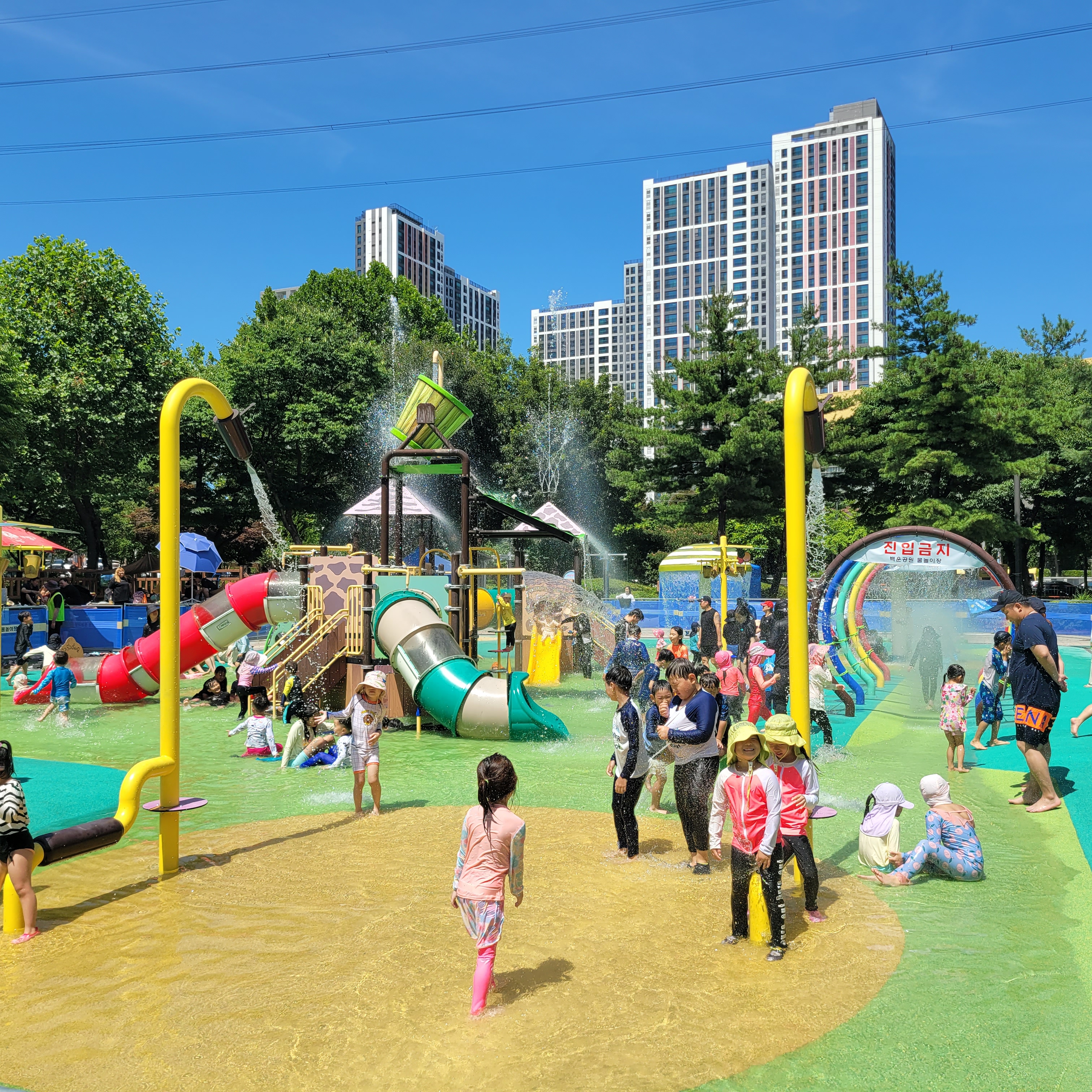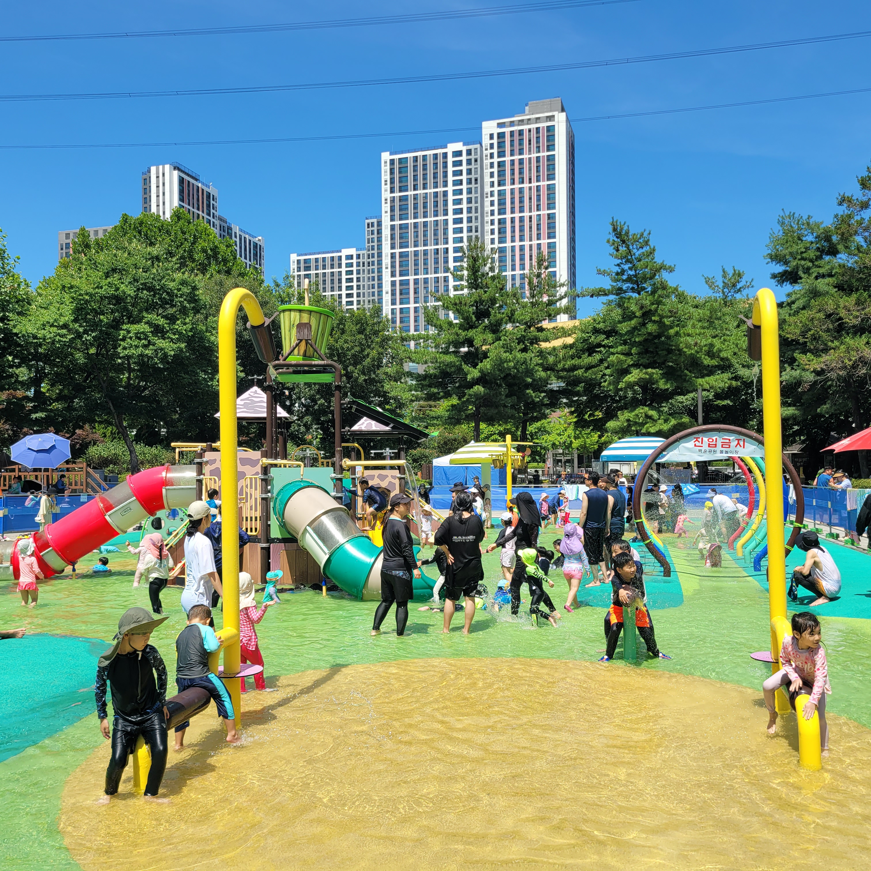 백운공원 물놀이장 풍경 사진들 올리겠습니다. 백운공원 물놀이장은 재작년과