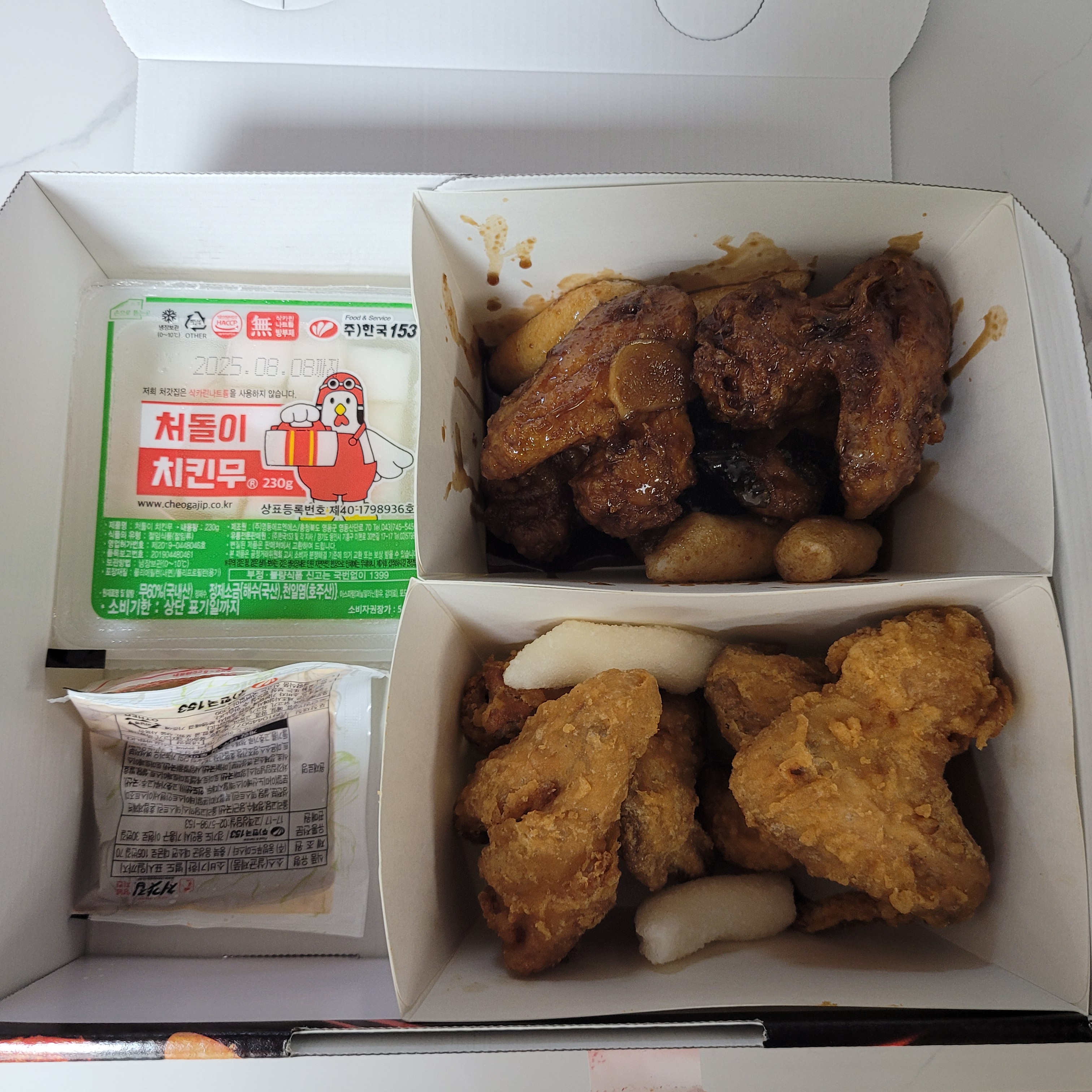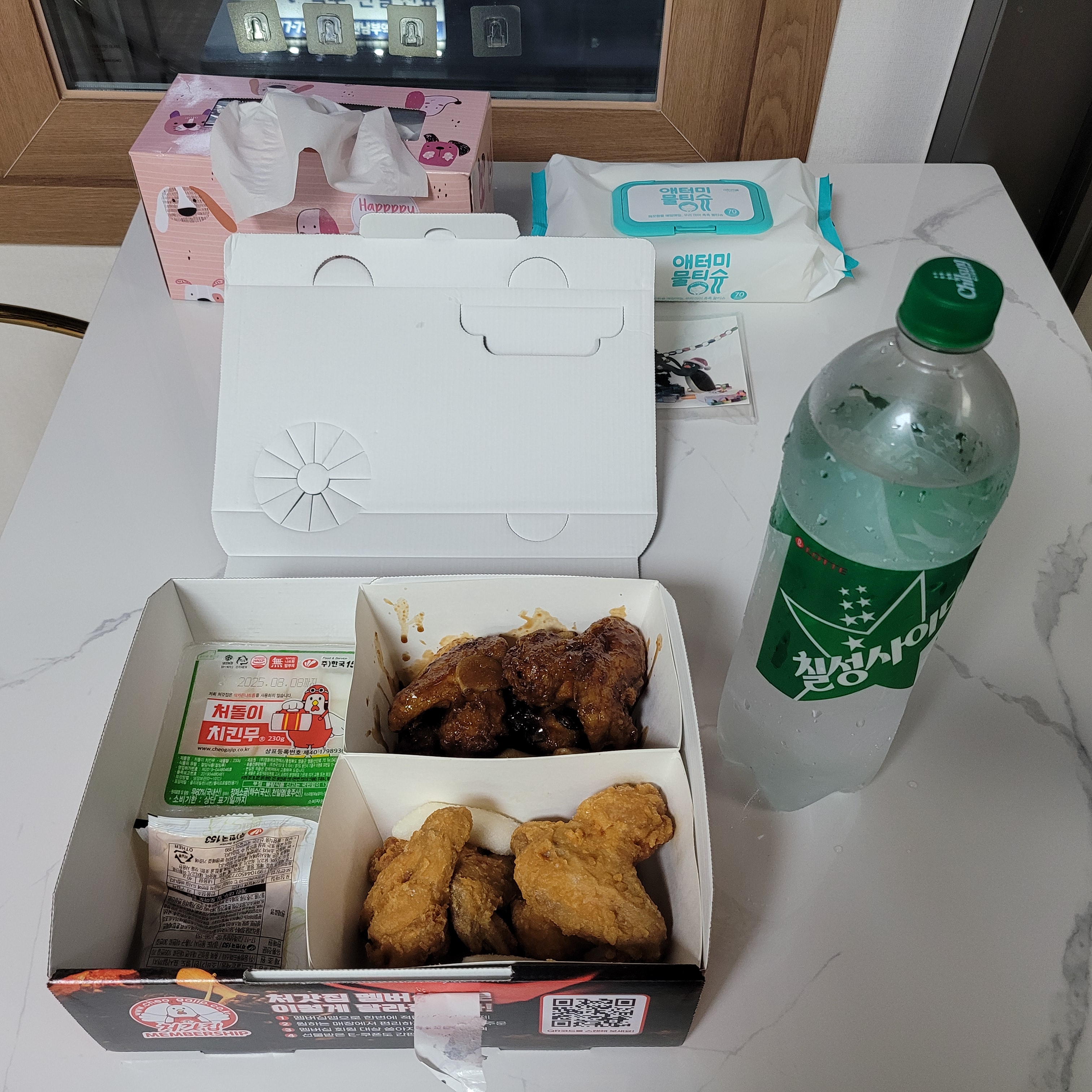 저녁에 가끔씩 시켜먹었던 처갓집 양념치킨 원미점에서 닭날개세트 반반을