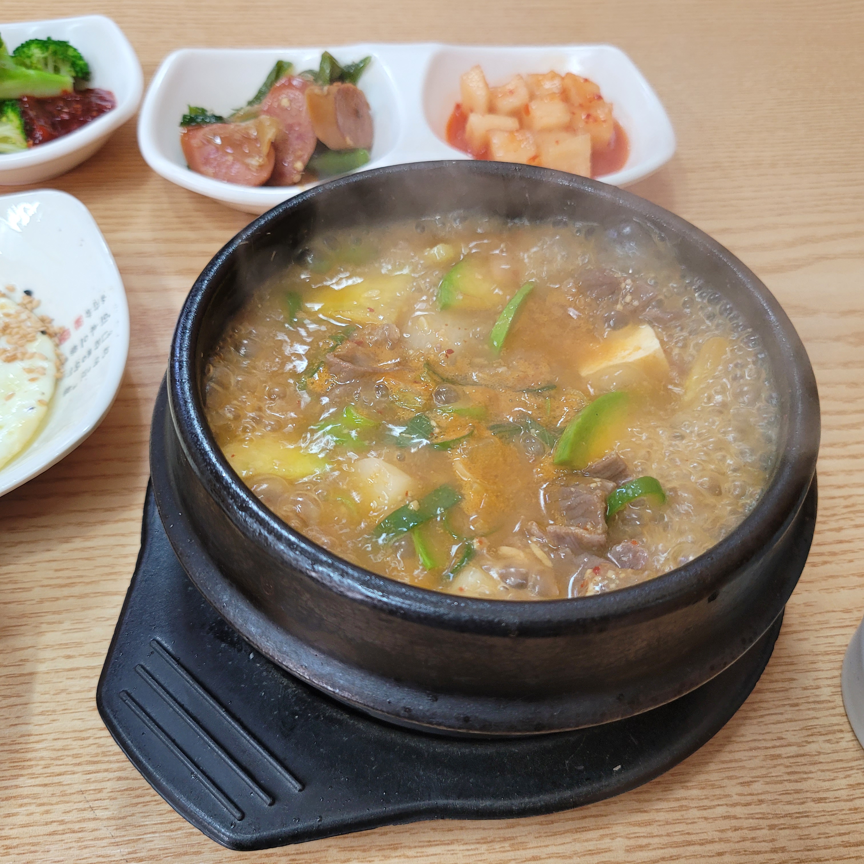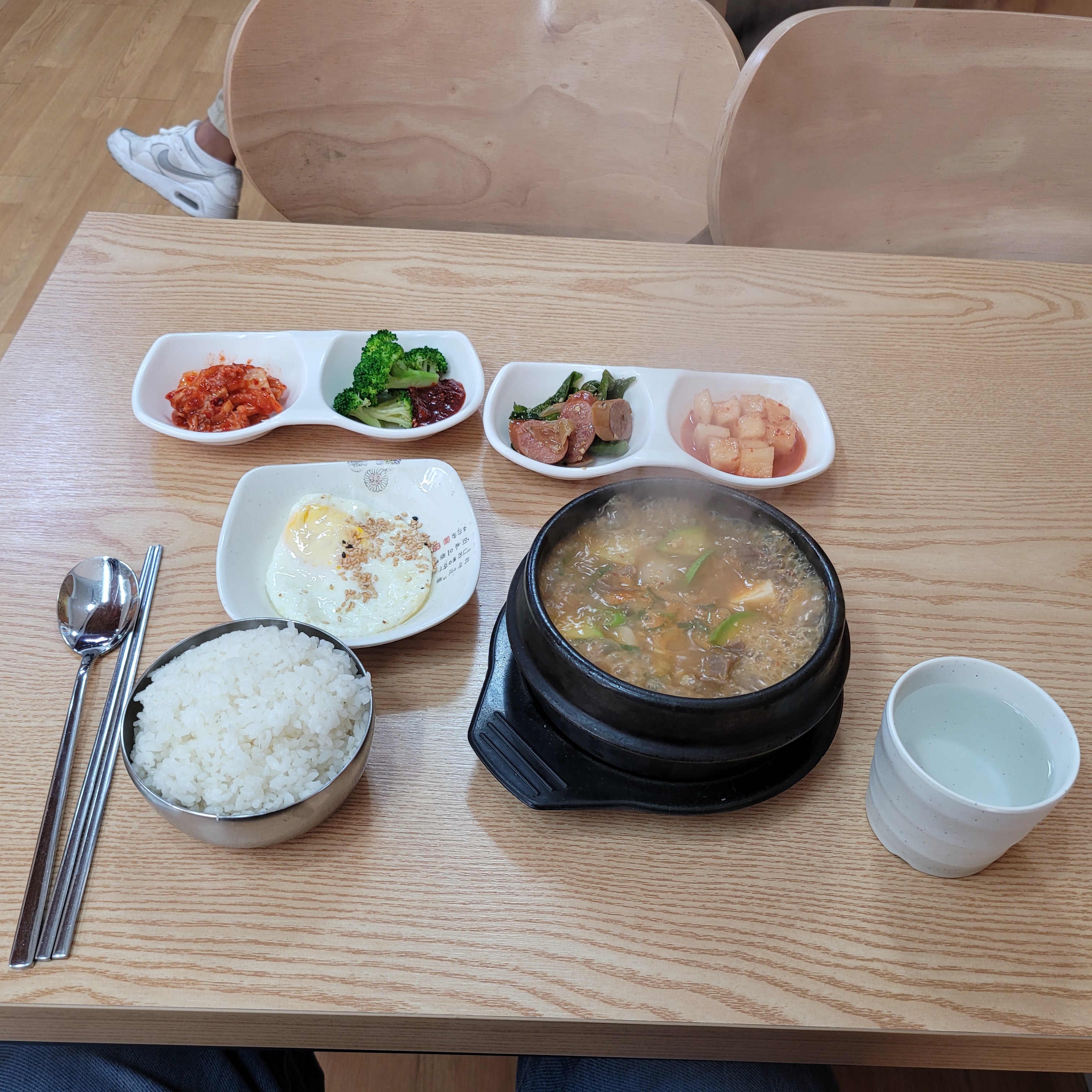 오늘 점심은 간만에 부자김밥집에서 차돌된장찌개에 계란후라이 추가해서 먹었네요.