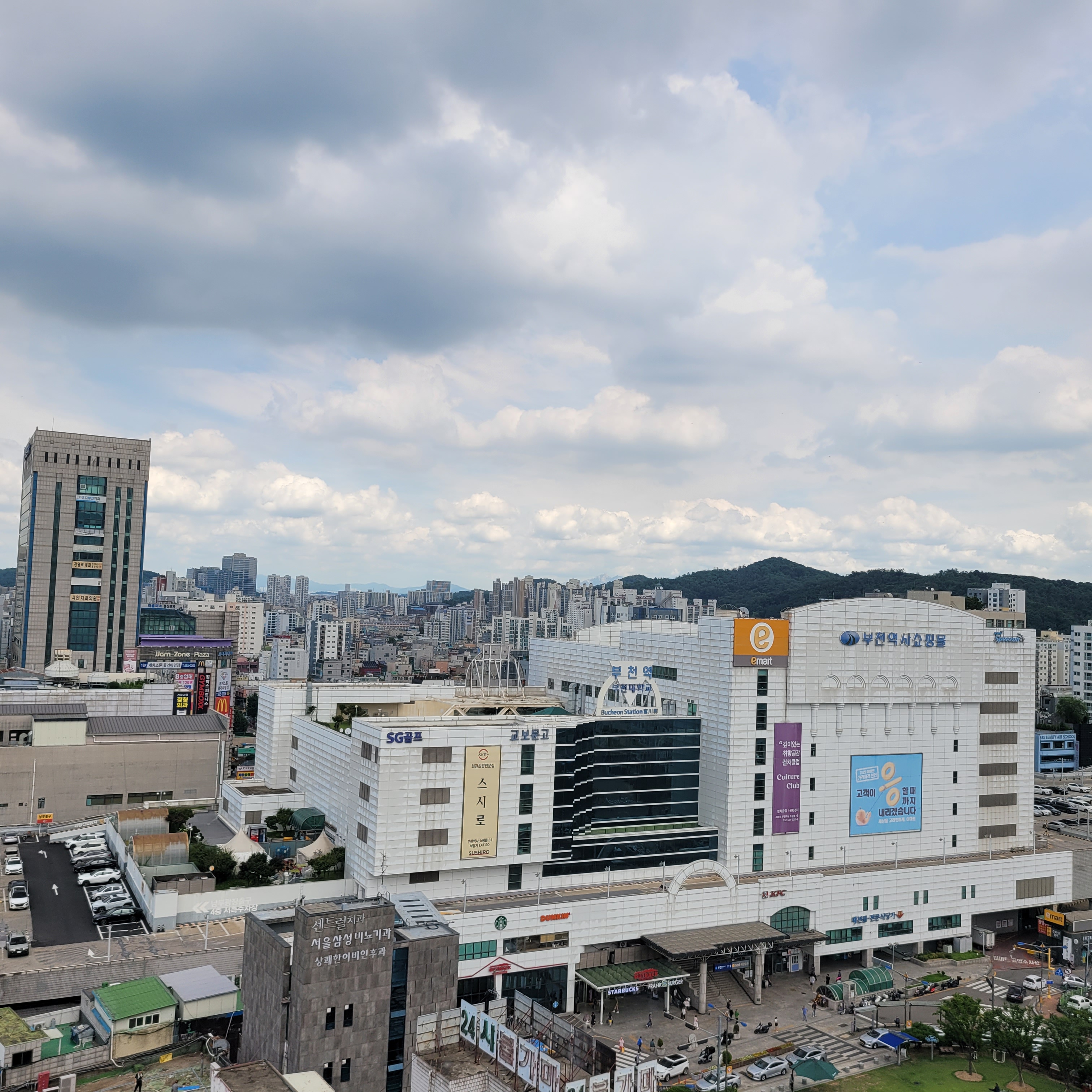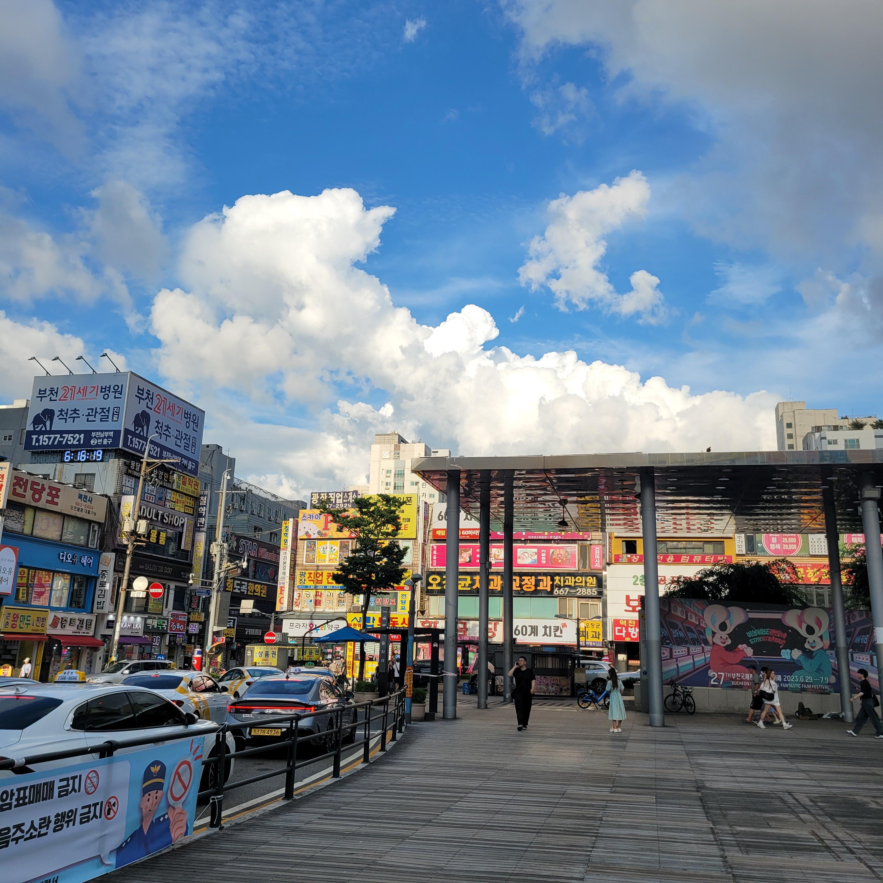 저녁에는 간식먹으러 가는 길에 부천북부역 마루광장 쪽 하늘도 사진으로