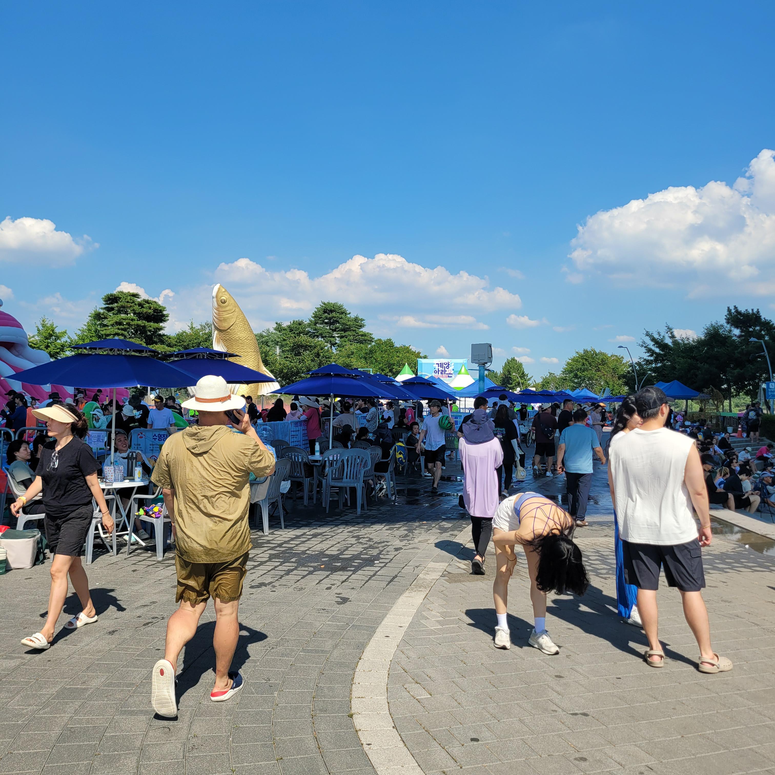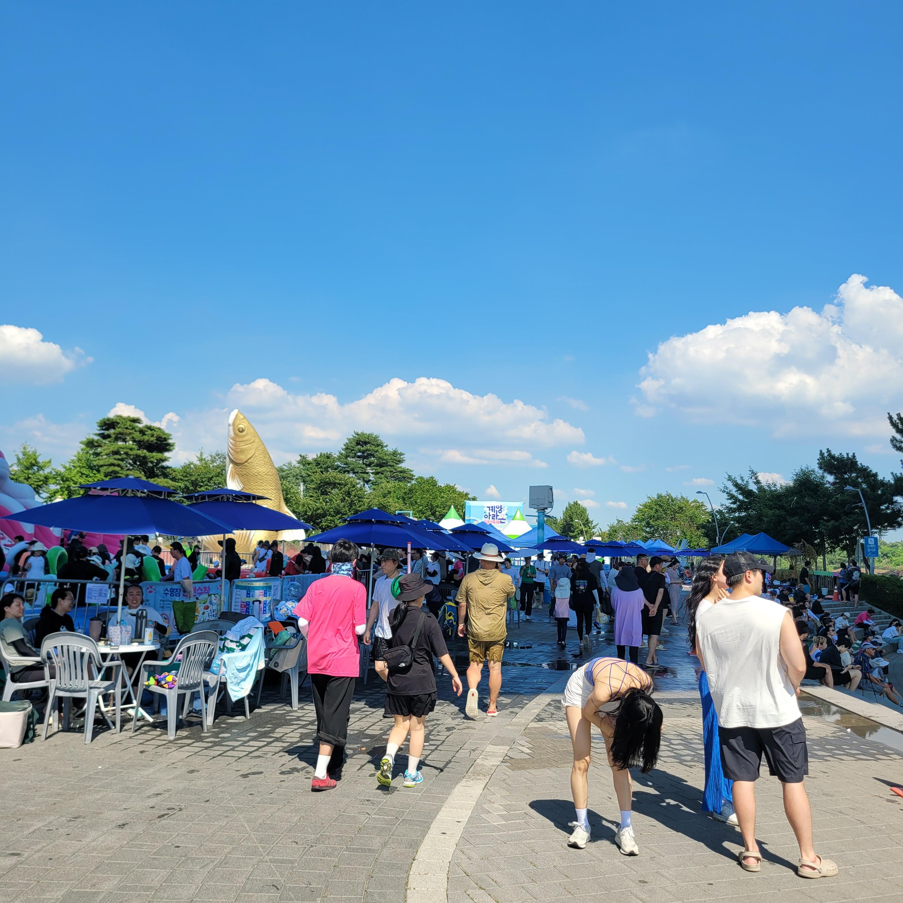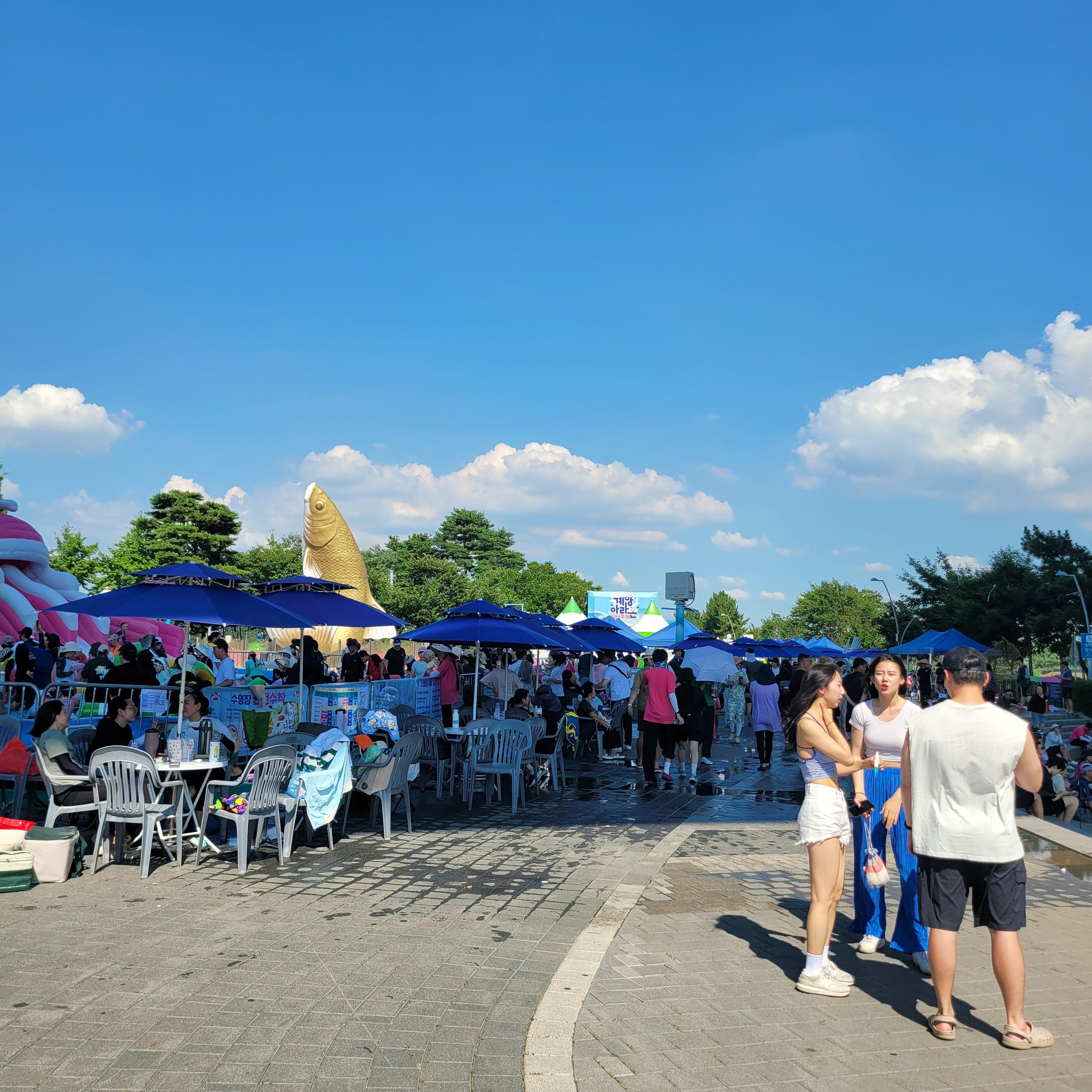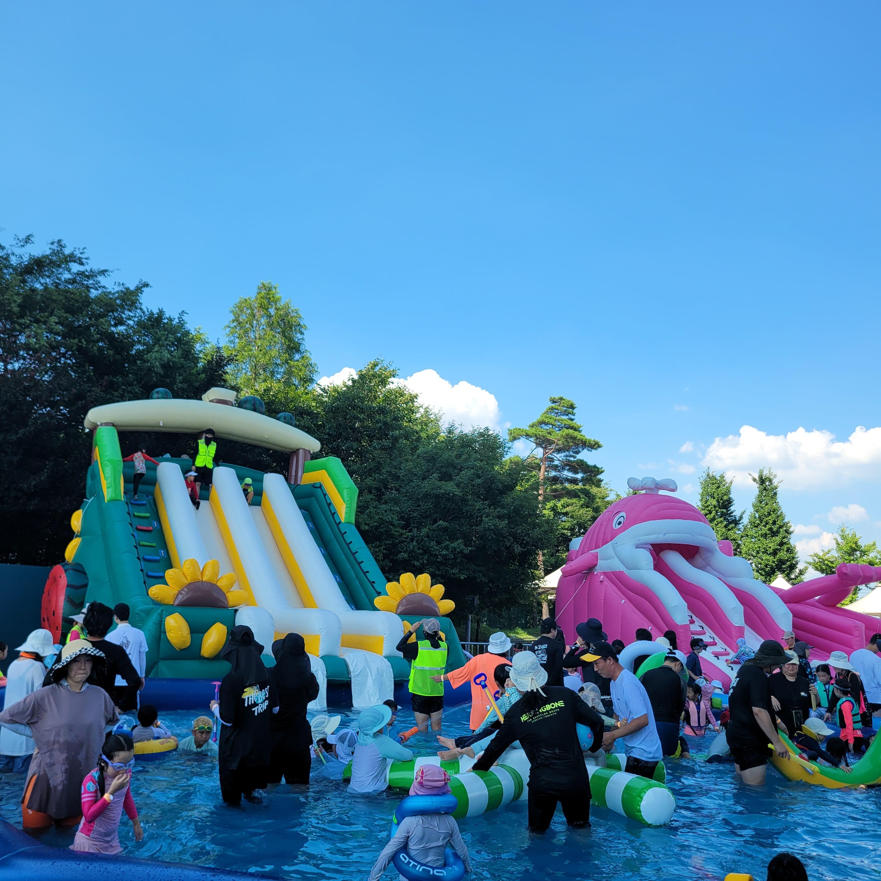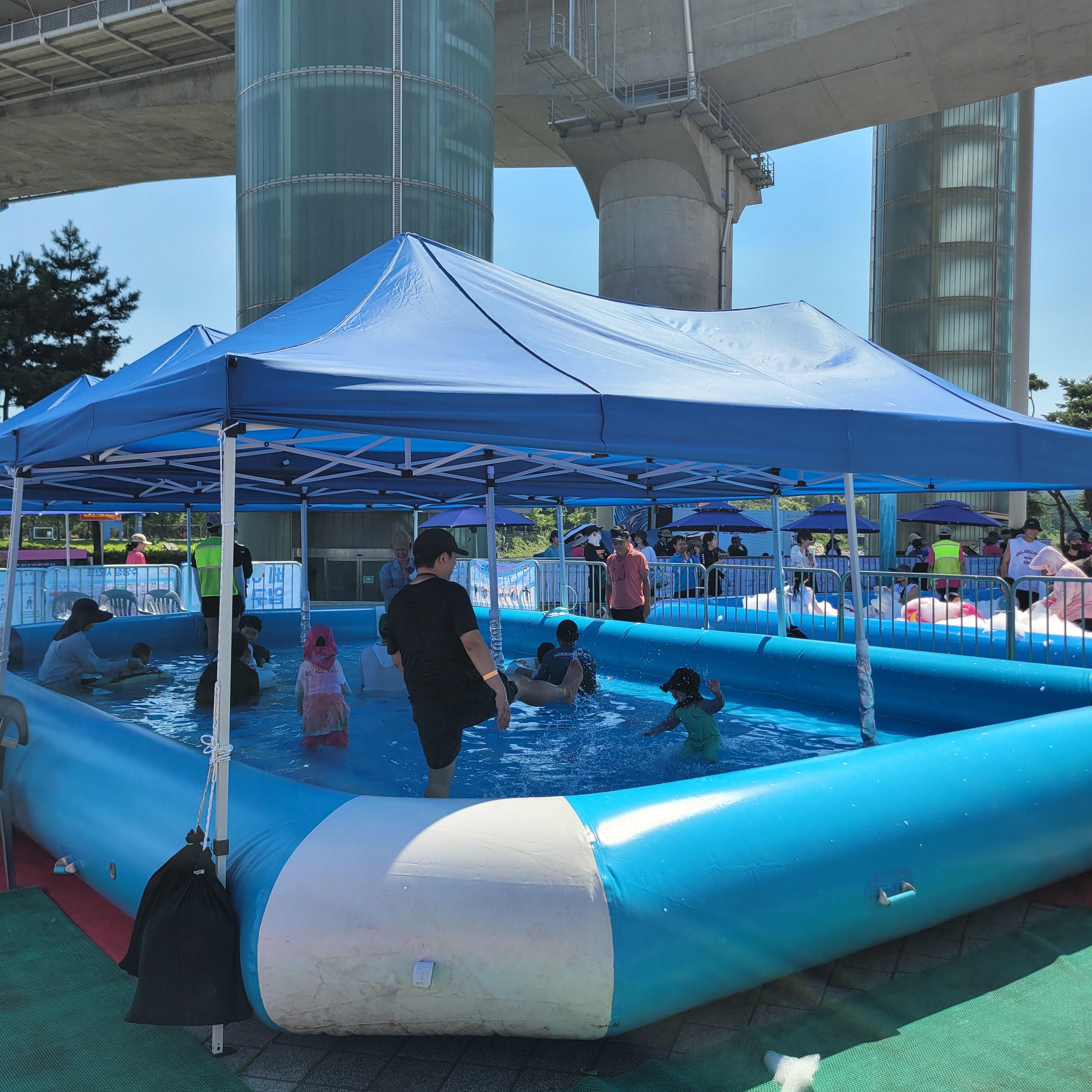 축제장에 와보니 축제장 곳곳에 인공으로 만든 워터파크 풀장이 만들어져서