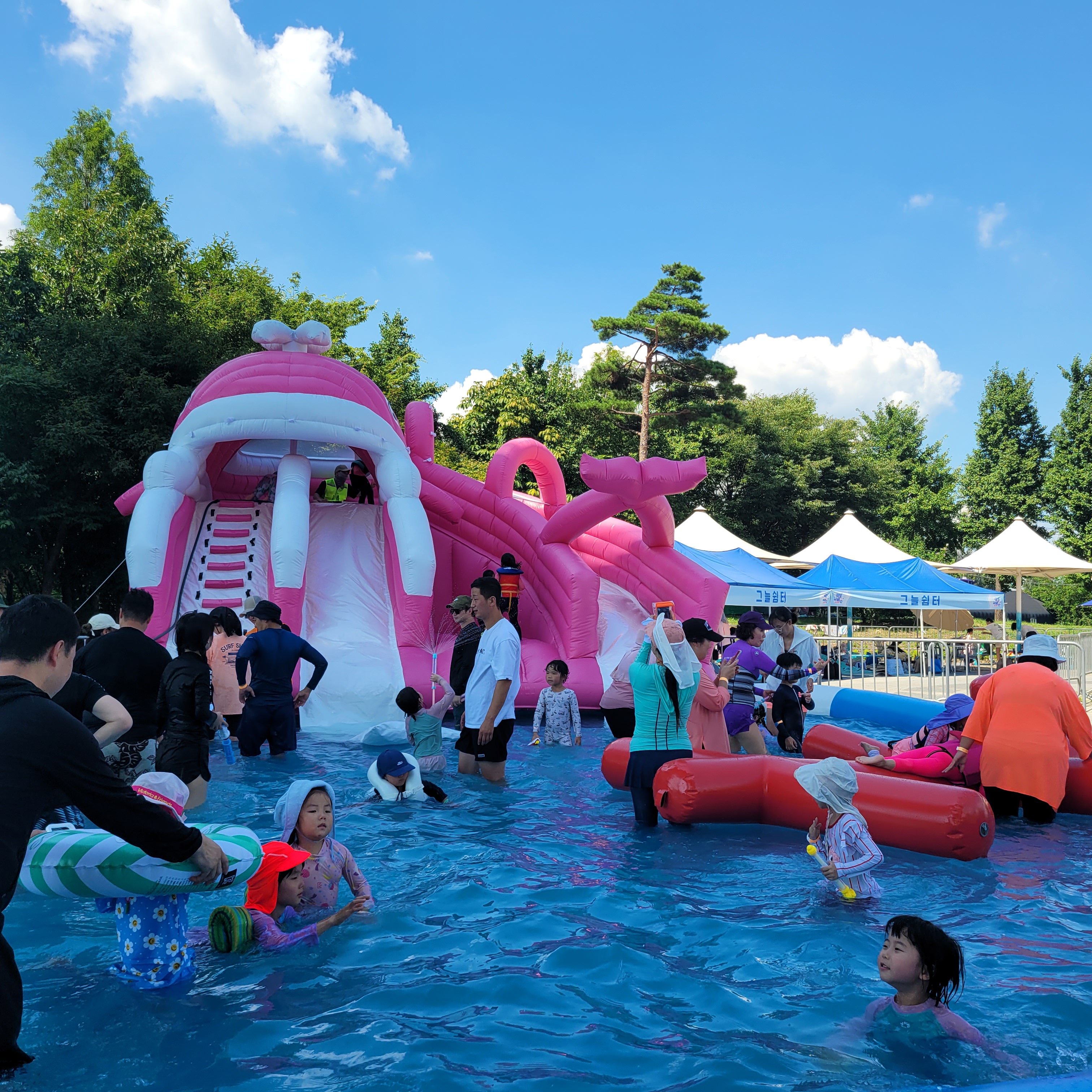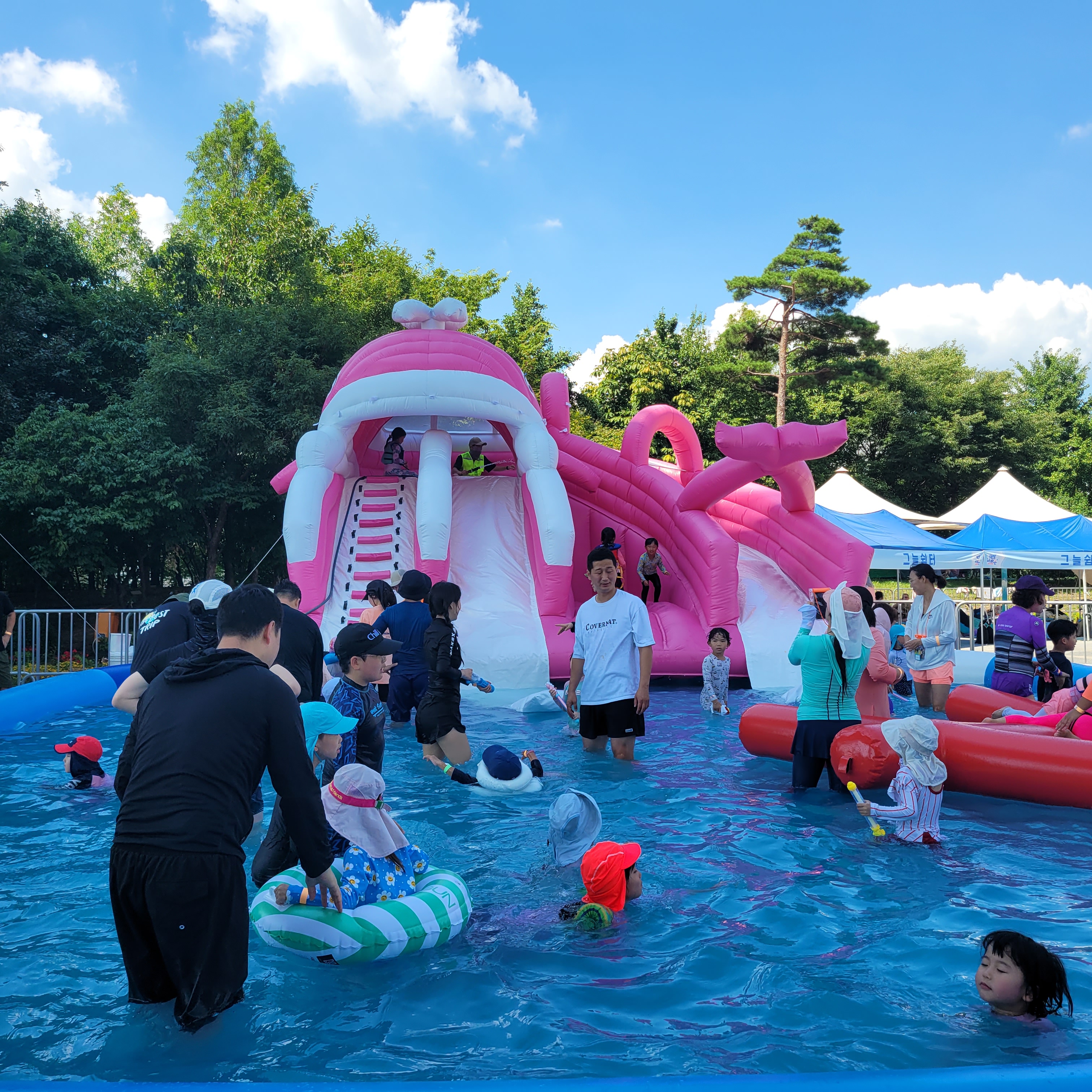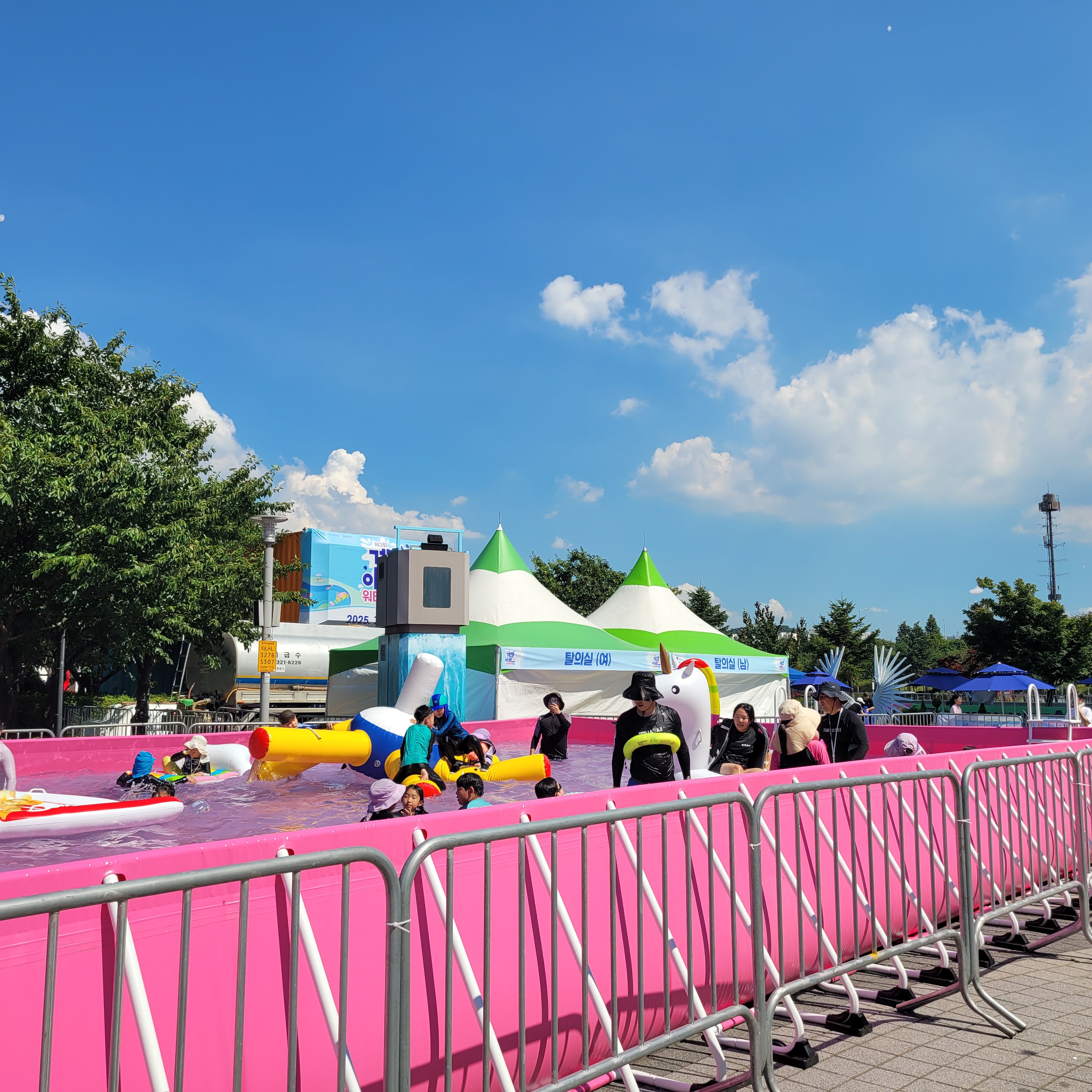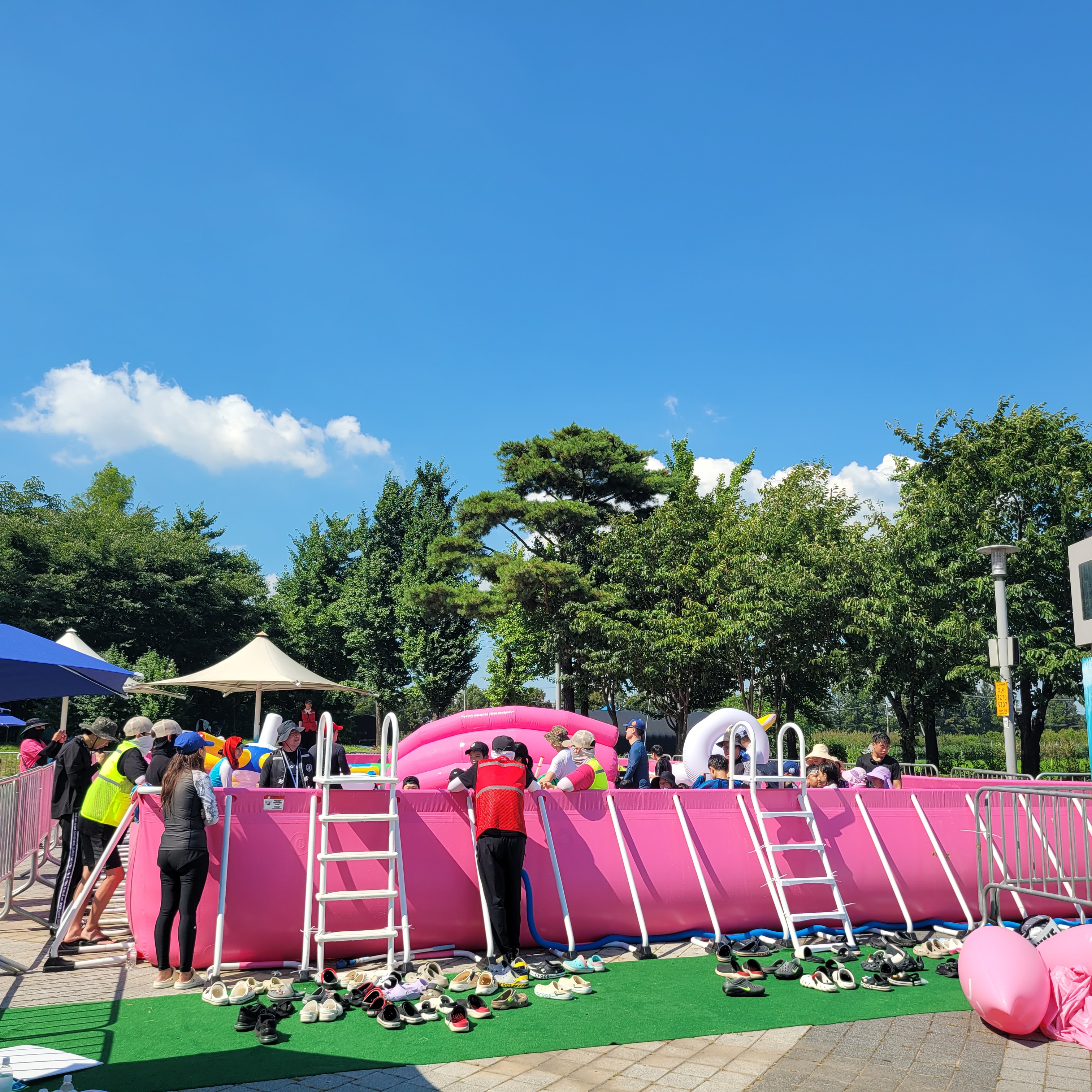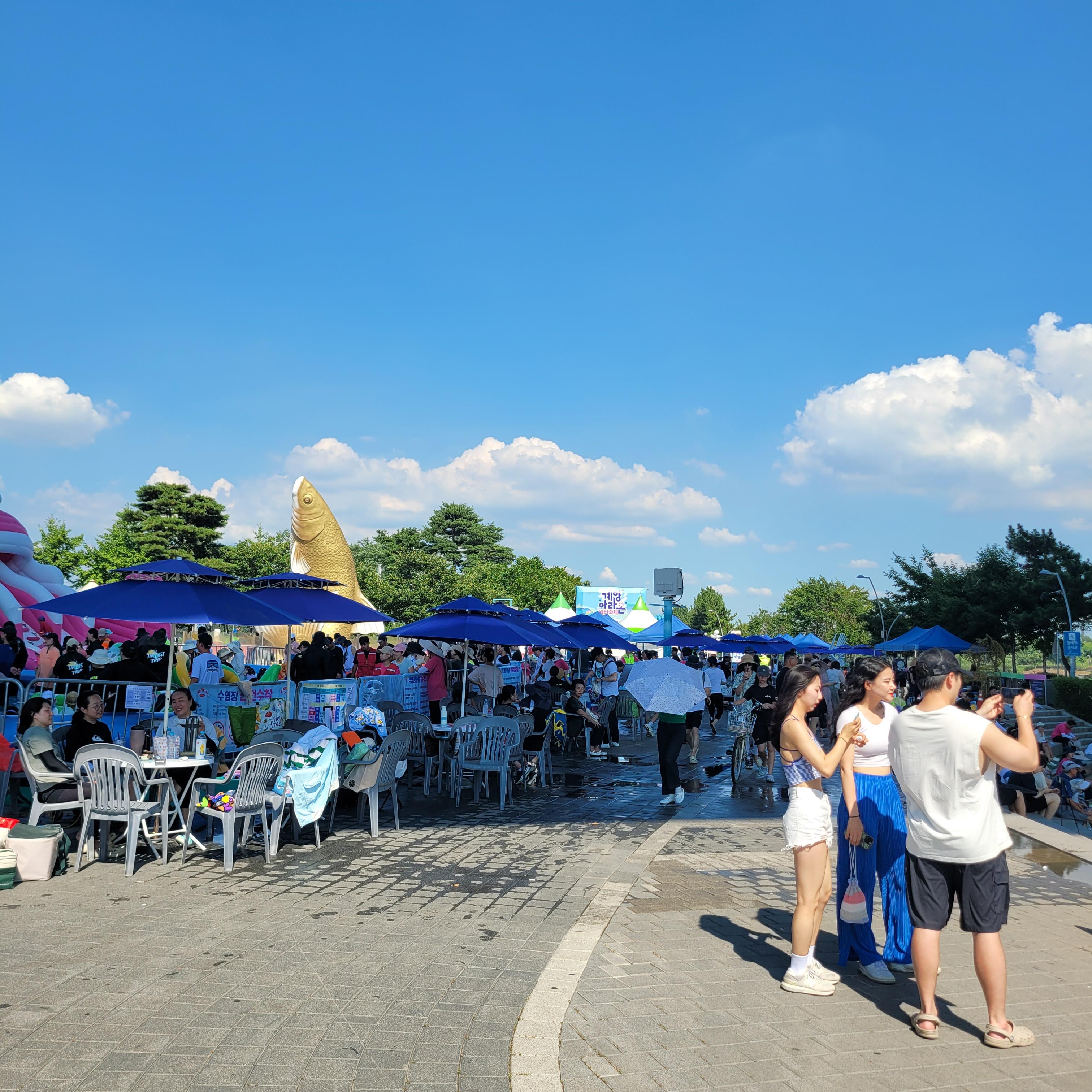 축제장에 와보니 축제장 곳곳에 인공으로 만든 워터파크 풀장이 만들어져서