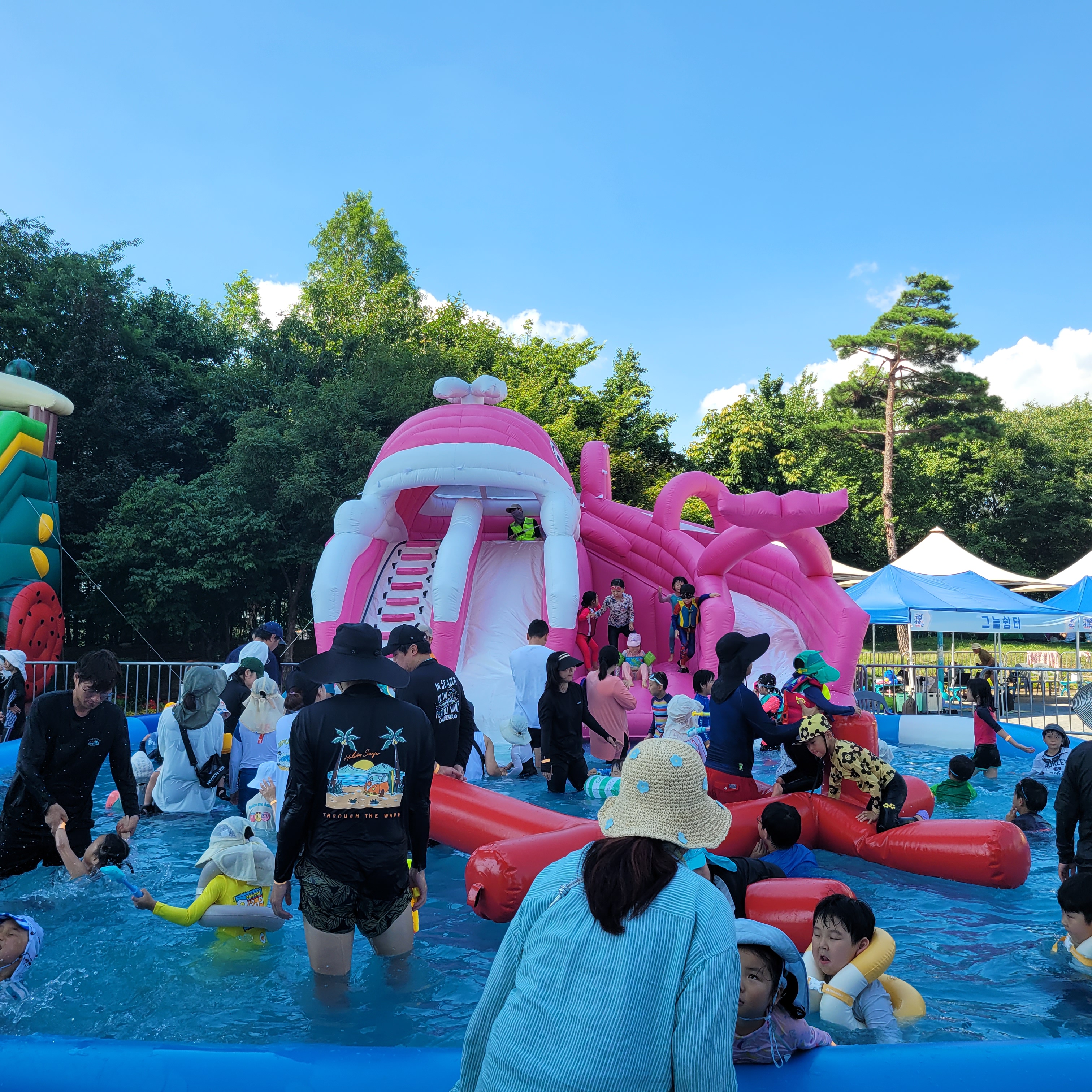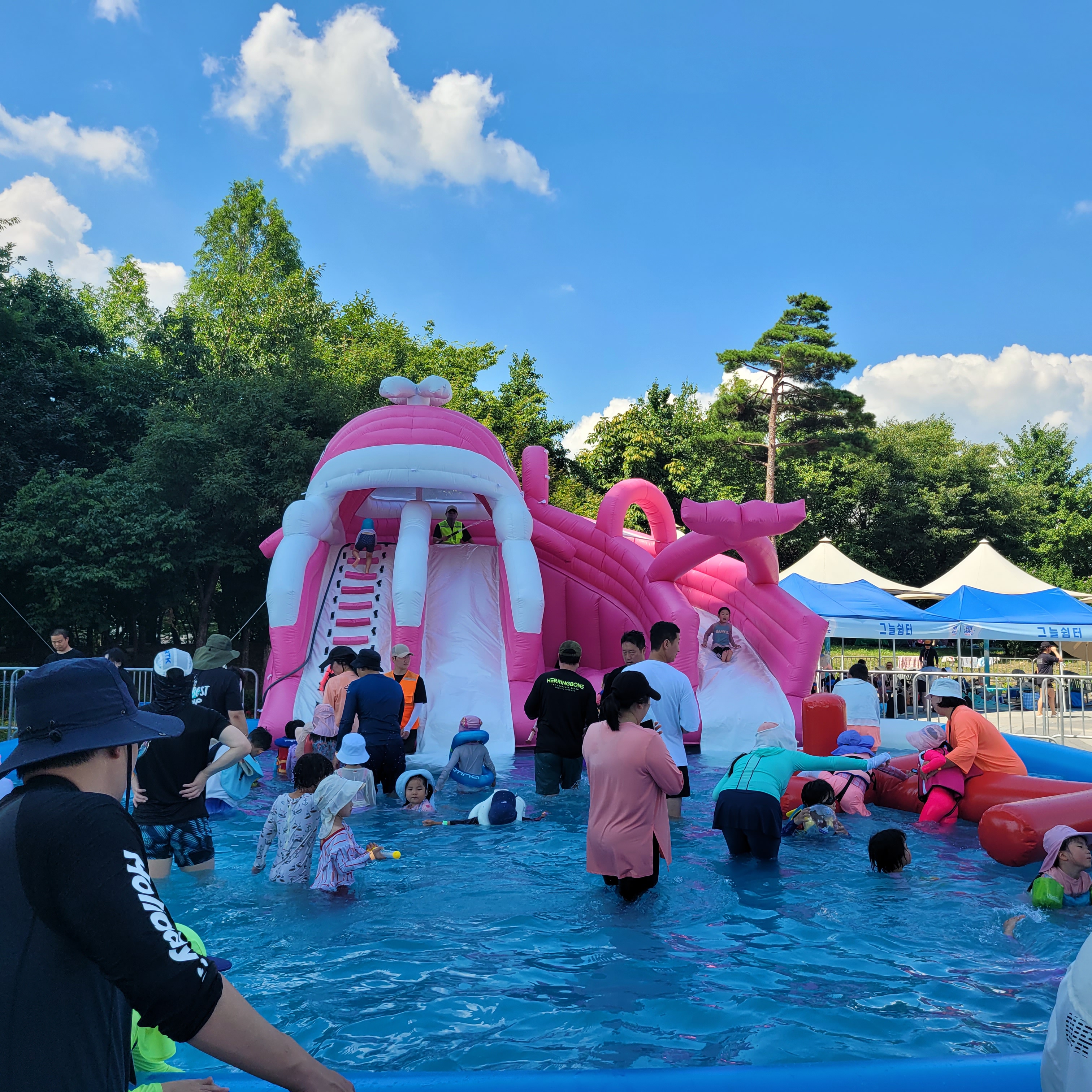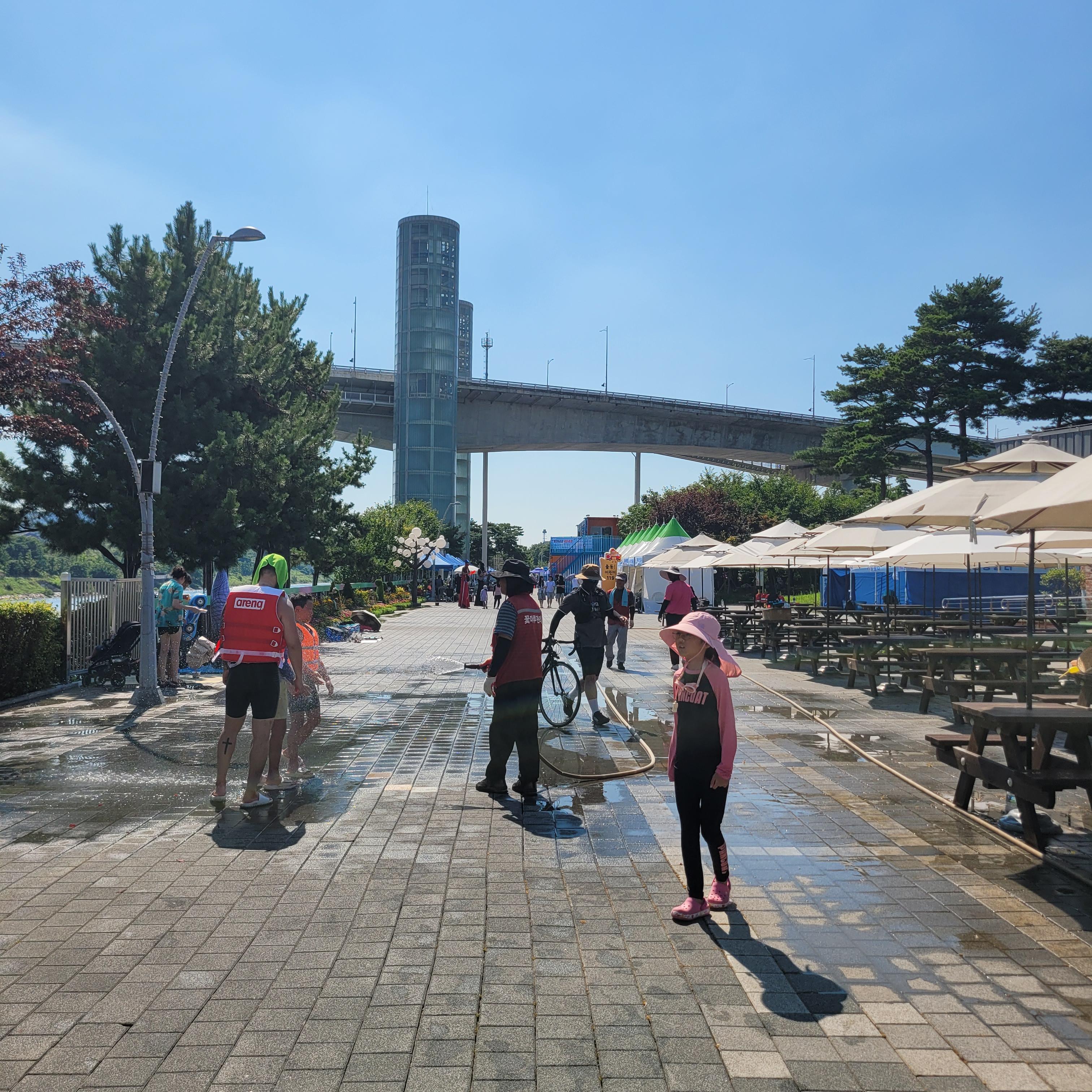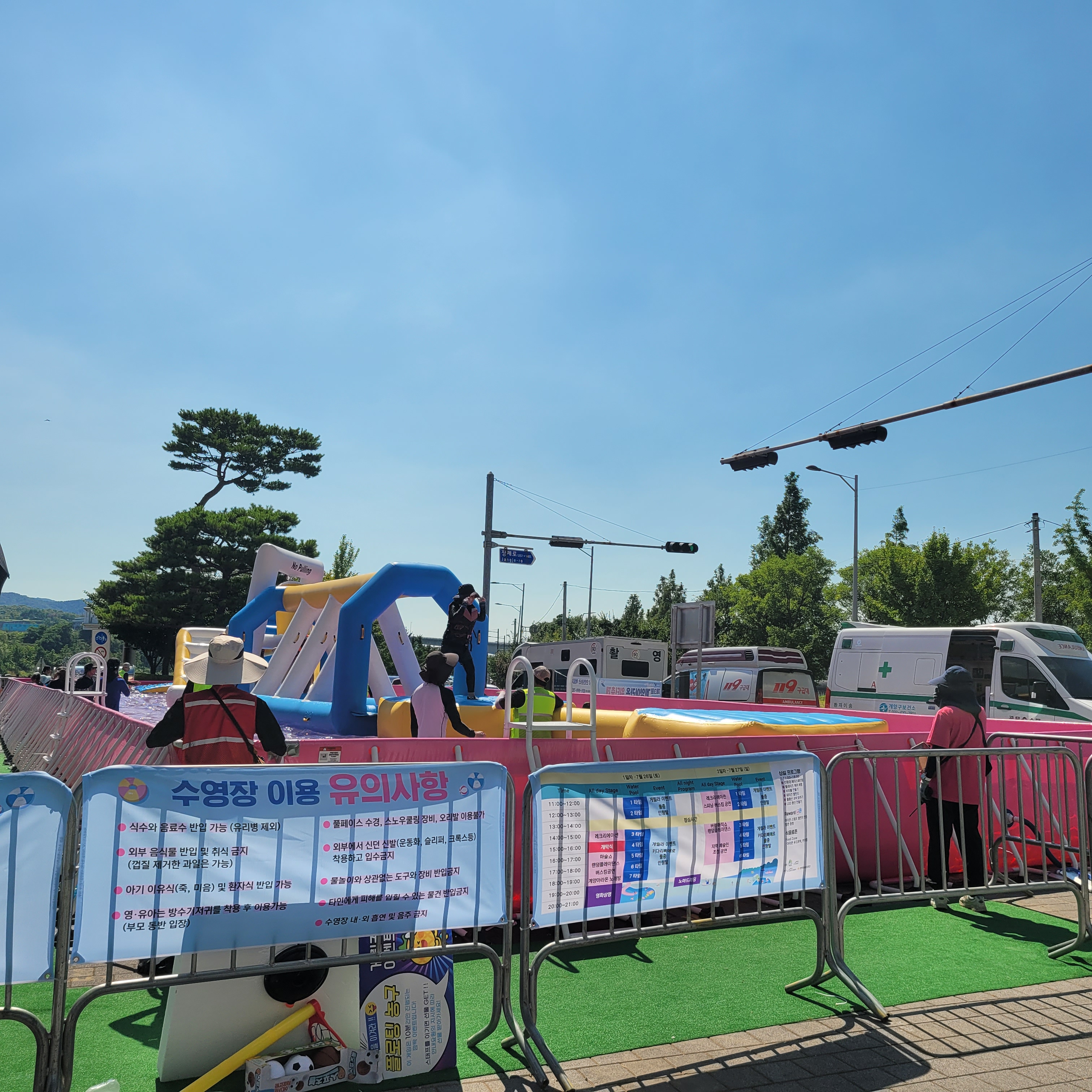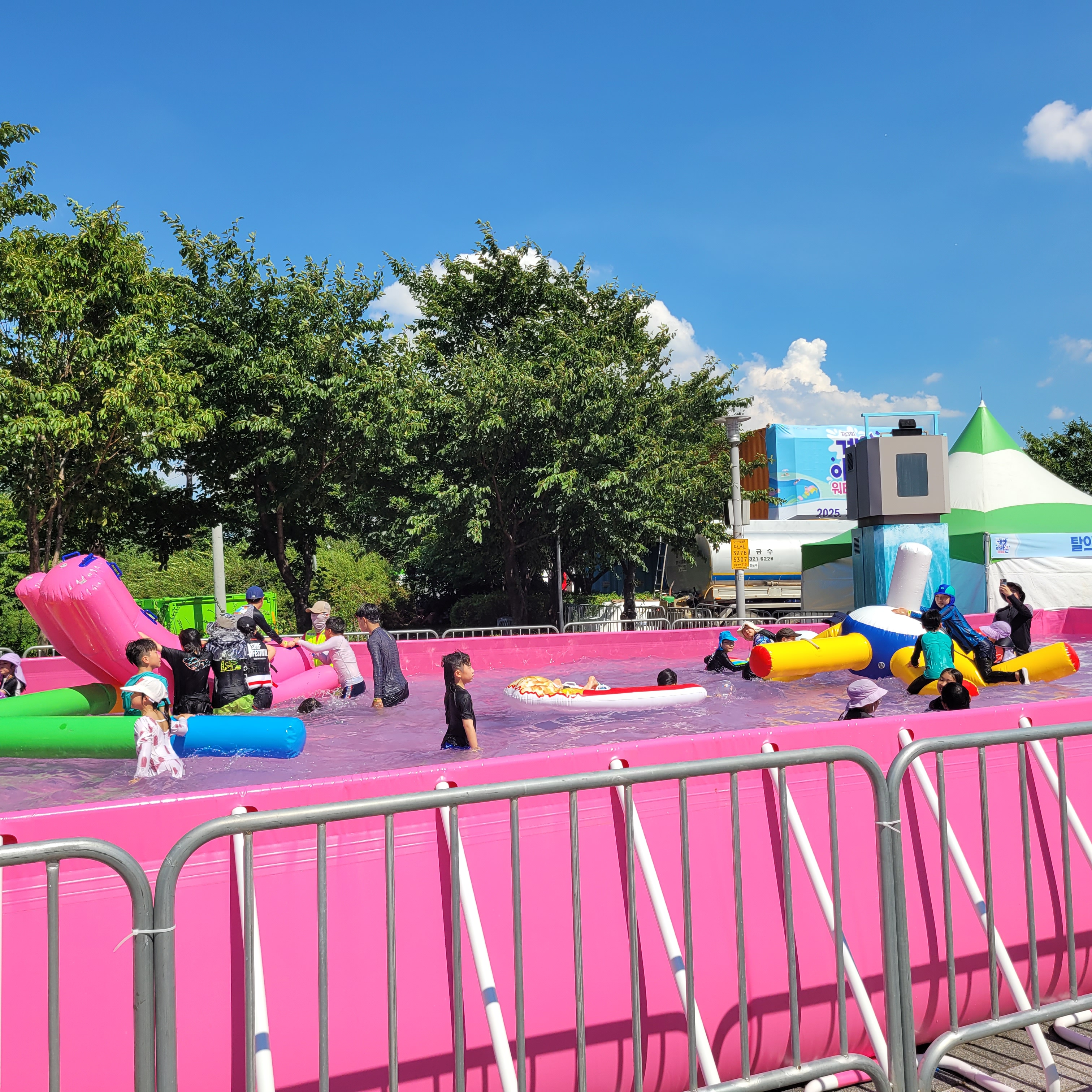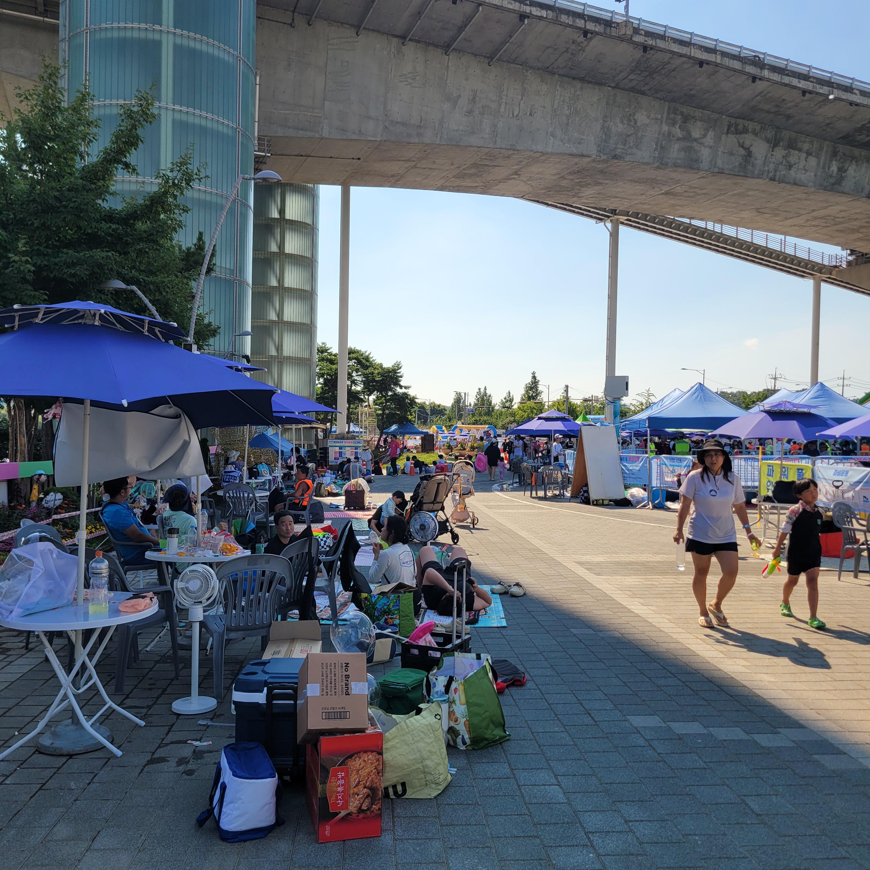 축제장에 와보니 축제장 곳곳에 인공으로 만든 워터파크 풀장이 만들어져서