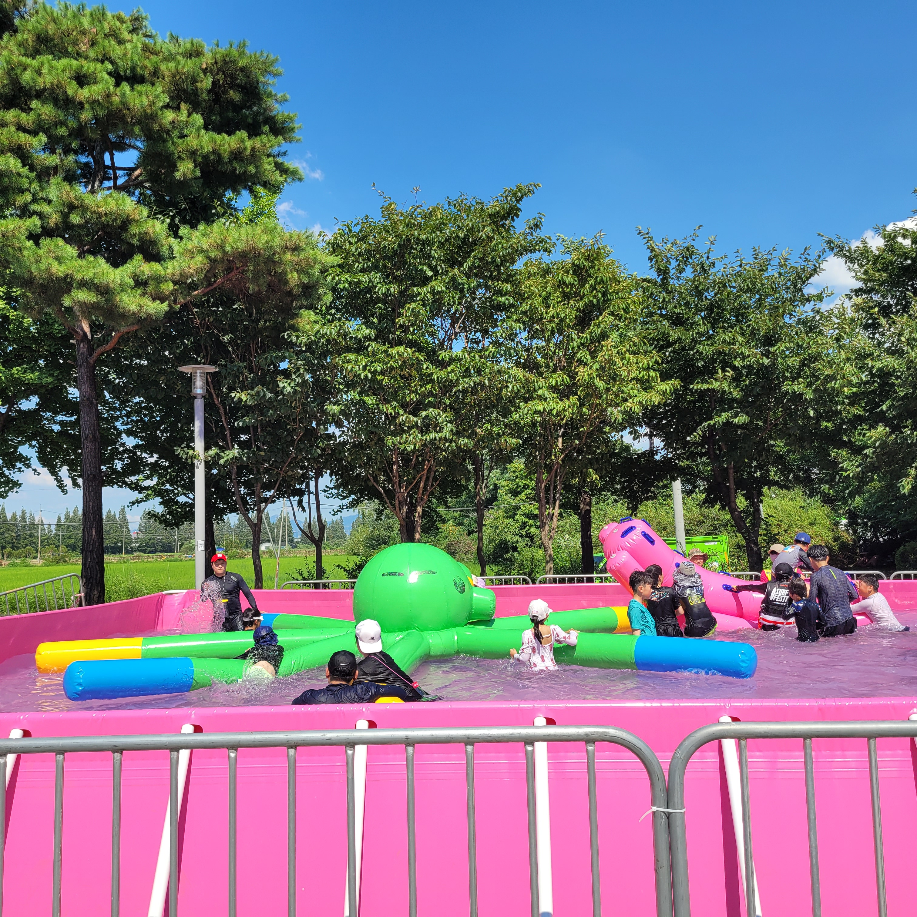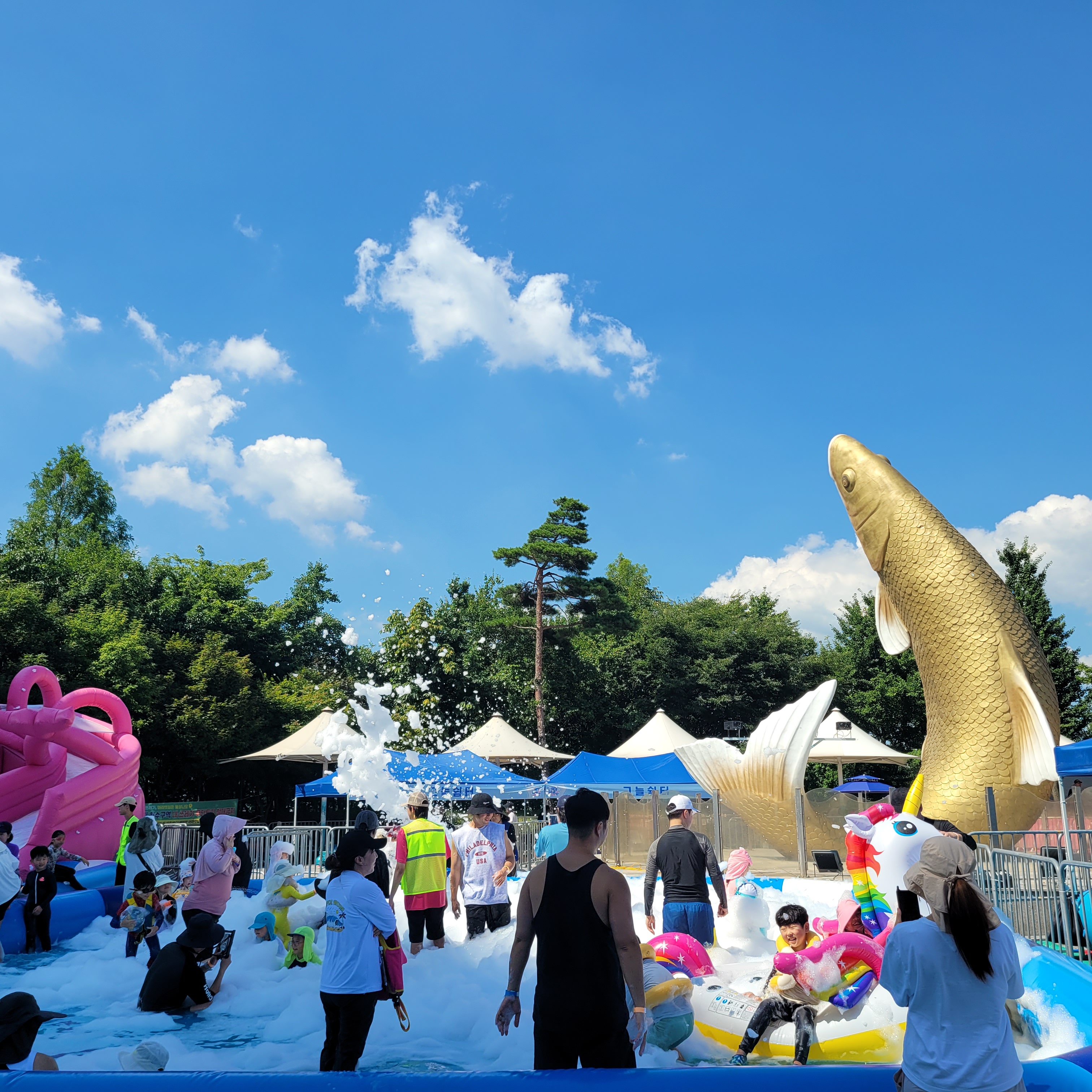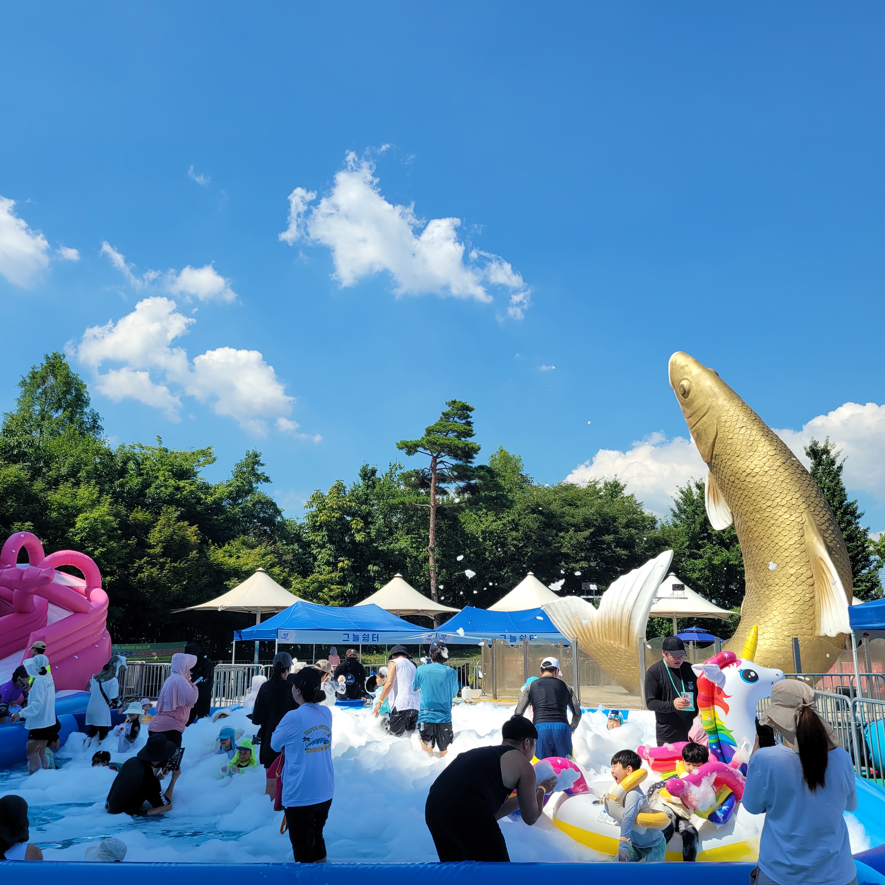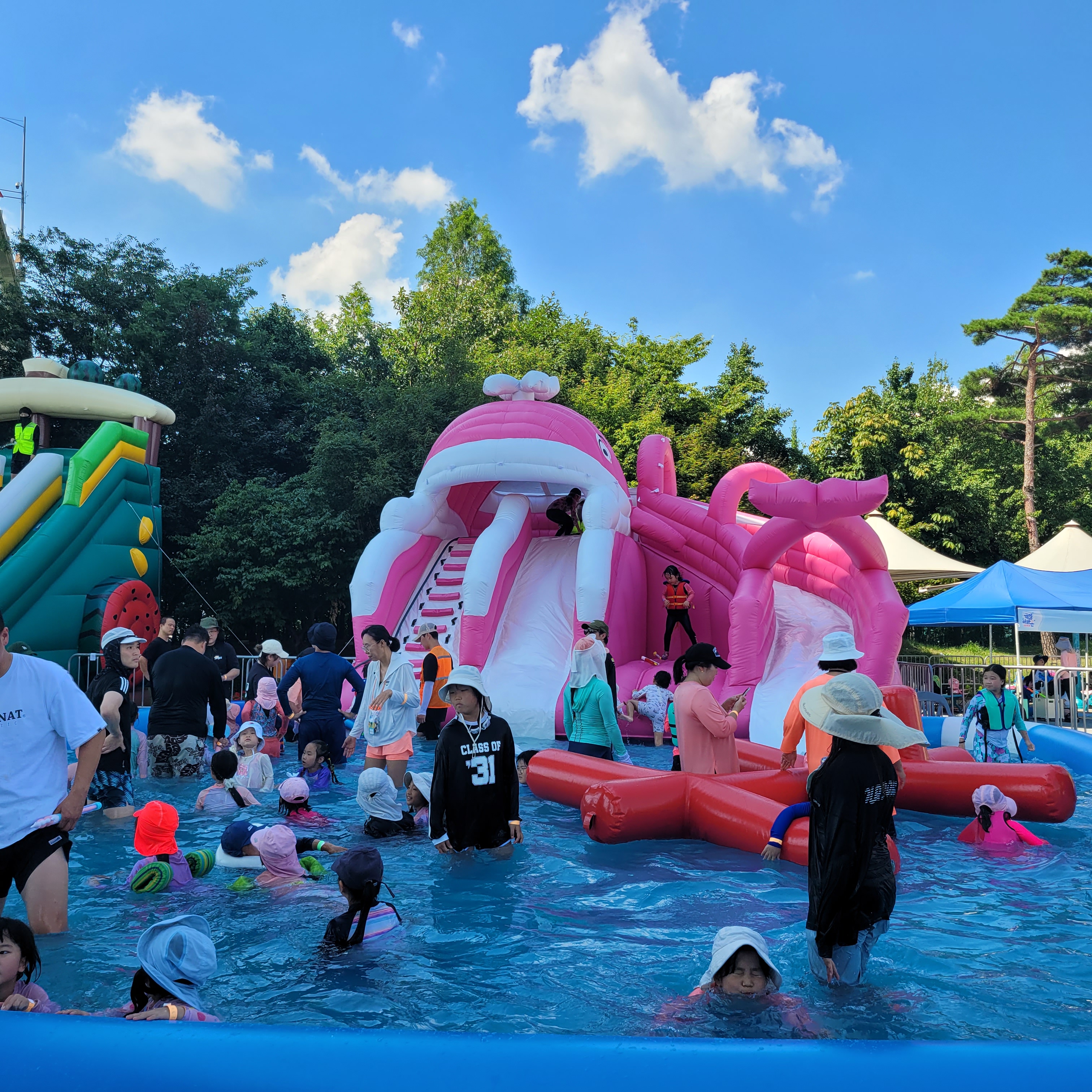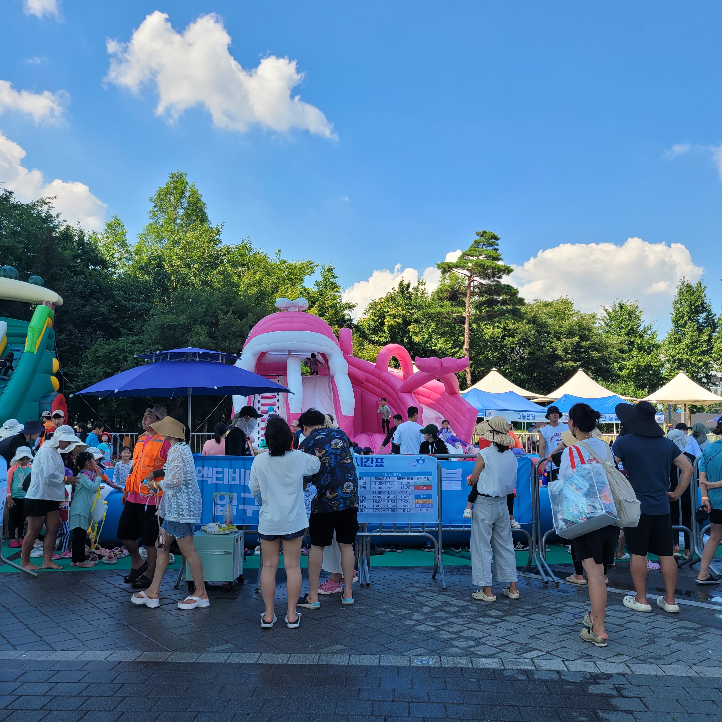 축제장에 와보니 축제장 곳곳에 인공으로 만든 워터파크 풀장이 만들어져서