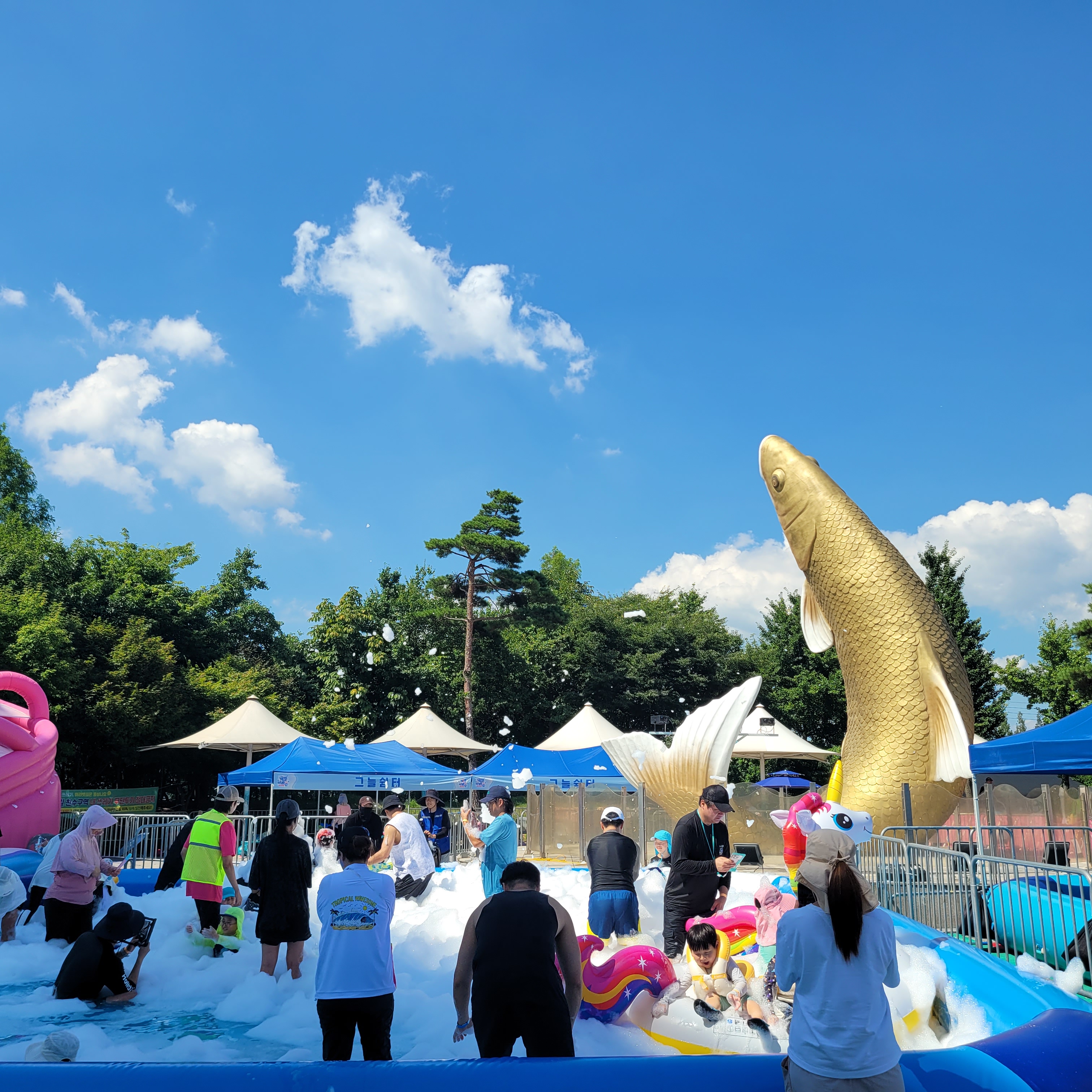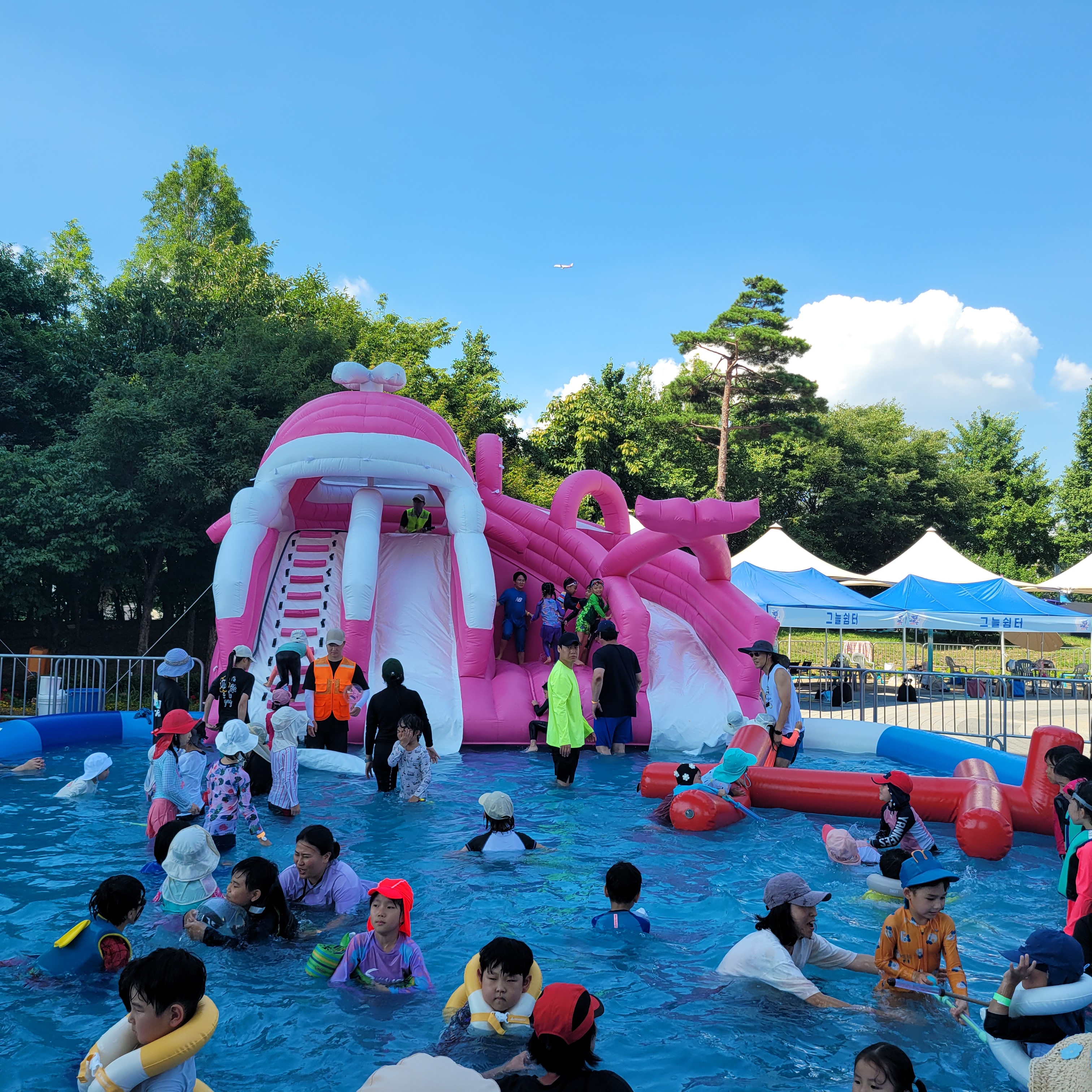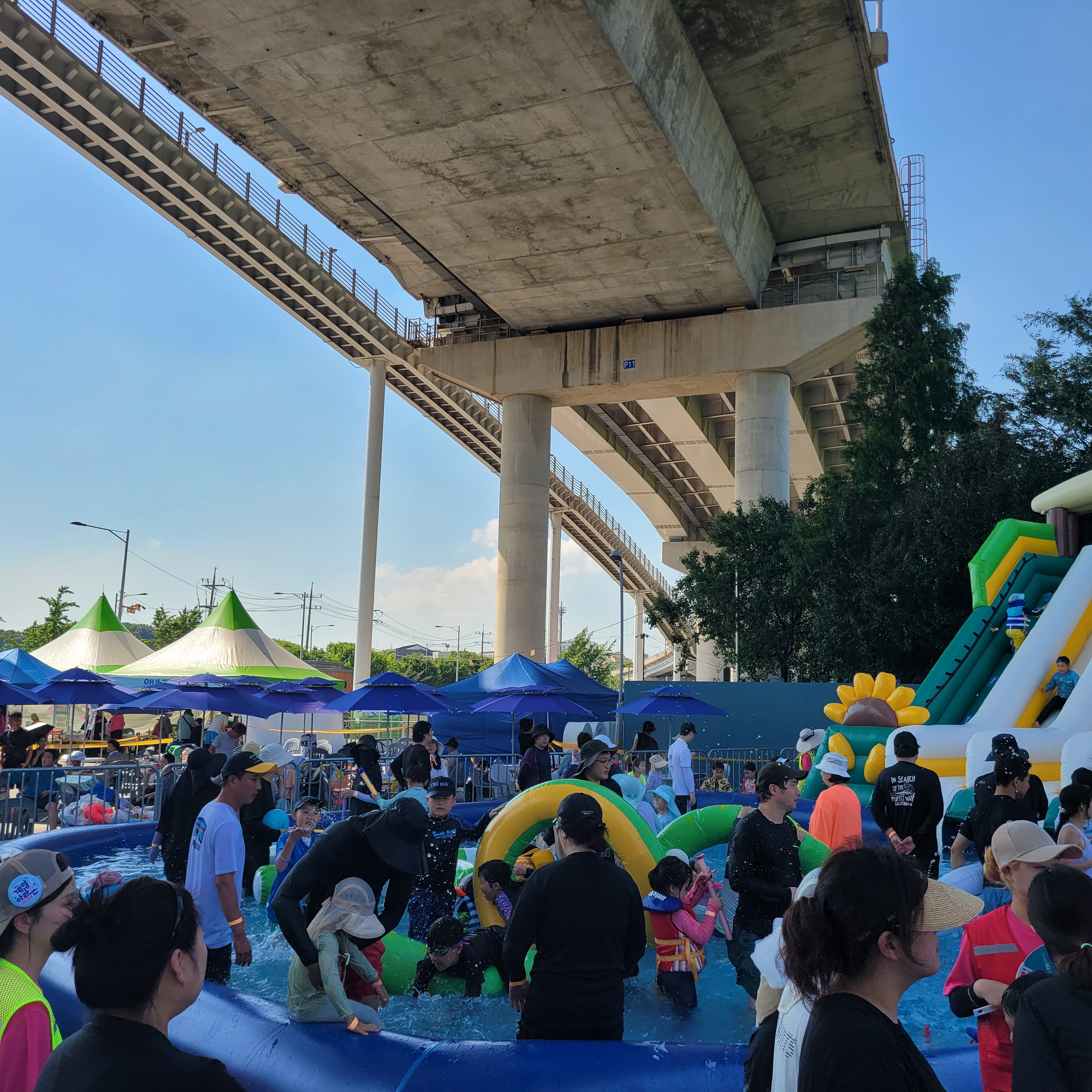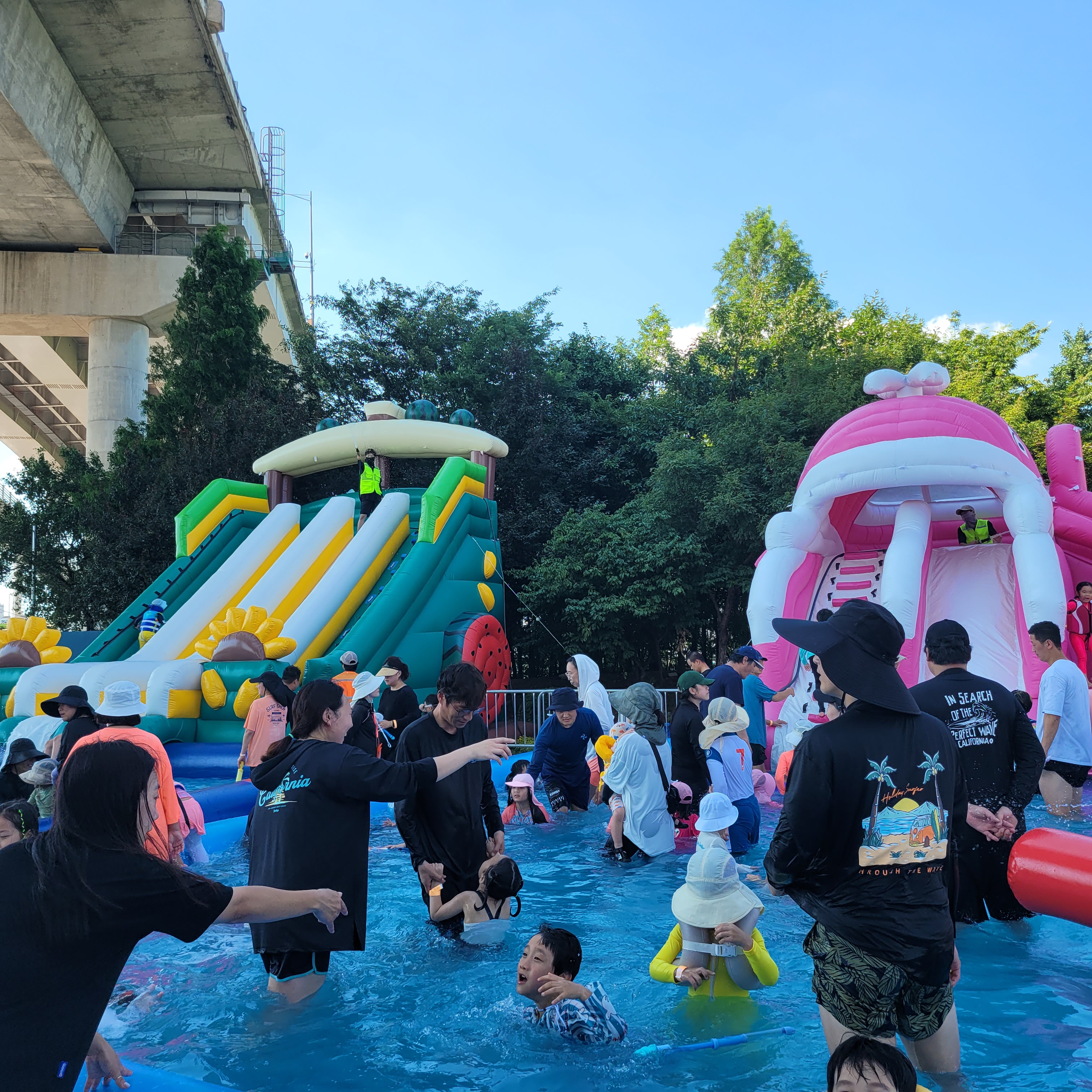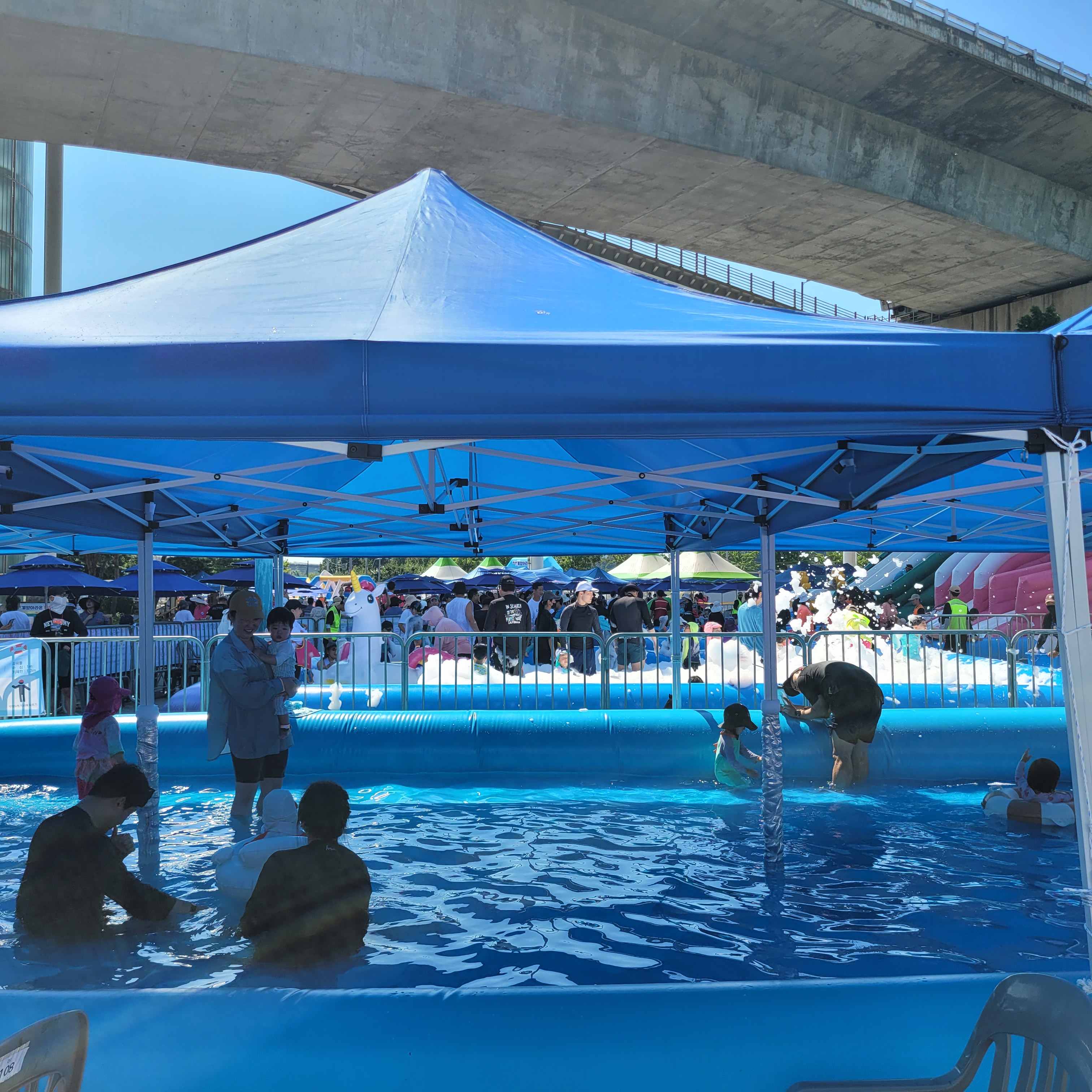 축제장에 와보니 축제장 곳곳에 인공으로 만든 워터파크 풀장이 만들어져서