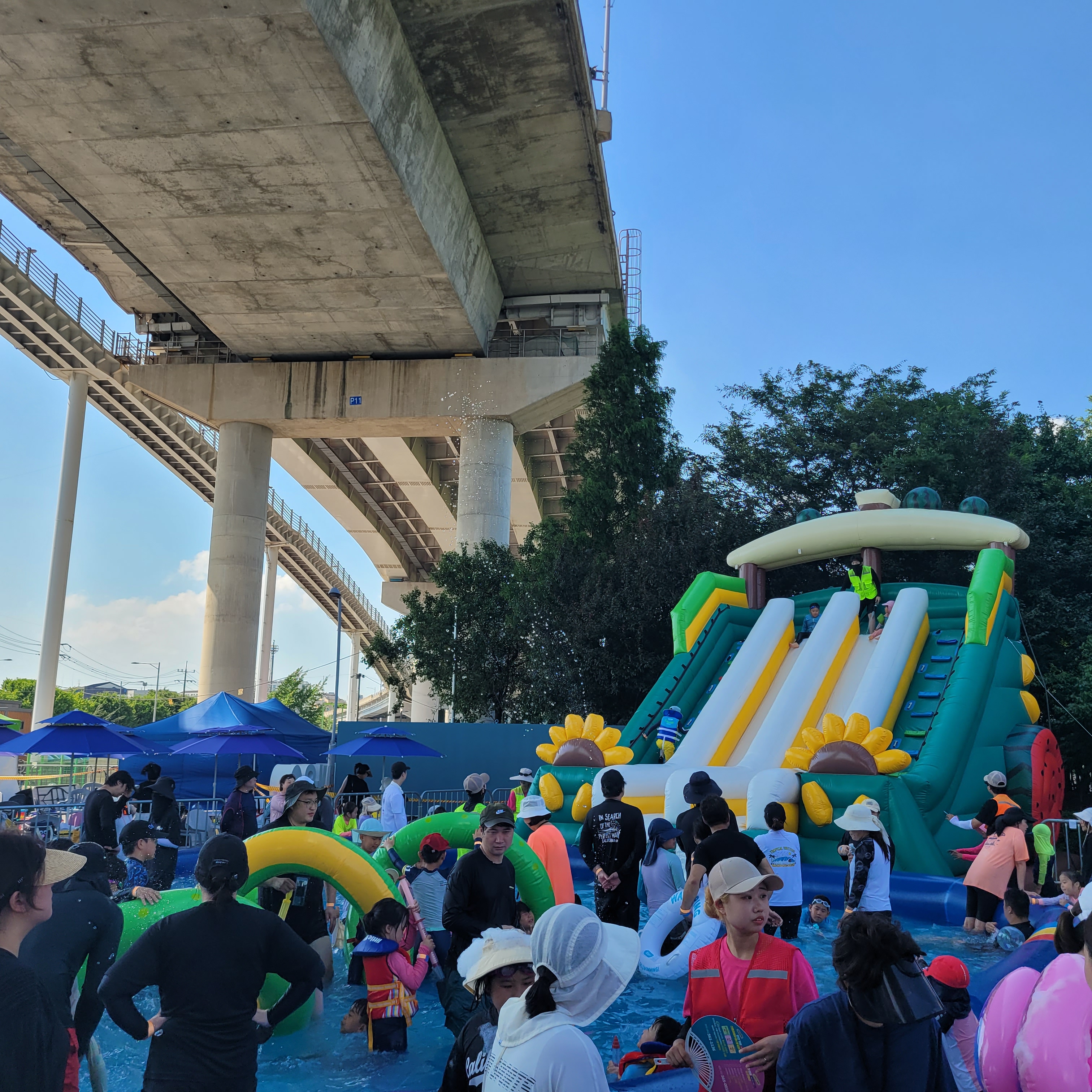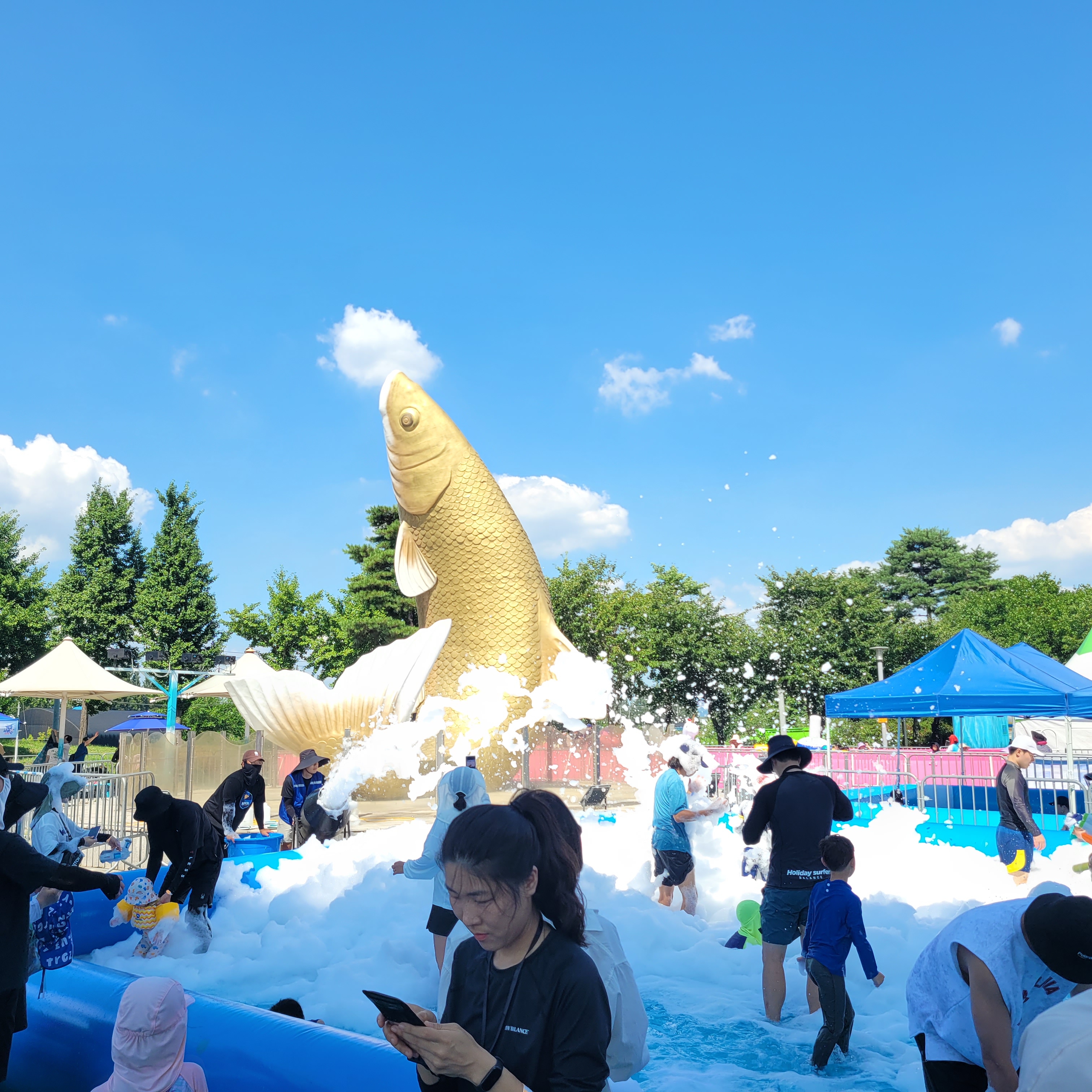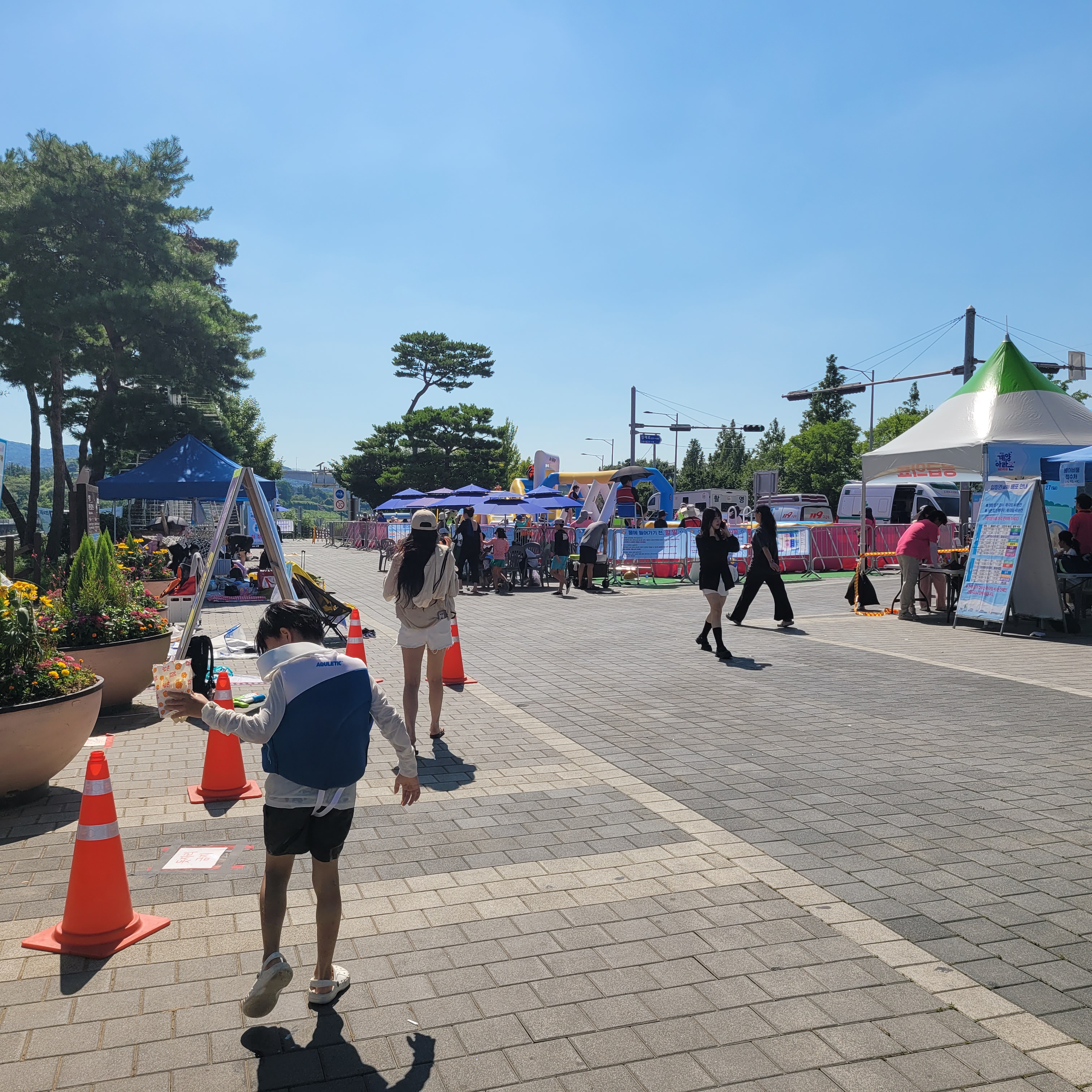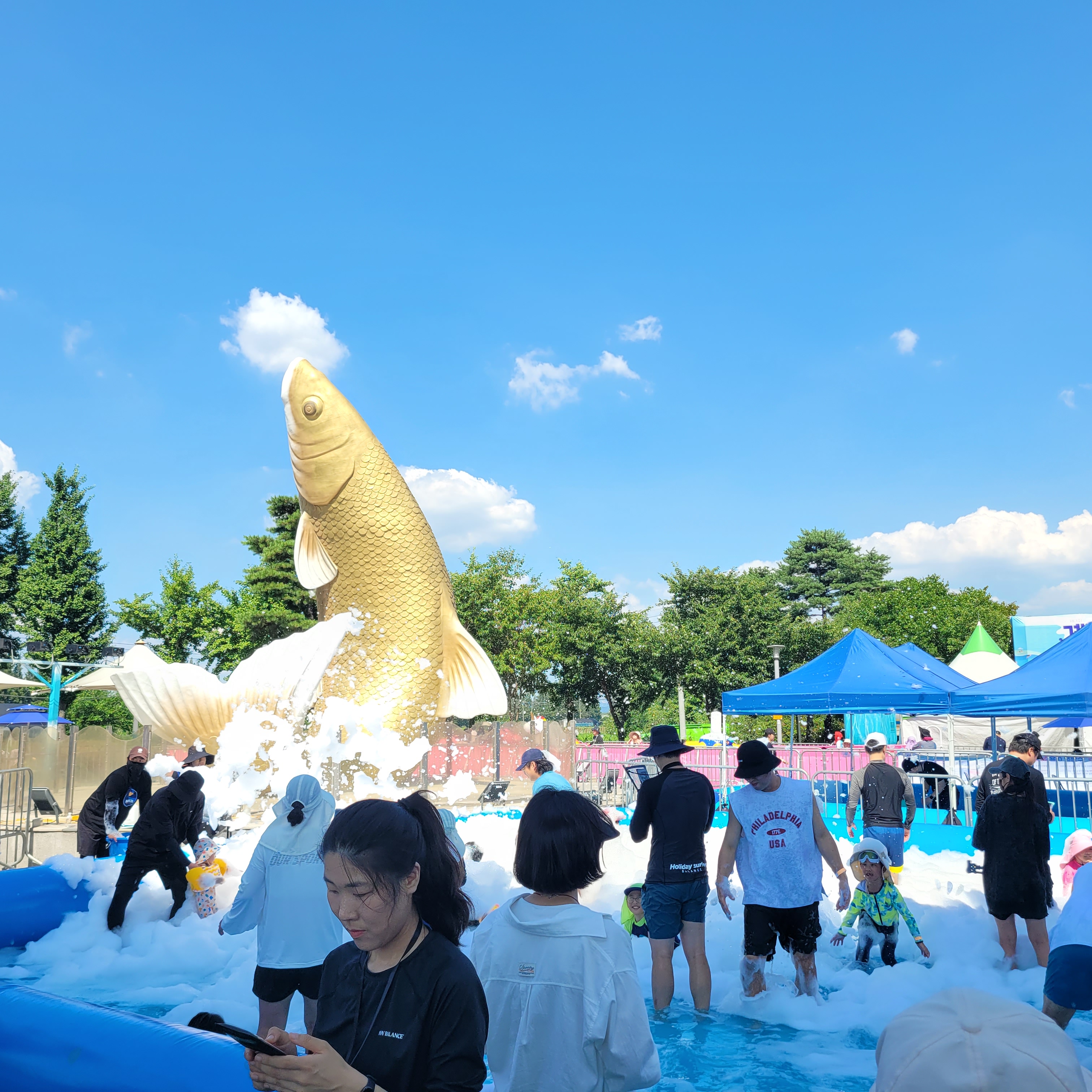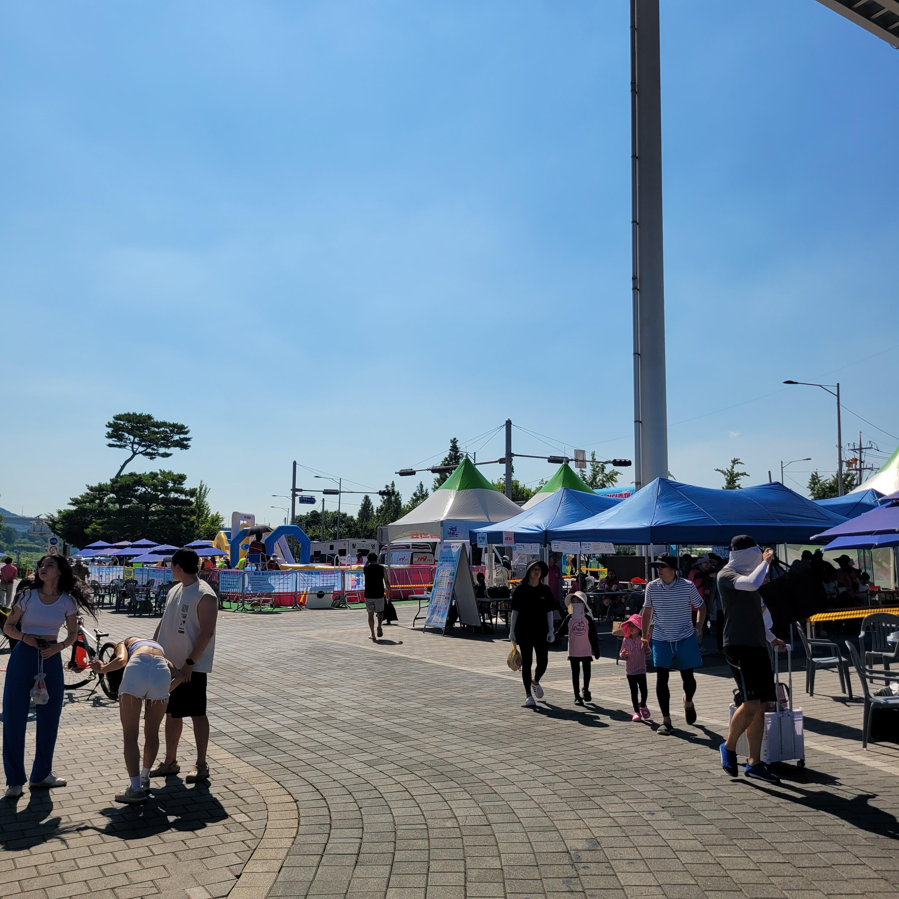 축제장에 와보니 축제장 곳곳에 인공으로 만든 워터파크 풀장이 만들어져서