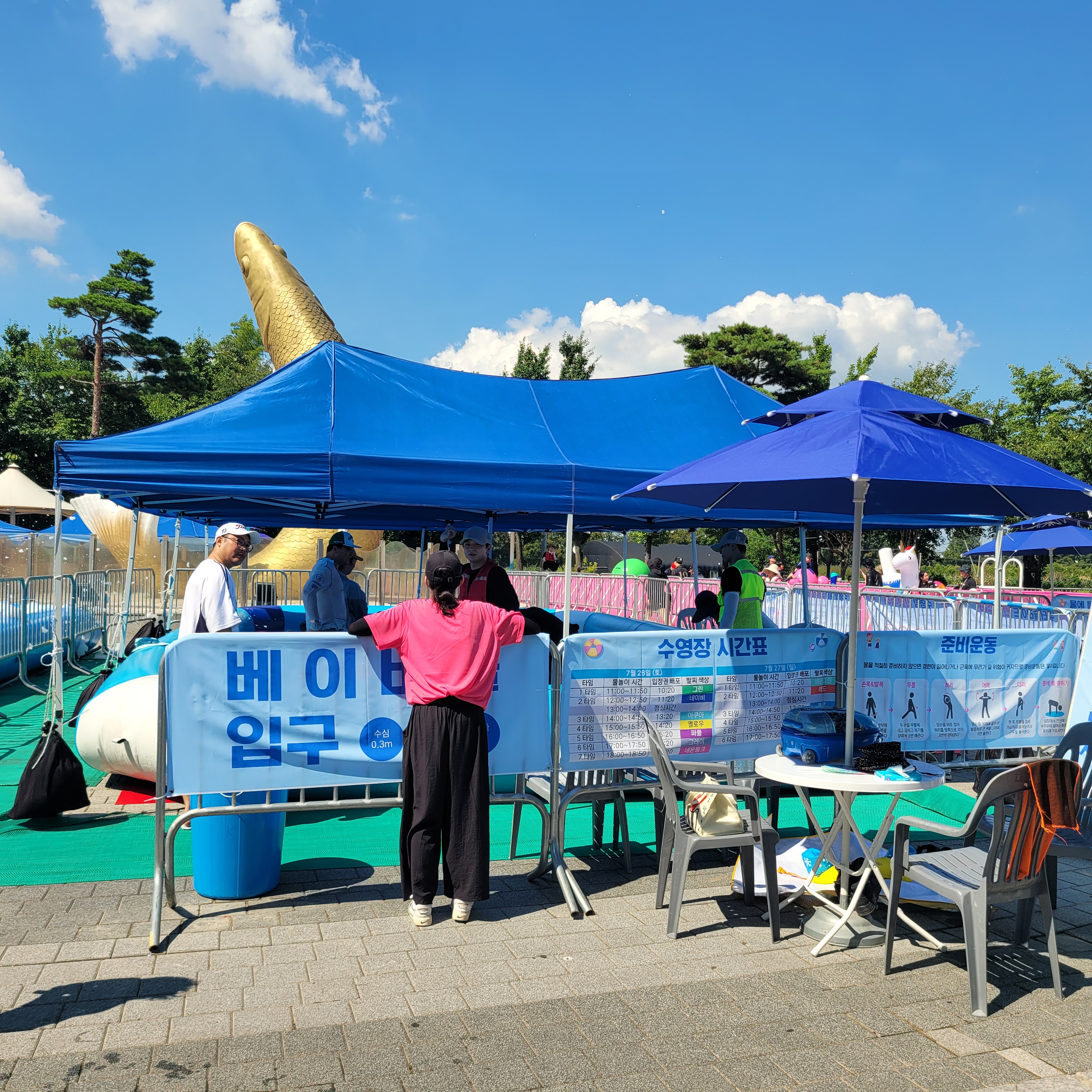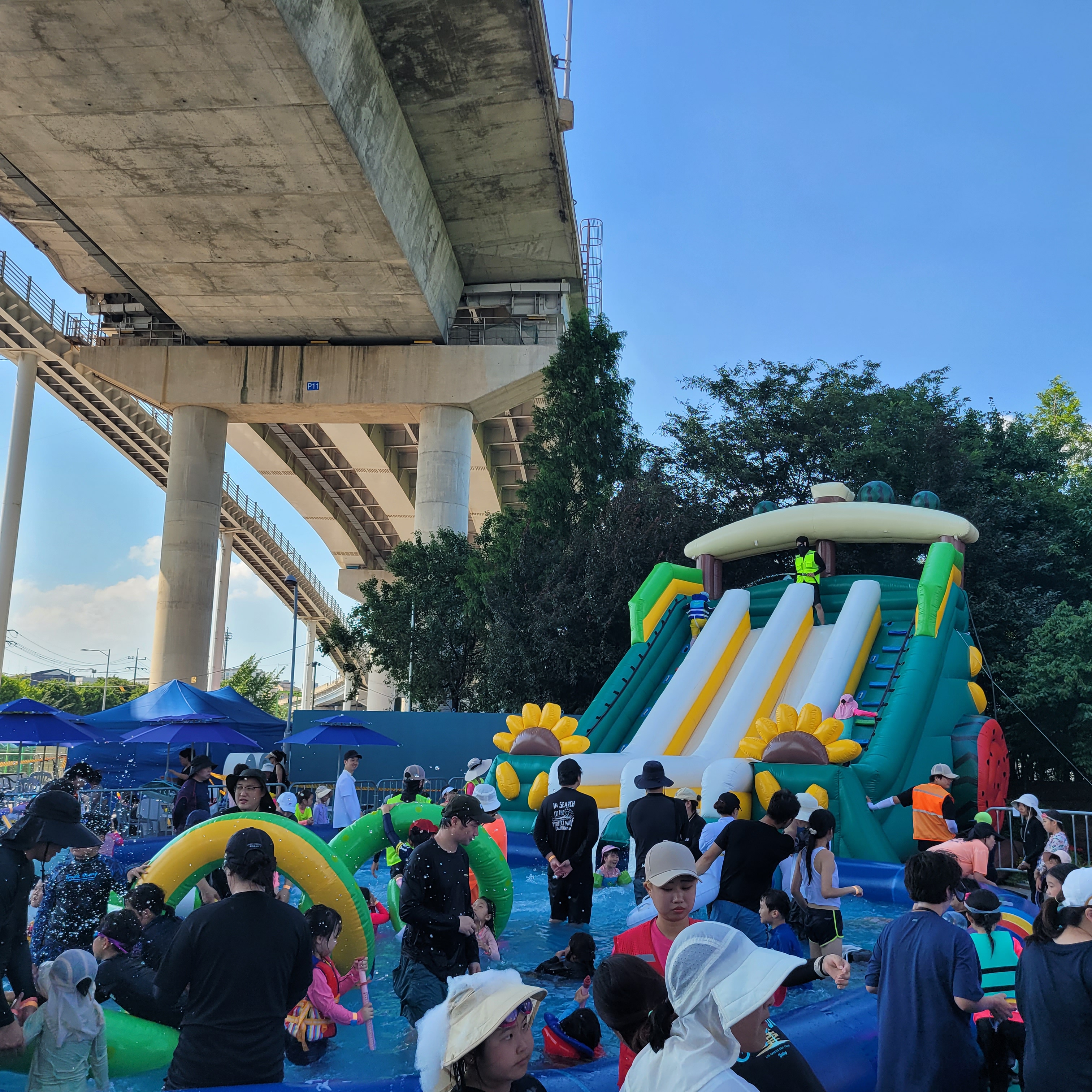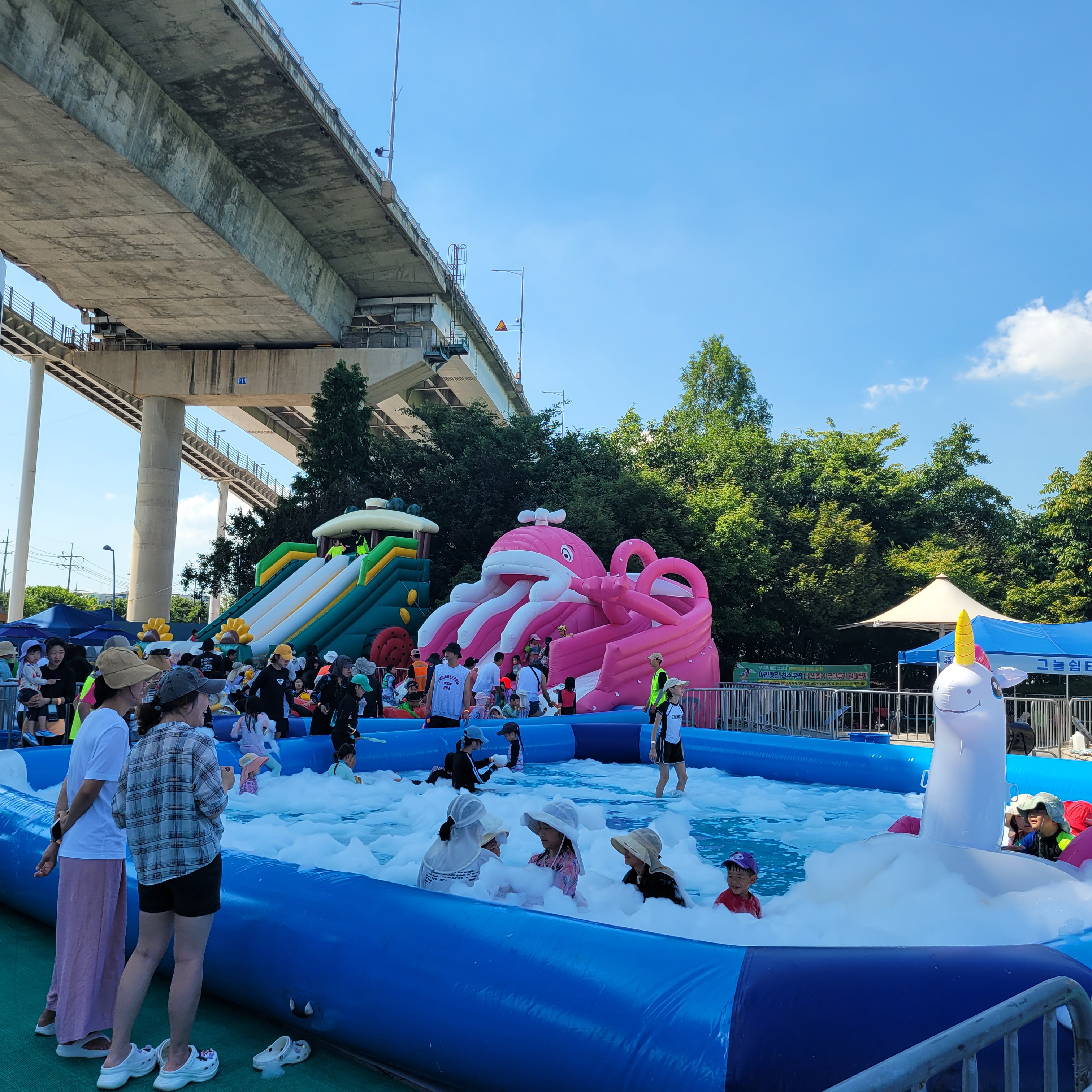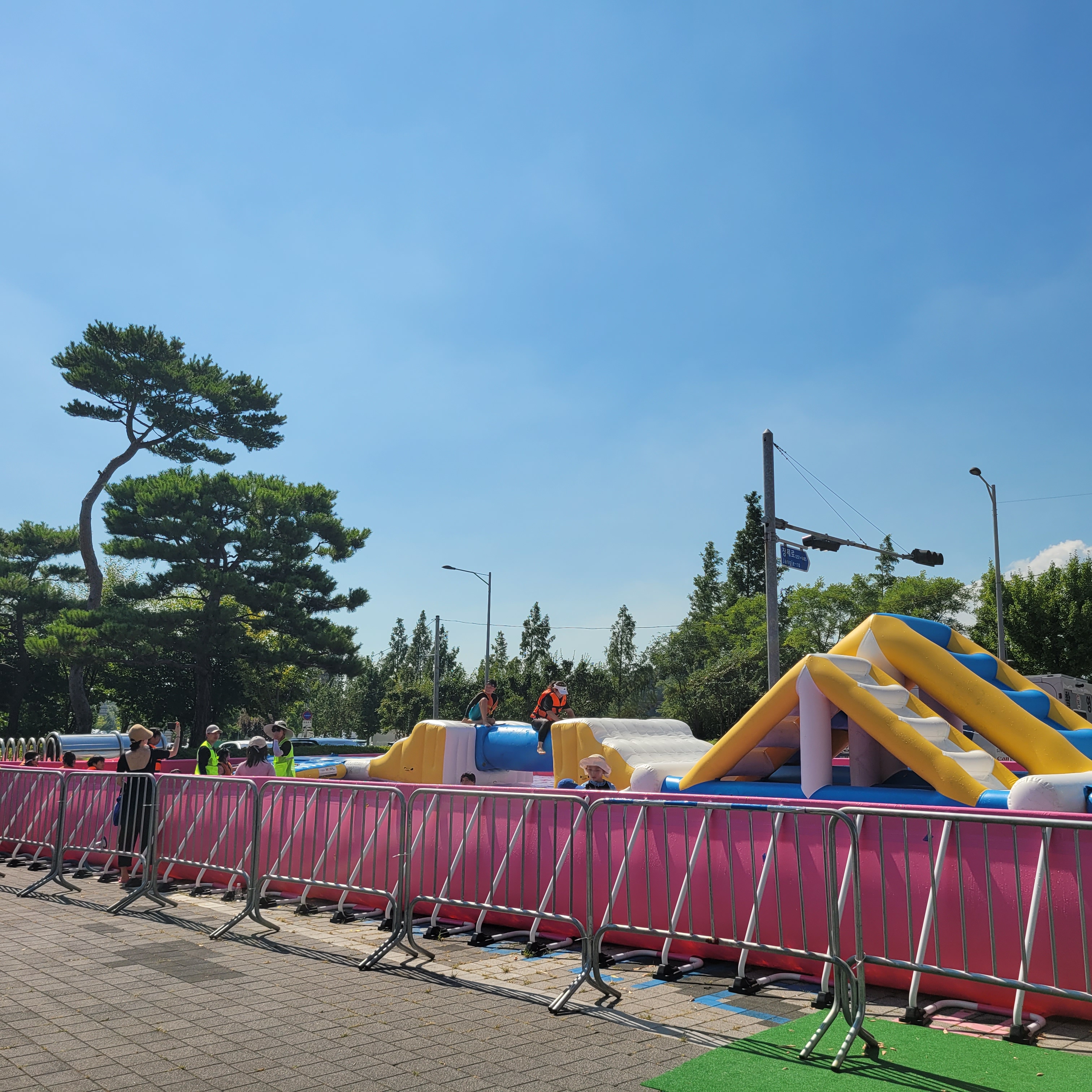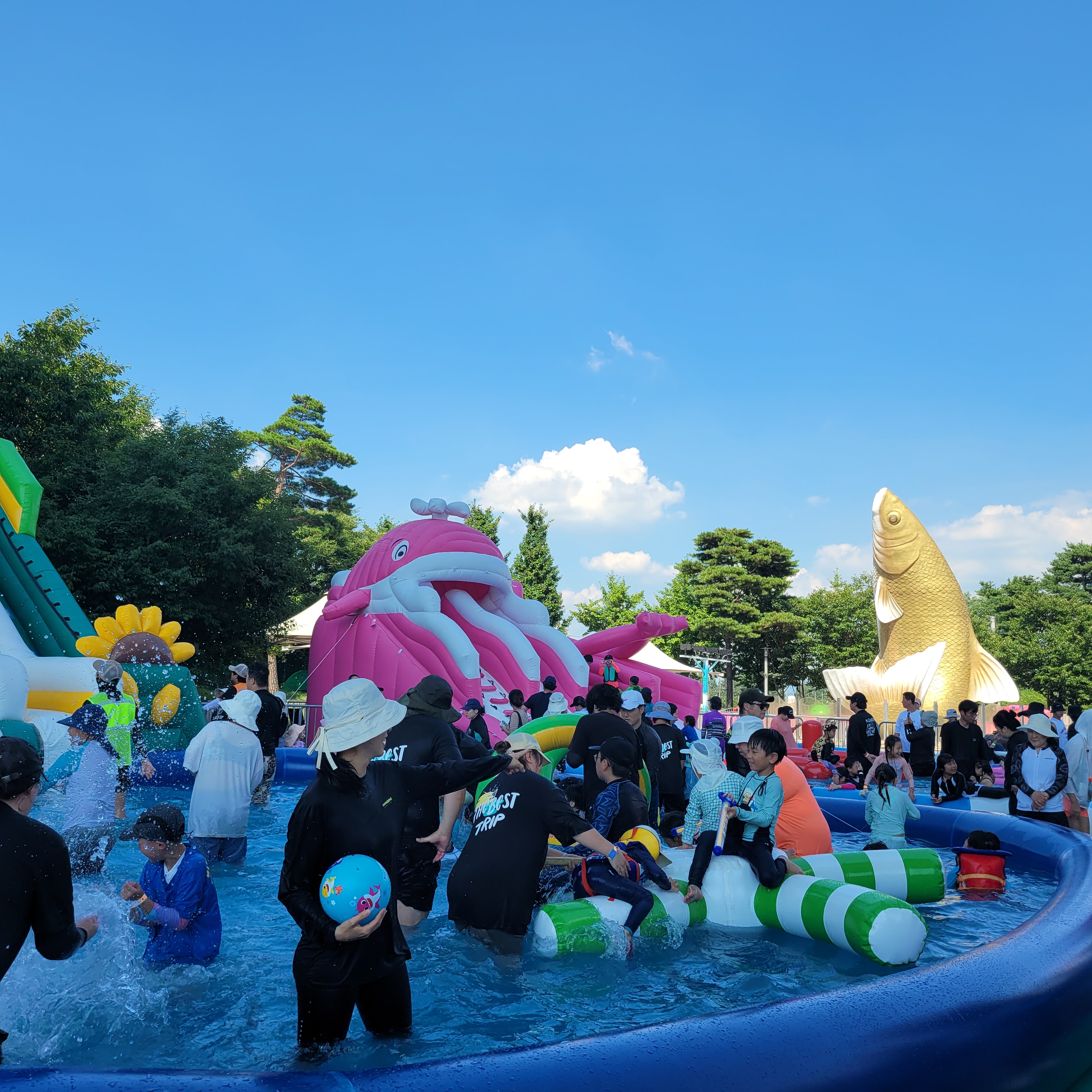 축제장에 와보니 축제장 곳곳에 인공으로 만든 워터파크 풀장이 만들어져서