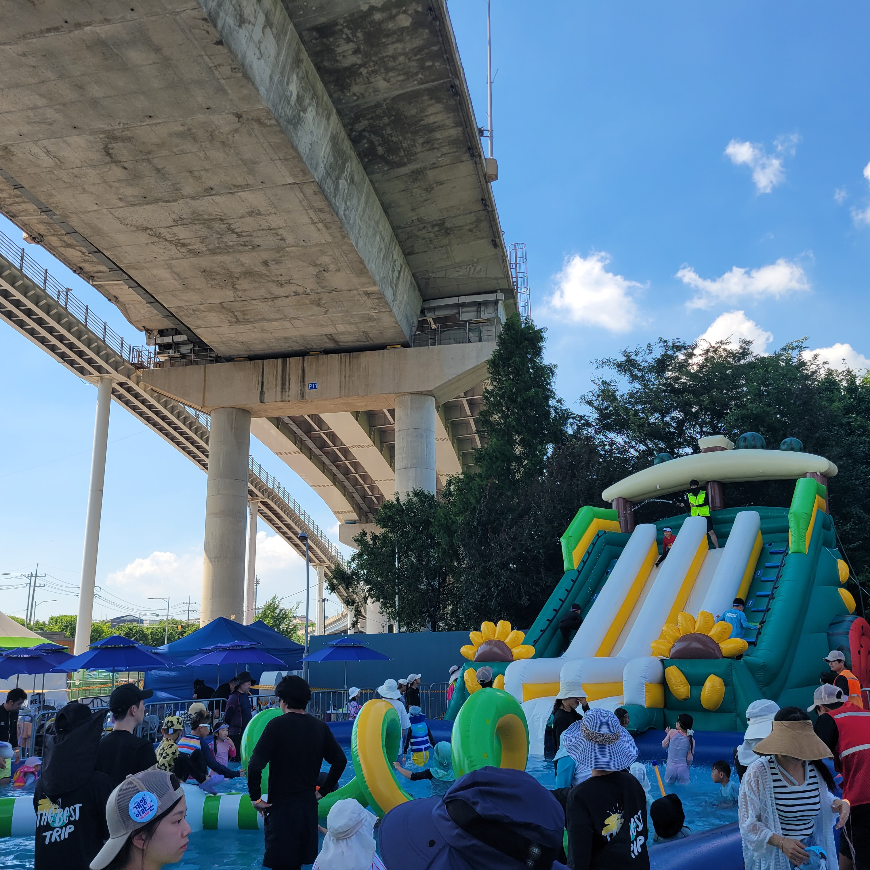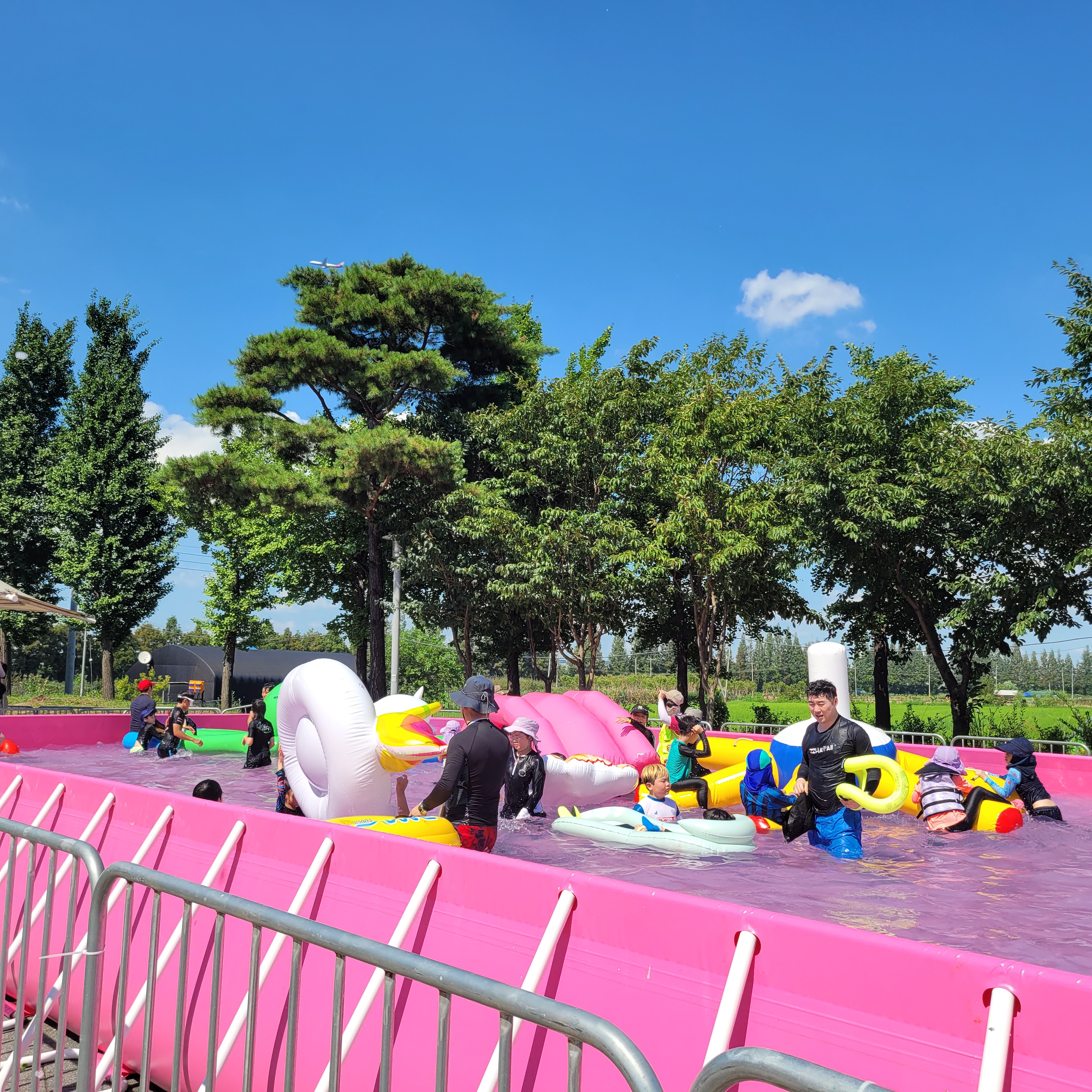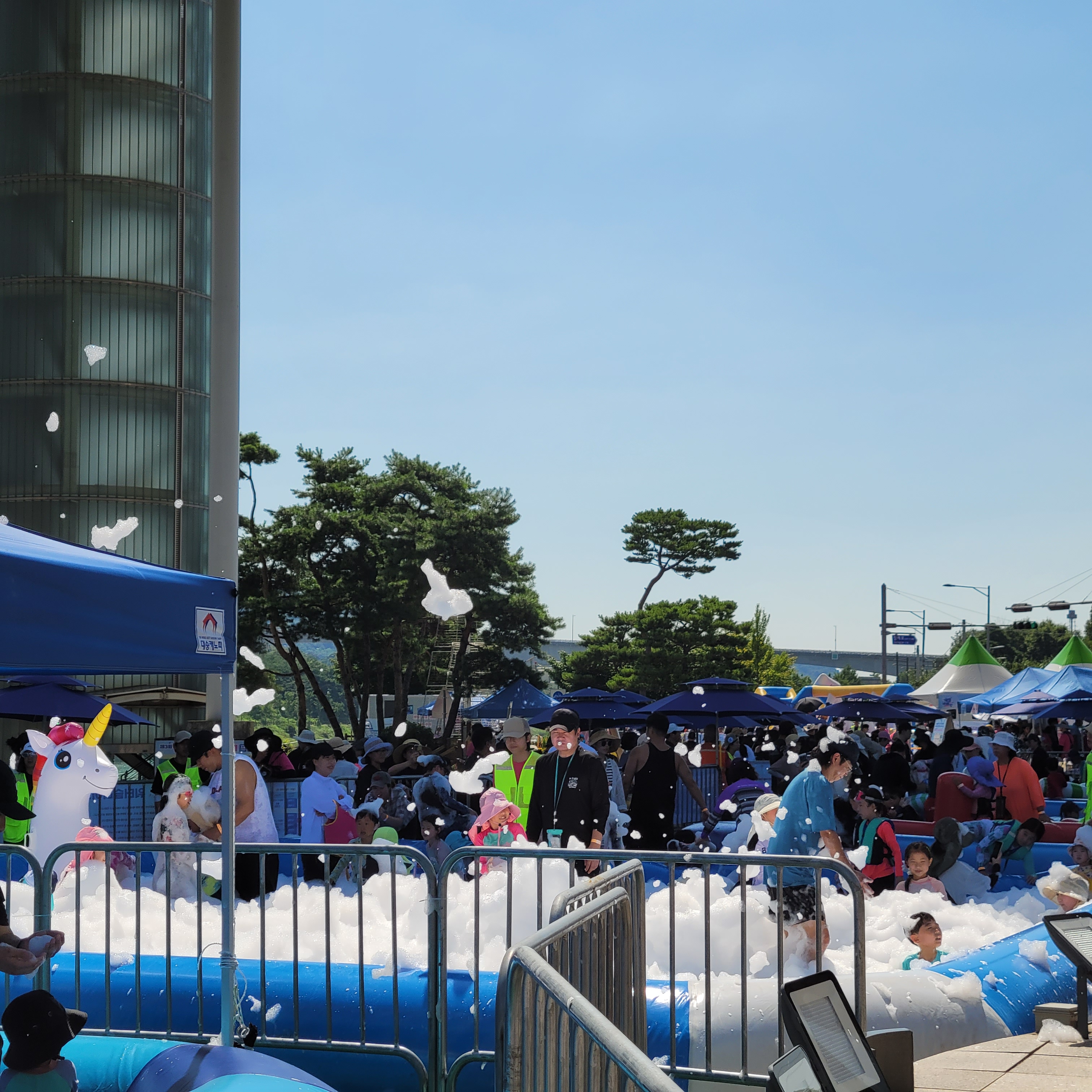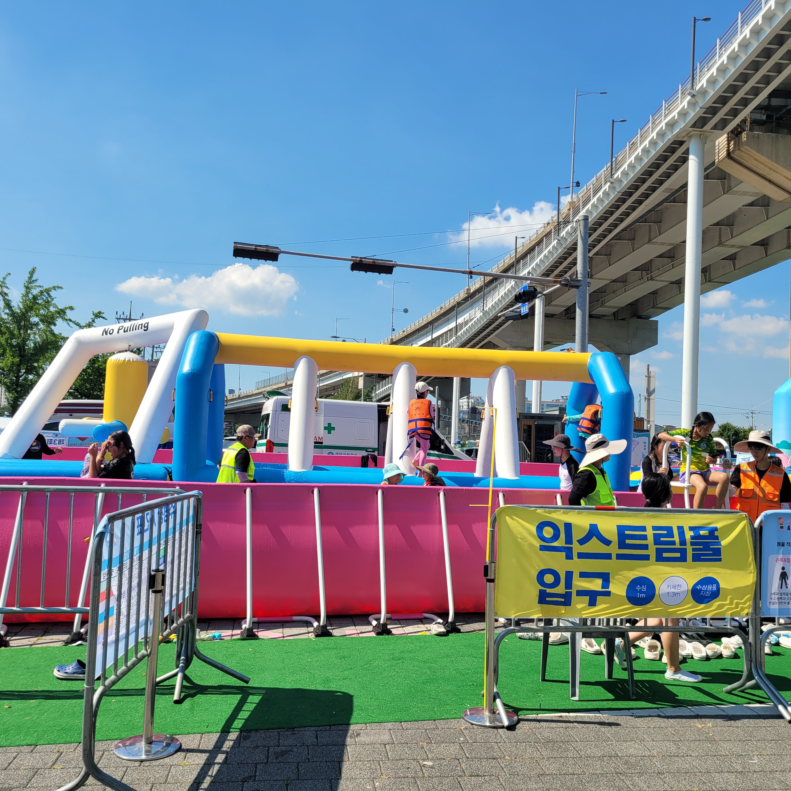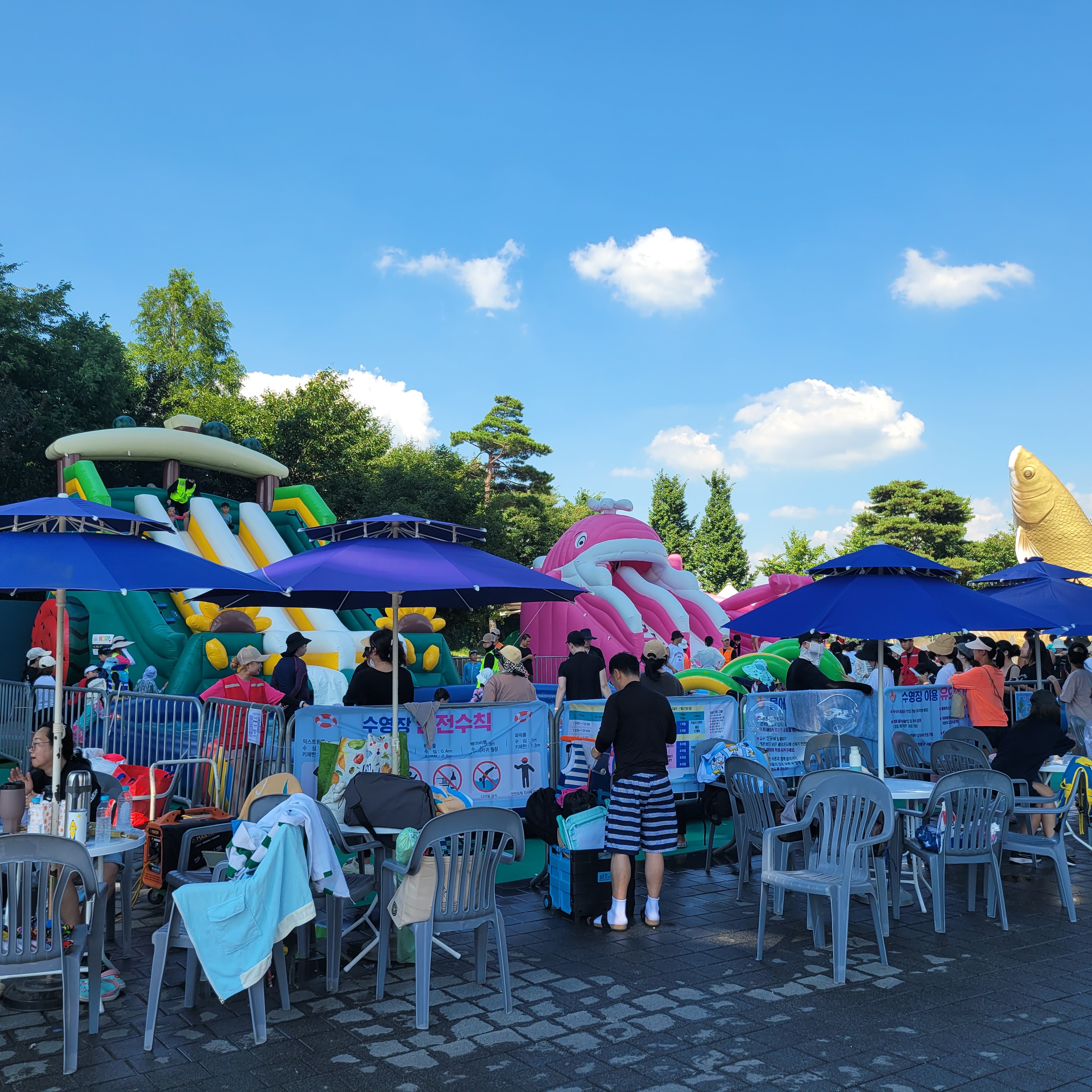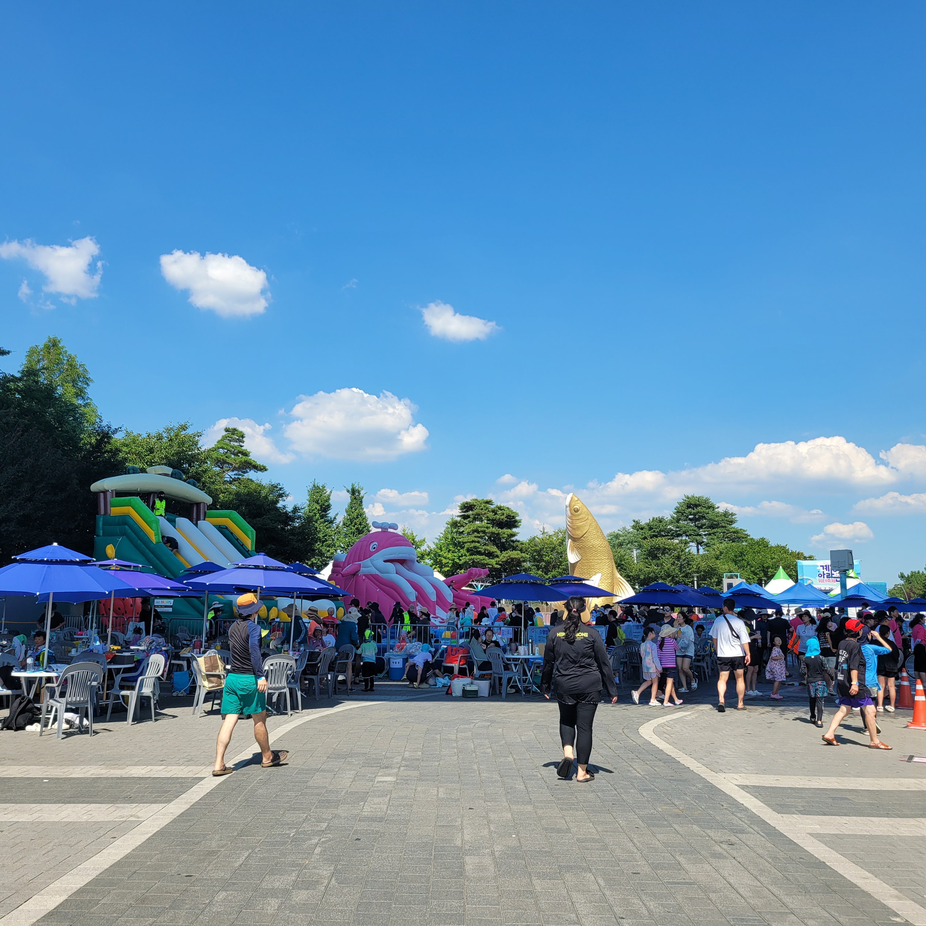 축제장에 와보니 축제장 곳곳에 인공으로 만든 워터파크 풀장이 만들어져서