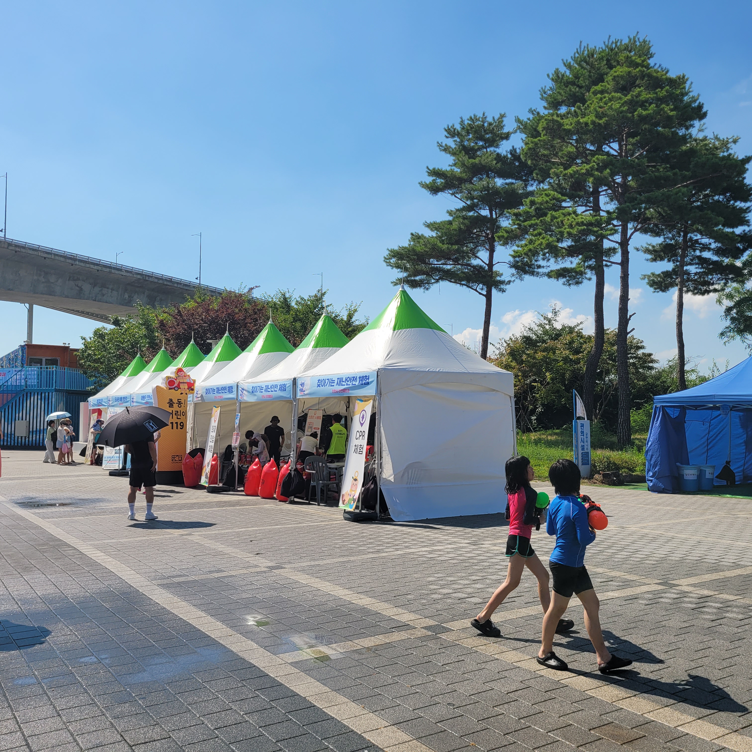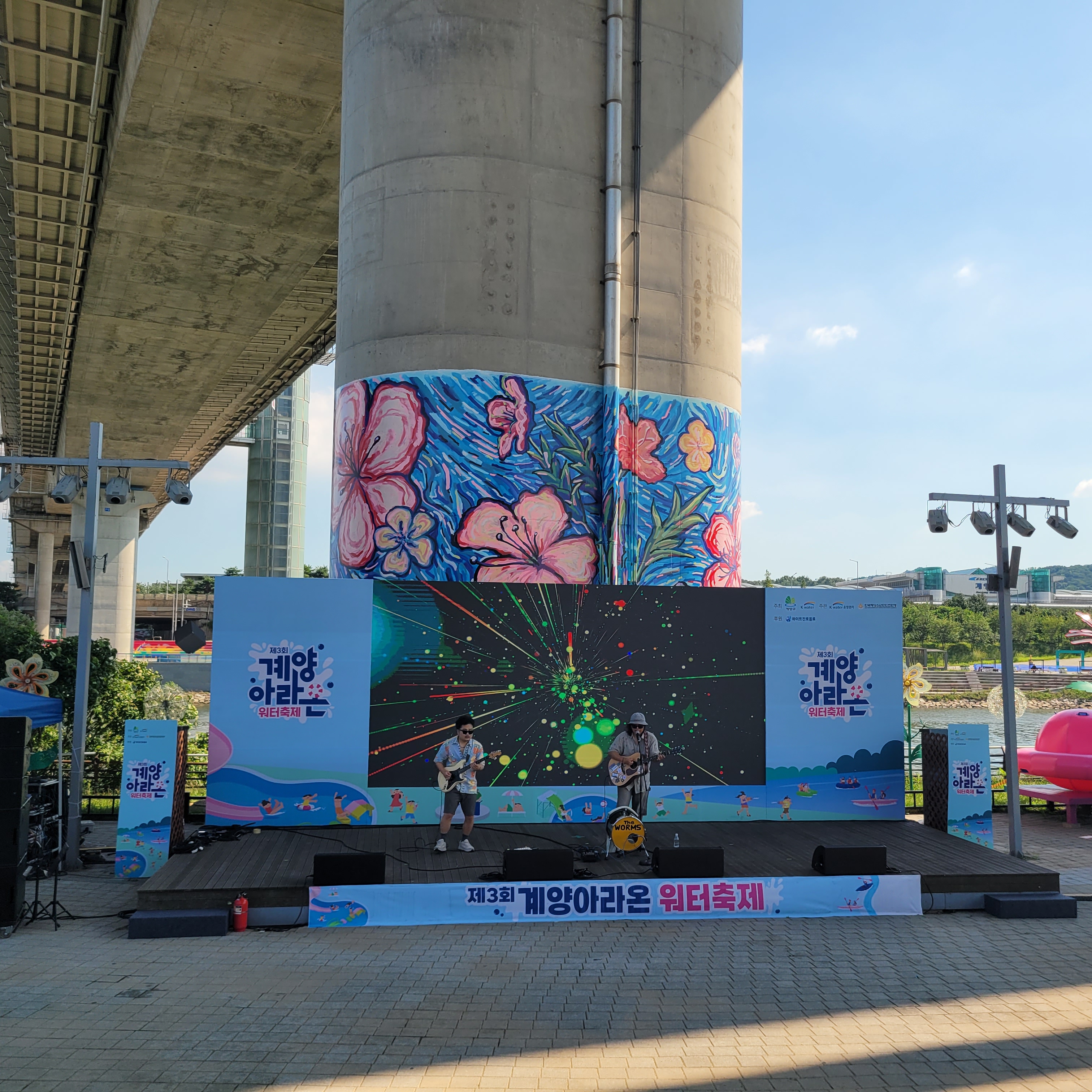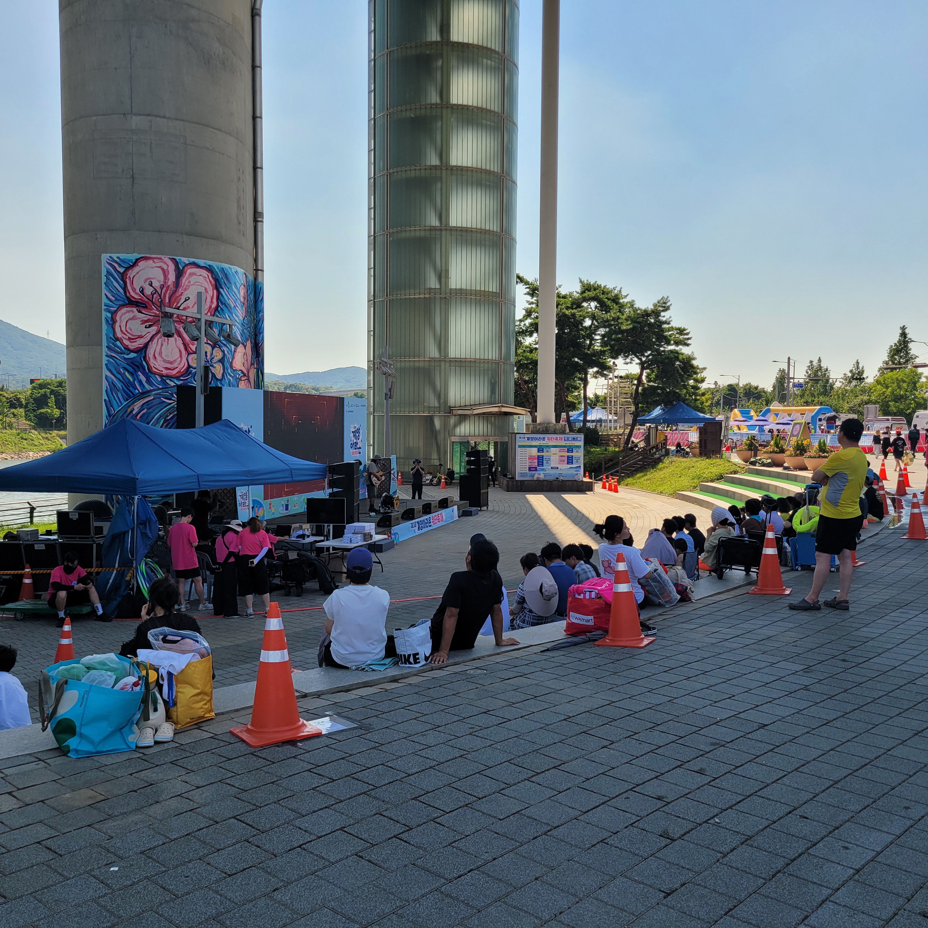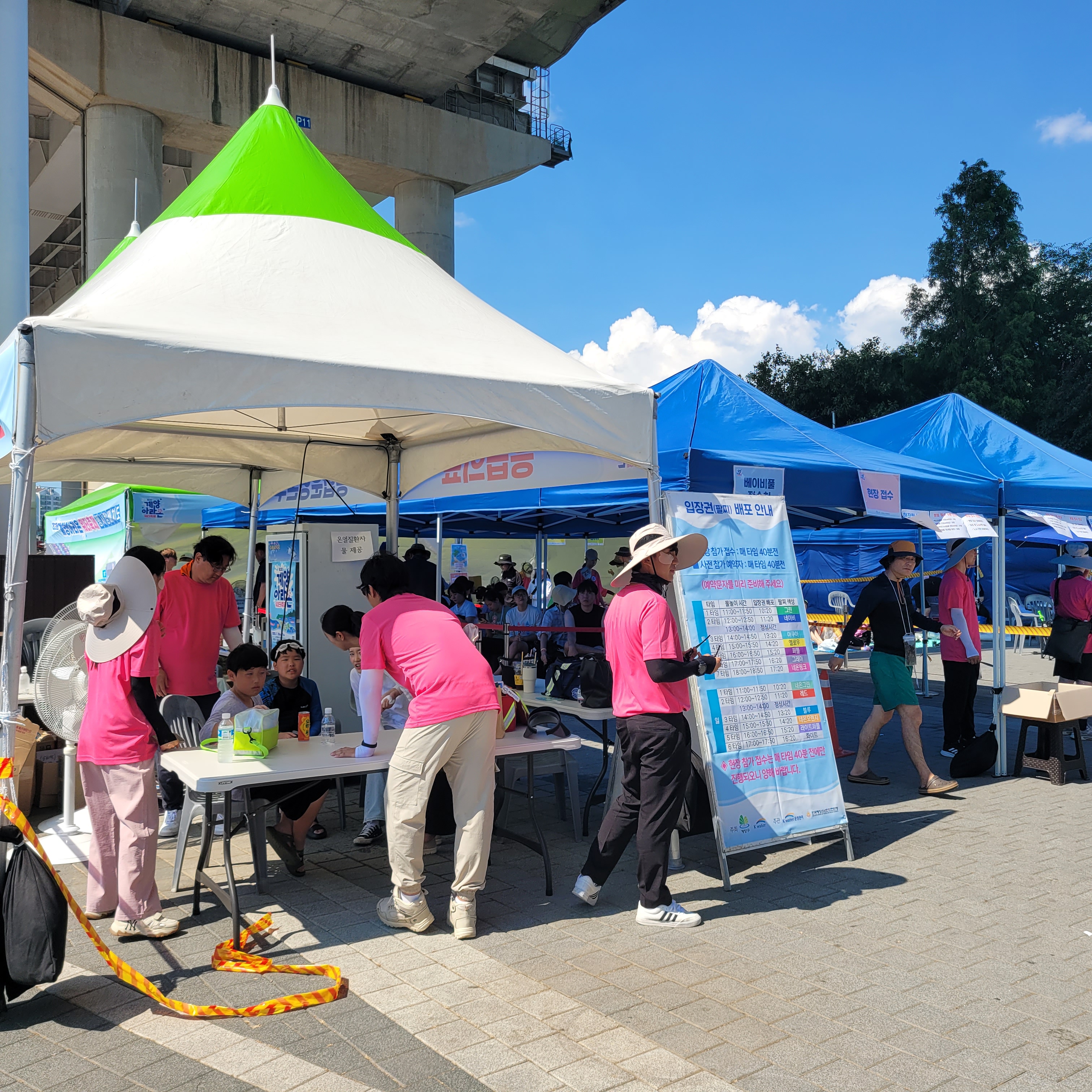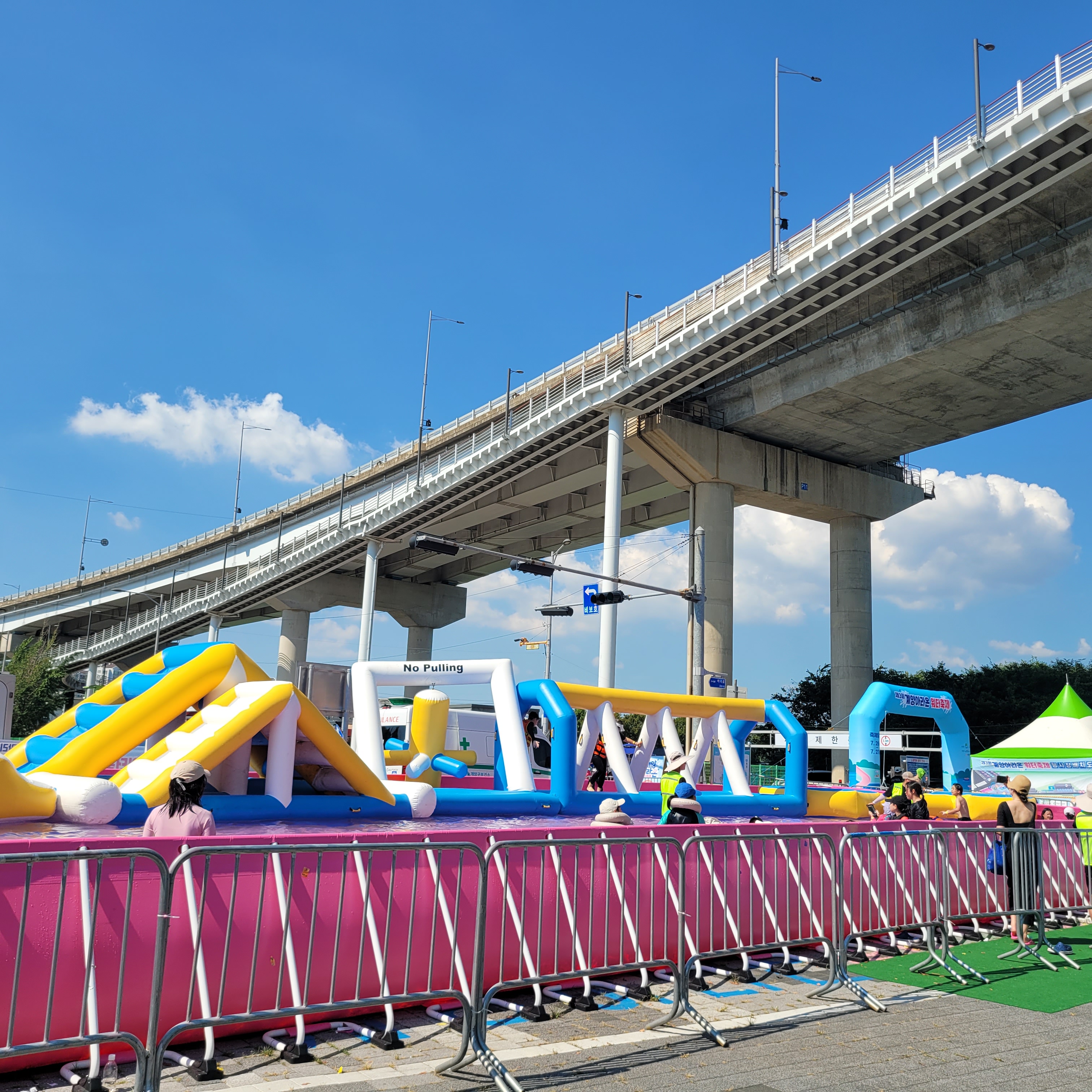 축제장에 와보니 축제장 곳곳에 인공으로 만든 워터파크 풀장이 만들어져서