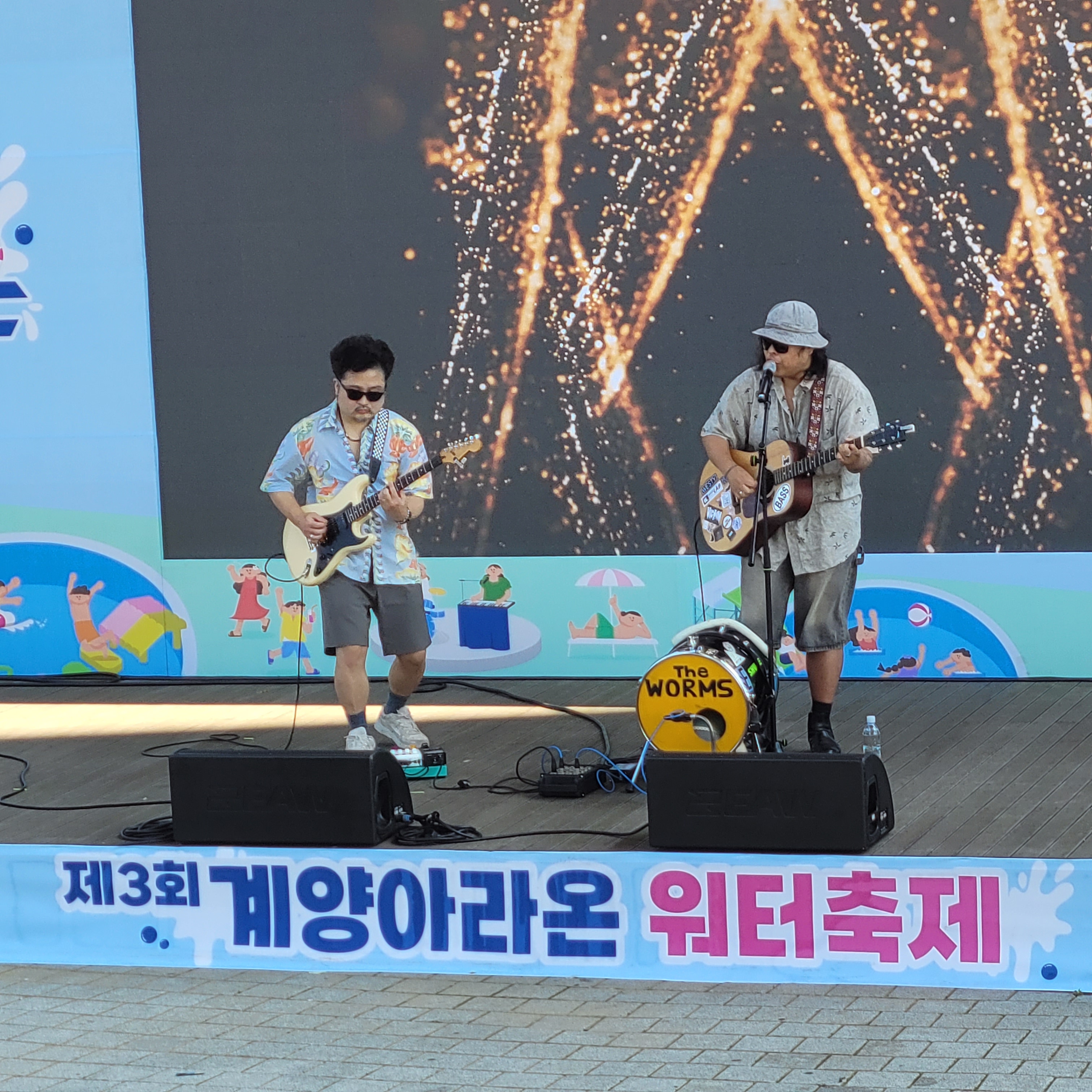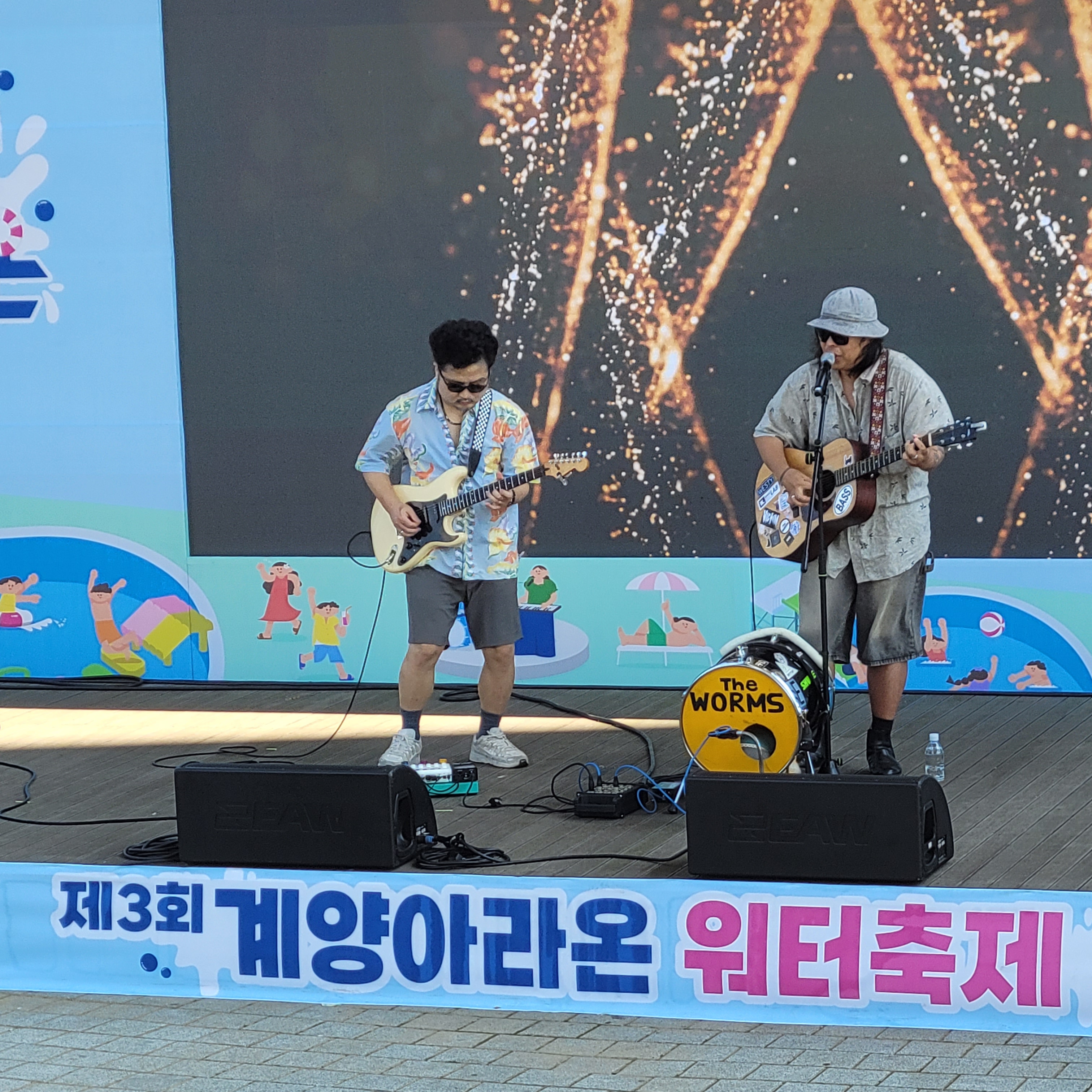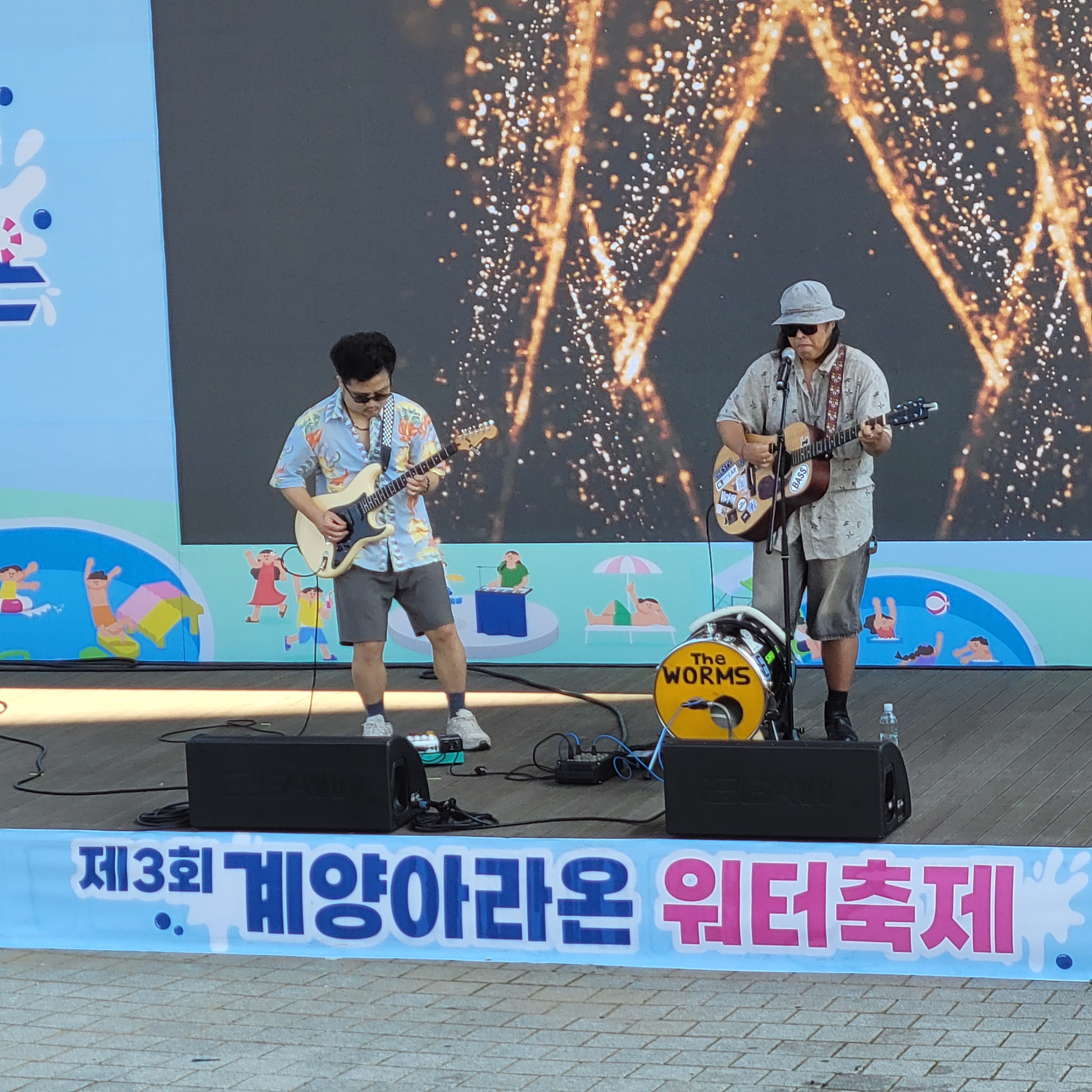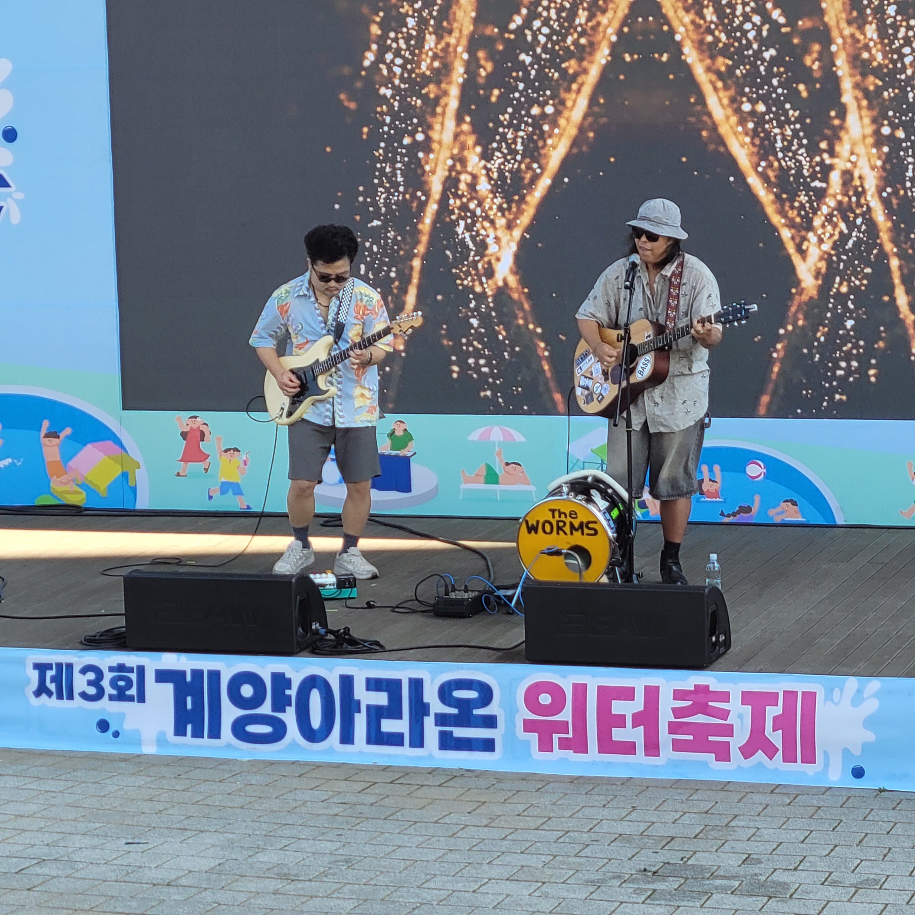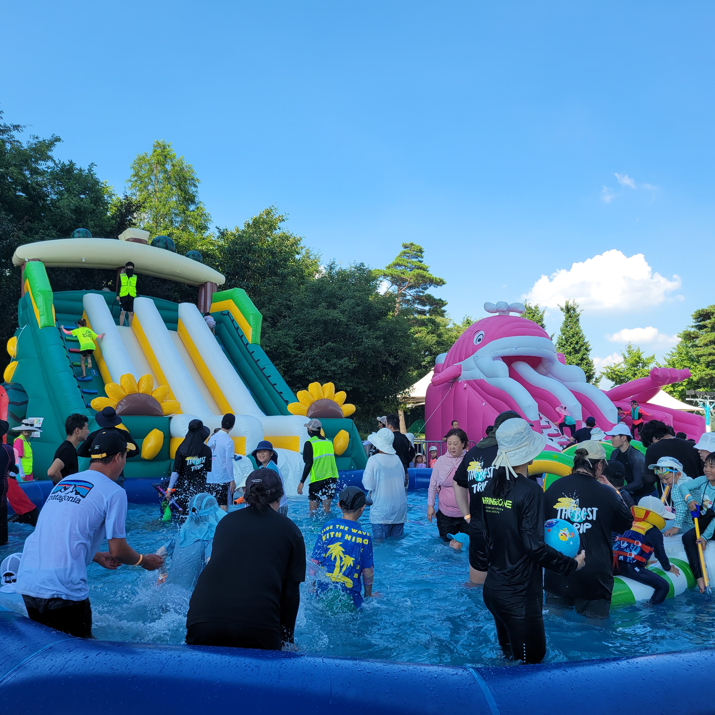 축제장에 와보니 축제장 곳곳에 인공으로 만든 워터파크 풀장이 만들어져서