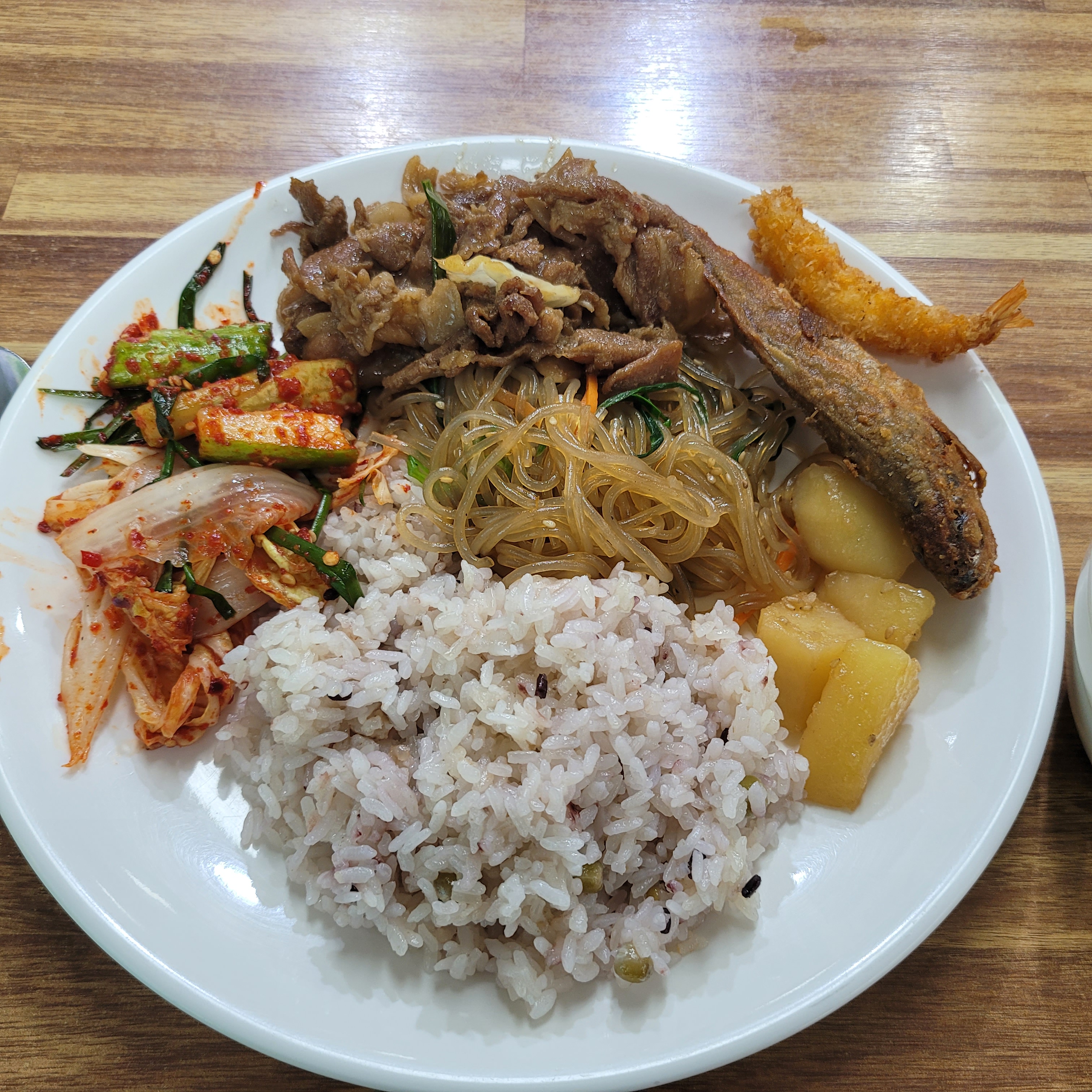 오랜만에 들러서 먹었는데 조기 한마리와 새우튀김도 서비스로 나왔네요.
